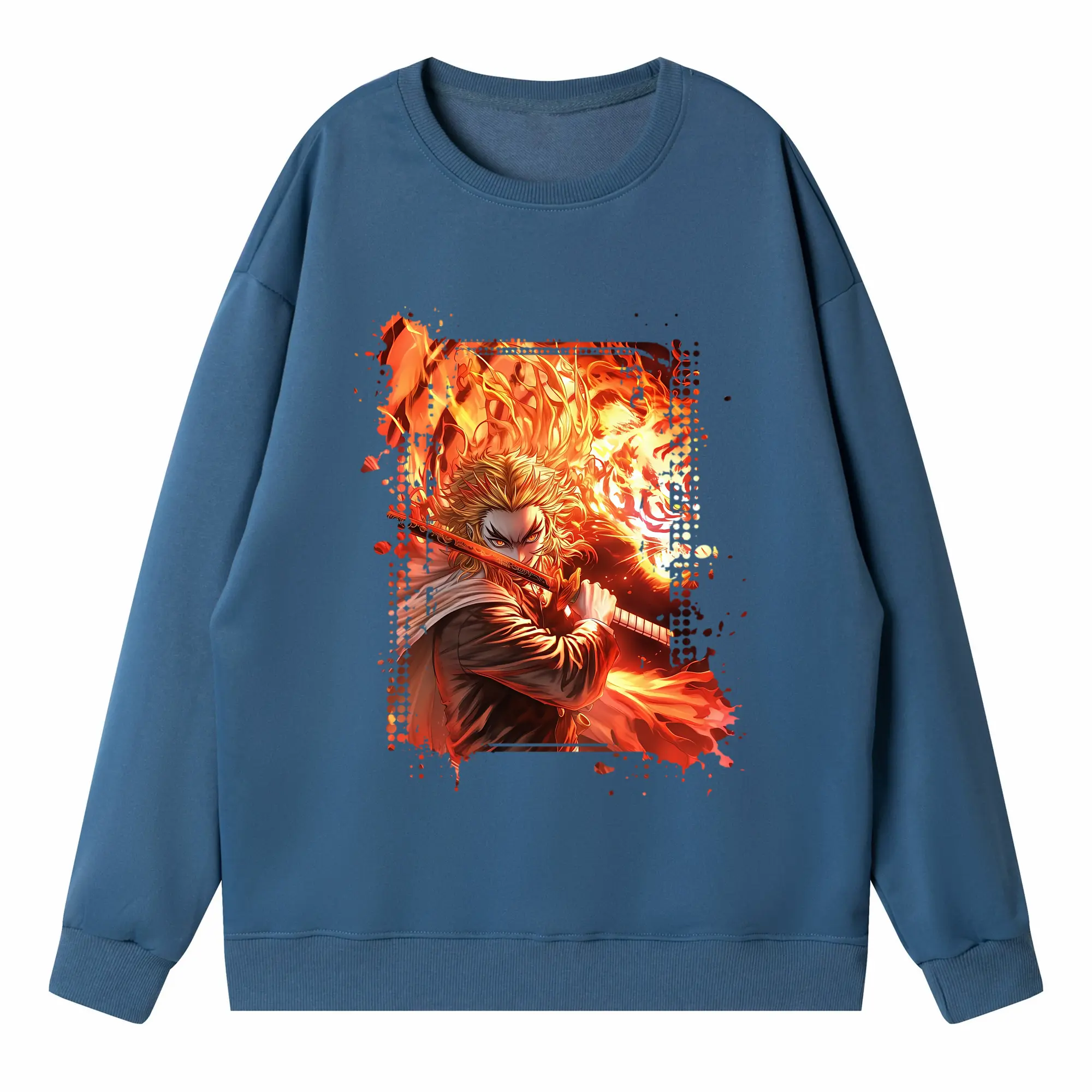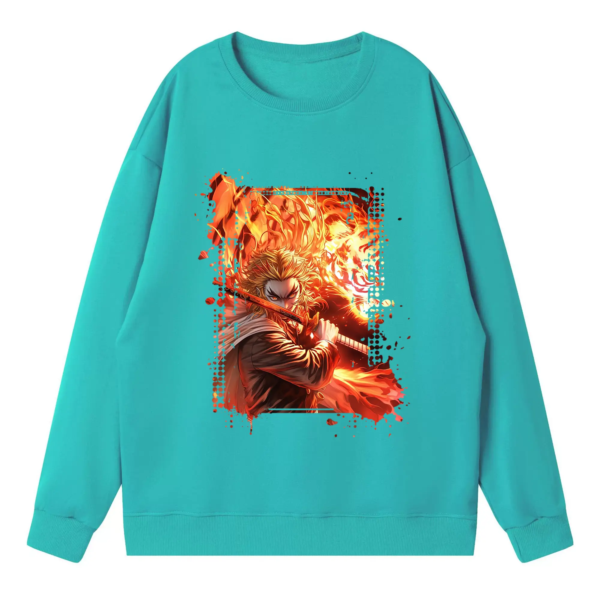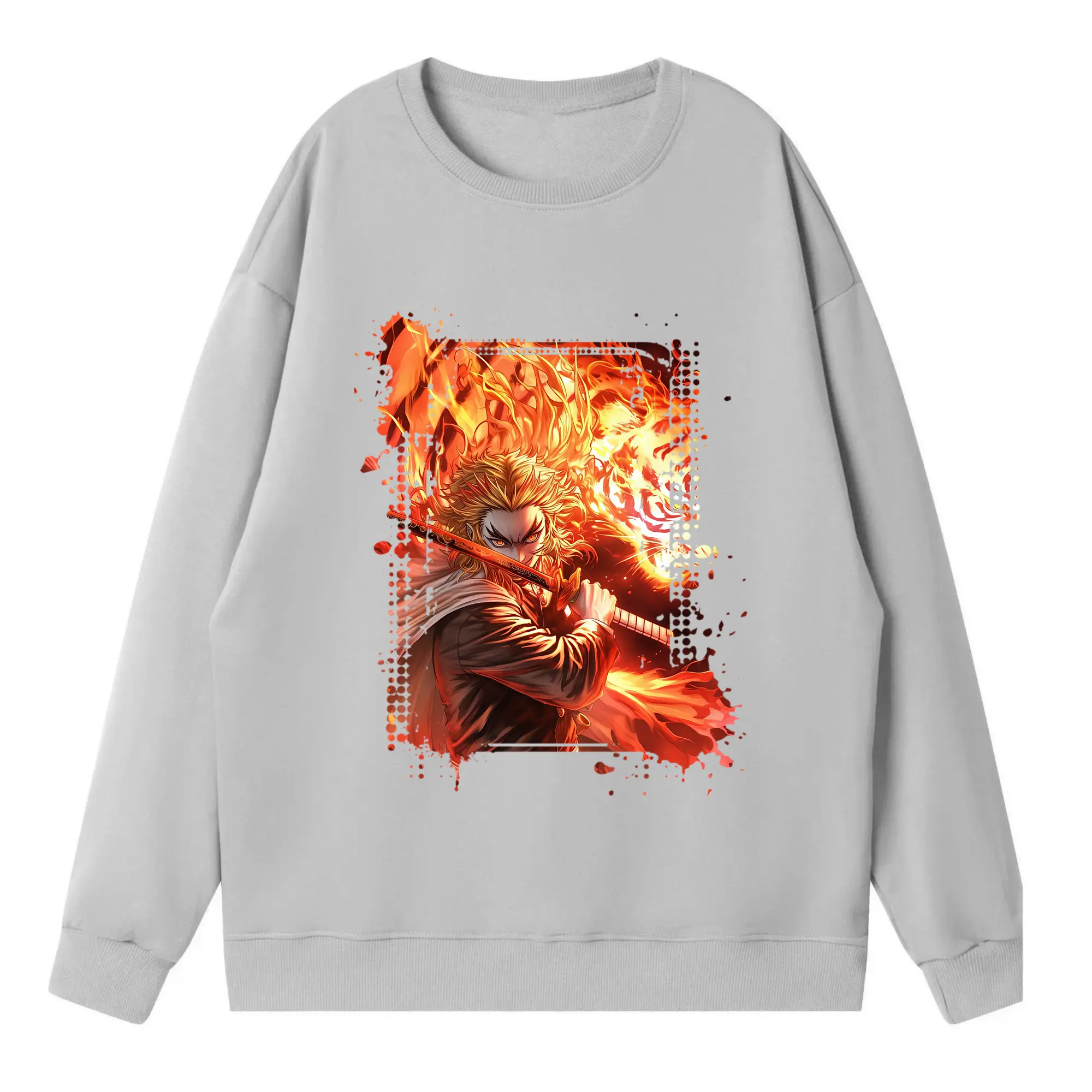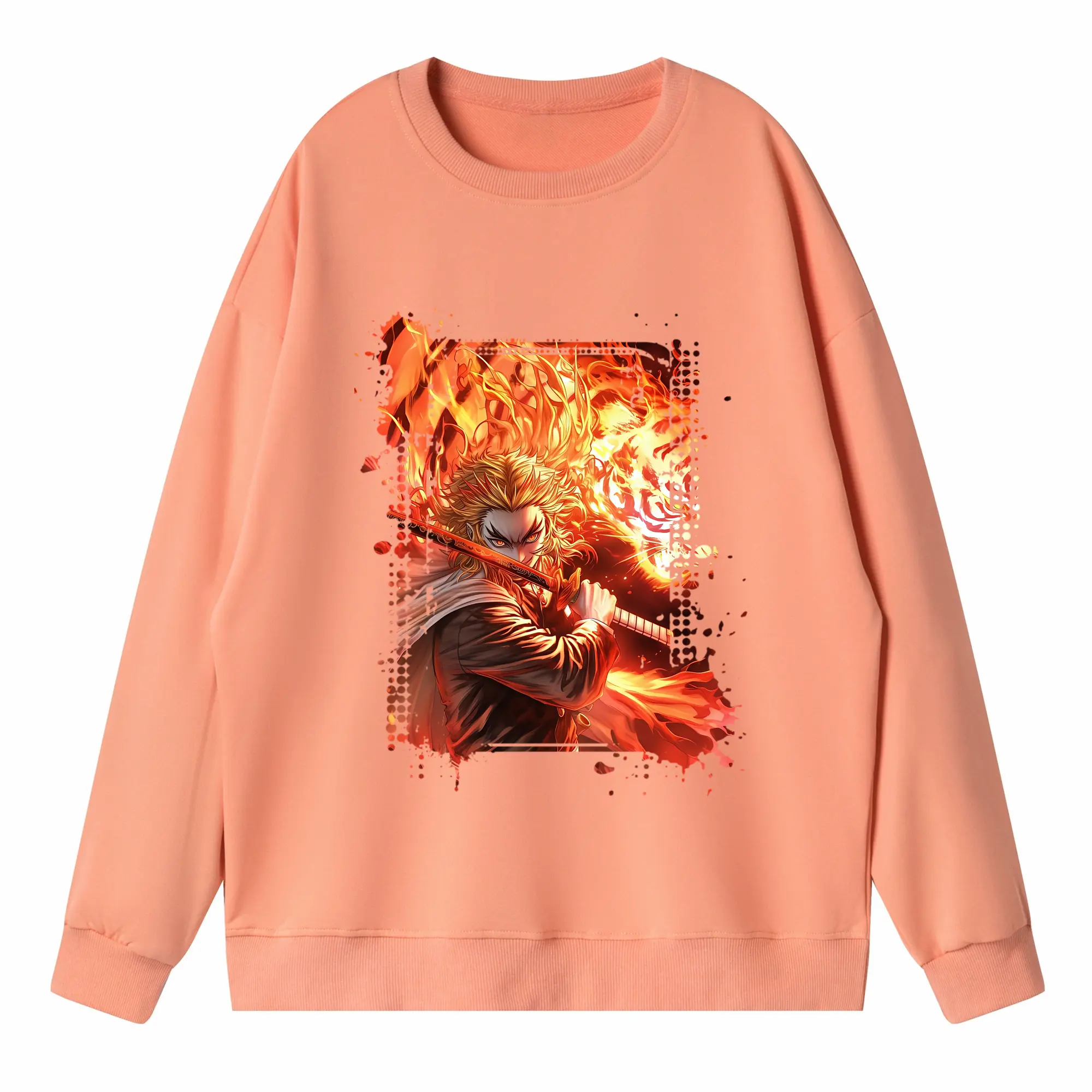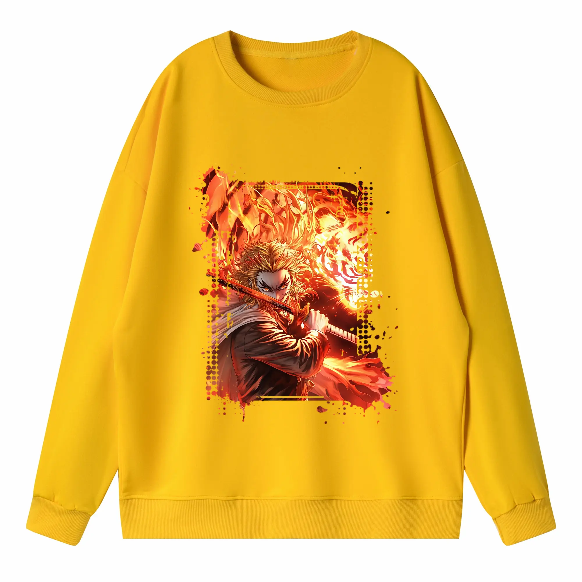 鬼滅の刃 グッズ,煉獄 杏寿郎 - 高品質 クルーネック スウェット ・ コットン59% ポリエステル41% ・ ユニセックス 長袖 トレーナー ・ カジュアル デイリー スポーツ 散歩用