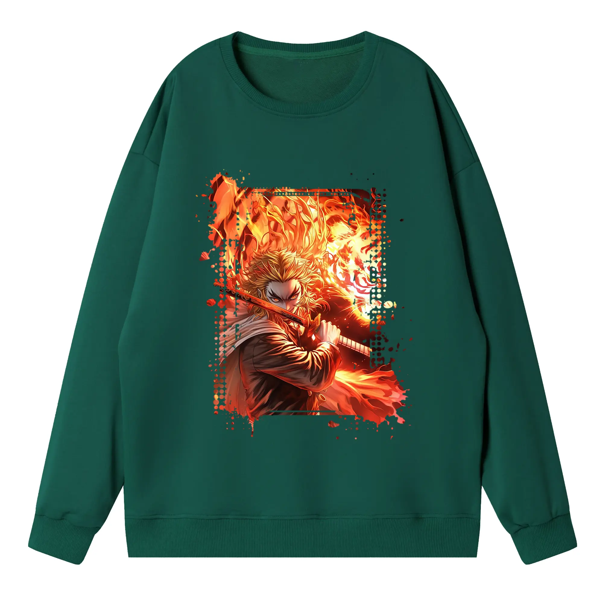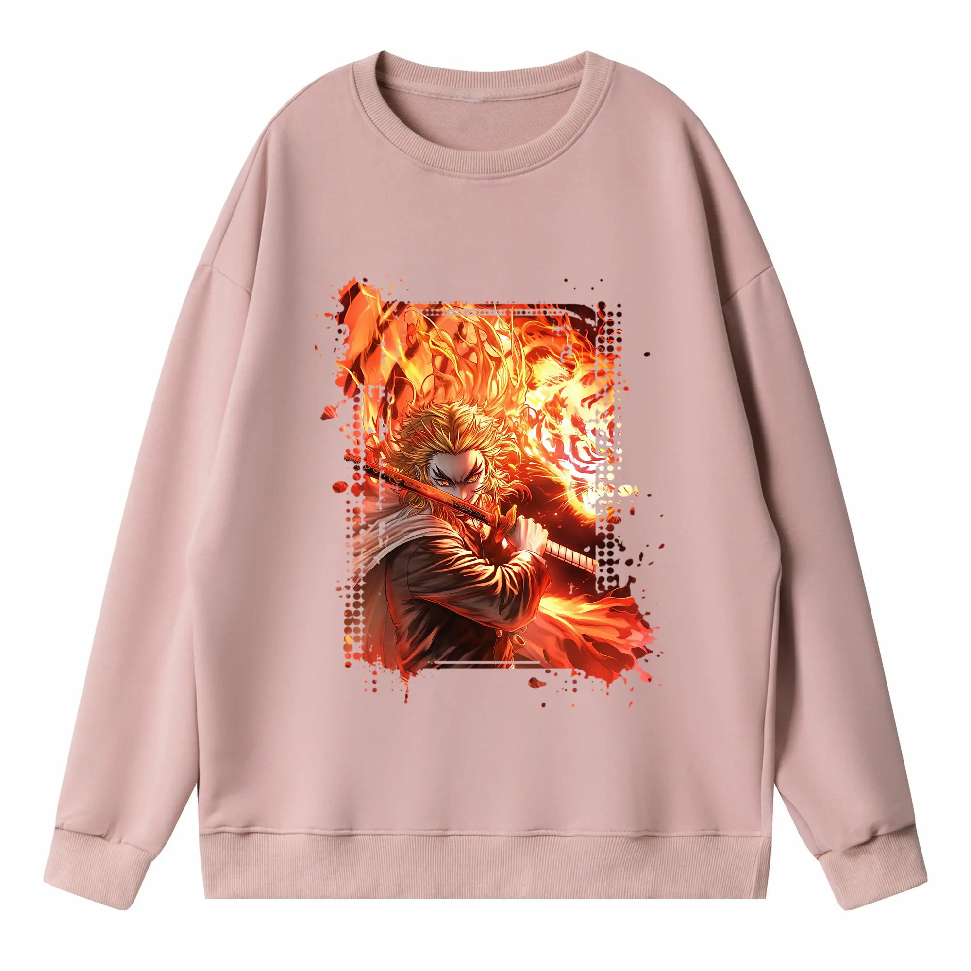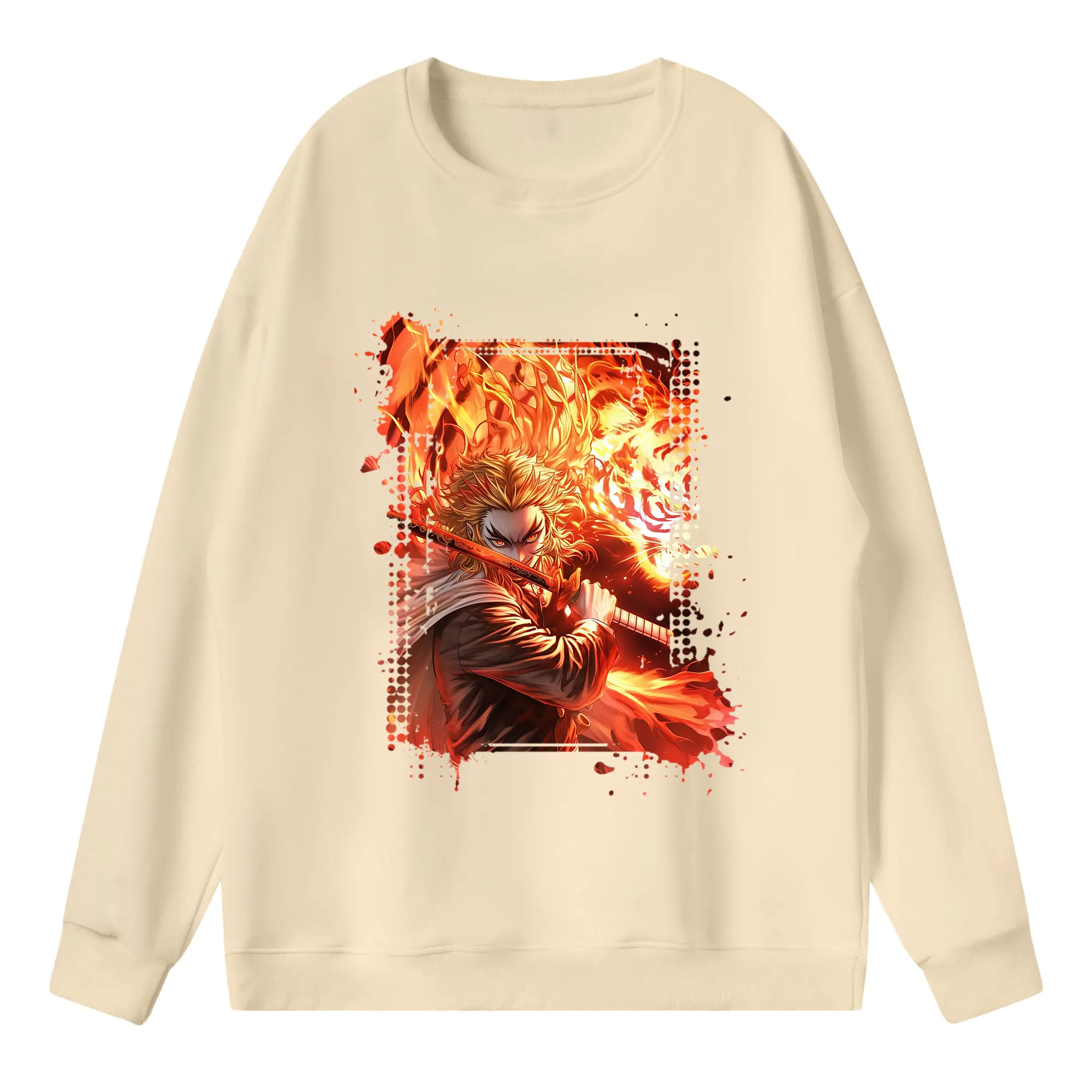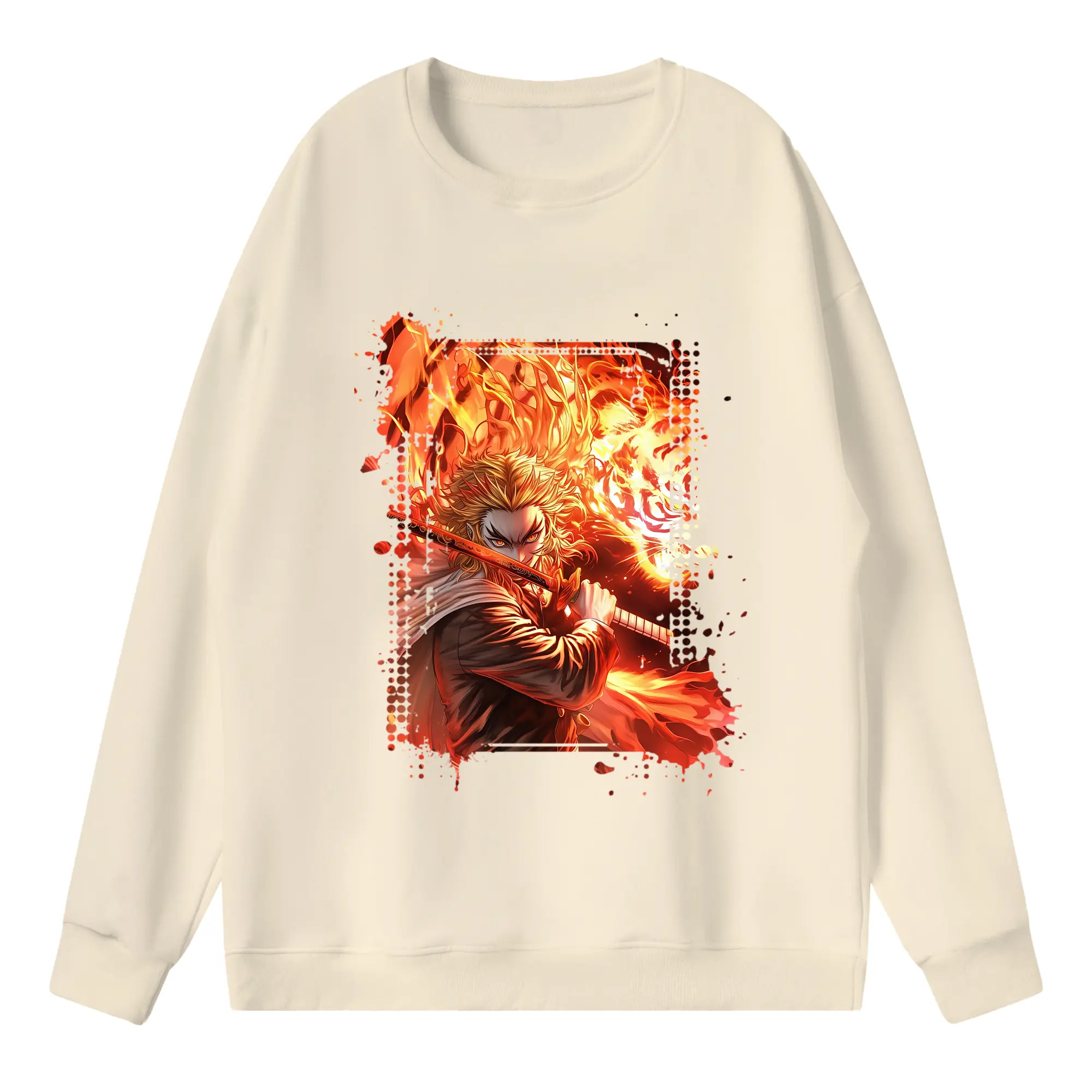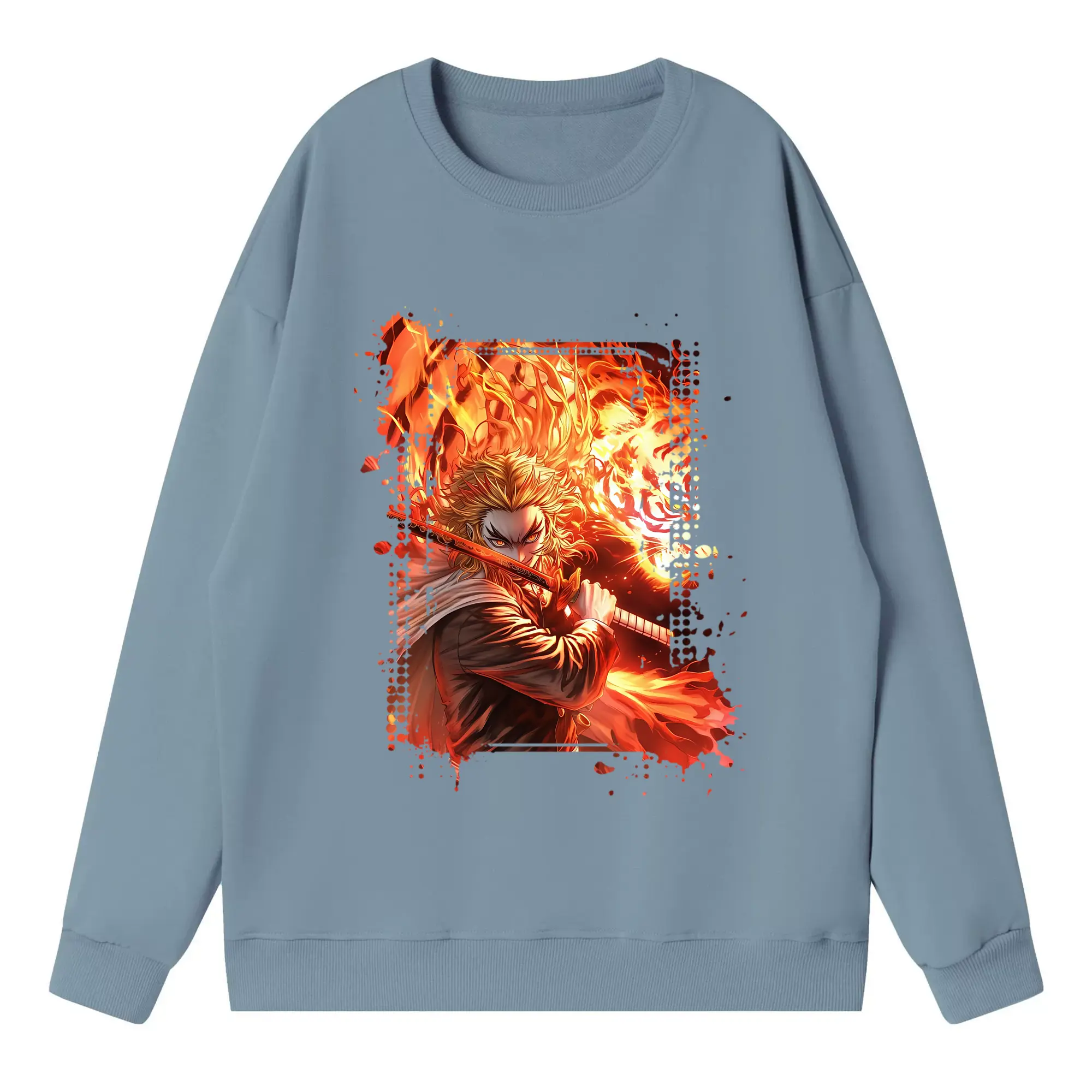 鬼滅の刃 グッズ,煉獄 杏寿郎 - 高品質 クルーネック スウェット ・ コットン59% ポリエステル41% ・ ユニセックス 長袖 トレーナー ・ カジュアル デイリー スポーツ 散歩用