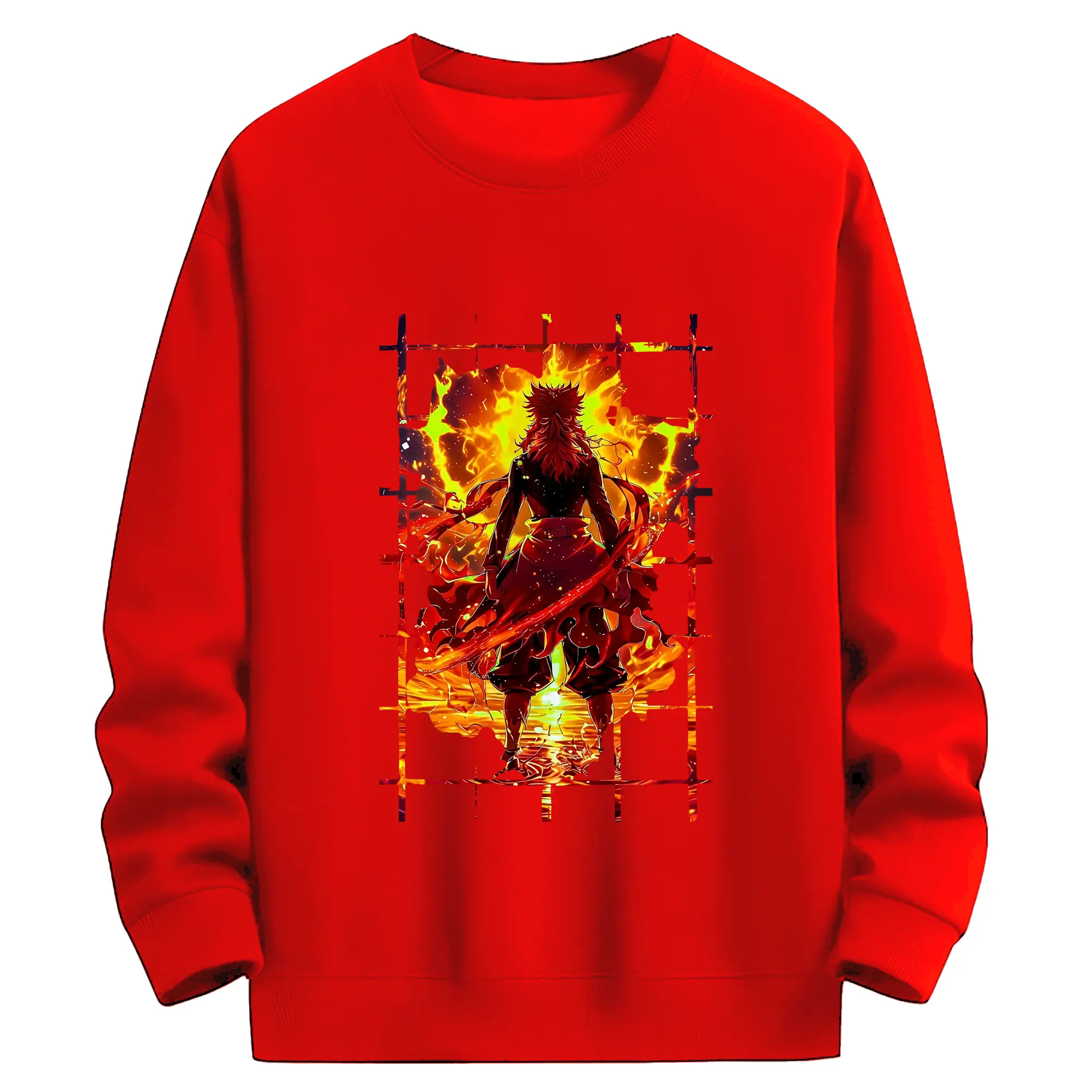 鬼滅の刃 グッズ,煉獄 杏寿郎 - 薄手 クルーネック スウェット 裏毛260g · ポリエステル 春秋向け カジュアル 男女兼用 · トレーナー デイリー スポーツ 散歩に最適