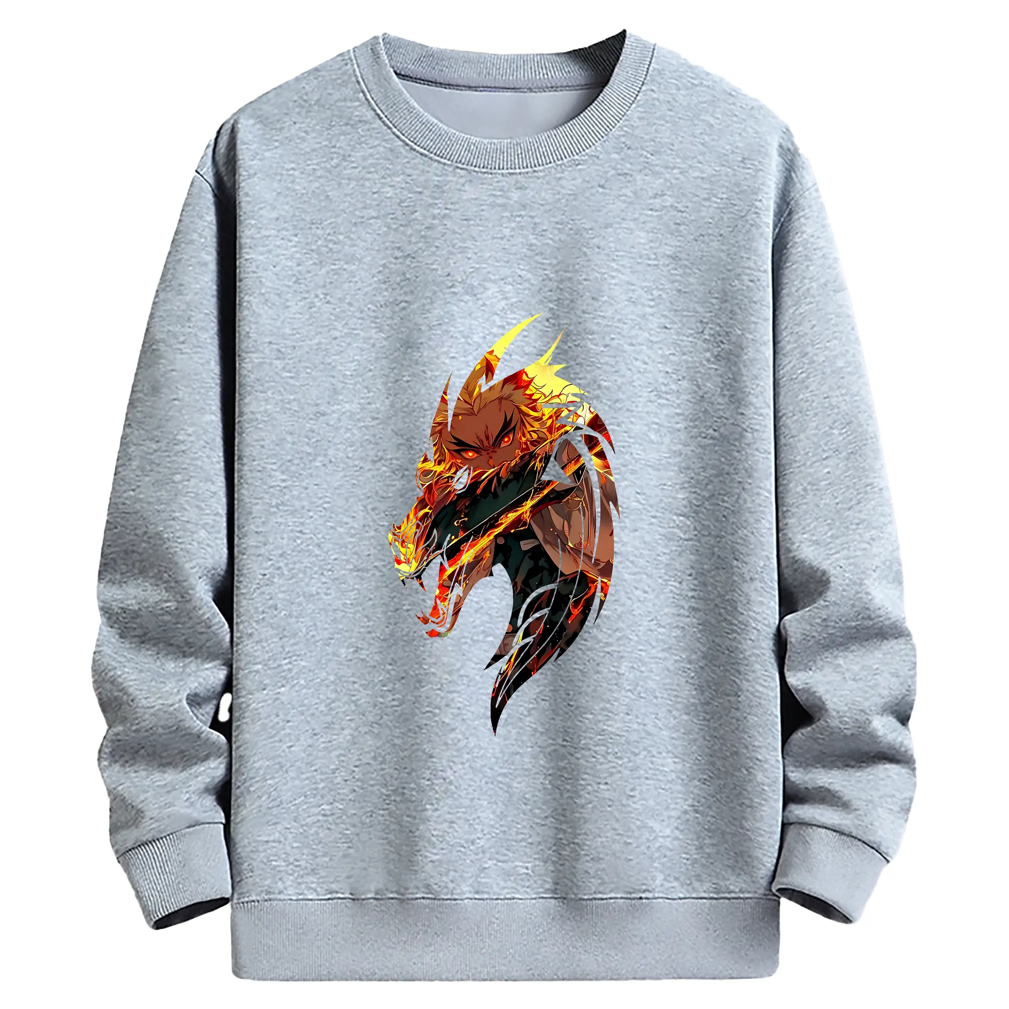 鬼滅の刃 グッズ,煉獄 杏寿郎 - 薄手 クルーネック スウェット 裏毛260g · ポリエステル 春秋向け カジュアル 男女兼用 · トレーナー デイリー スポーツ 散歩に最適