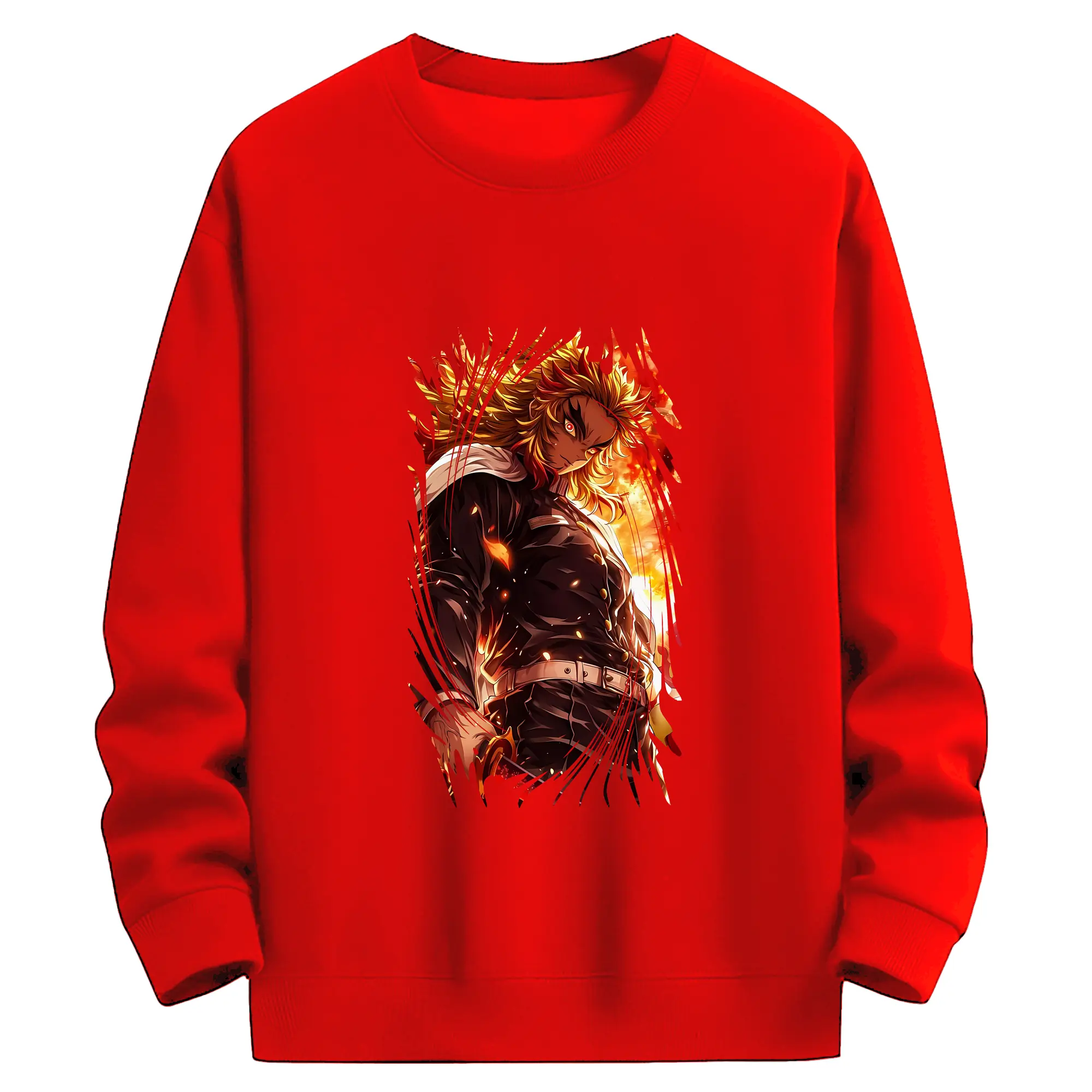 鬼滅の刃 グッズ,煉獄 杏寿郎 - 薄手 クルーネック スウェット 裏毛260g · ポリエステル 春秋向け カジュアル 男女兼用 · トレーナー デイリー スポーツ 散歩に最適