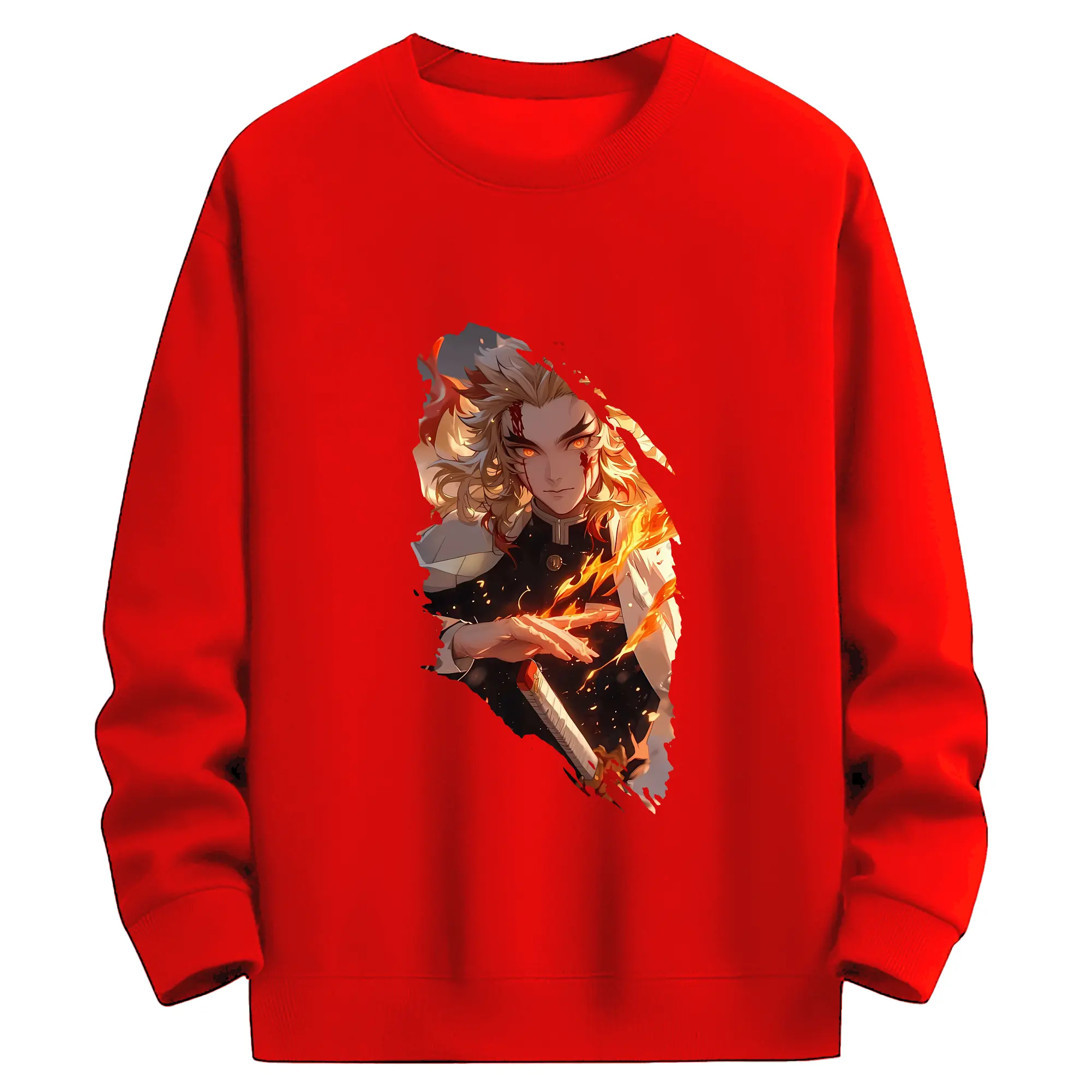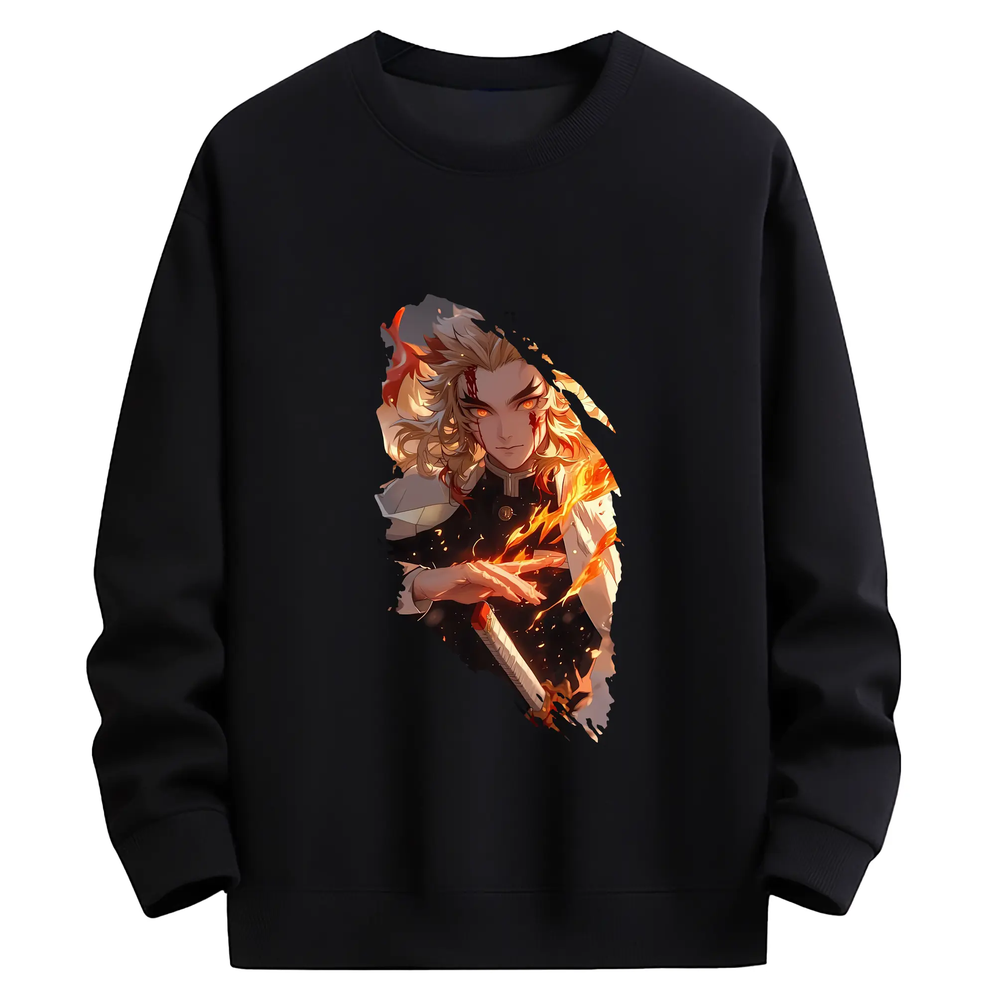 鬼滅の刃 グッズ,煉獄 杏寿郎 - 薄手 クルーネック スウェット 裏毛260g · ポリエステル 春秋向け カジュアル 男女兼用 · トレーナー デイリー スポーツ 散歩に最適