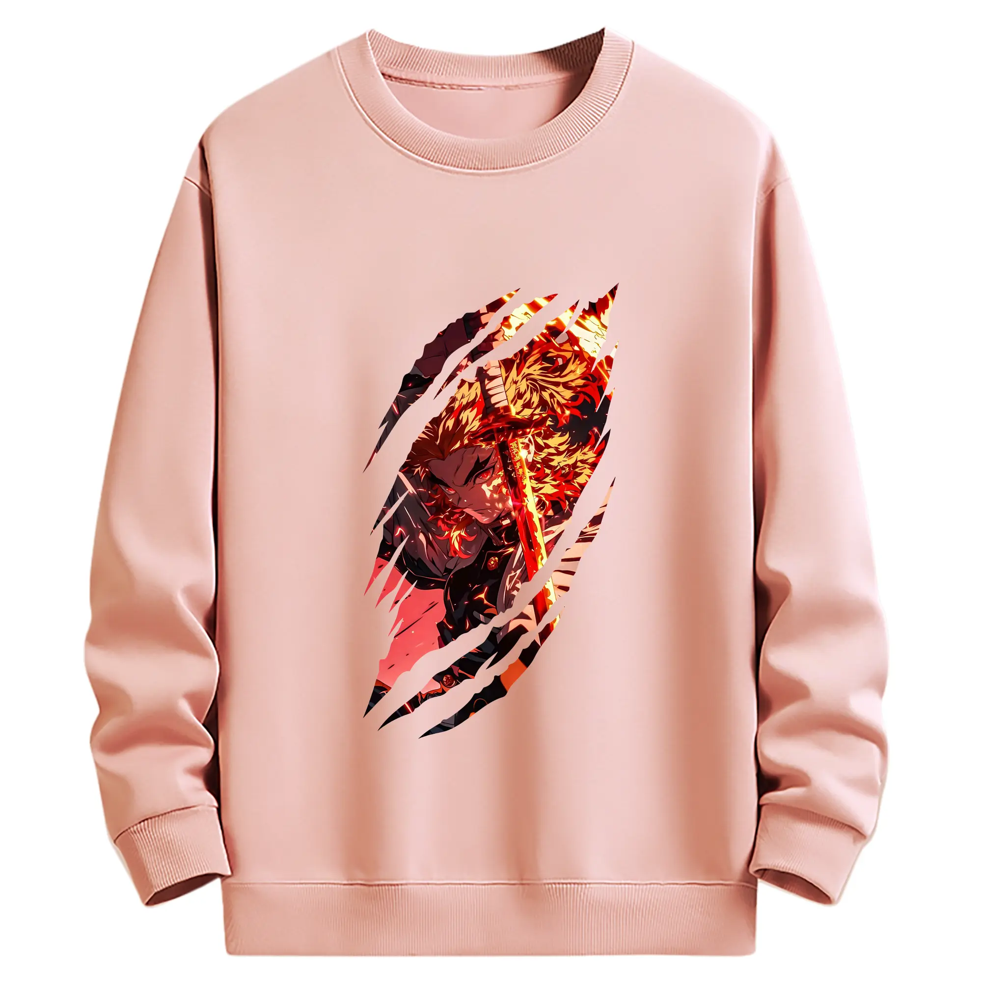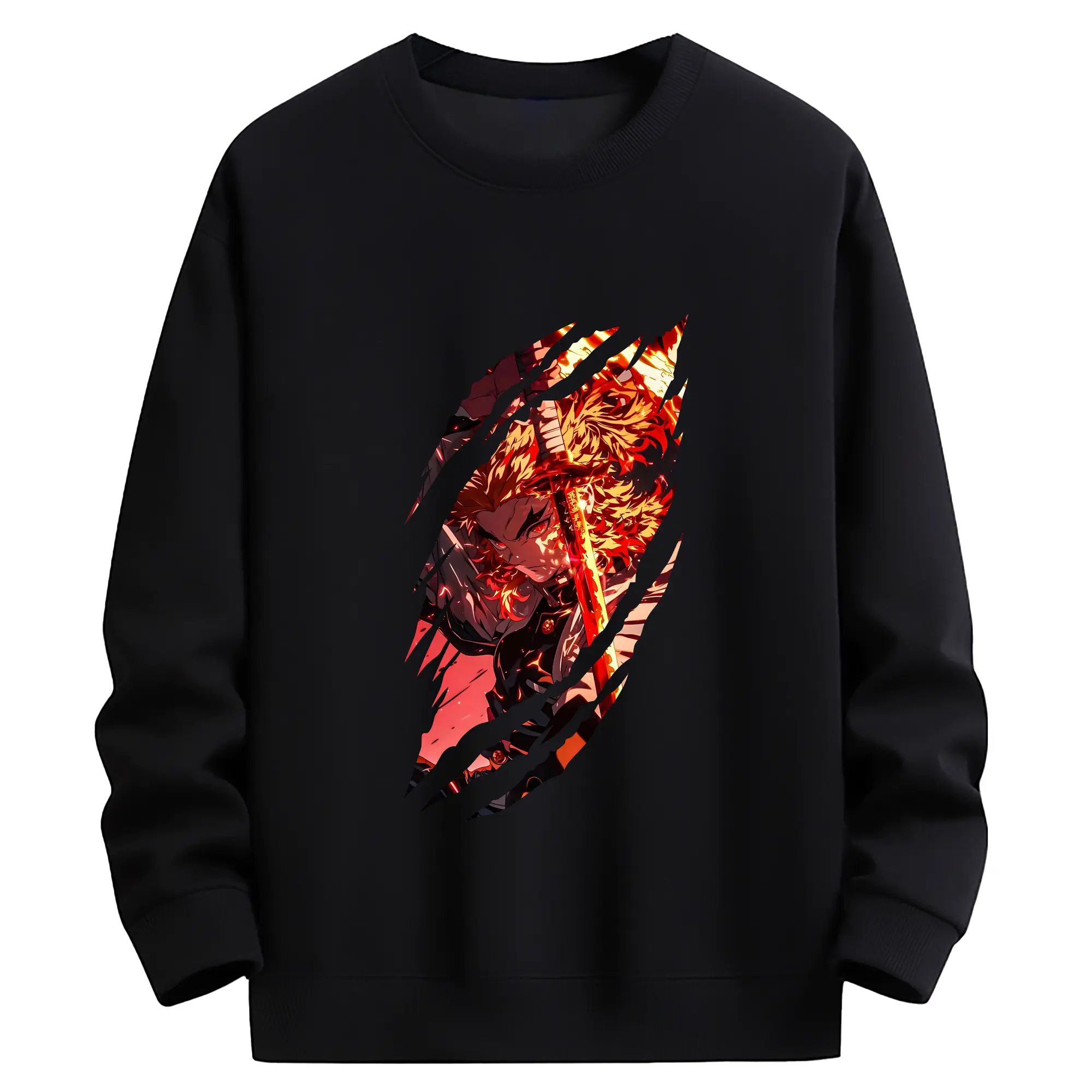 鬼滅の刃 グッズ,煉獄 杏寿郎 - 薄手 クルーネック スウェット 裏毛260g · ポリエステル 春秋向け カジュアル 男女兼用 · トレーナー デイリー スポーツ 散歩に最適
