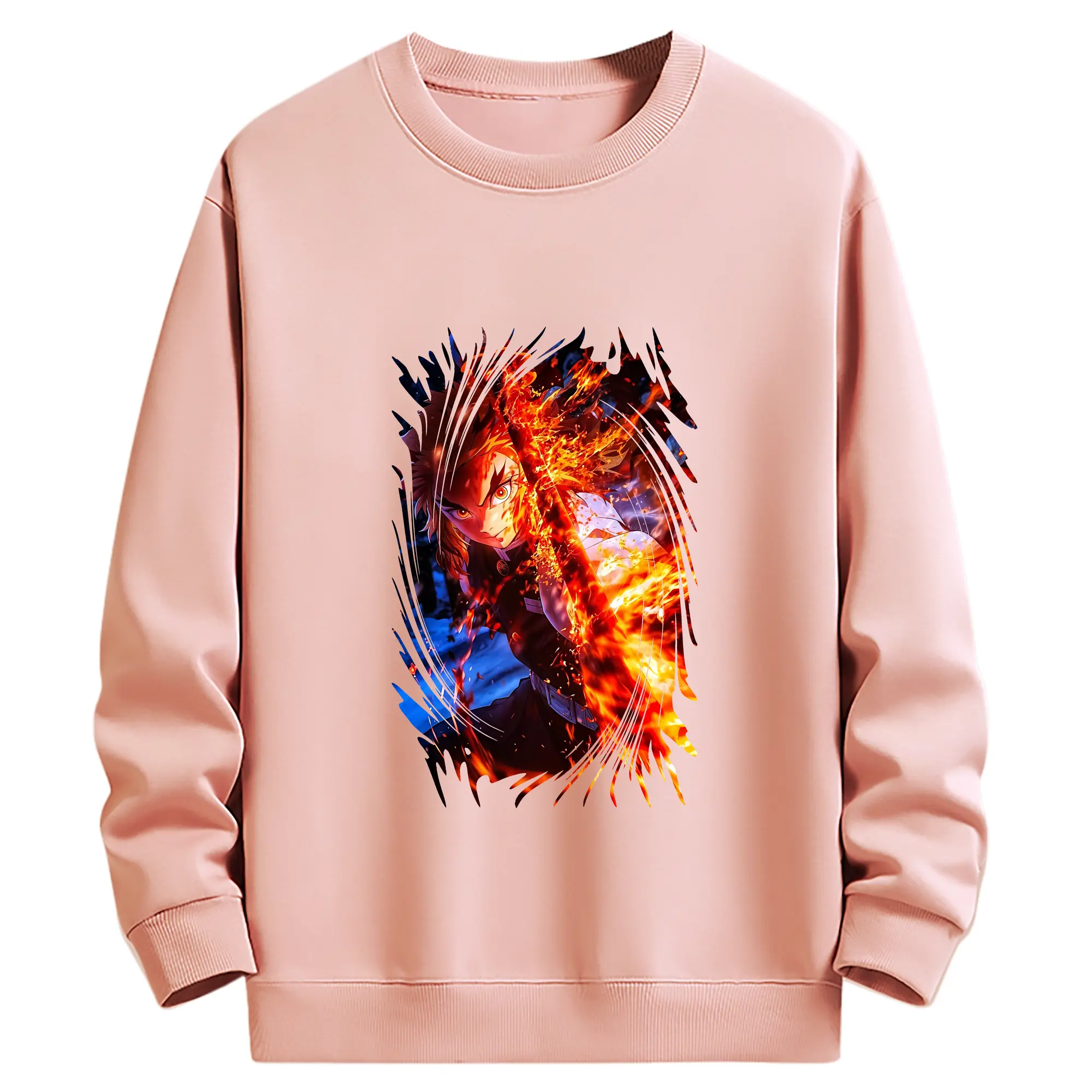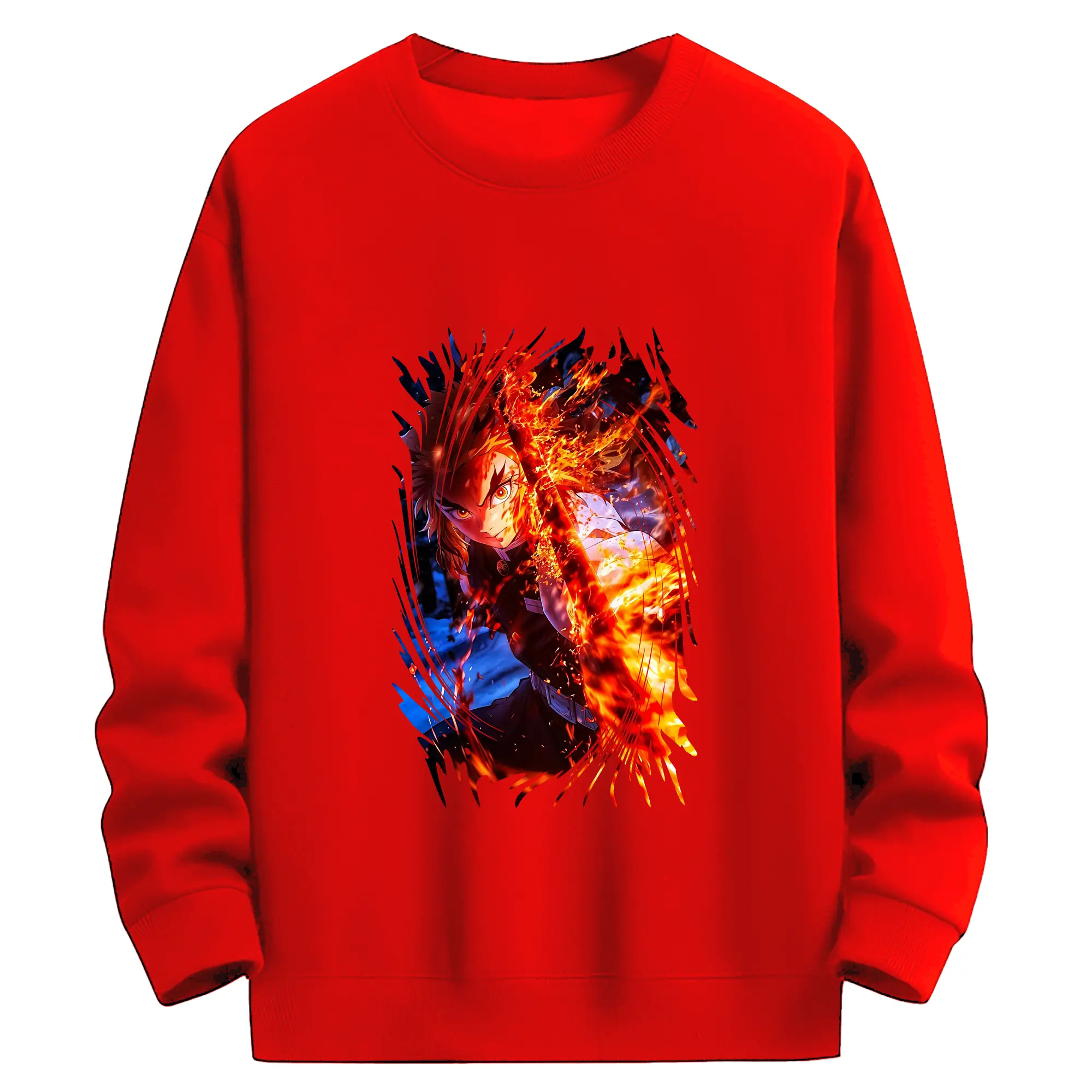 鬼滅の刃 グッズ,煉獄 杏寿郎 - 薄手 クルーネック スウェット 裏毛260g · ポリエステル 春秋向け カジュアル 男女兼用 · トレーナー デイリー スポーツ 散歩に最適