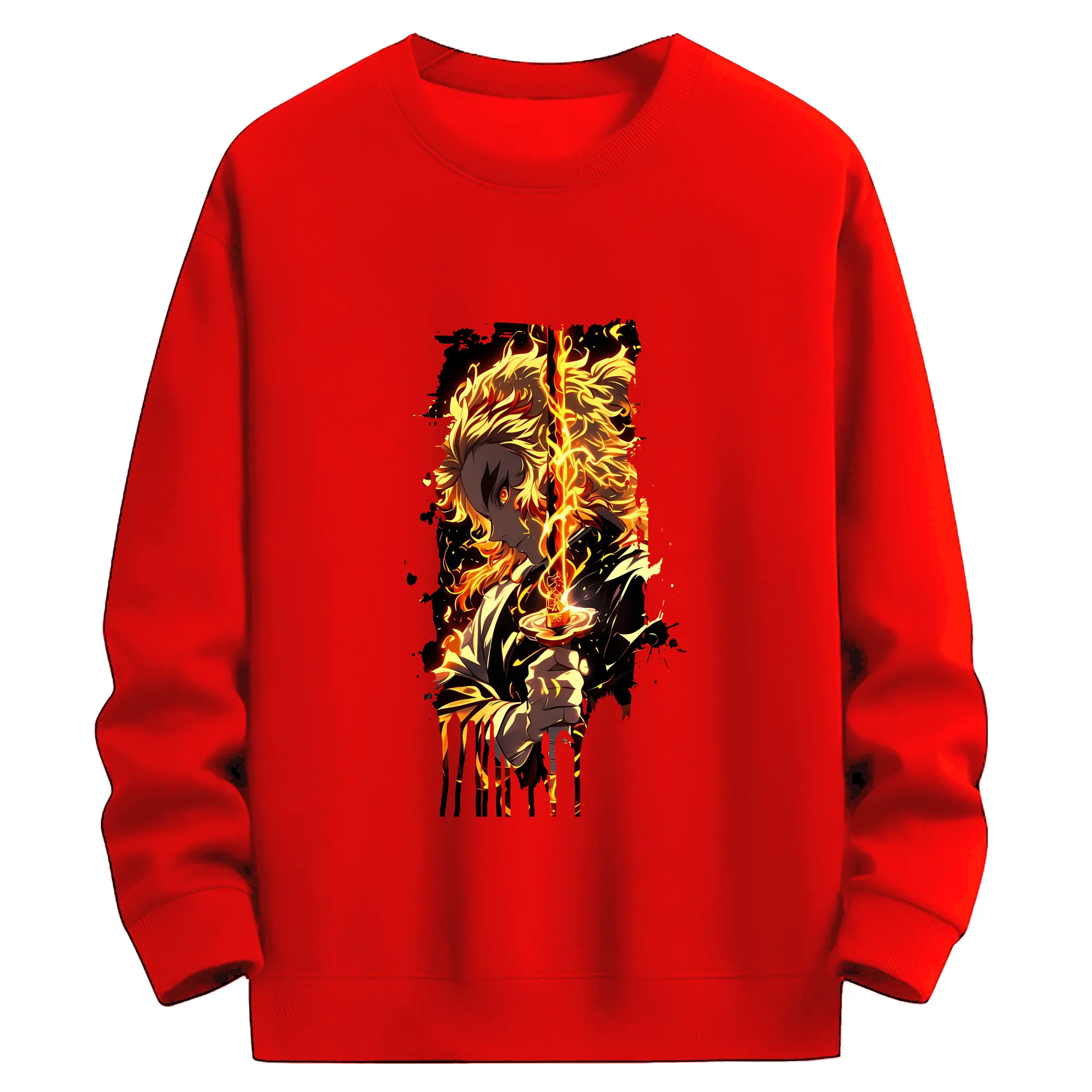 鬼滅の刃 グッズ,煉獄 杏寿郎 - 薄手 クルーネック スウェット 裏毛260g · ポリエステル 春秋向け カジュアル 男女兼用 · トレーナー デイリー スポーツ 散歩に最適