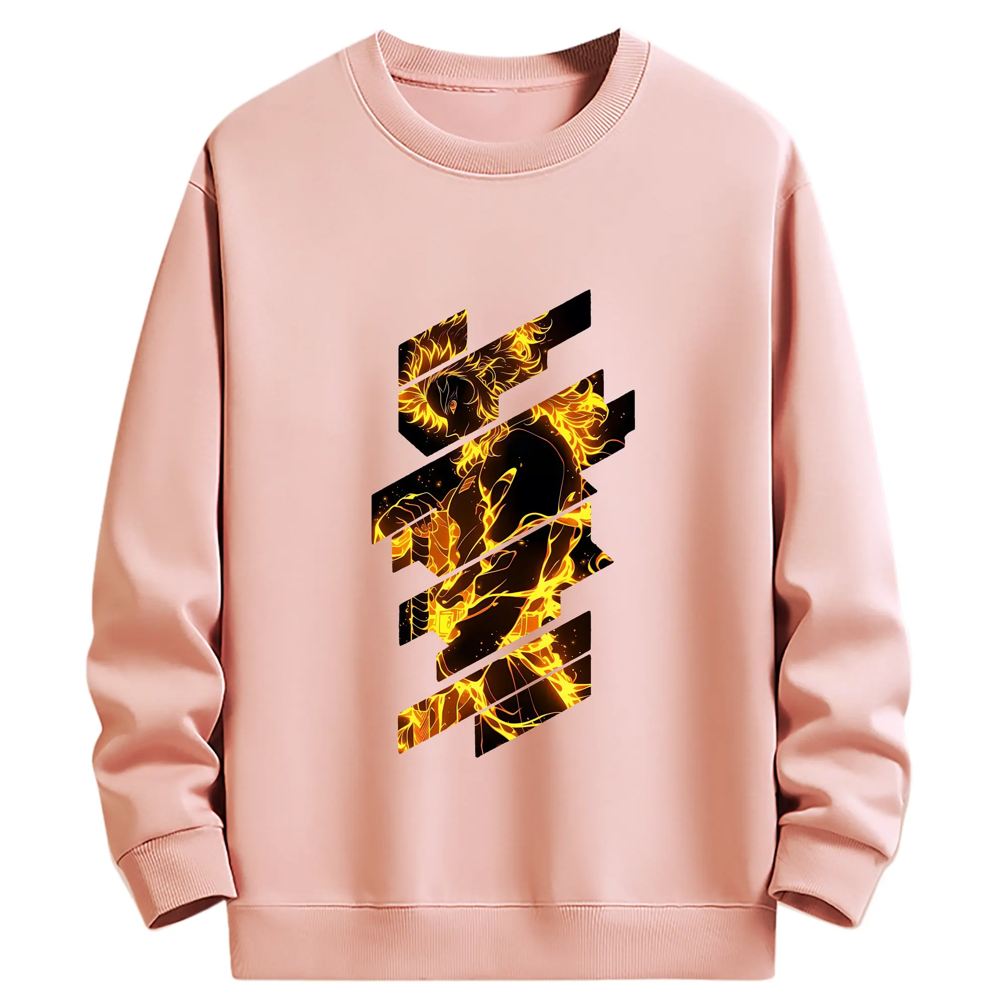 鬼滅の刃 グッズ,煉獄 杏寿郎 - 薄手 クルーネック スウェット 裏毛260g · ポリエステル 春秋向け カジュアル 男女兼用 · トレーナー デイリー スポーツ 散歩に最適