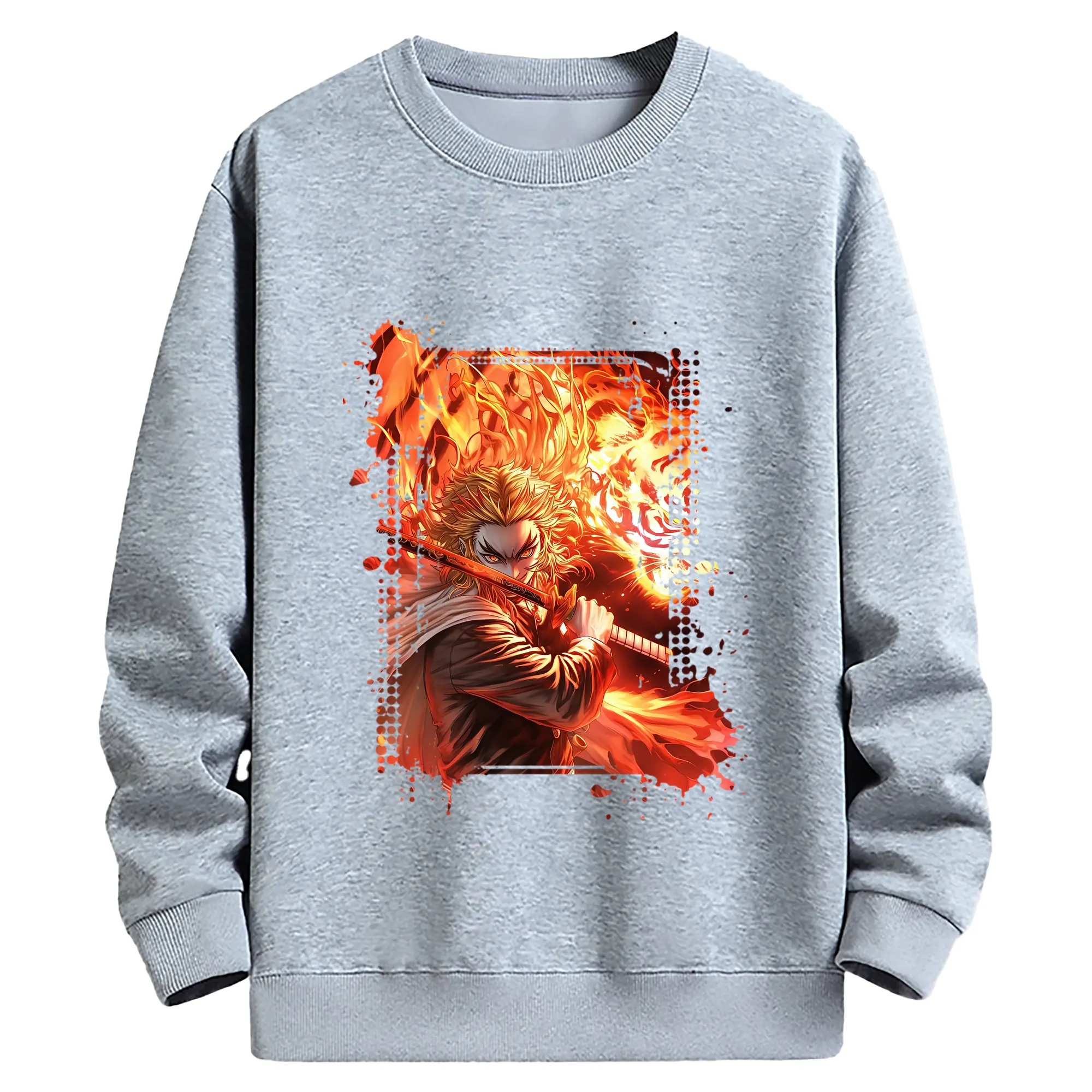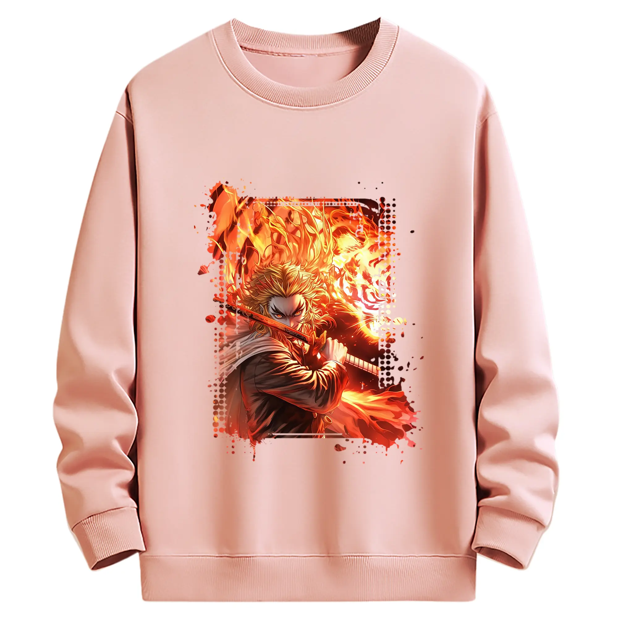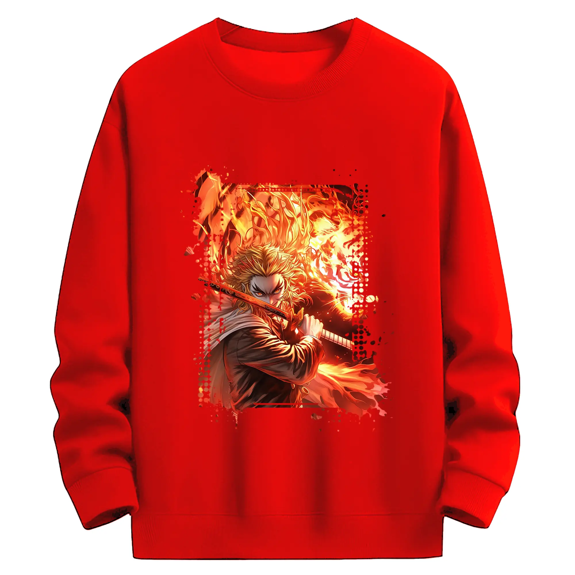 鬼滅の刃 グッズ,煉獄 杏寿郎 - 薄手 クルーネック スウェット 裏毛260g · ポリエステル 春秋向け カジュアル 男女兼用 · トレーナー デイリー スポーツ 散歩に最適