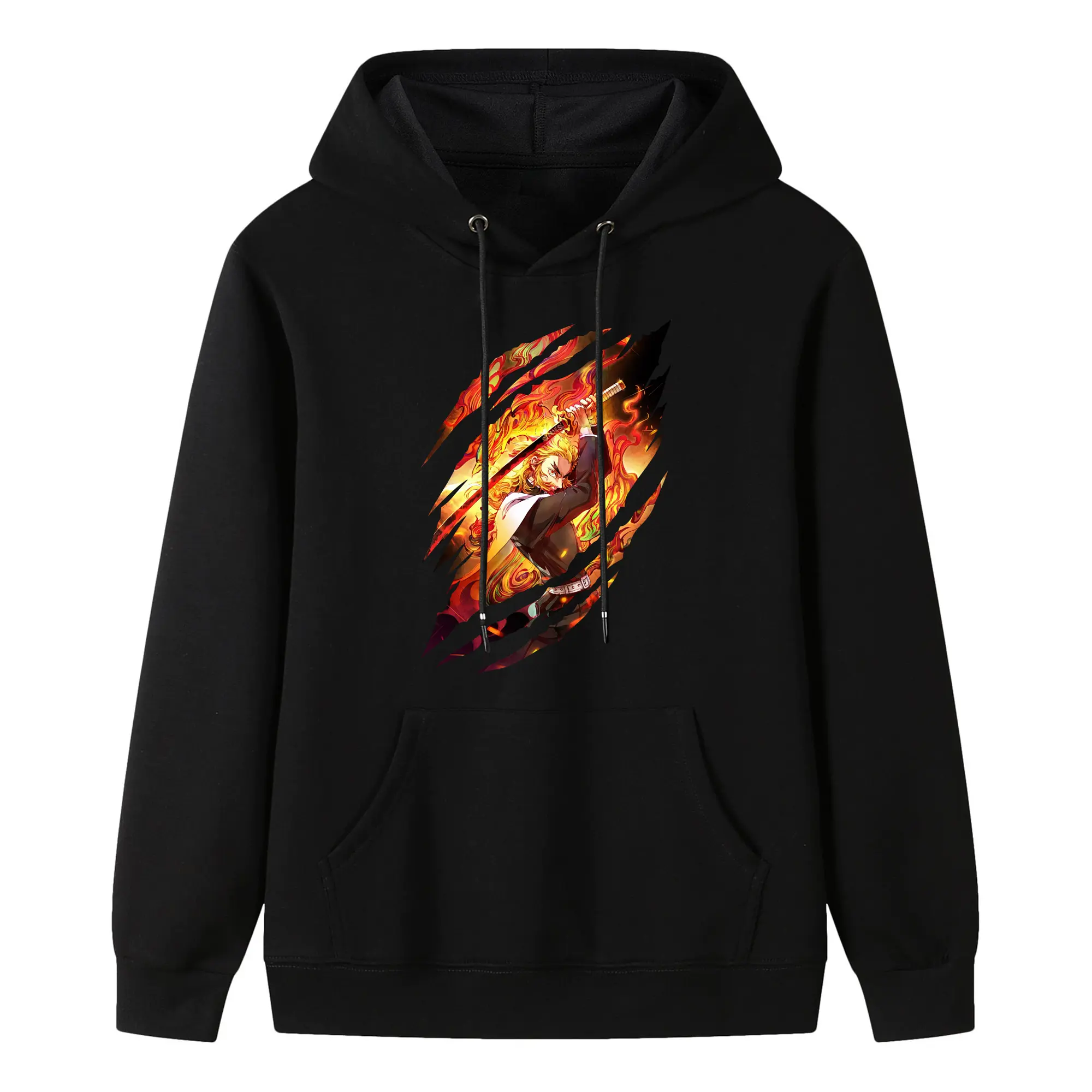 鬼滅の刃 グッズ,煉獄 杏寿郎 - キッズ フード付きパーカー ・ フロントプリント ・ ポリエステル100% ・ 快適 通学 スポーツ 日常使い お散歩用