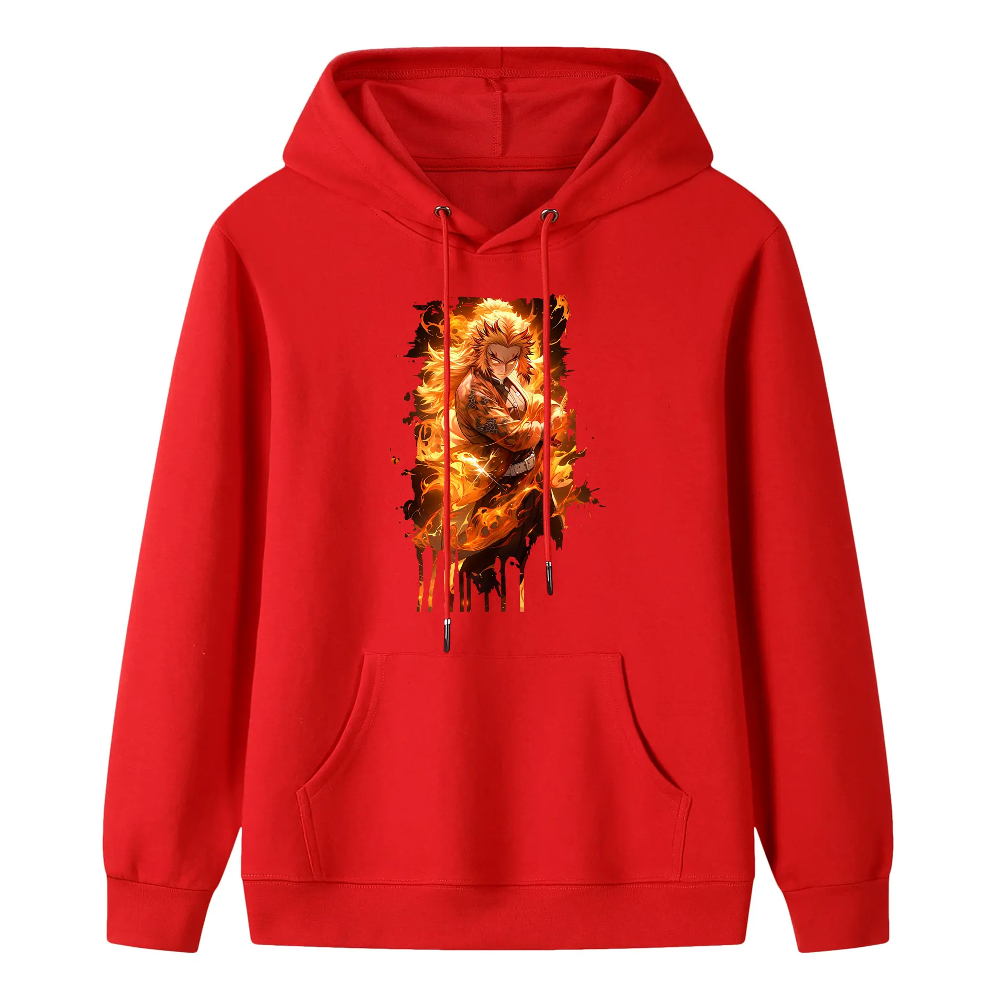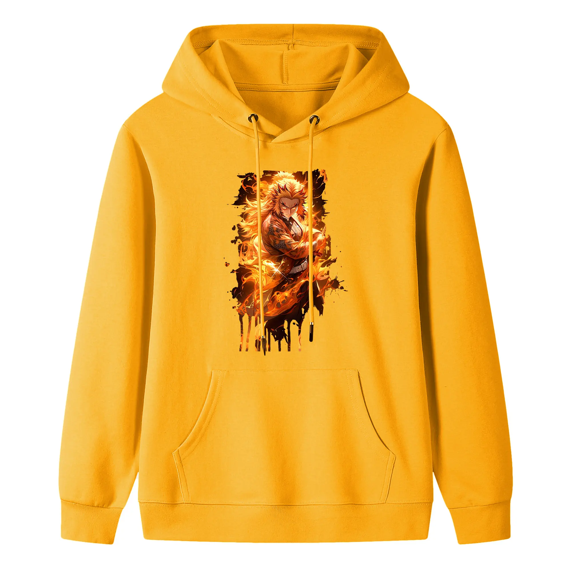 鬼滅の刃 グッズ,煉獄 杏寿郎 - キッズ フード付きパーカー ・ フロントプリント ・ ポリエステル100% ・ 快適 通学 スポーツ 日常使い お散歩用