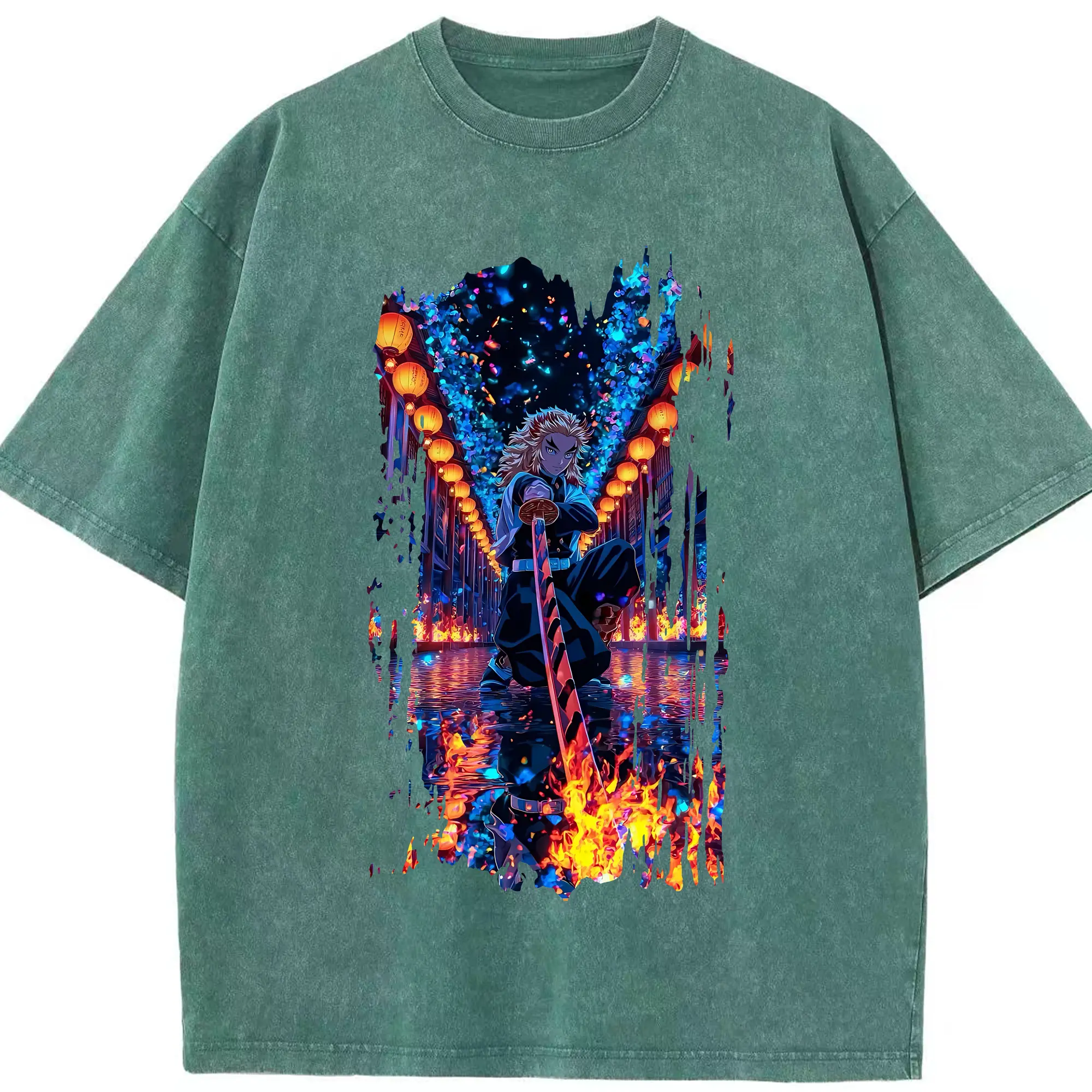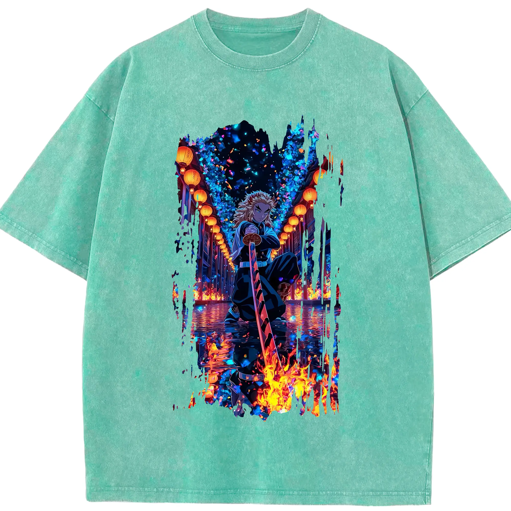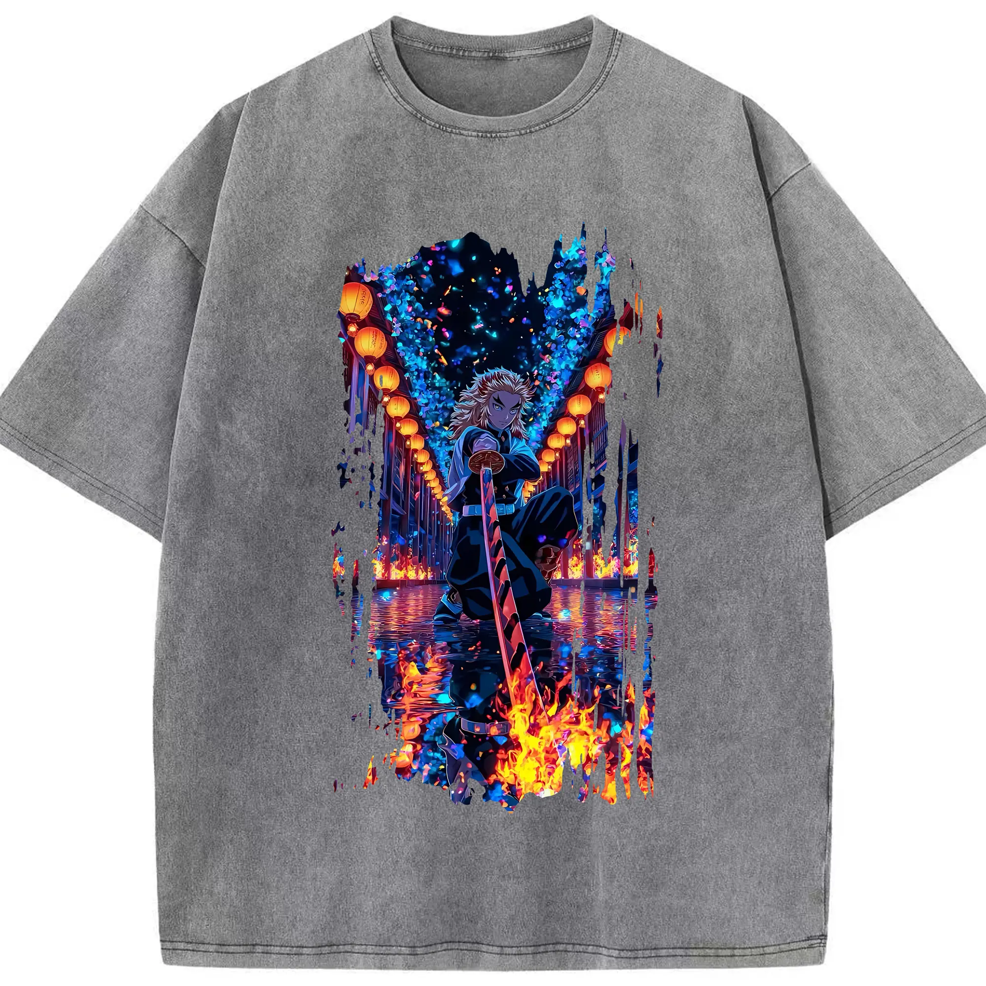 鬼滅の刃 グッズ,煉獄 杏寿郎 - 綿100% 半袖Tシャツ ・ フロントプリント ・ 快適 通気性 ・ 日常使い 散歩 スポーツ用