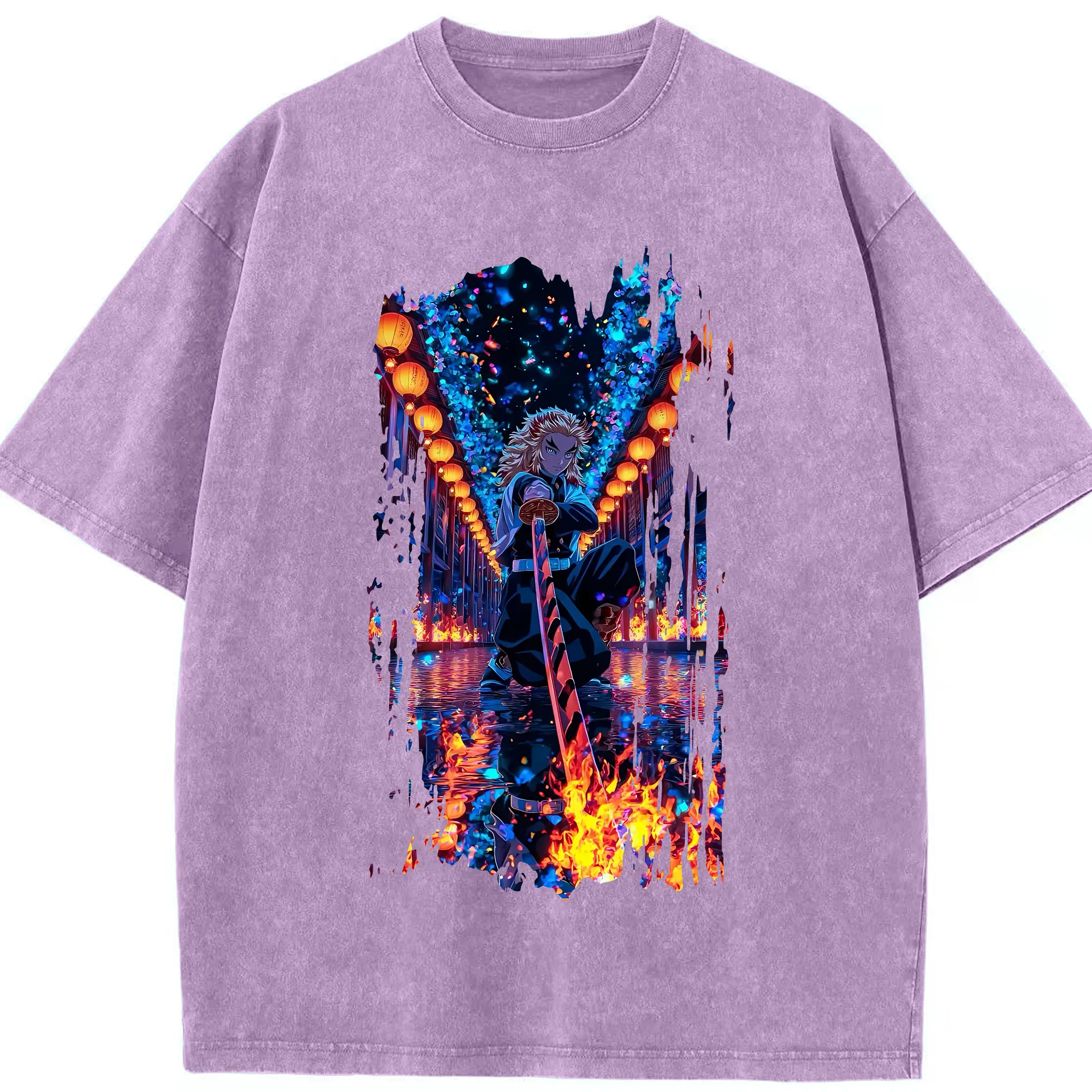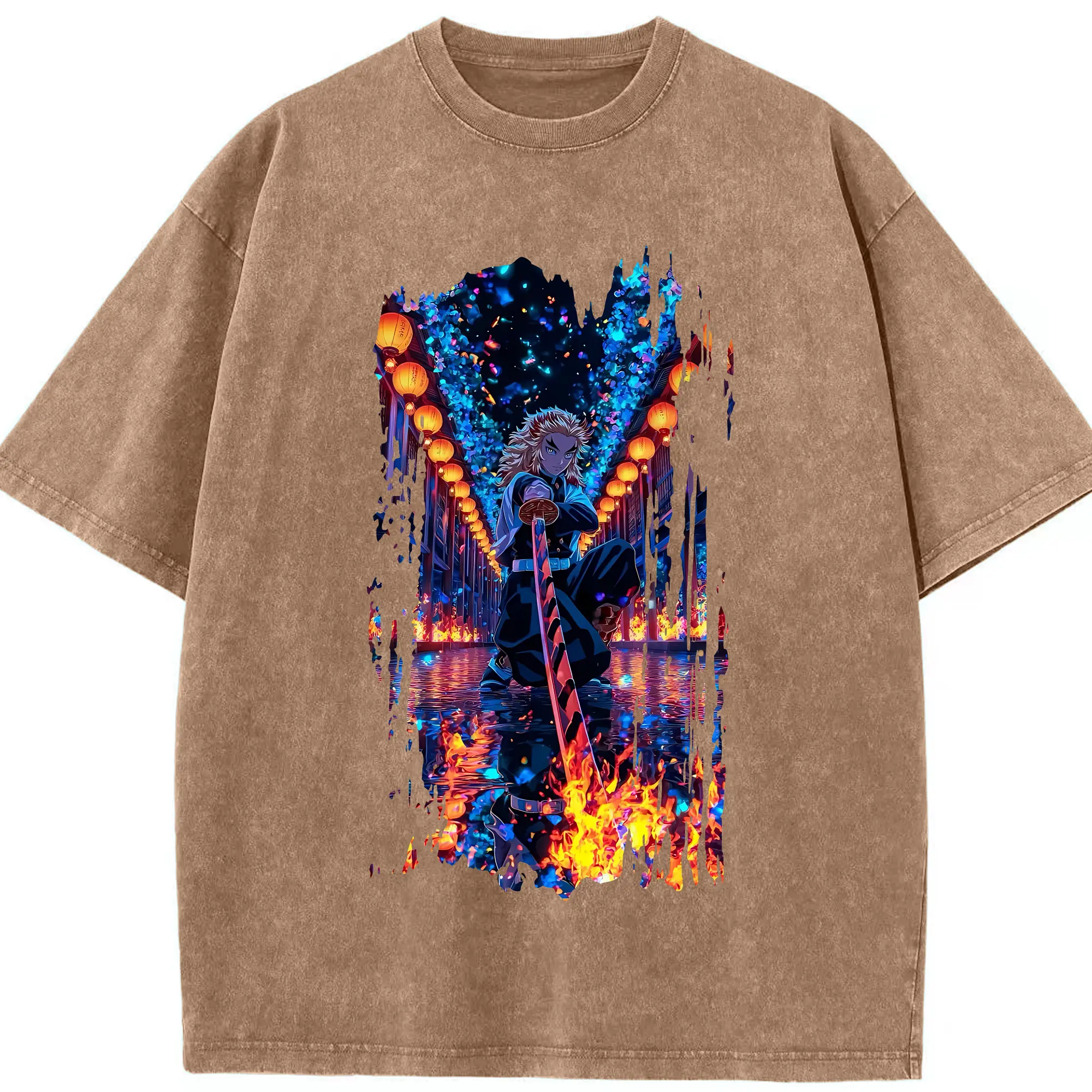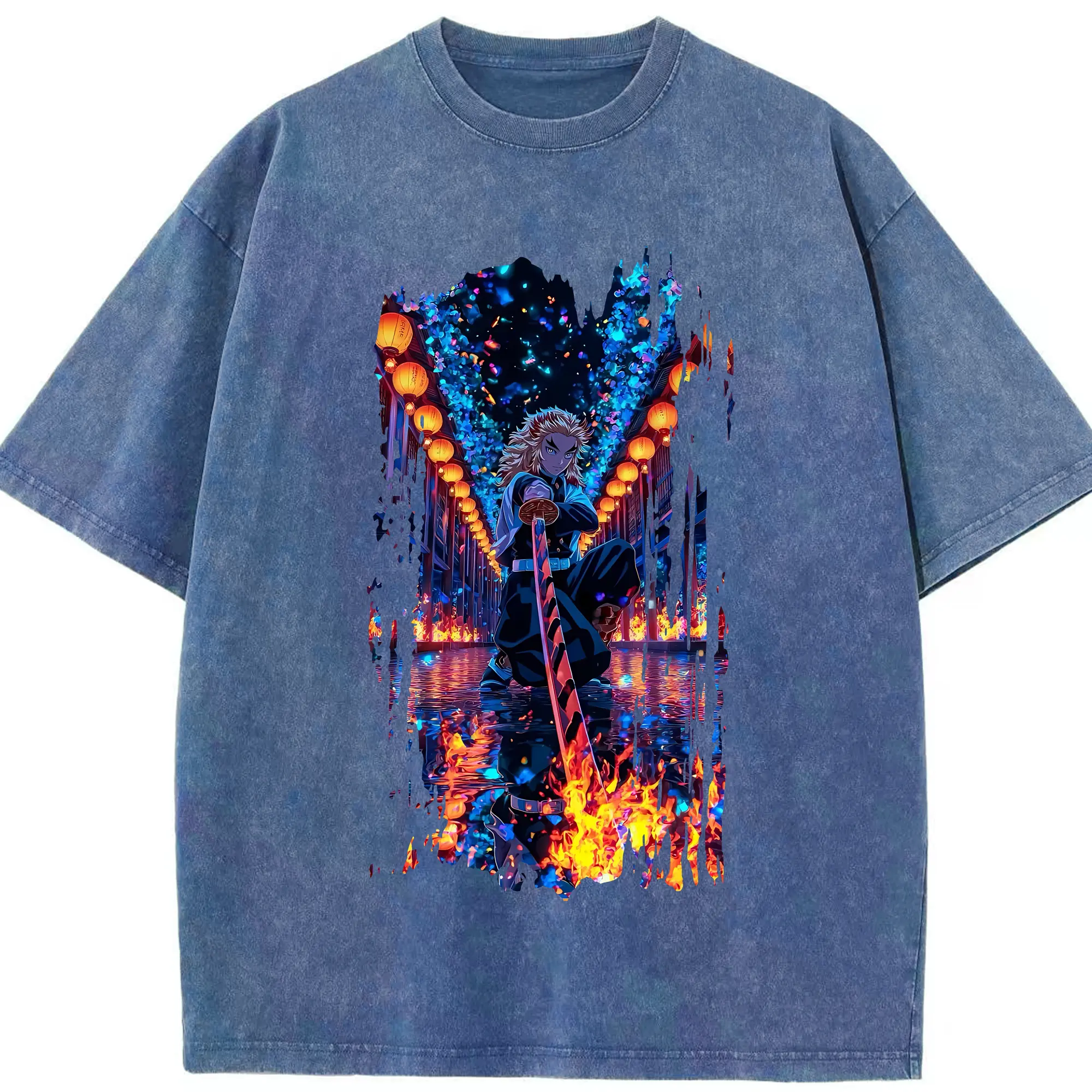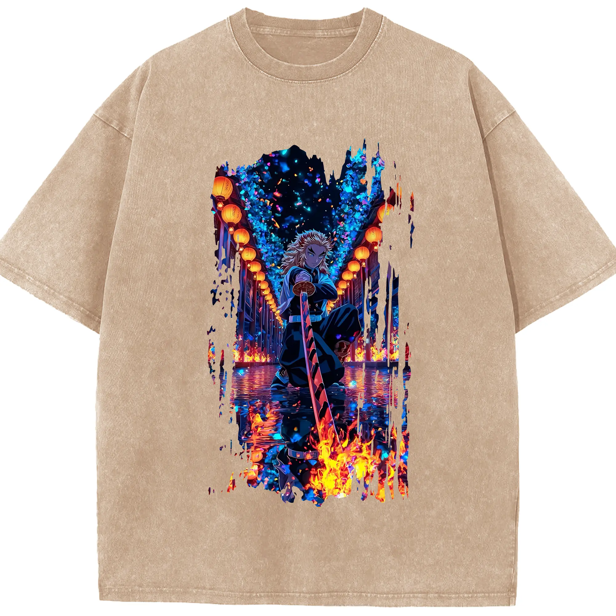 鬼滅の刃 グッズ,煉獄 杏寿郎 - 綿100% 半袖Tシャツ ・ フロントプリント ・ 快適 通気性 ・ 日常使い 散歩 スポーツ用