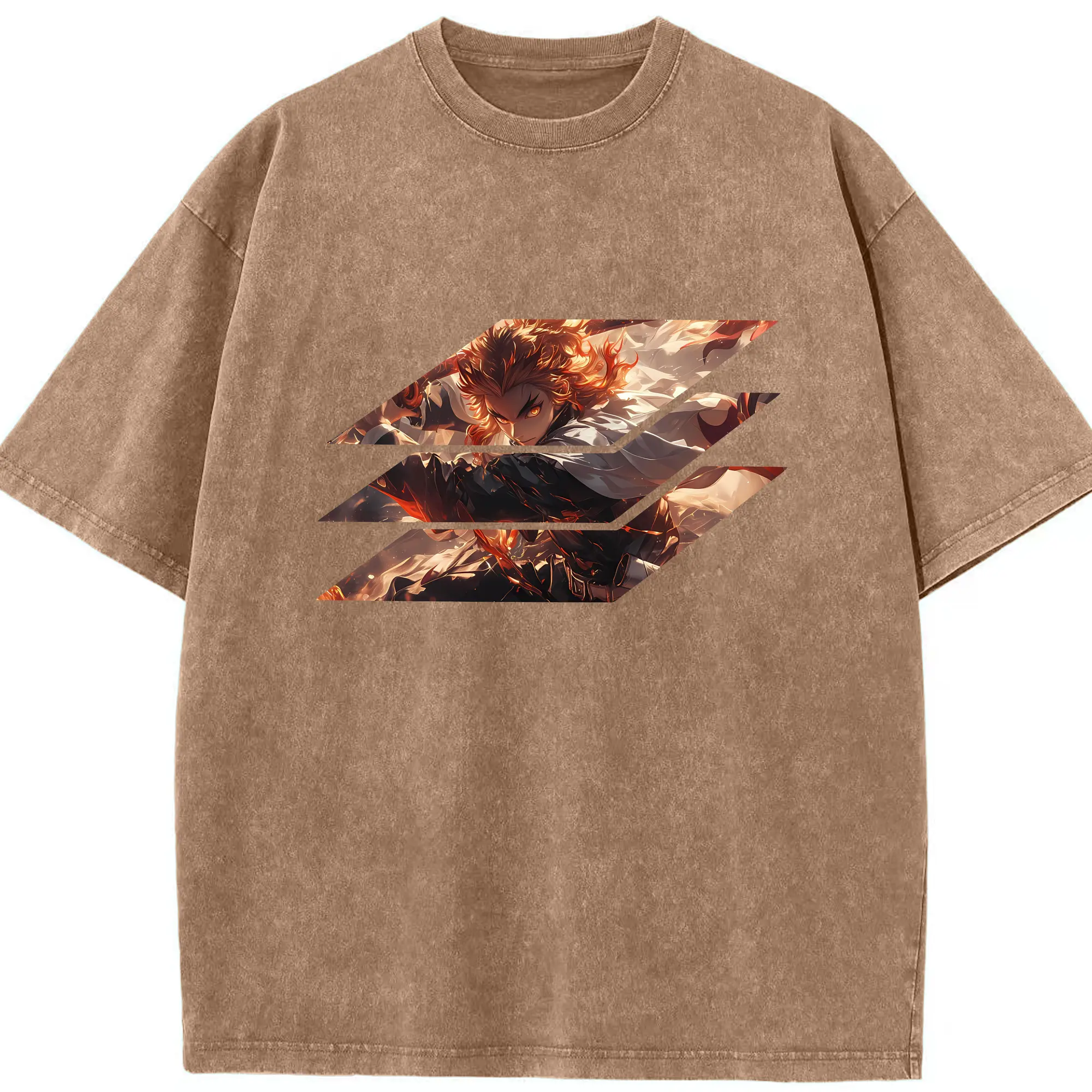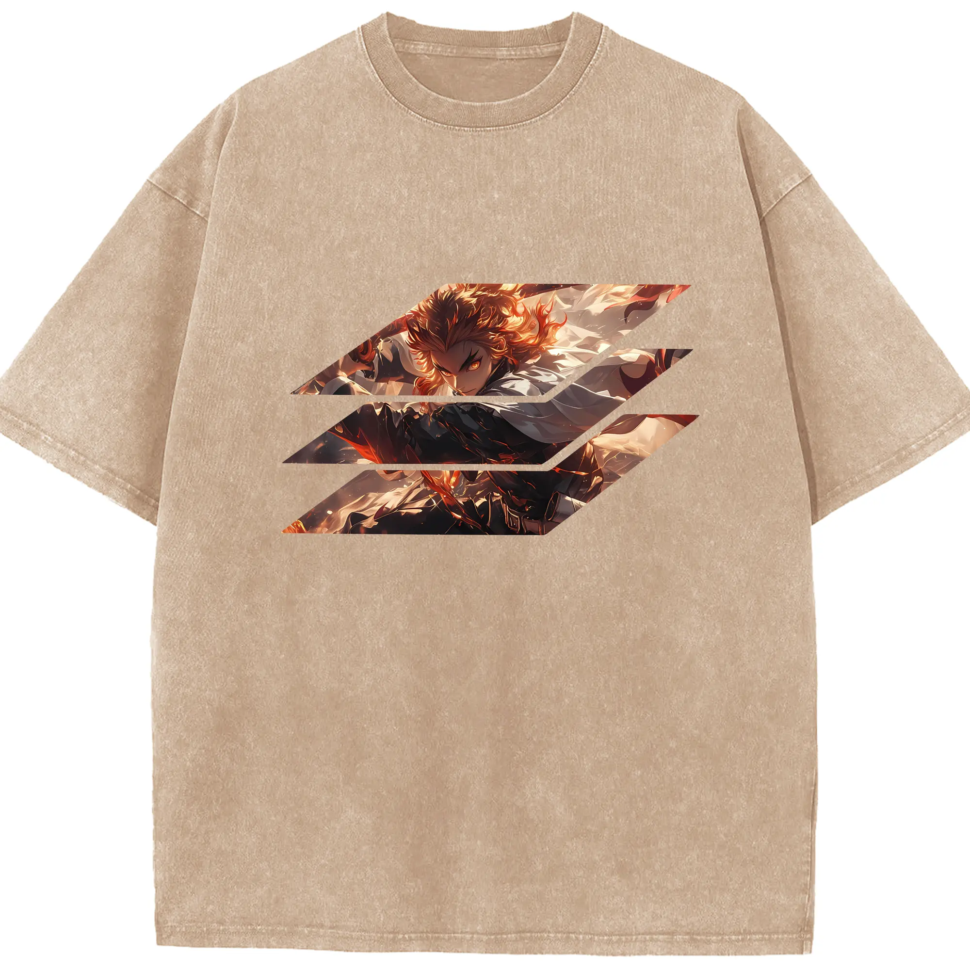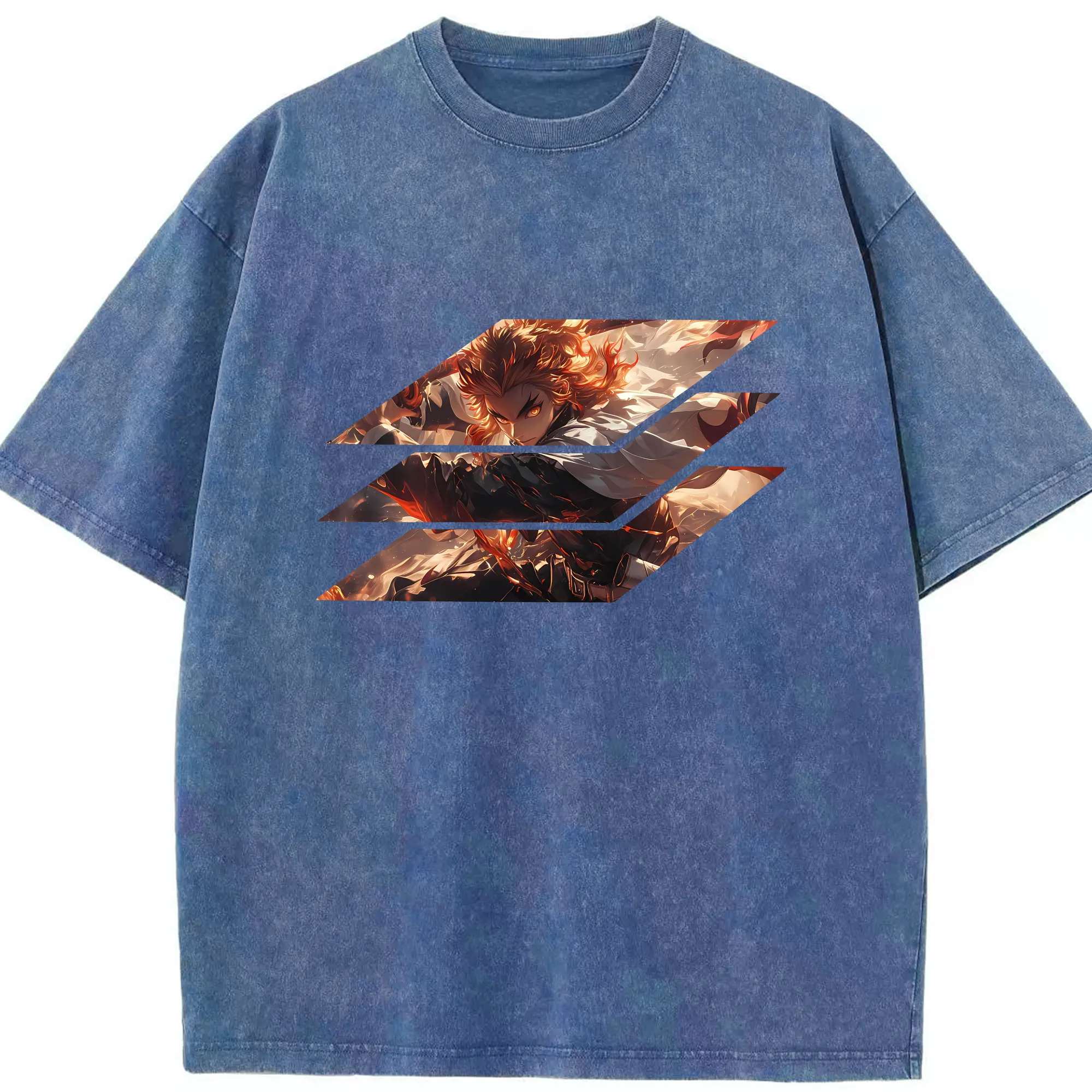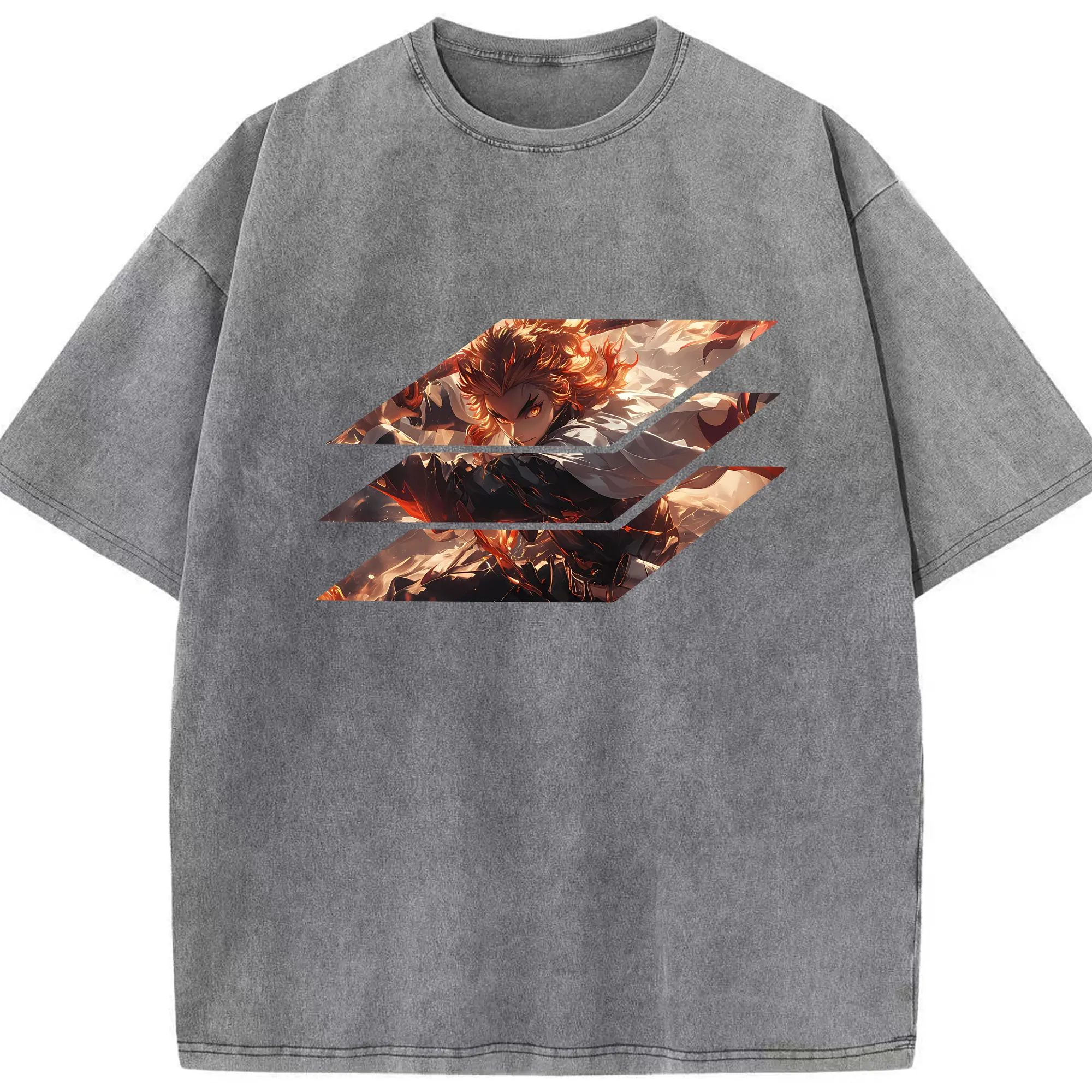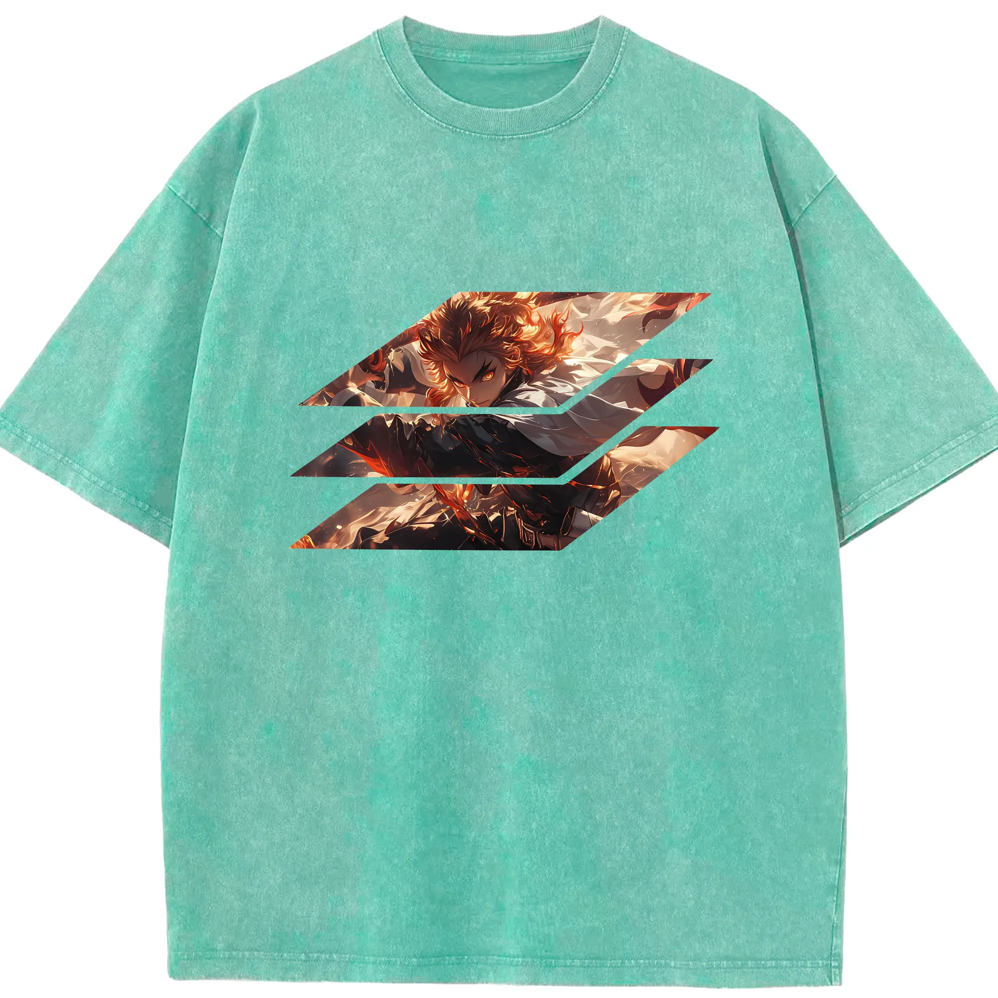 鬼滅の刃 グッズ,煉獄 杏寿郎 - 綿100% 半袖Tシャツ ・ フロントプリント ・ 快適 通気性 ・ 日常使い 散歩 スポーツ用