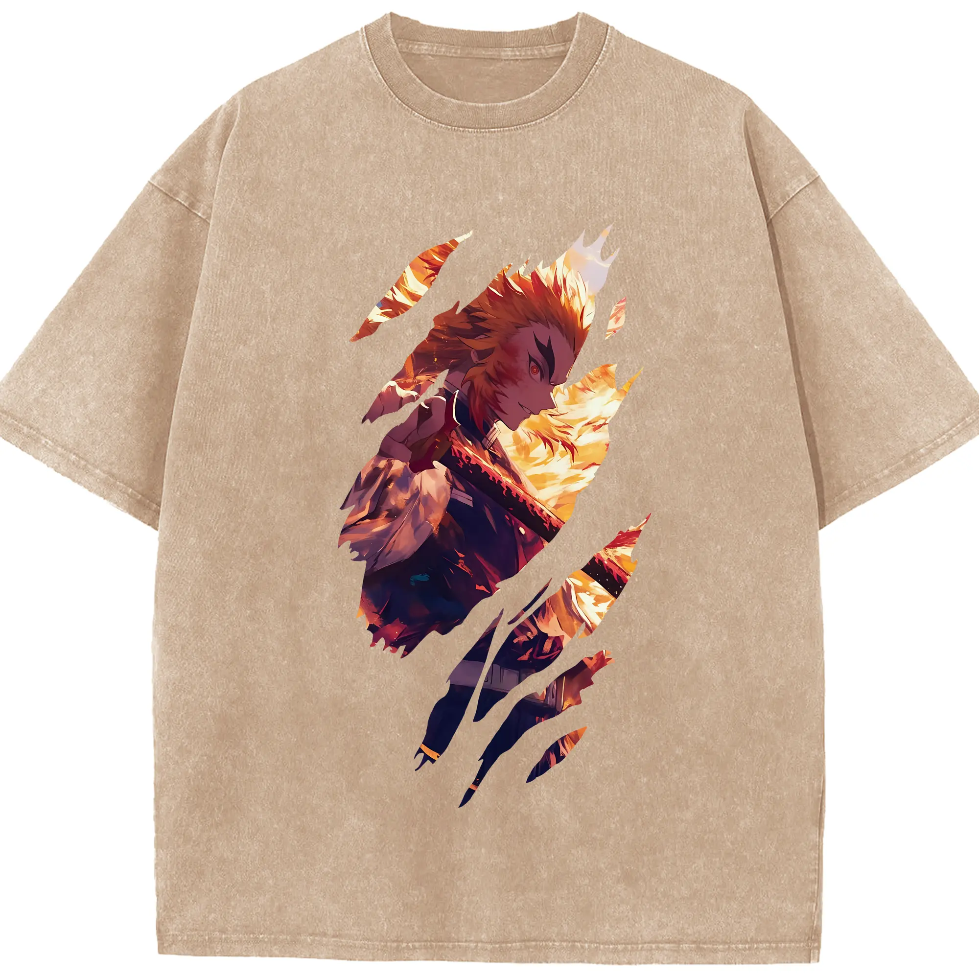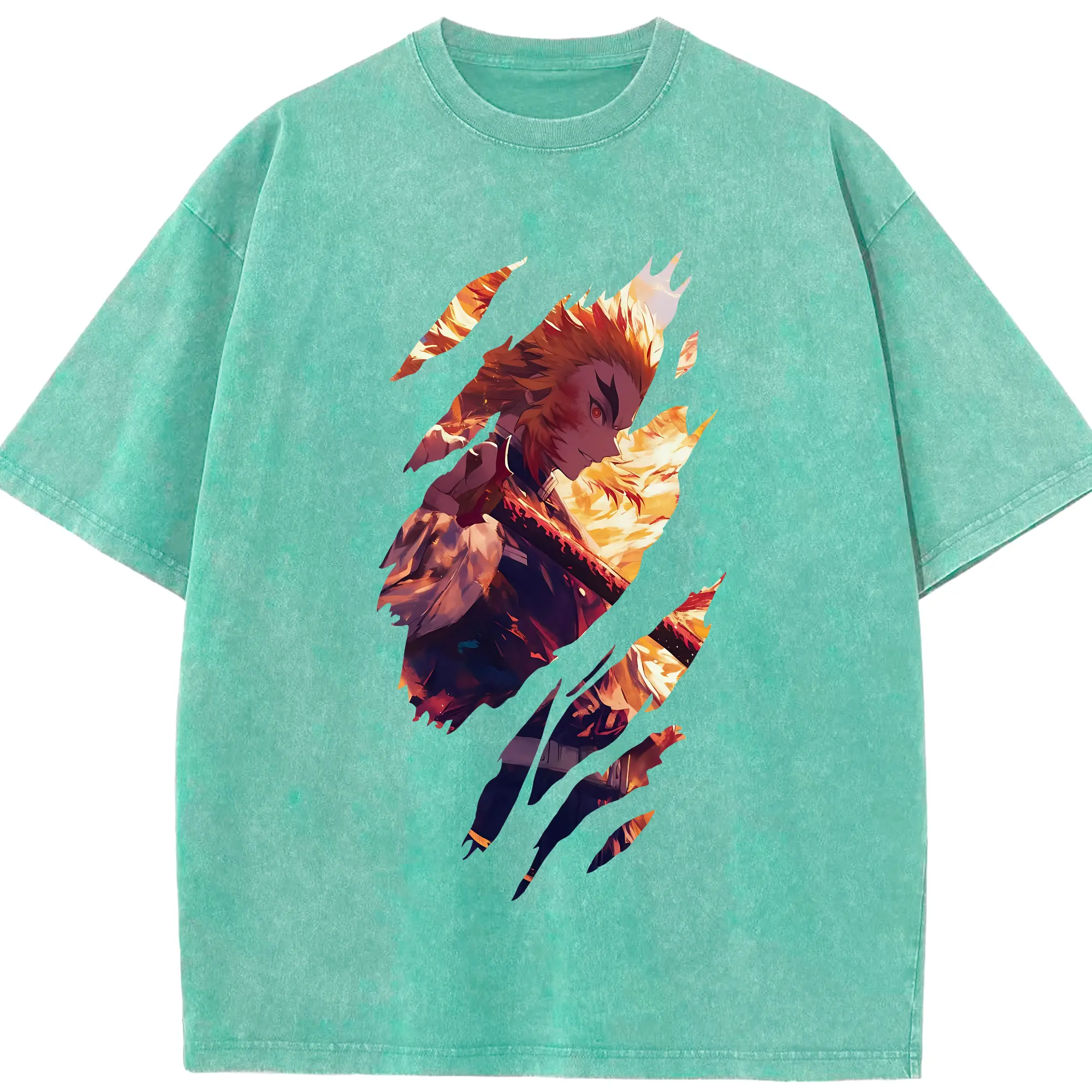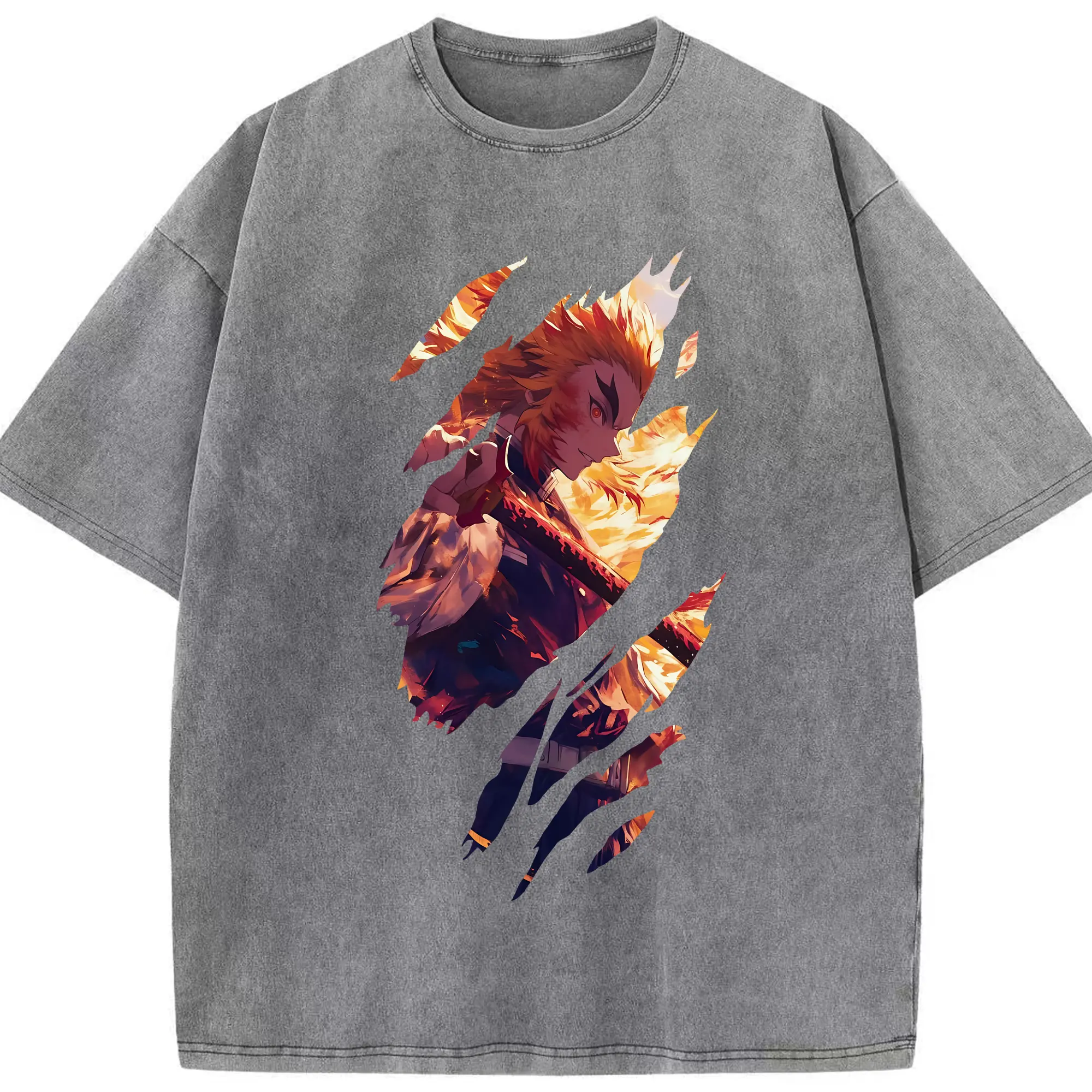 鬼滅の刃 グッズ,煉獄 杏寿郎 - 綿100% 半袖Tシャツ ・ フロントプリント ・ 快適 通気性 ・ 日常使い 散歩 スポーツ用