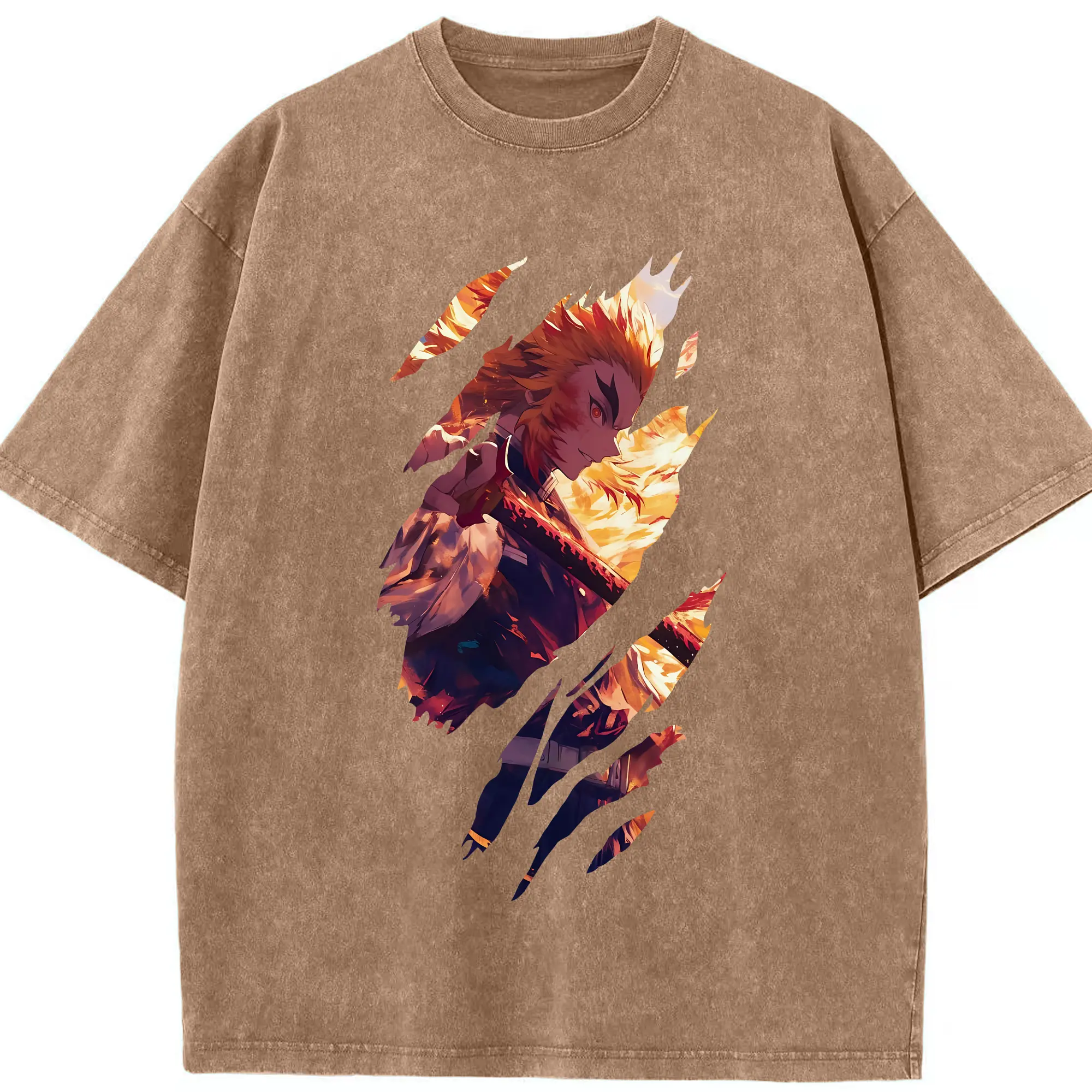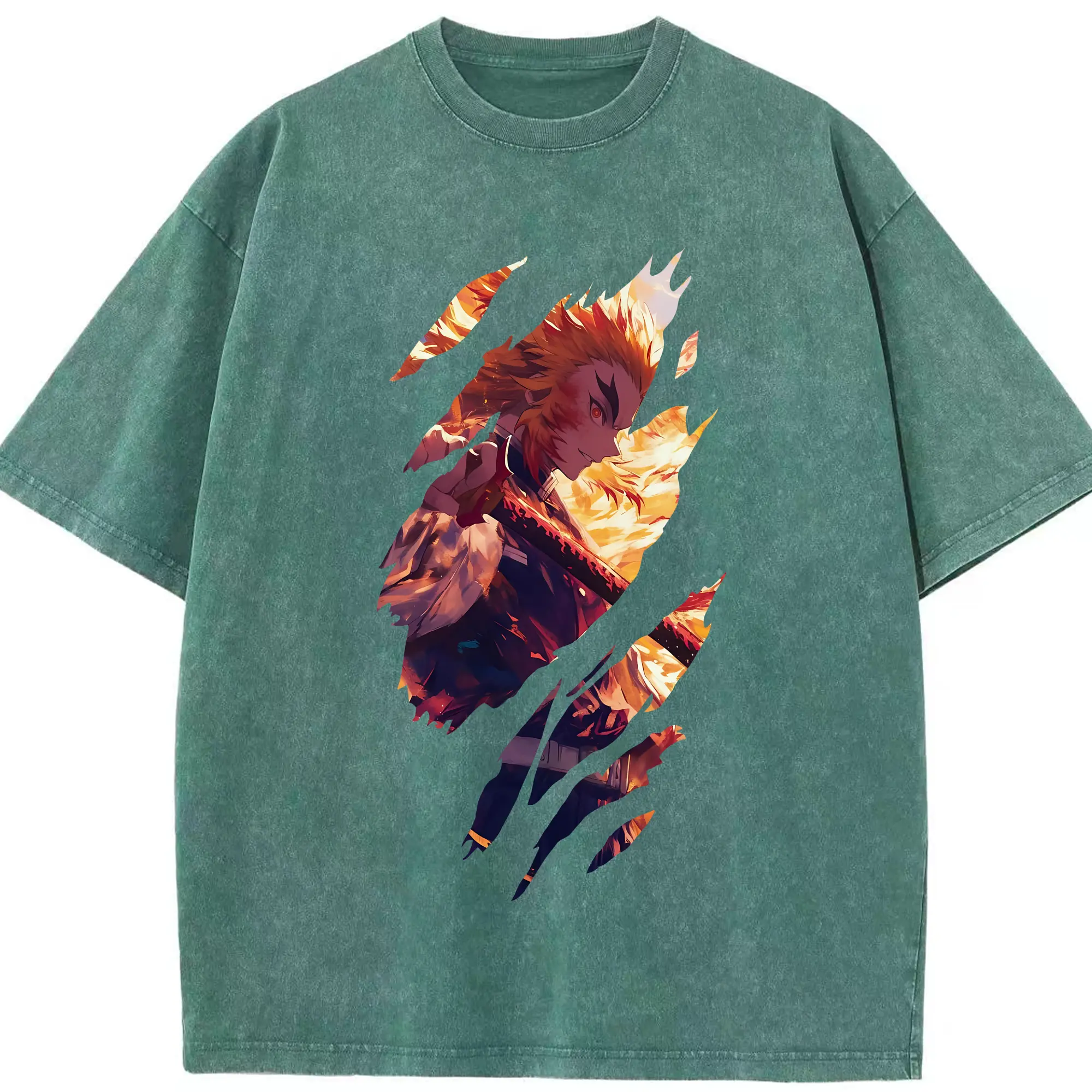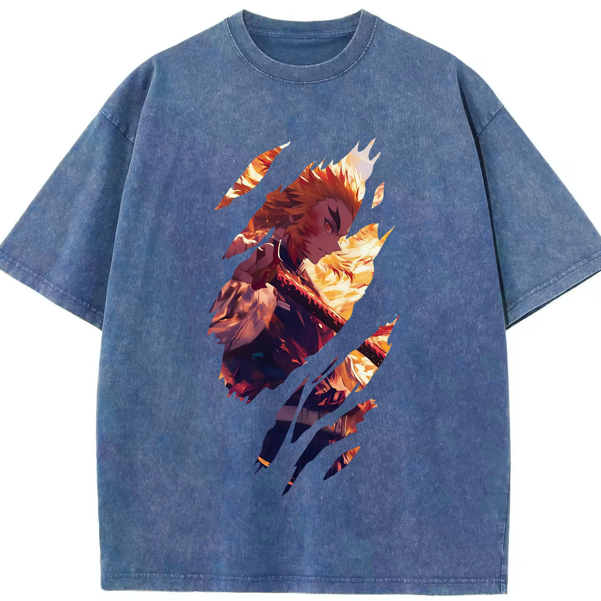 鬼滅の刃 グッズ,煉獄 杏寿郎 - 綿100% 半袖Tシャツ ・ フロントプリント ・ 快適 通気性 ・ 日常使い 散歩 スポーツ用