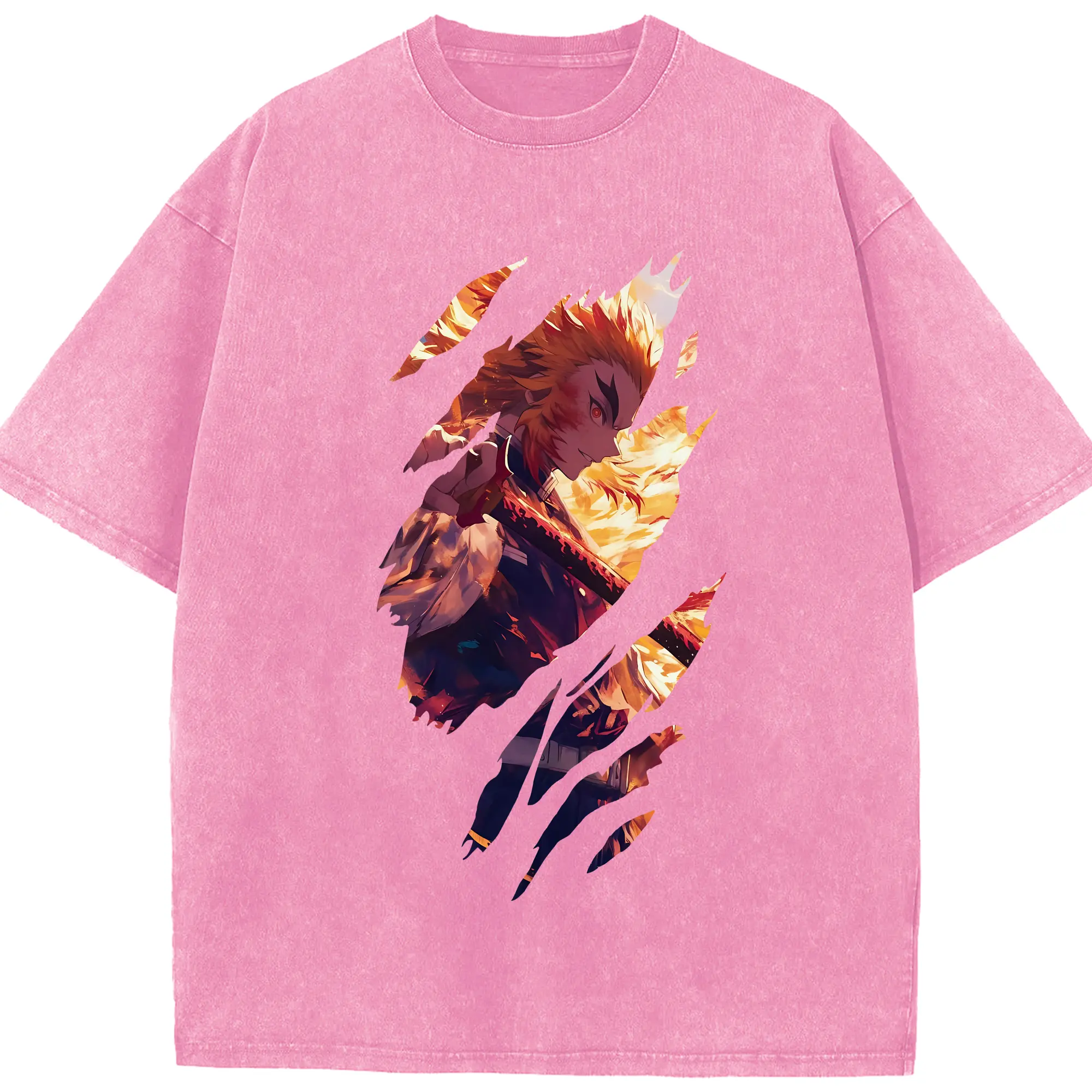 鬼滅の刃 グッズ,煉獄 杏寿郎 - 綿100% キッズTシャツ ・ フロントプリント ・ 快適 通気性 ・ スポーツ カジュアル 散歩用