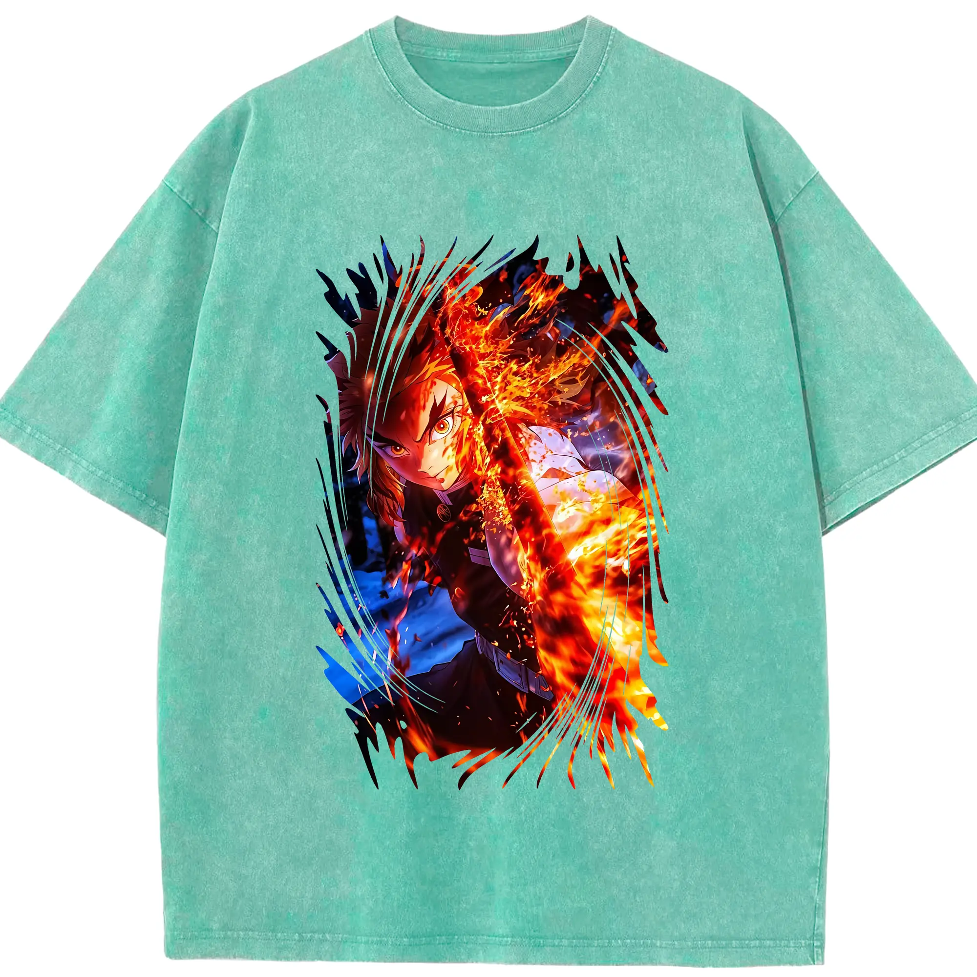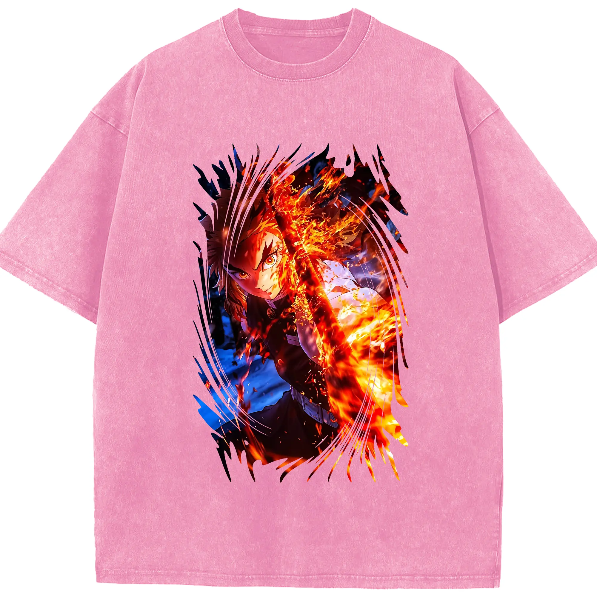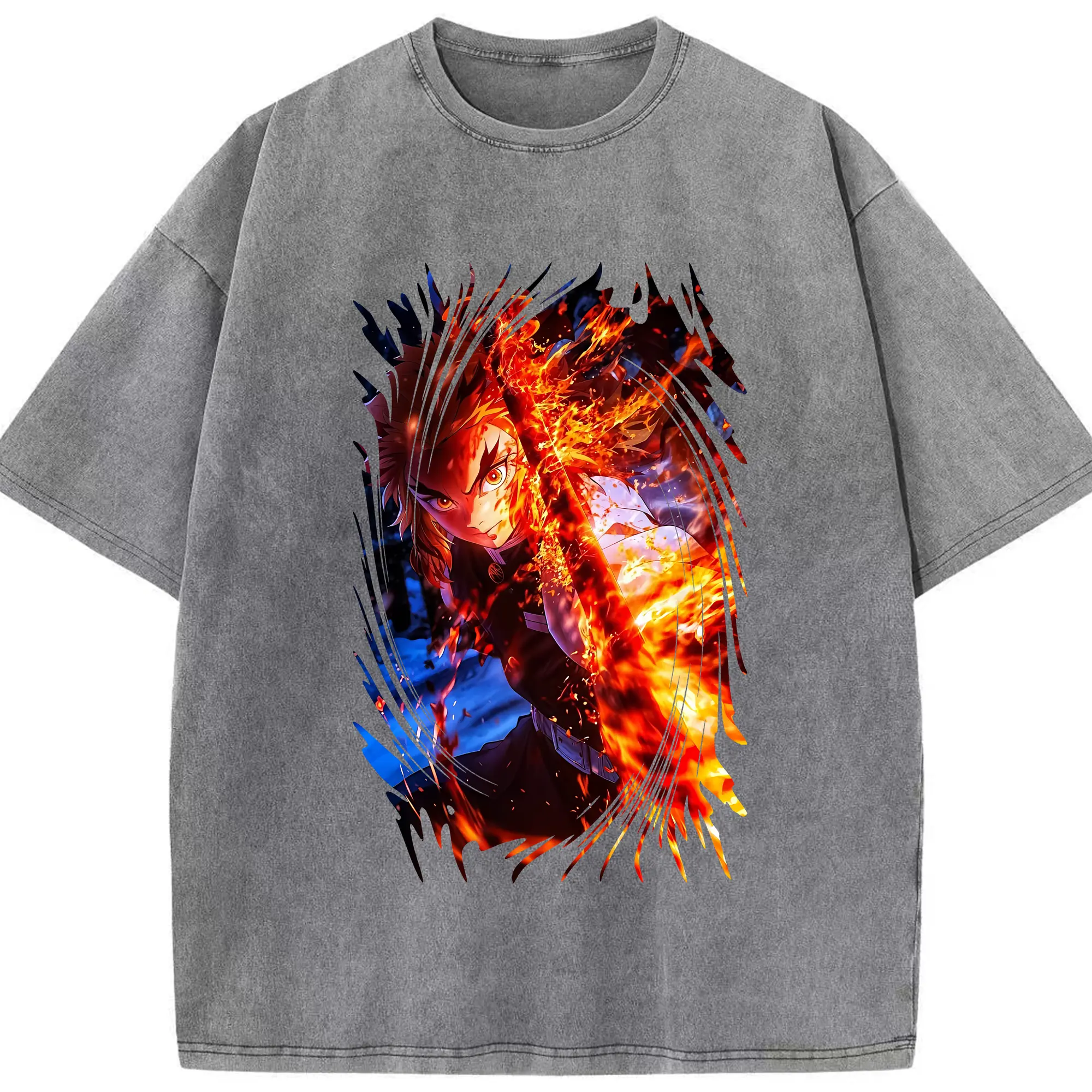鬼滅の刃 グッズ,煉獄 杏寿郎 - 綿100% 半袖Tシャツ ・ フロントプリント ・ 快適 通気性 ・ 日常使い 散歩 スポーツ用
