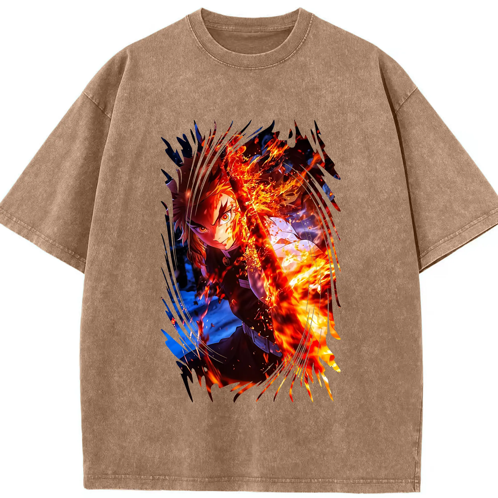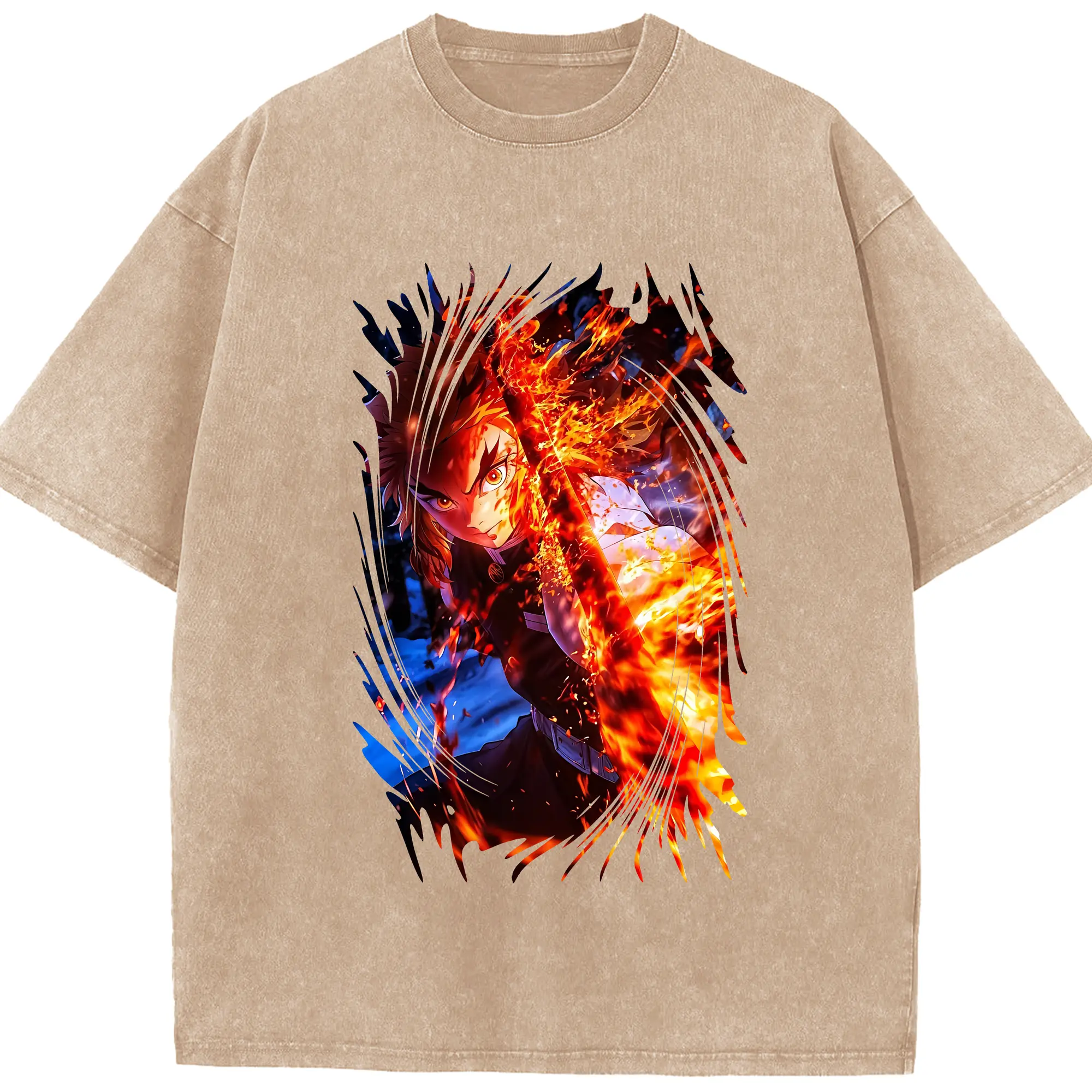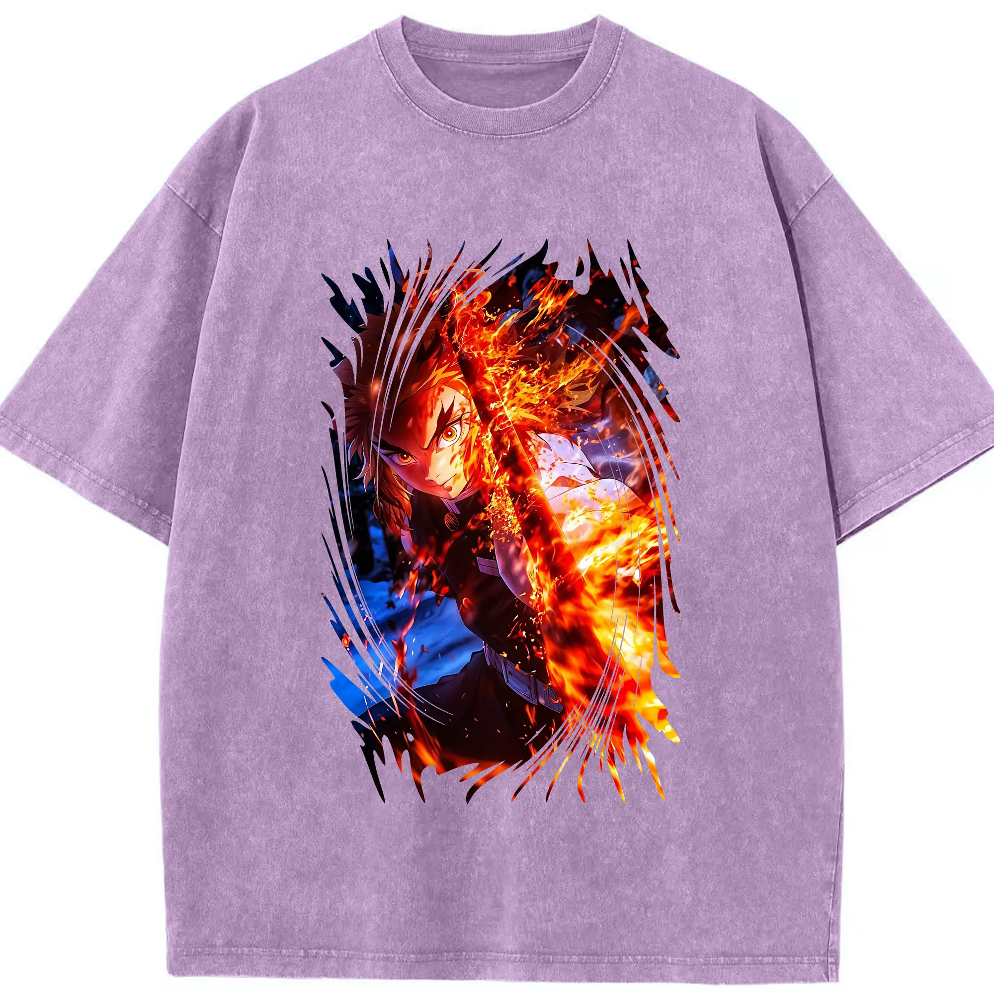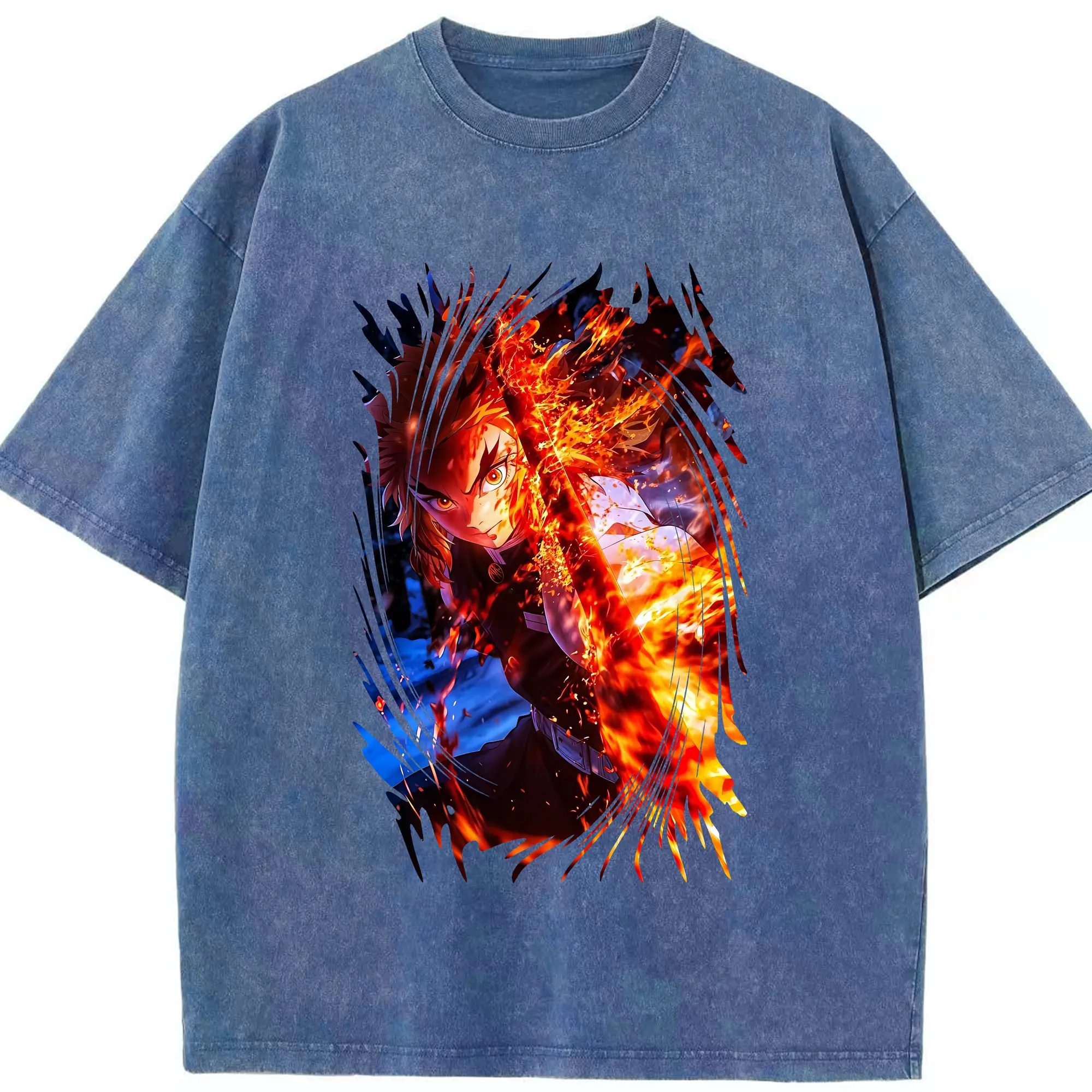 鬼滅の刃 グッズ,煉獄 杏寿郎 - 綿100% 半袖Tシャツ ・ フロントプリント ・ 快適 通気性 ・ 日常使い 散歩 スポーツ用