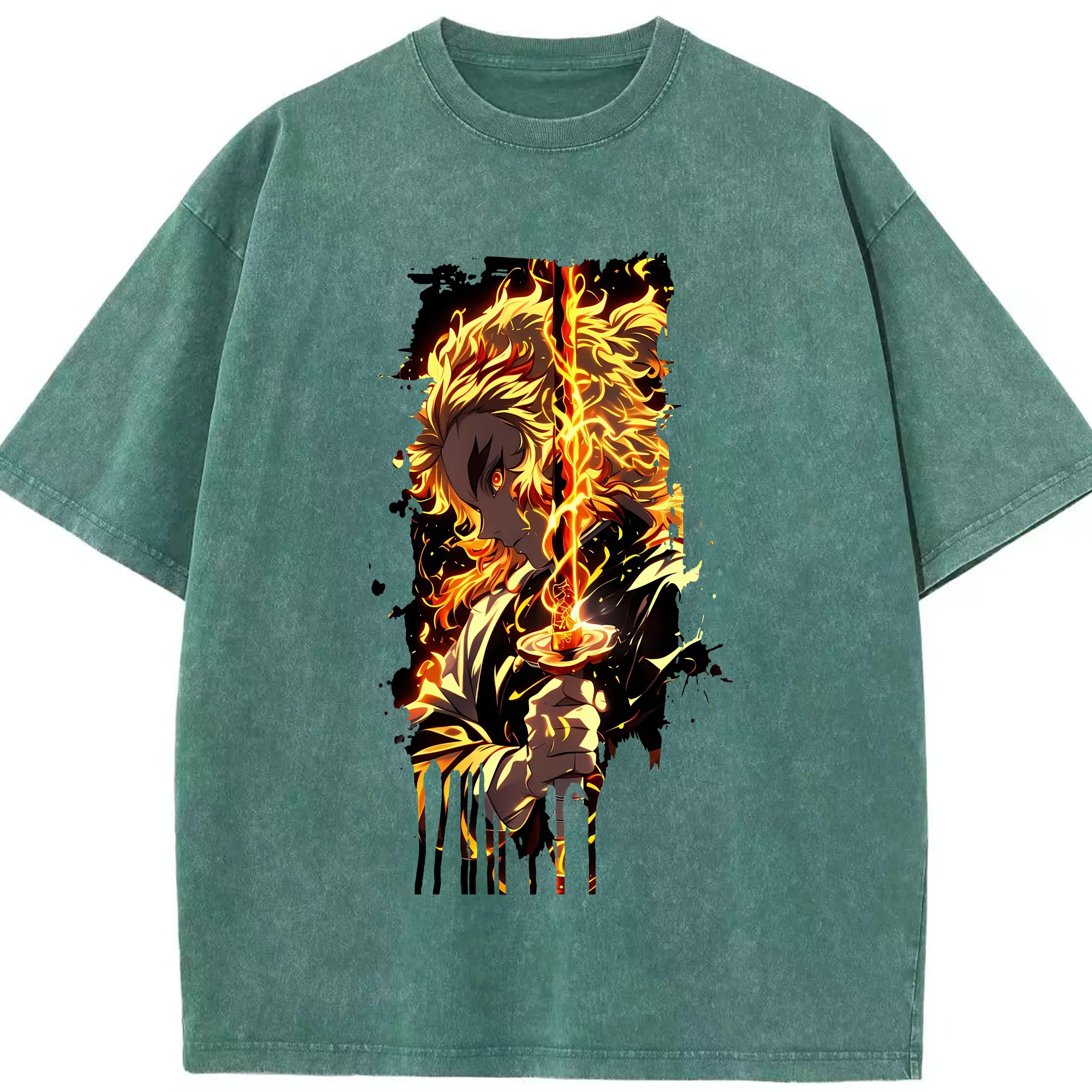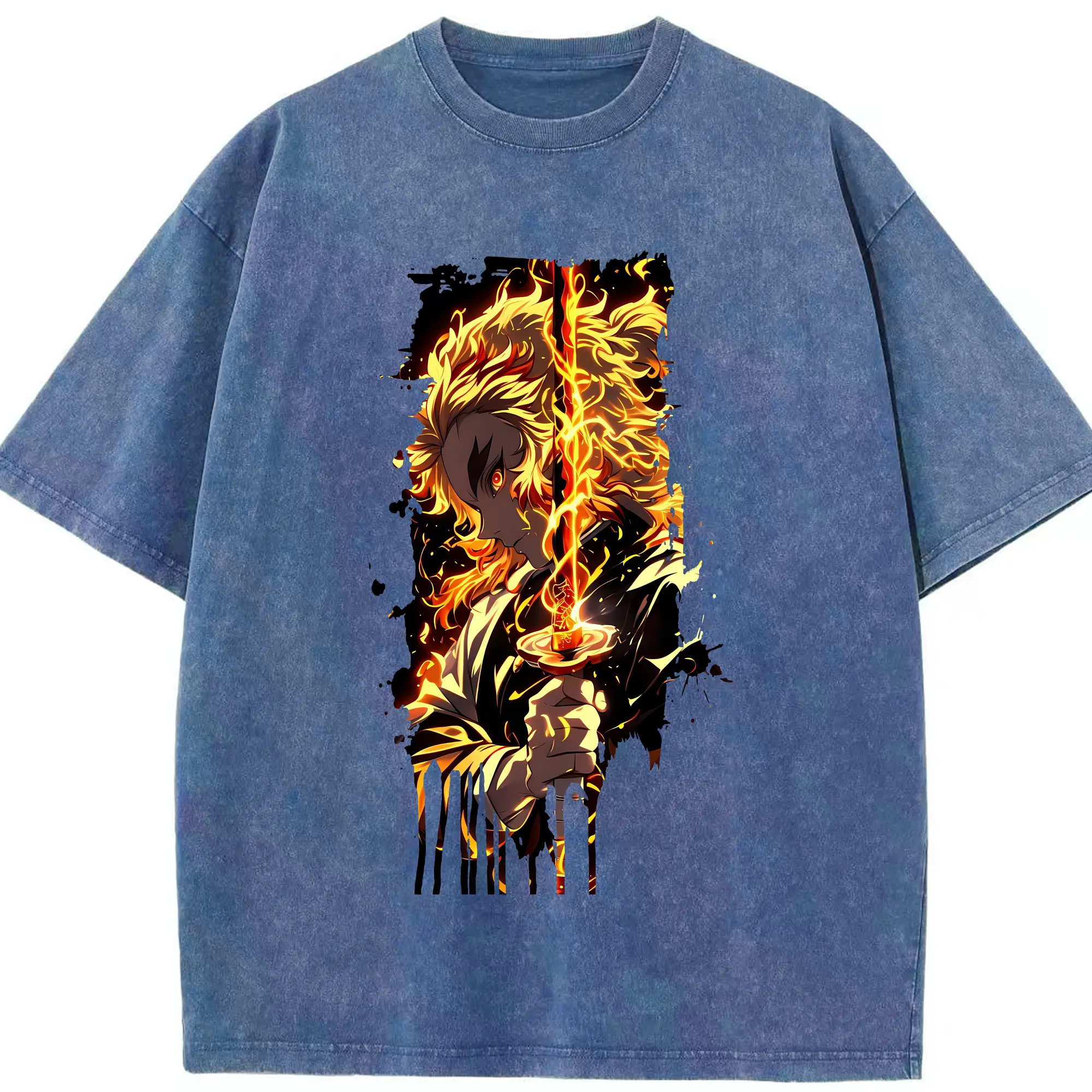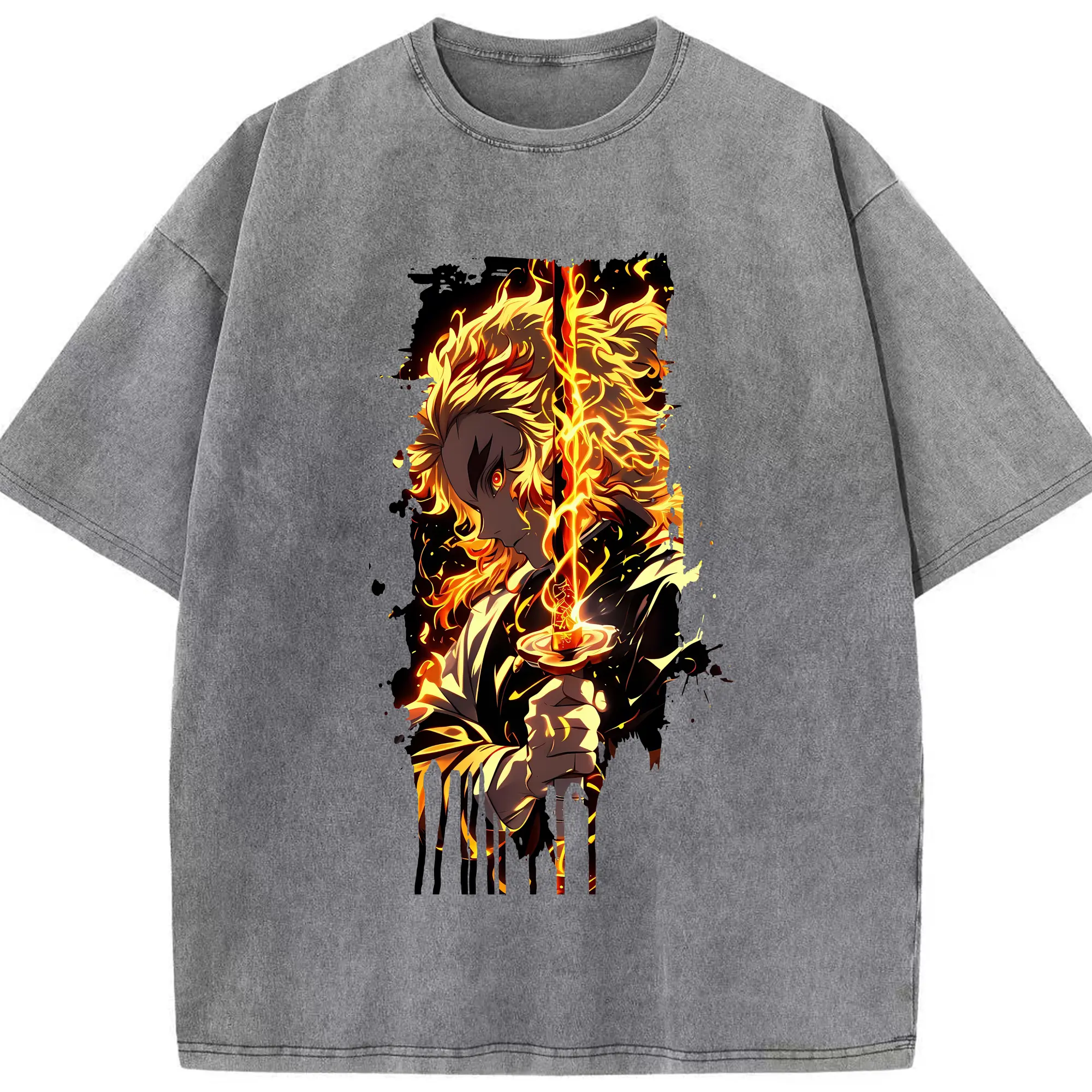 鬼滅の刃 グッズ,煉獄 杏寿郎 - 綿100% 半袖Tシャツ ・ フロントプリント ・ 快適 通気性 ・ 日常使い 散歩 スポーツ用