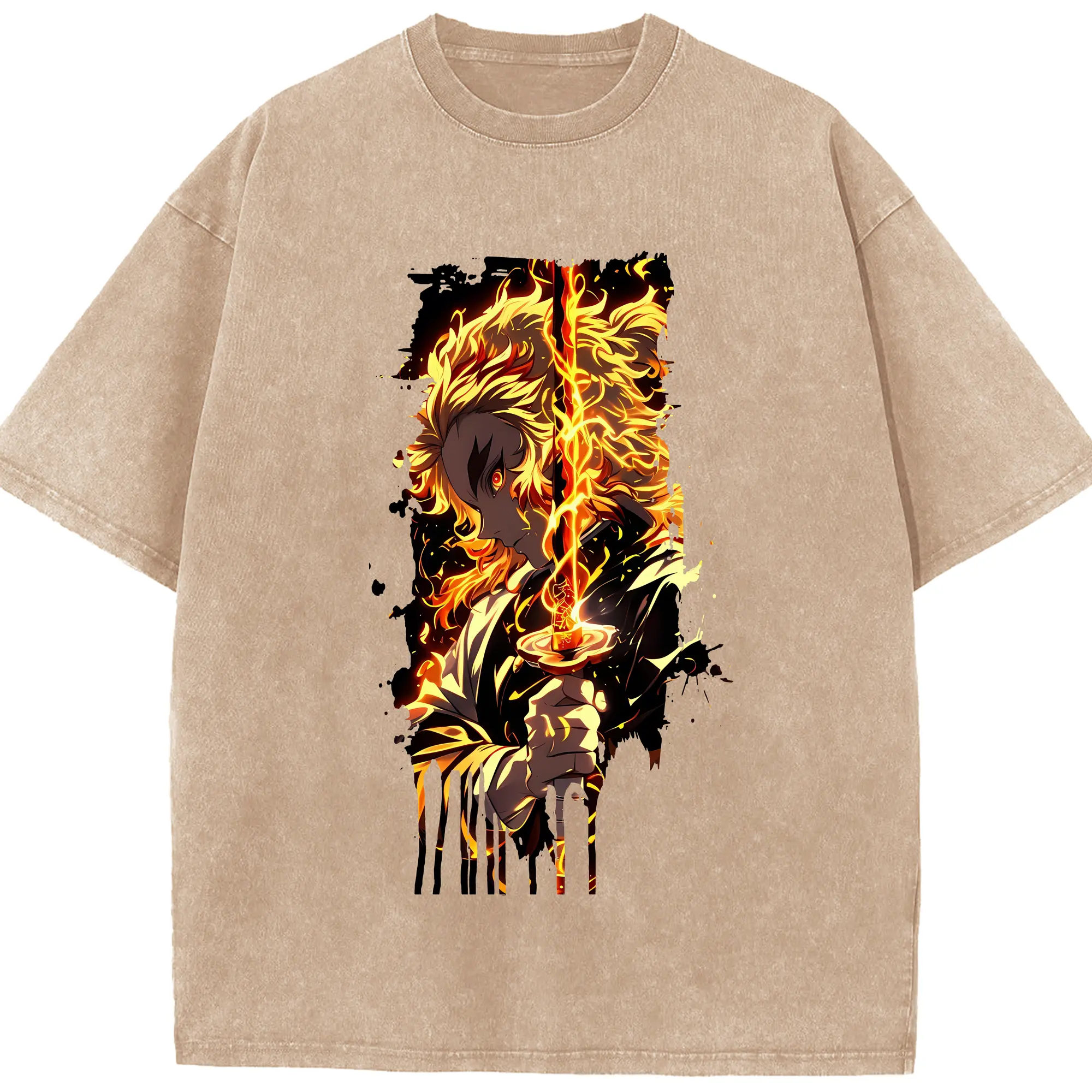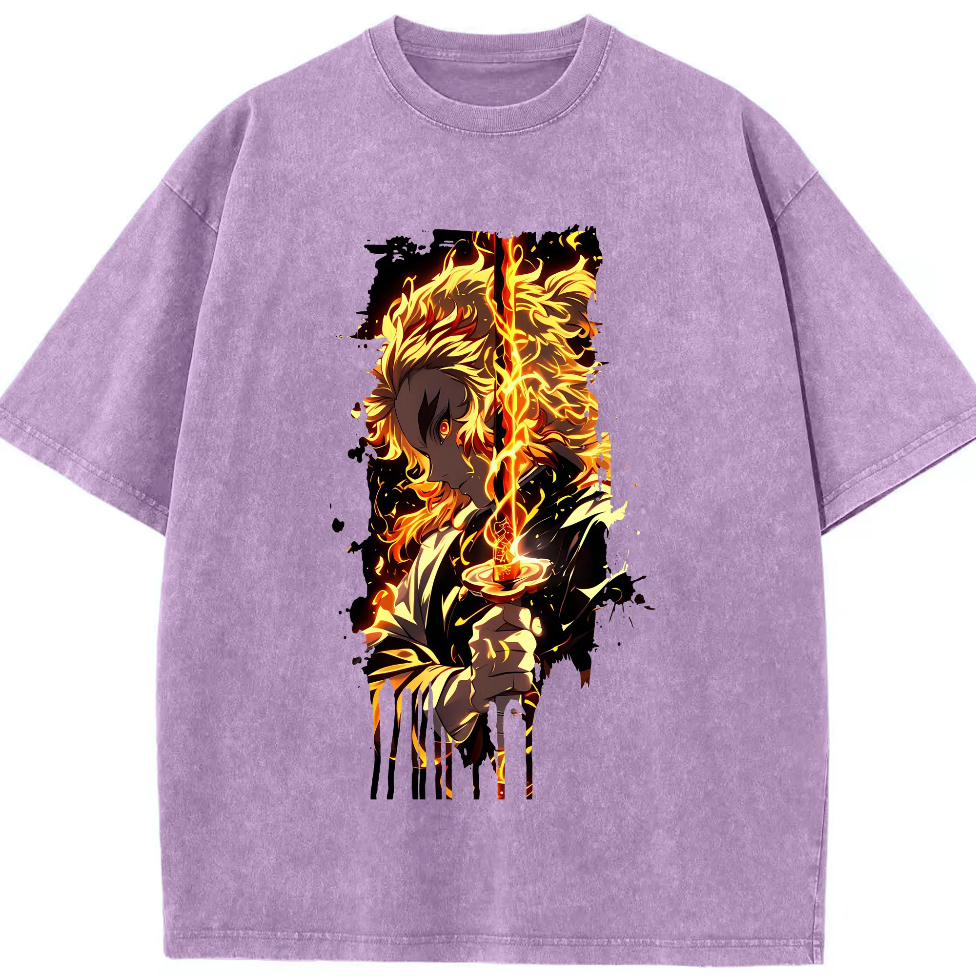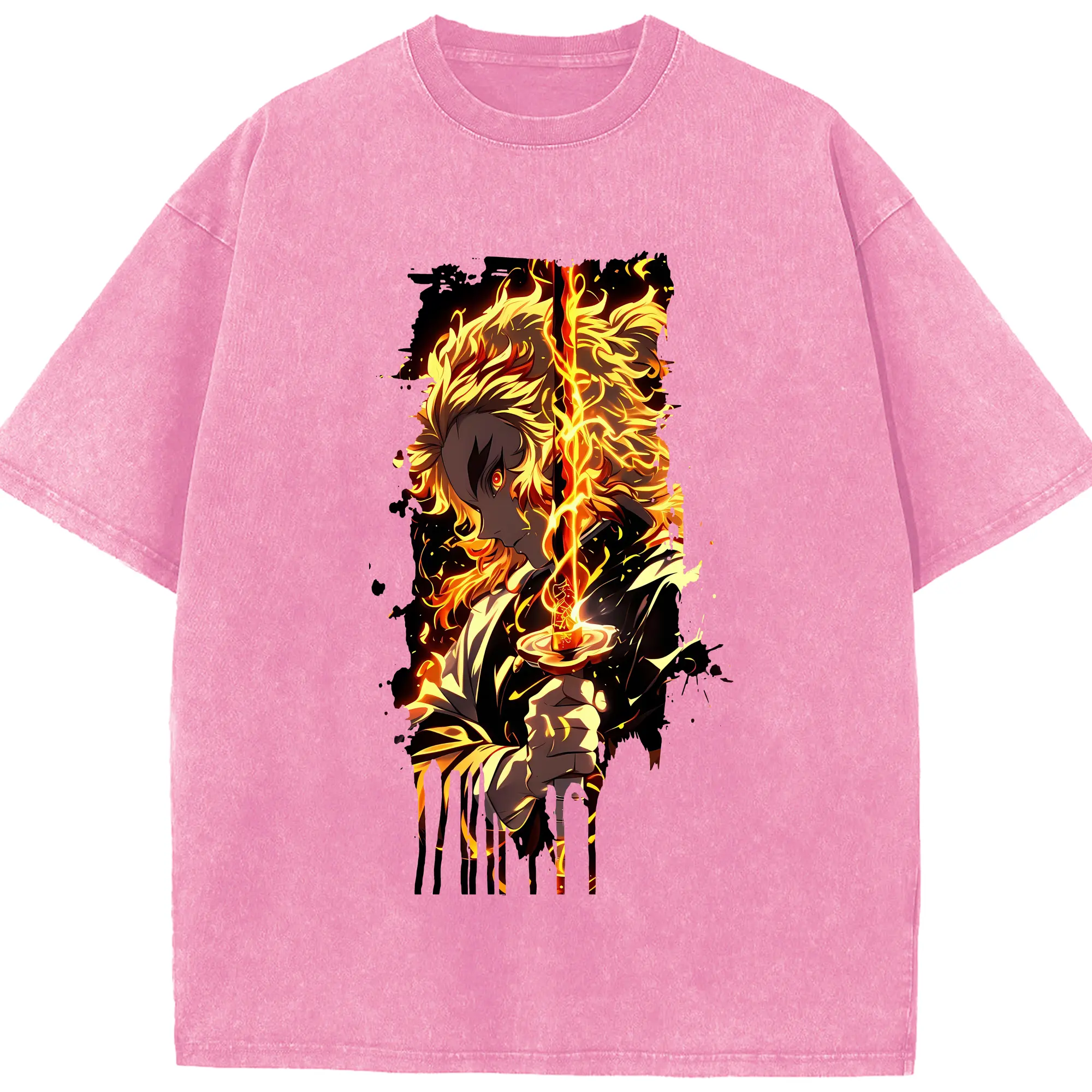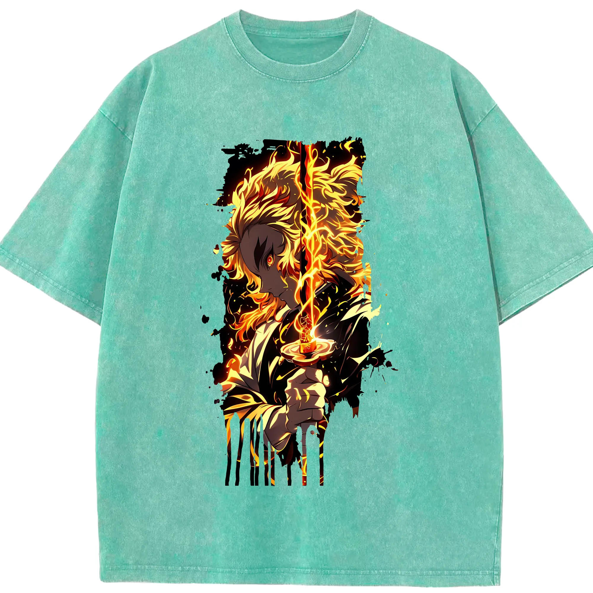 鬼滅の刃 グッズ,煉獄 杏寿郎 - 綿100% 半袖Tシャツ ・ フロントプリント ・ 快適 通気性 ・ 日常使い 散歩 スポーツ用