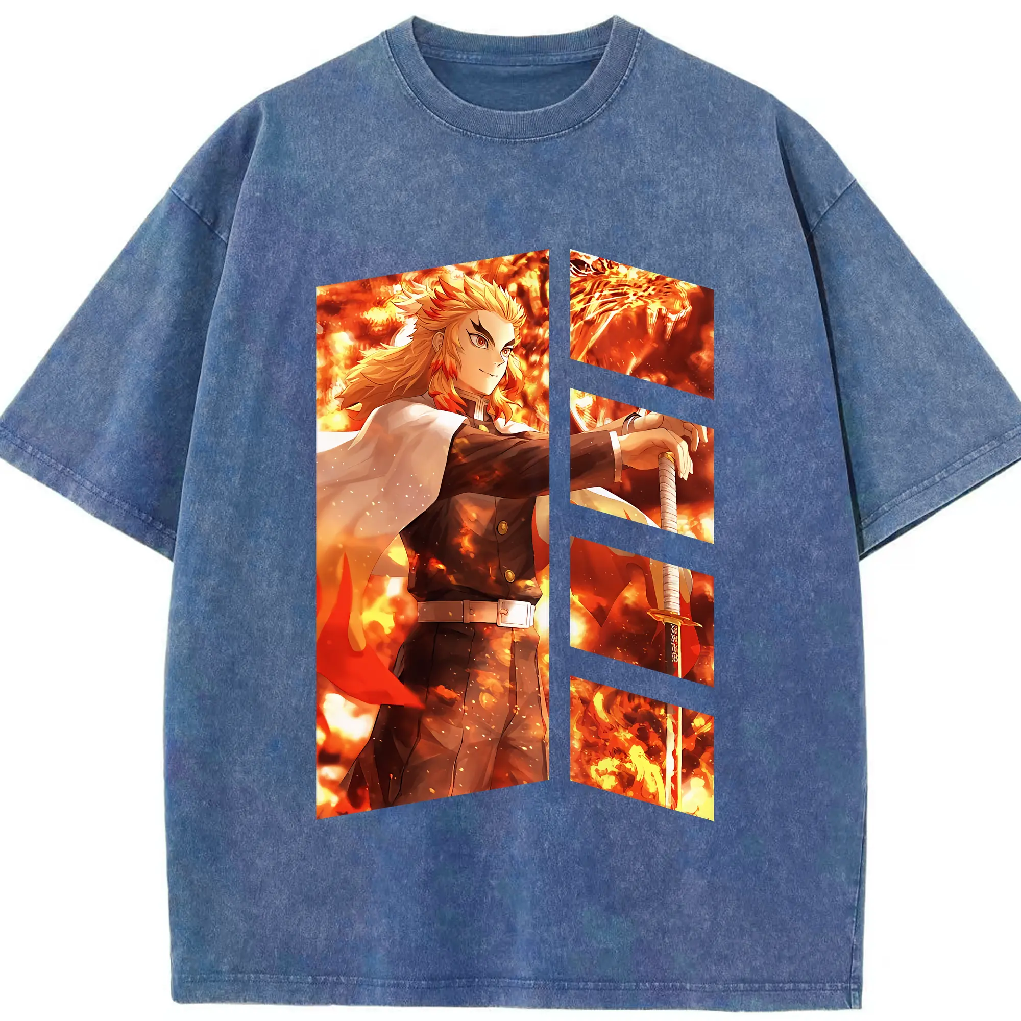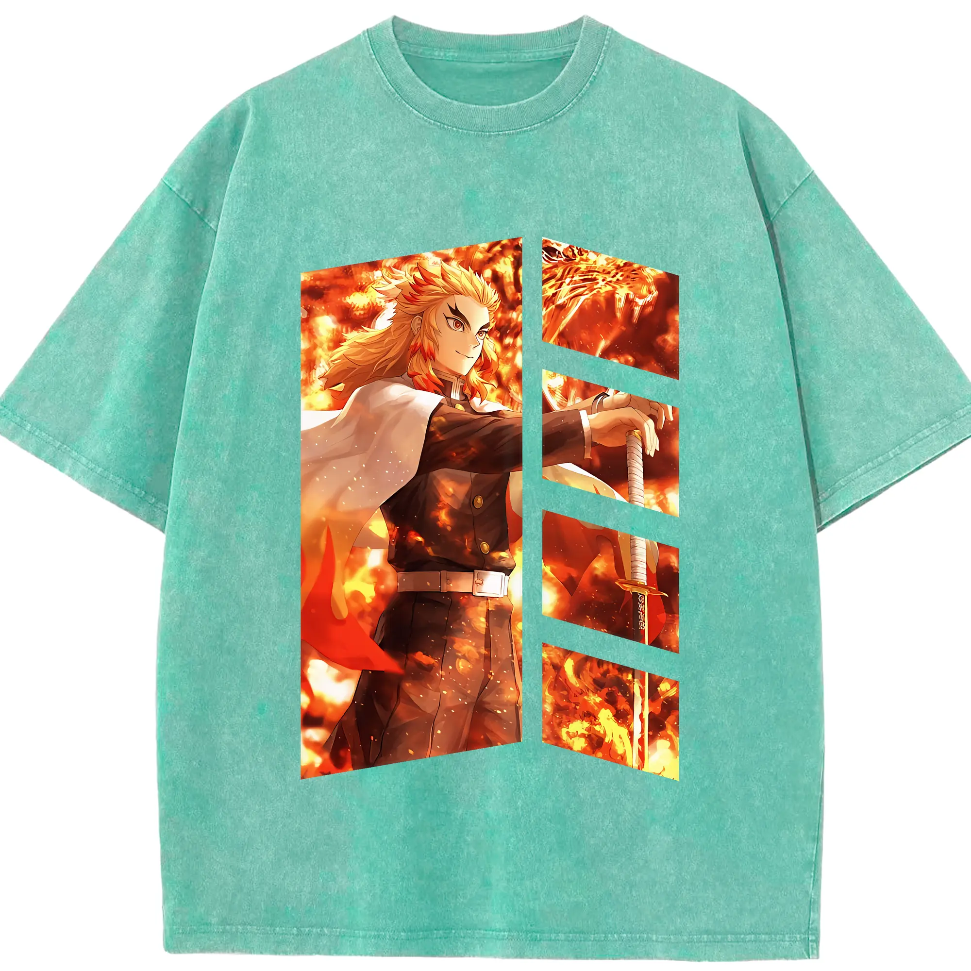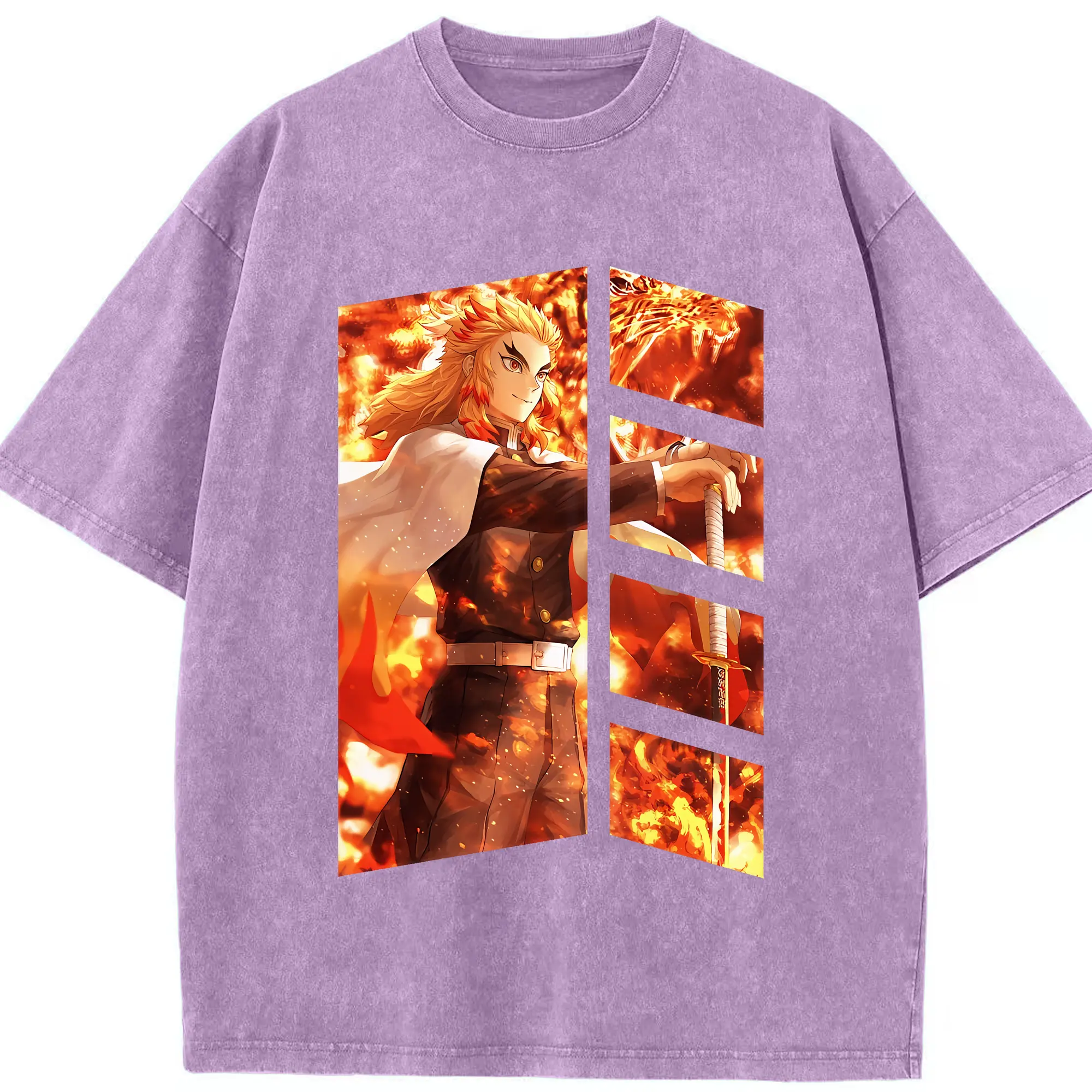 鬼滅の刃 グッズ,煉獄 杏寿郎 - 綿100% 半袖Tシャツ ・ フロントプリント ・ 快適 通気性 ・ 日常使い 散歩 スポーツ用