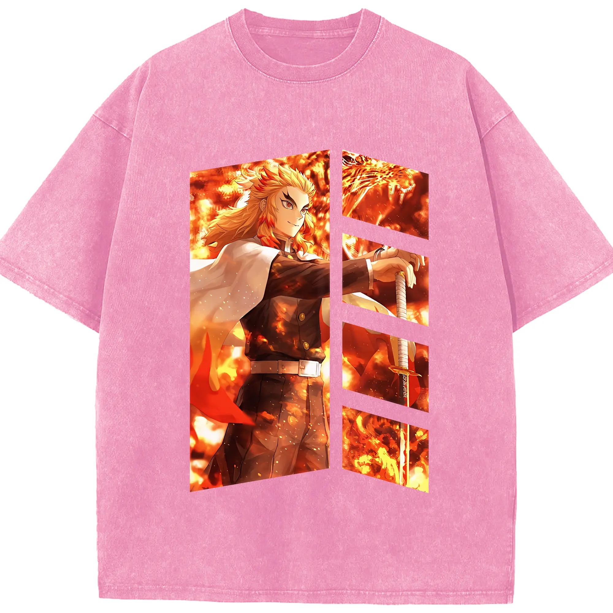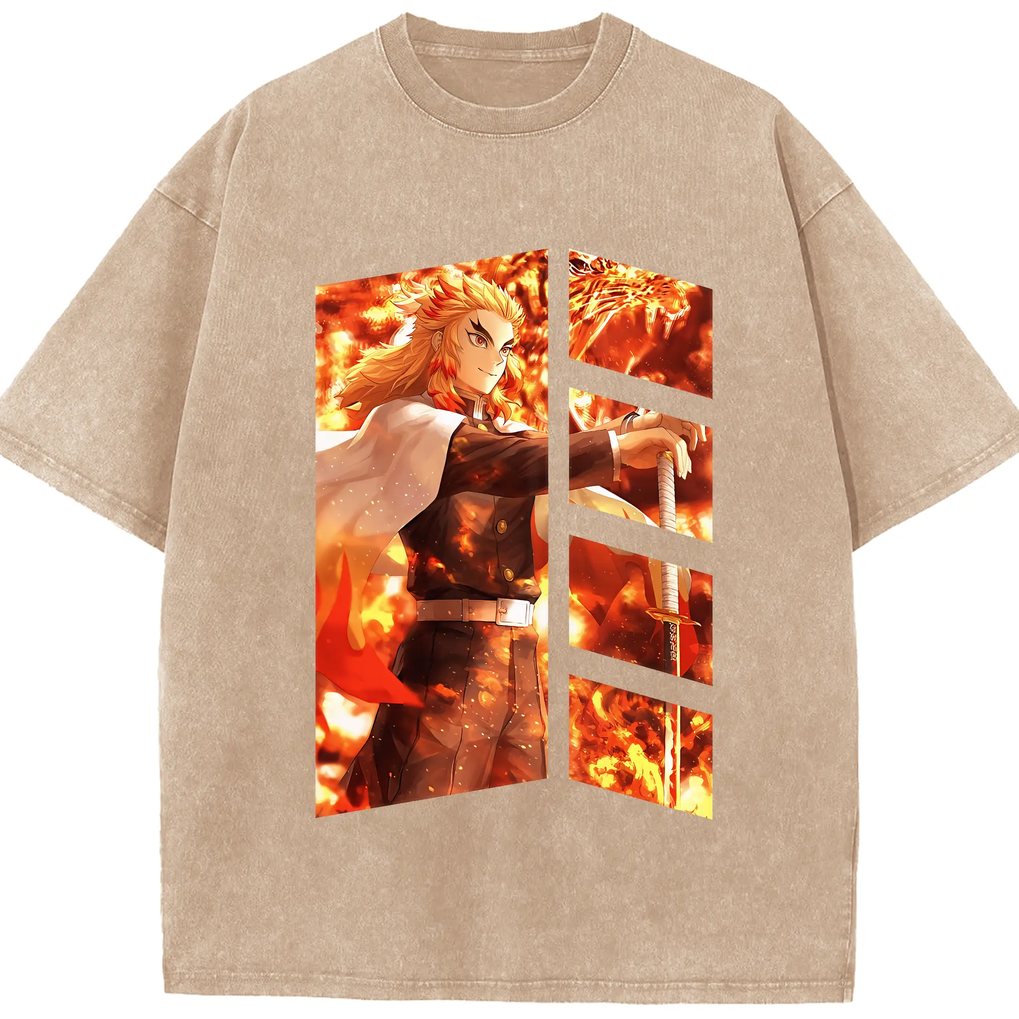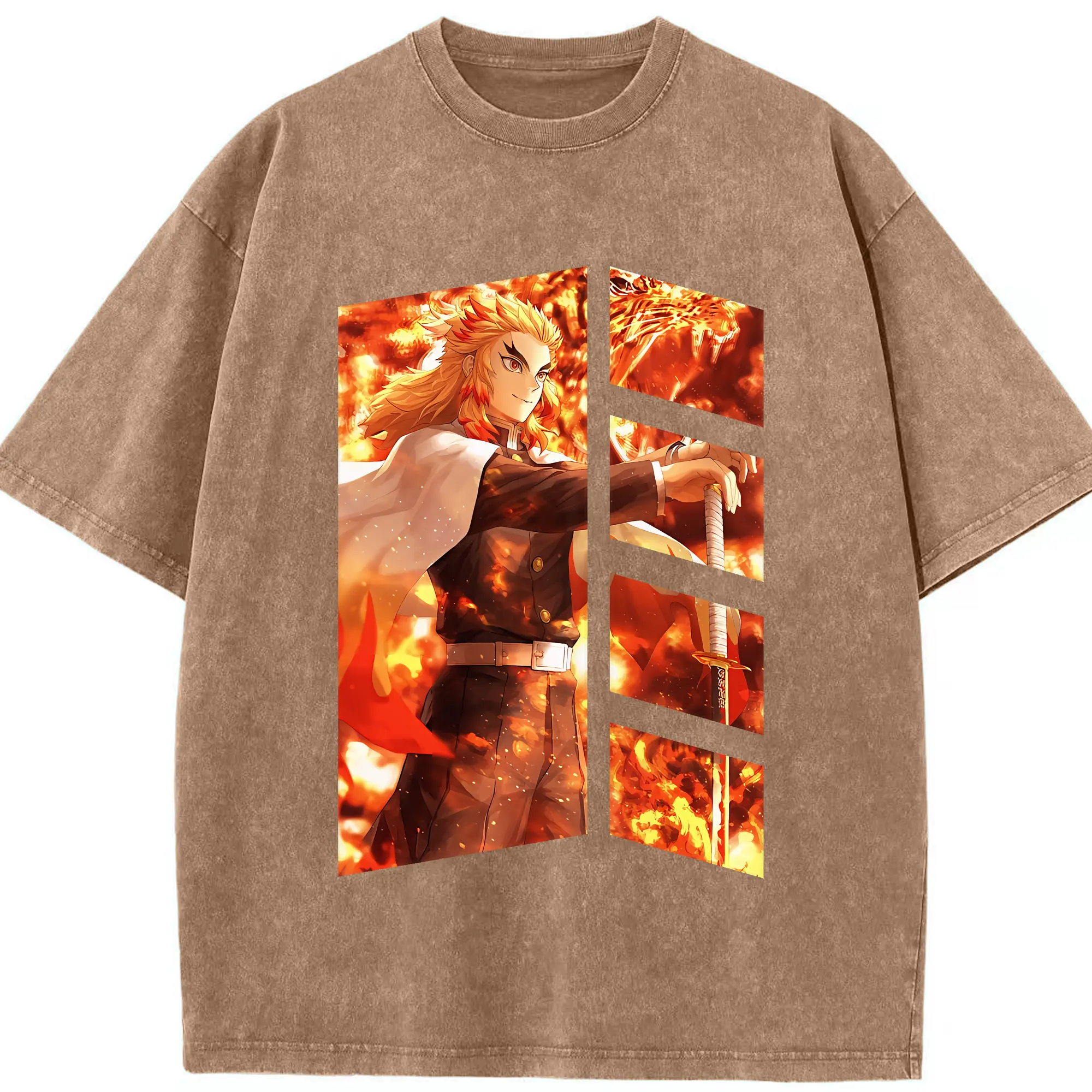 鬼滅の刃 グッズ,煉獄 杏寿郎 - 綿100% 半袖Tシャツ ・ フロントプリント ・ 快適 通気性 ・ 日常使い 散歩 スポーツ用