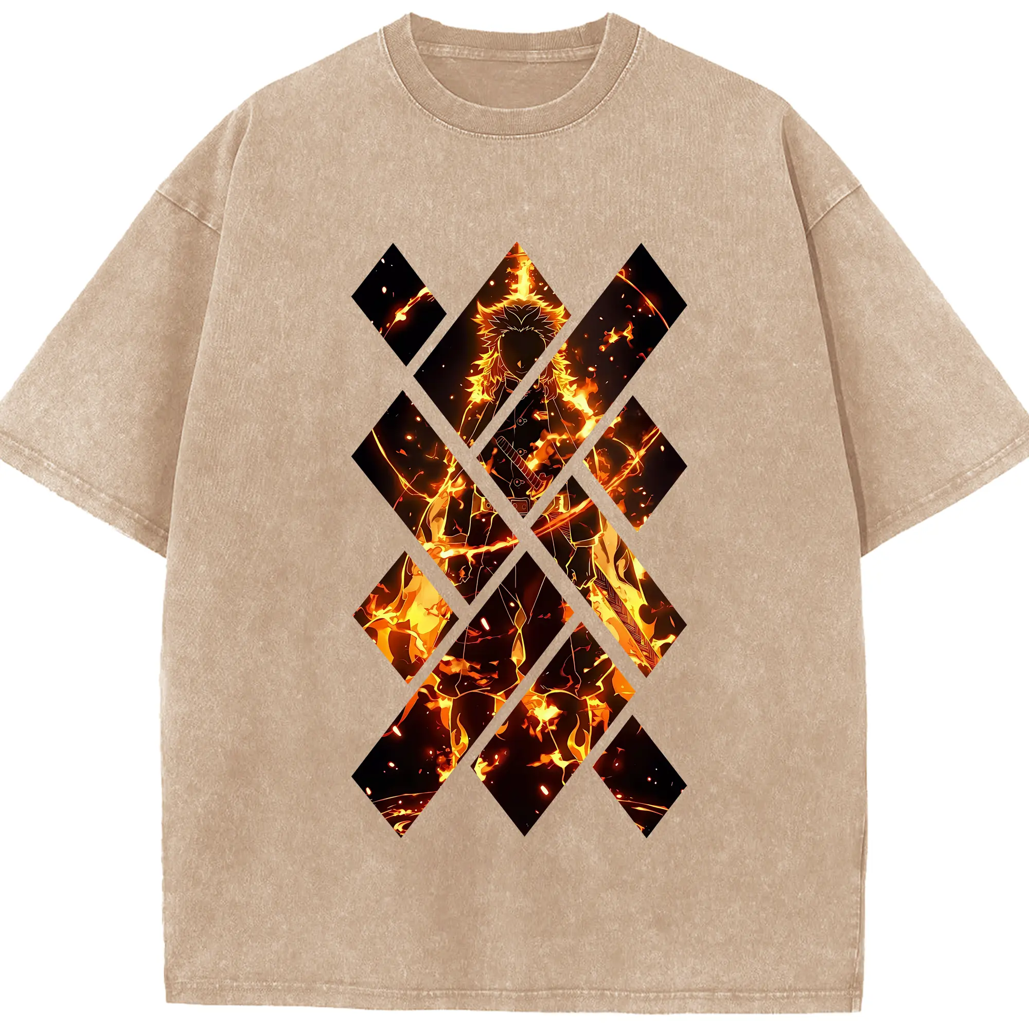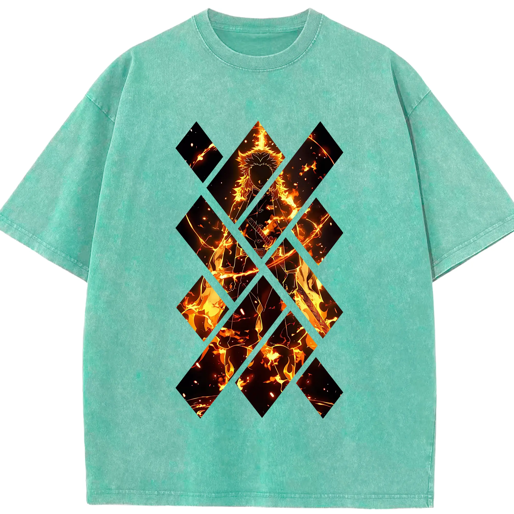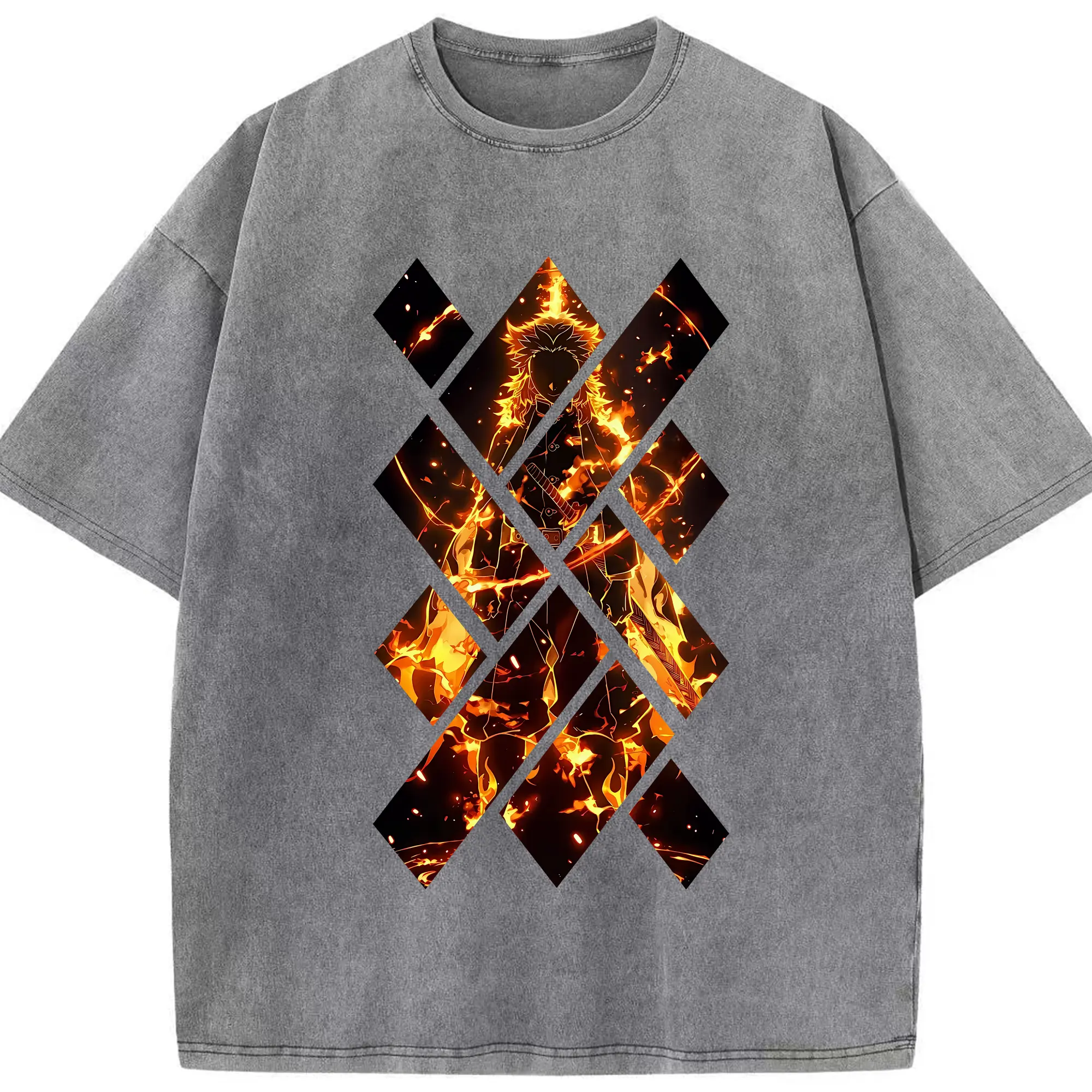 鬼滅の刃 グッズ,煉獄 杏寿郎 - 綿100% 半袖Tシャツ ・ フロントプリント ・ 快適 通気性 ・ 日常使い 散歩 スポーツ用