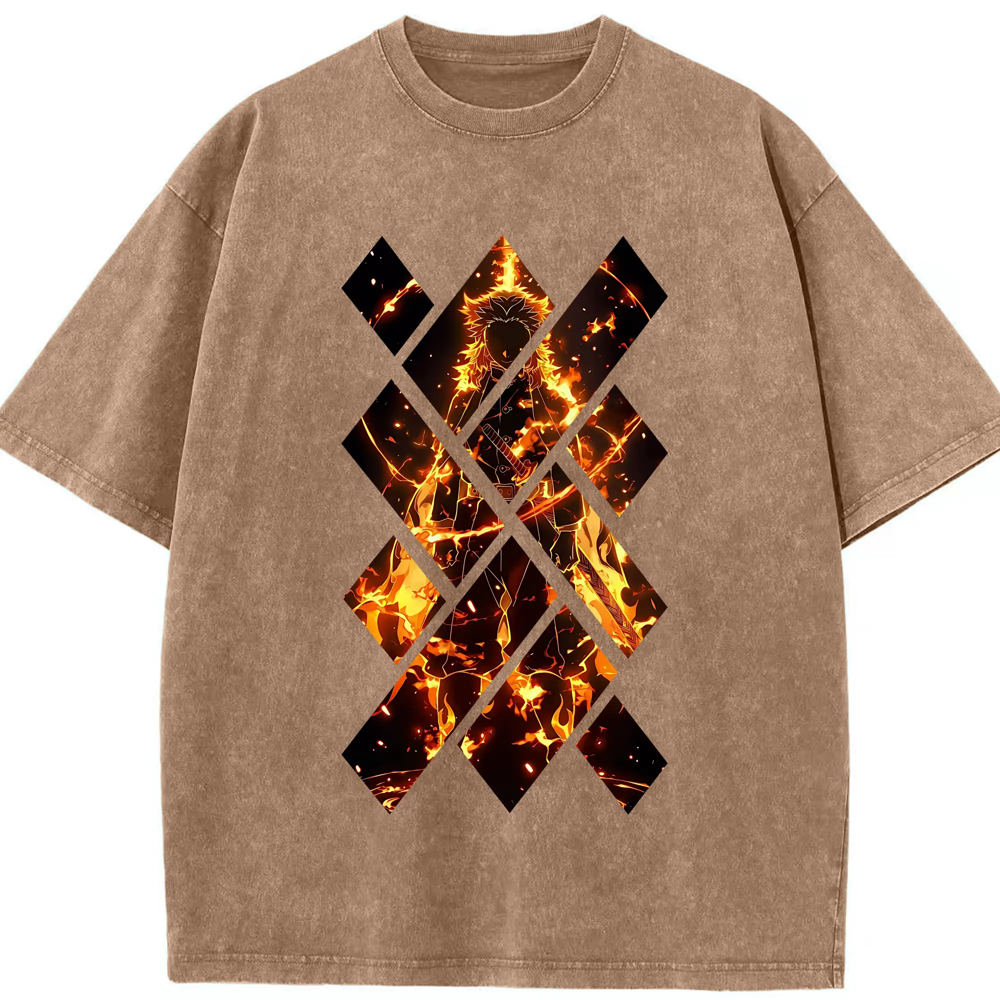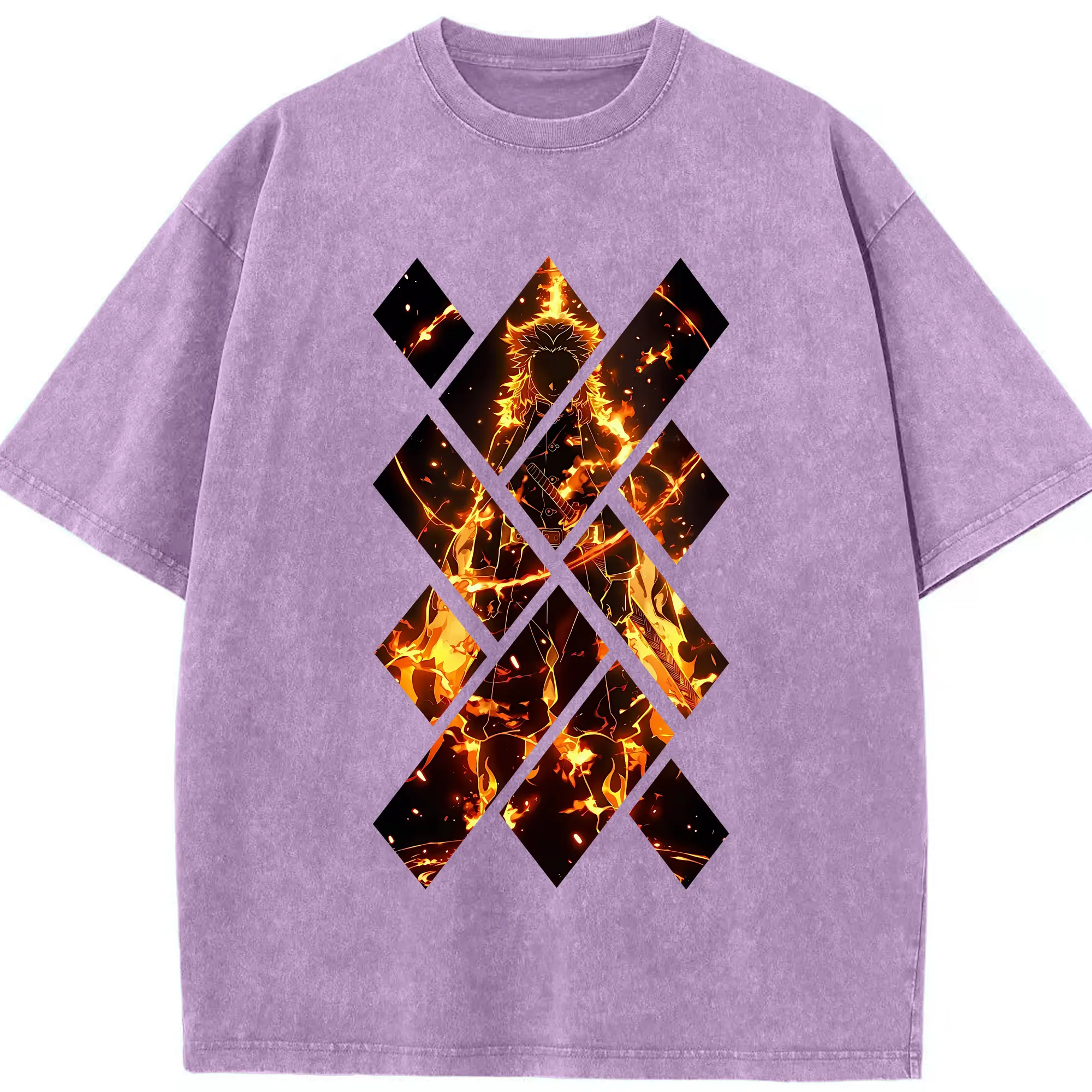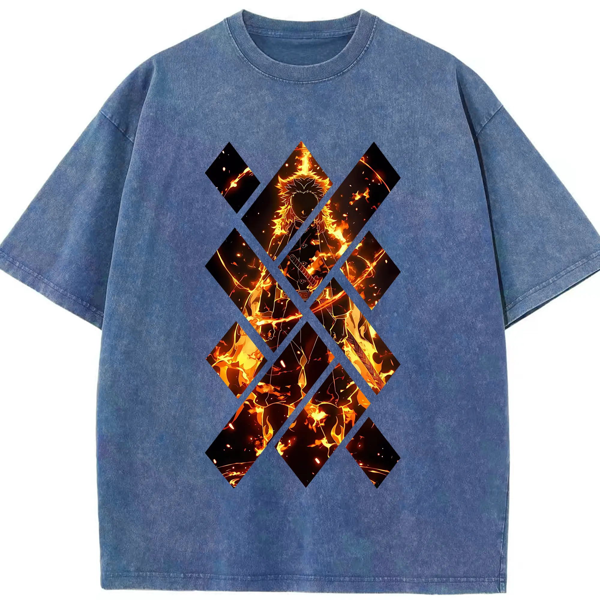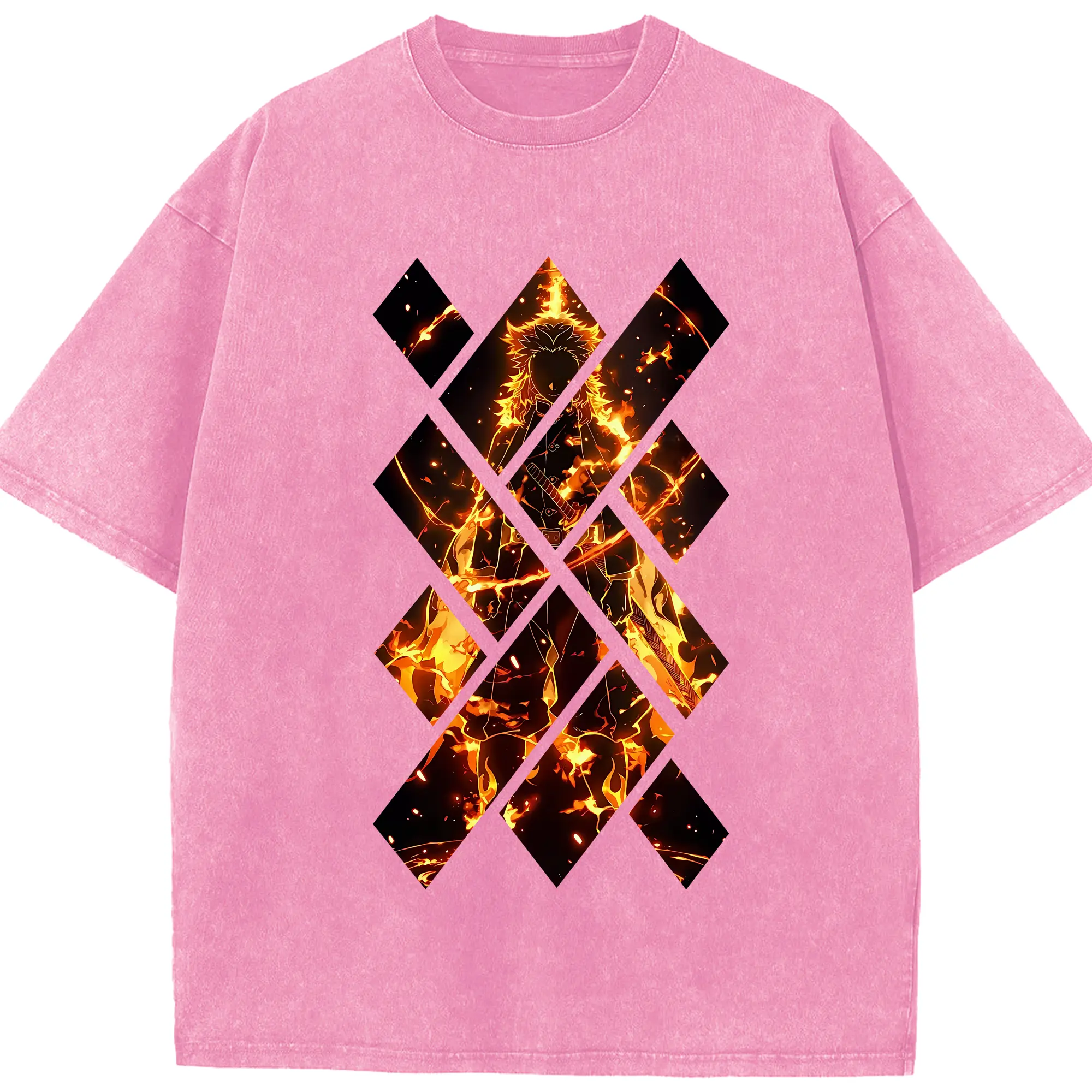 鬼滅の刃 グッズ,煉獄 杏寿郎 - 綿100% 半袖Tシャツ ・ フロントプリント ・ 快適 通気性 ・ 日常使い 散歩 スポーツ用