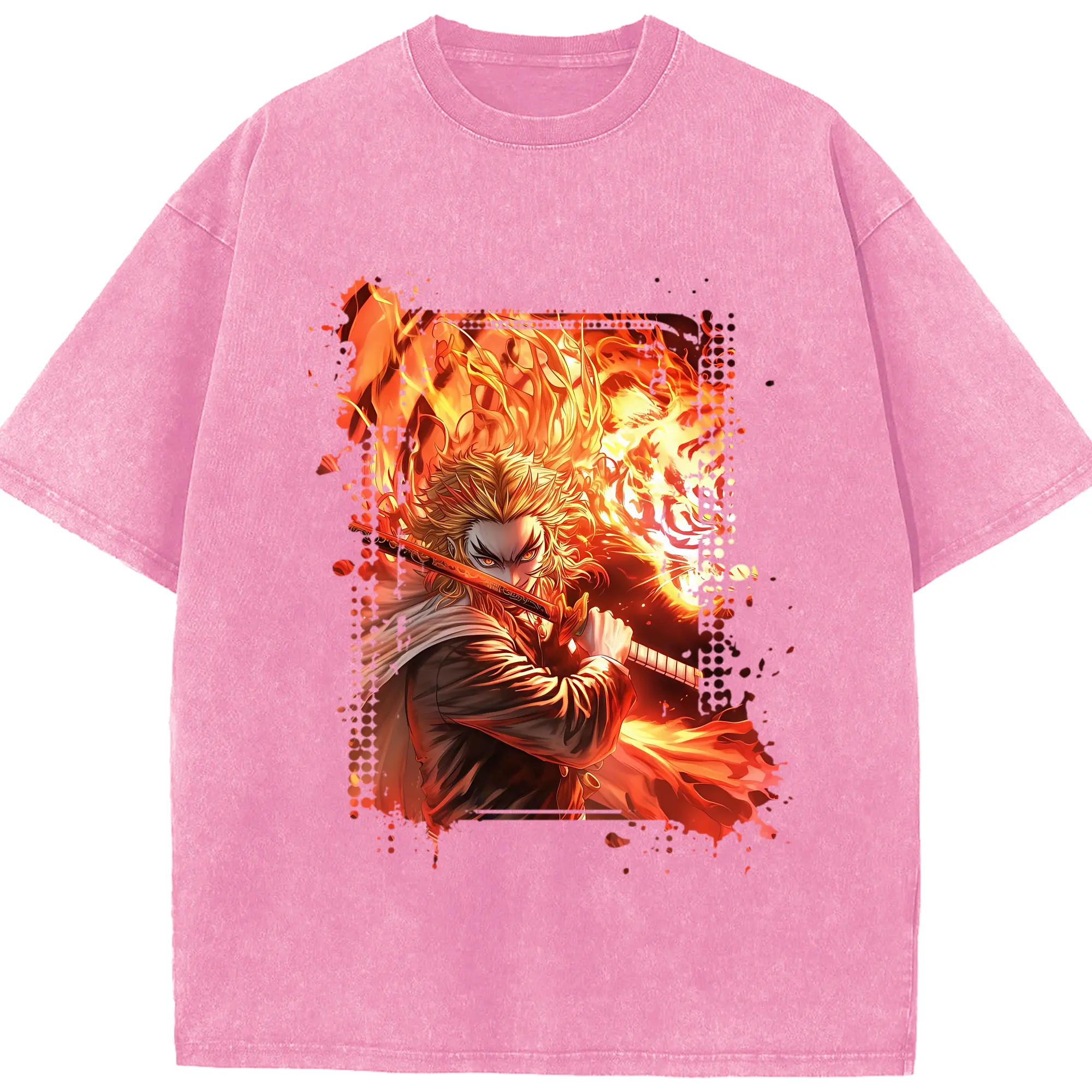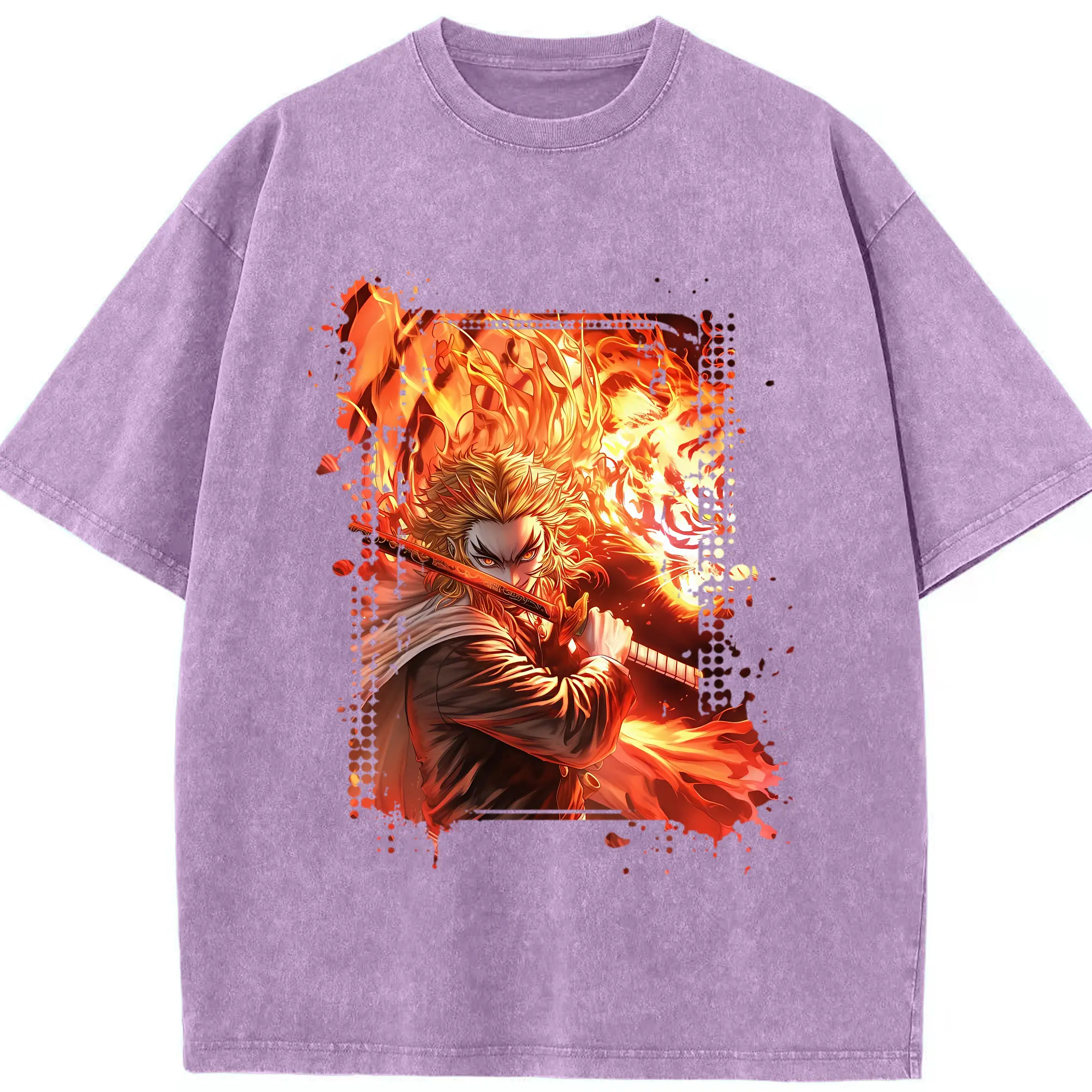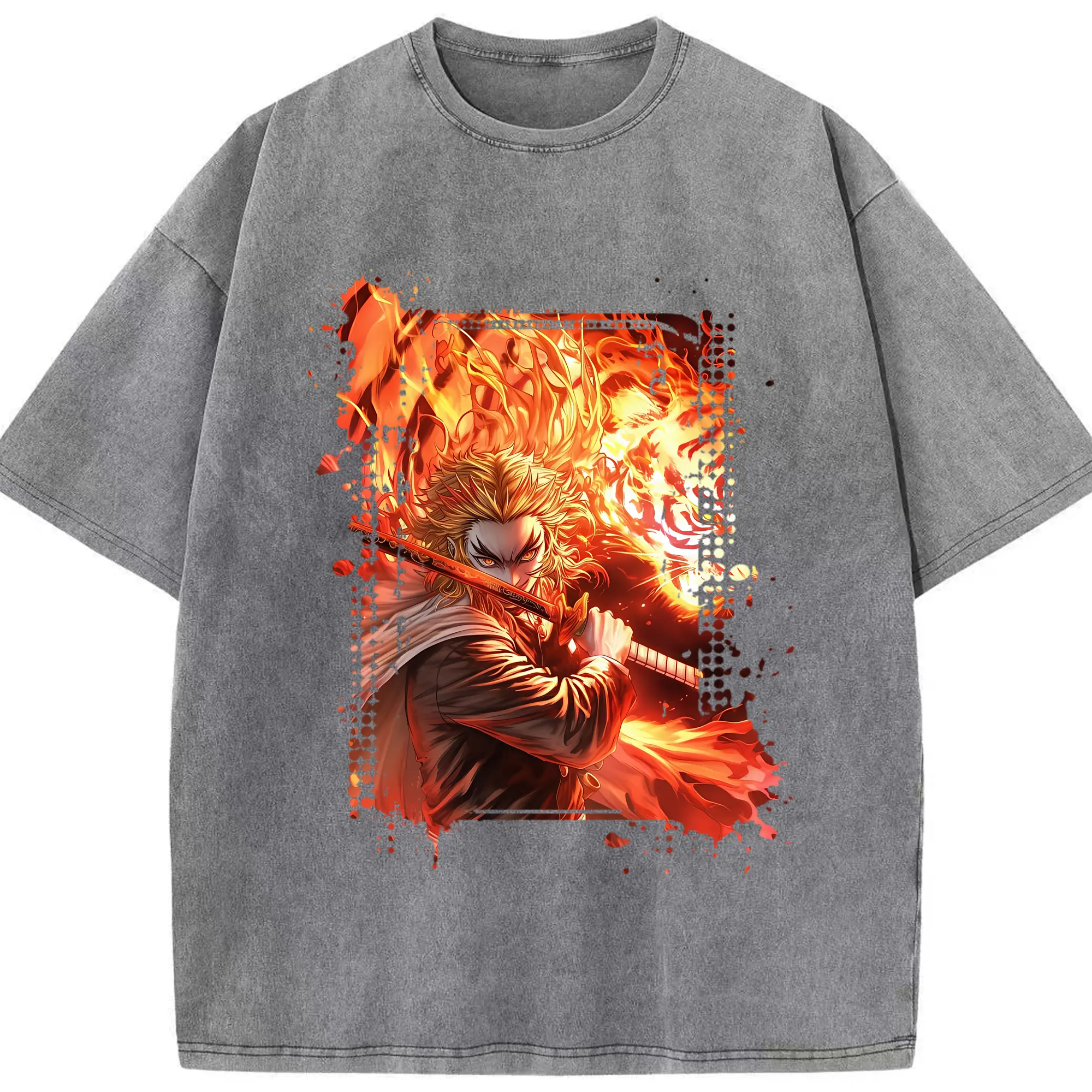 鬼滅の刃 グッズ,煉獄 杏寿郎 - 綿100% 半袖Tシャツ ・ フロントプリント ・ 快適 通気性 ・ 日常使い 散歩 スポーツ用