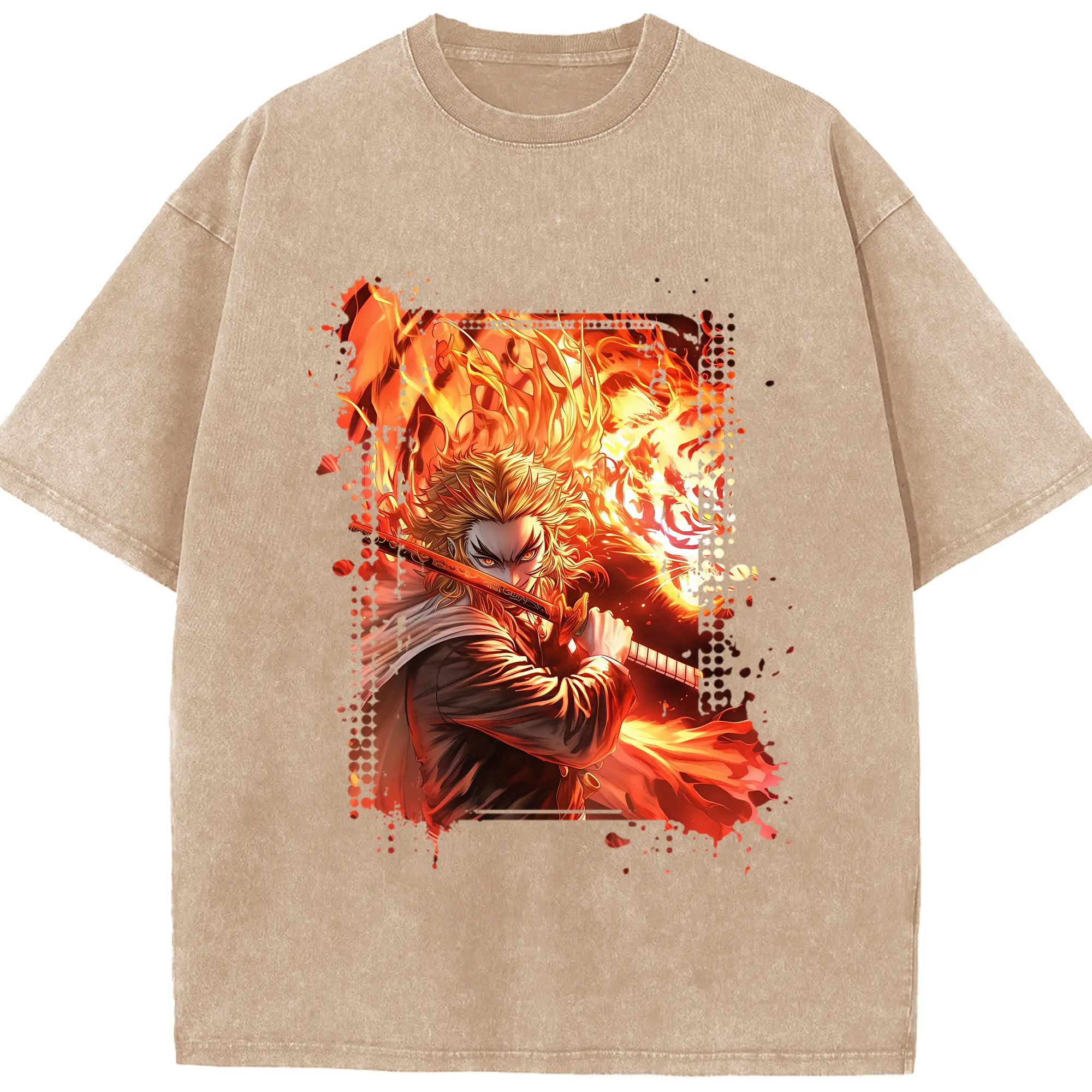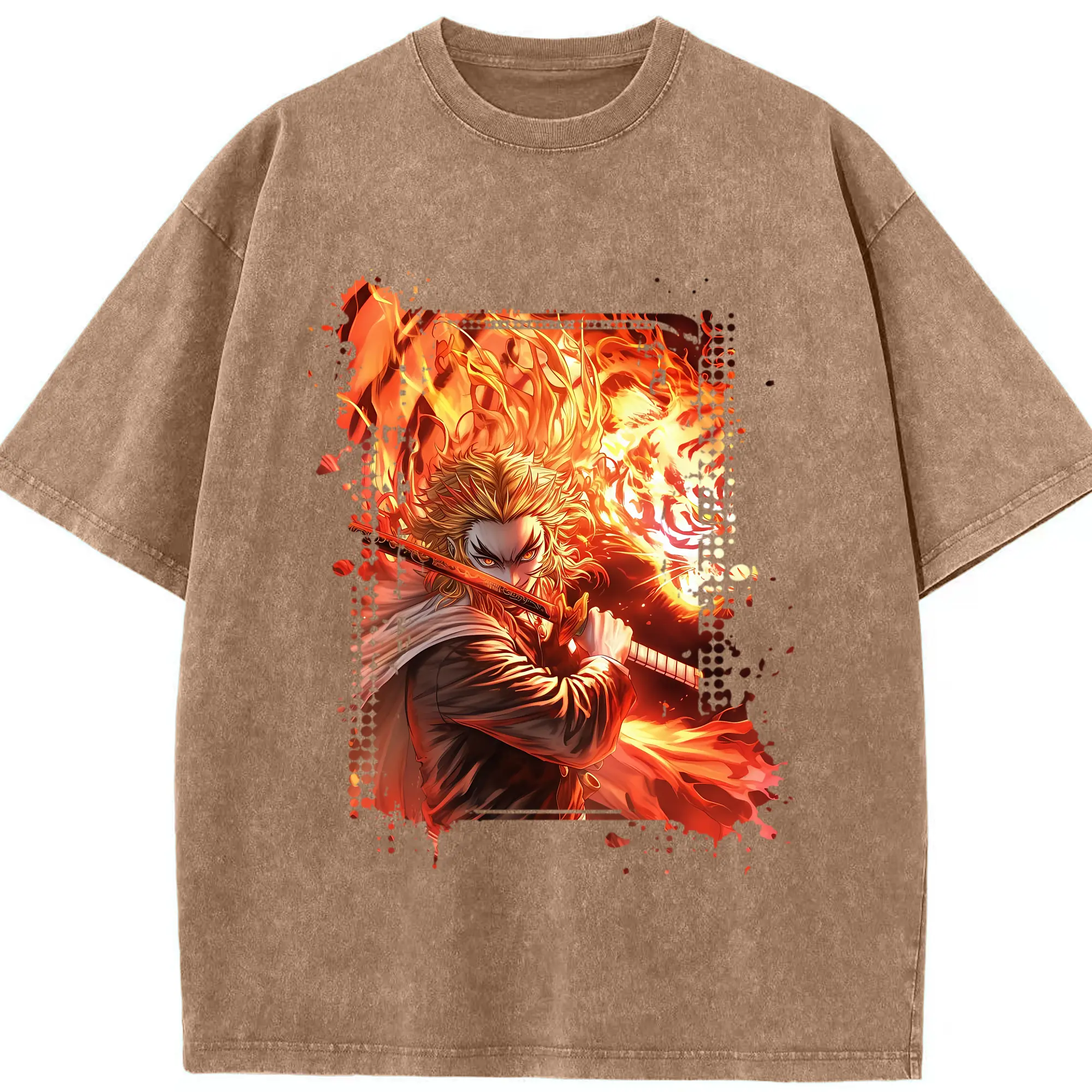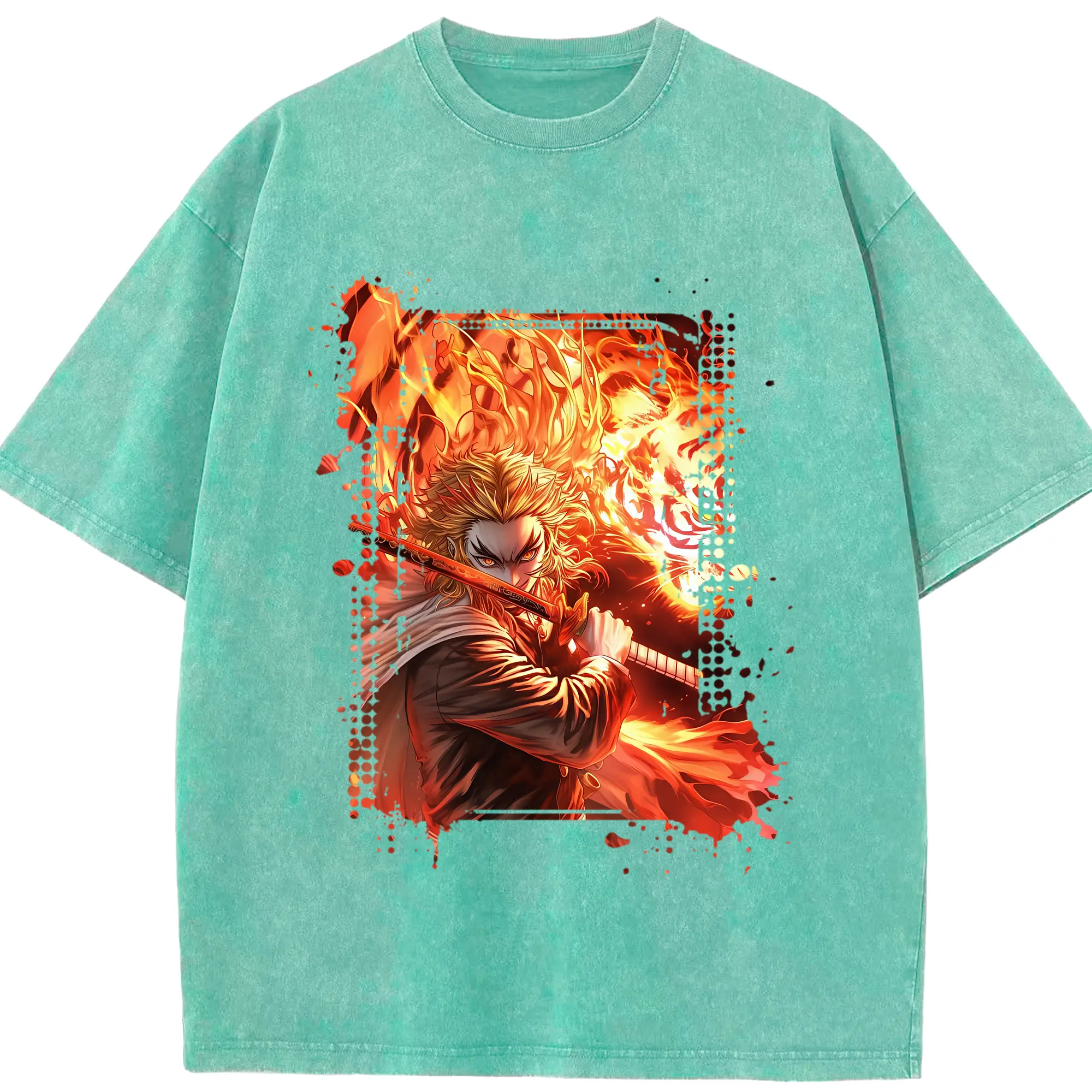 鬼滅の刃 グッズ,煉獄 杏寿郎 - 綿100% 半袖Tシャツ ・ フロントプリント ・ 快適 通気性 ・ 日常使い 散歩 スポーツ用