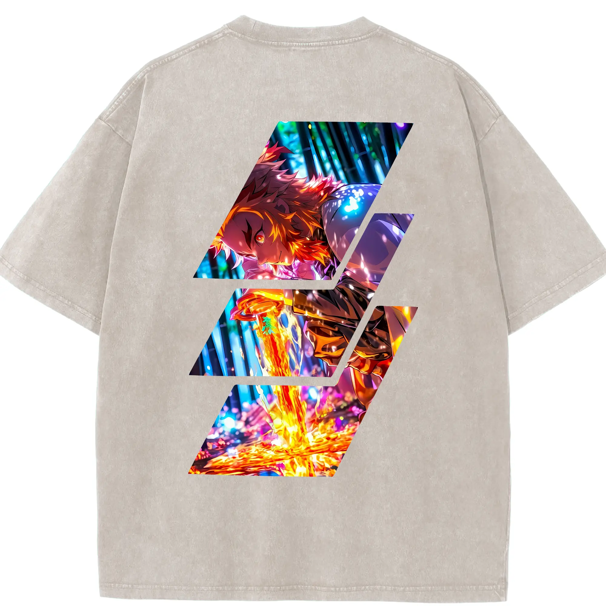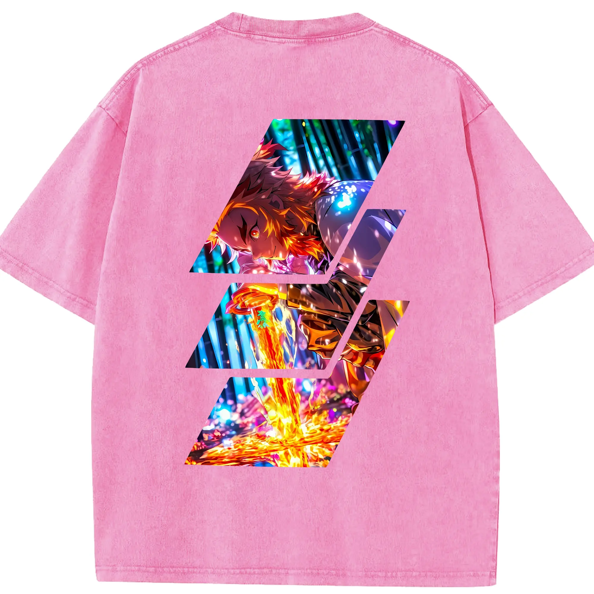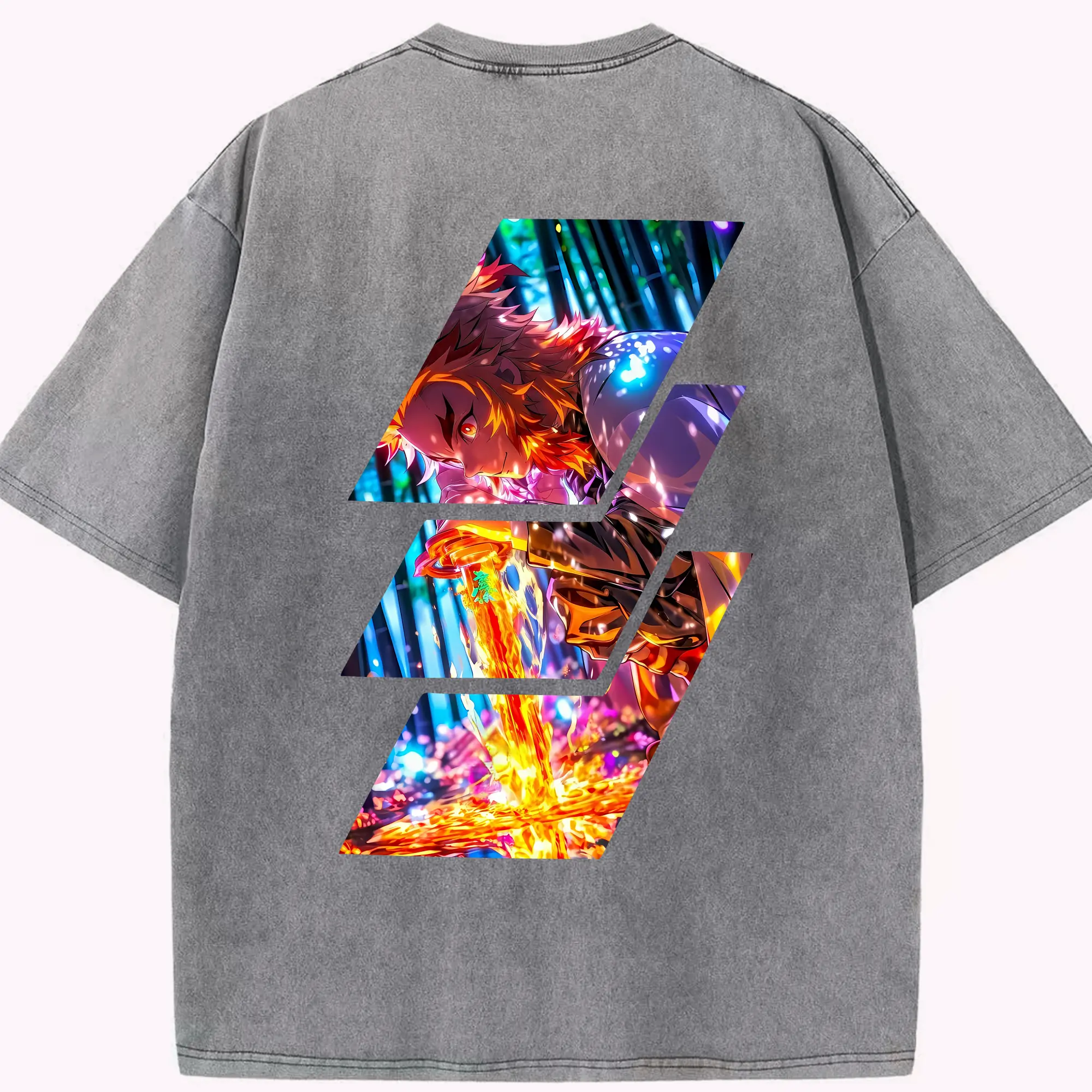 鬼滅の刃 グッズ,煉獄 杏寿郎 - 綿100% 半袖Tシャツ ・ バックプリント ・ 快適 通気性 ・ 日常使い 散歩 スポーツ用