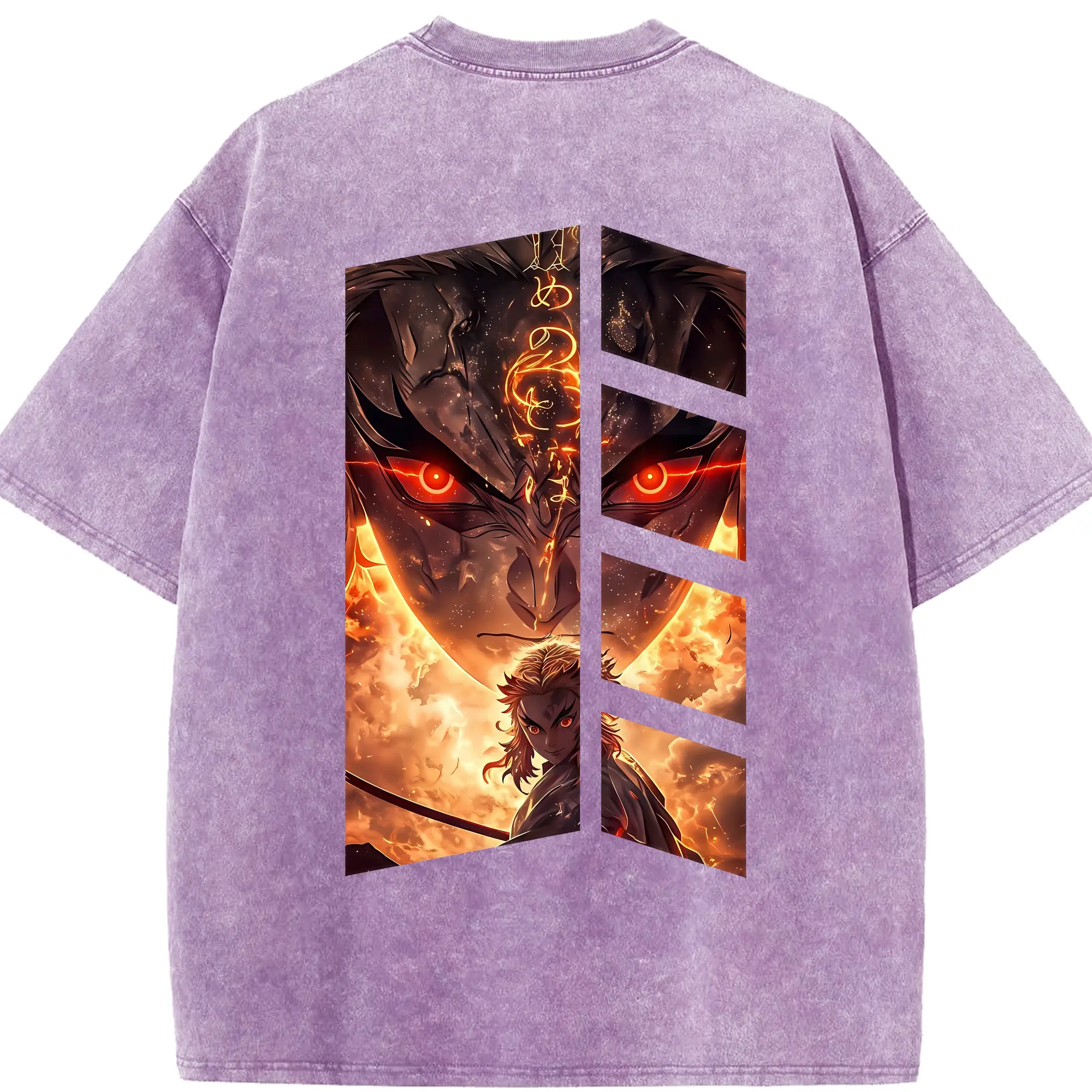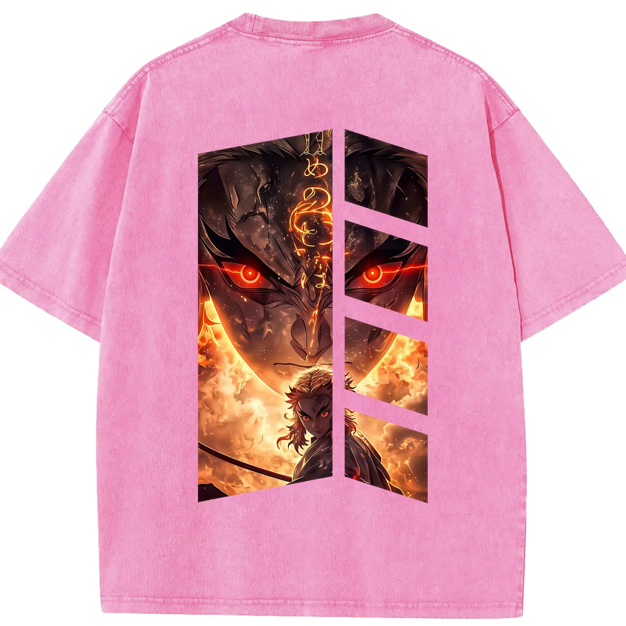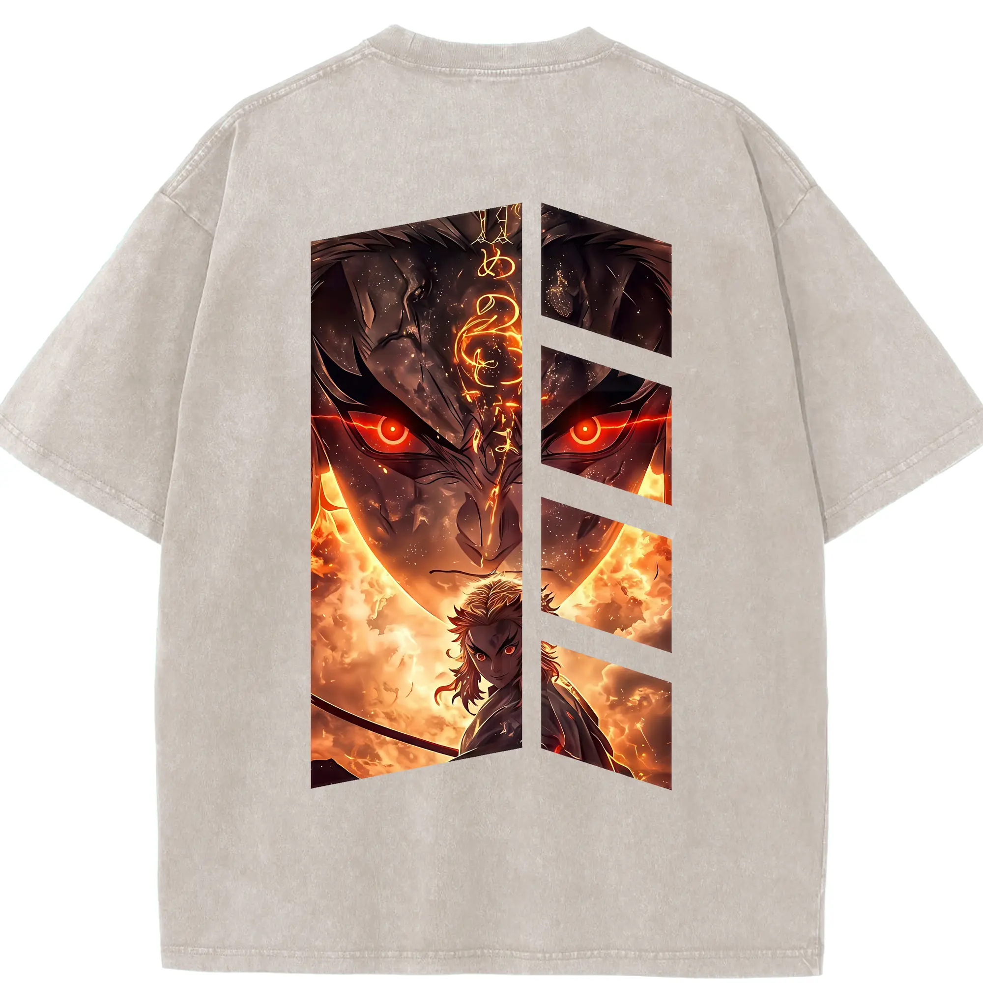 鬼滅の刃 グッズ,煉獄 杏寿郎 - 綿100% 半袖Tシャツ ・ バックプリント ・ 快適 通気性 ・ 日常使い 散歩 スポーツ用