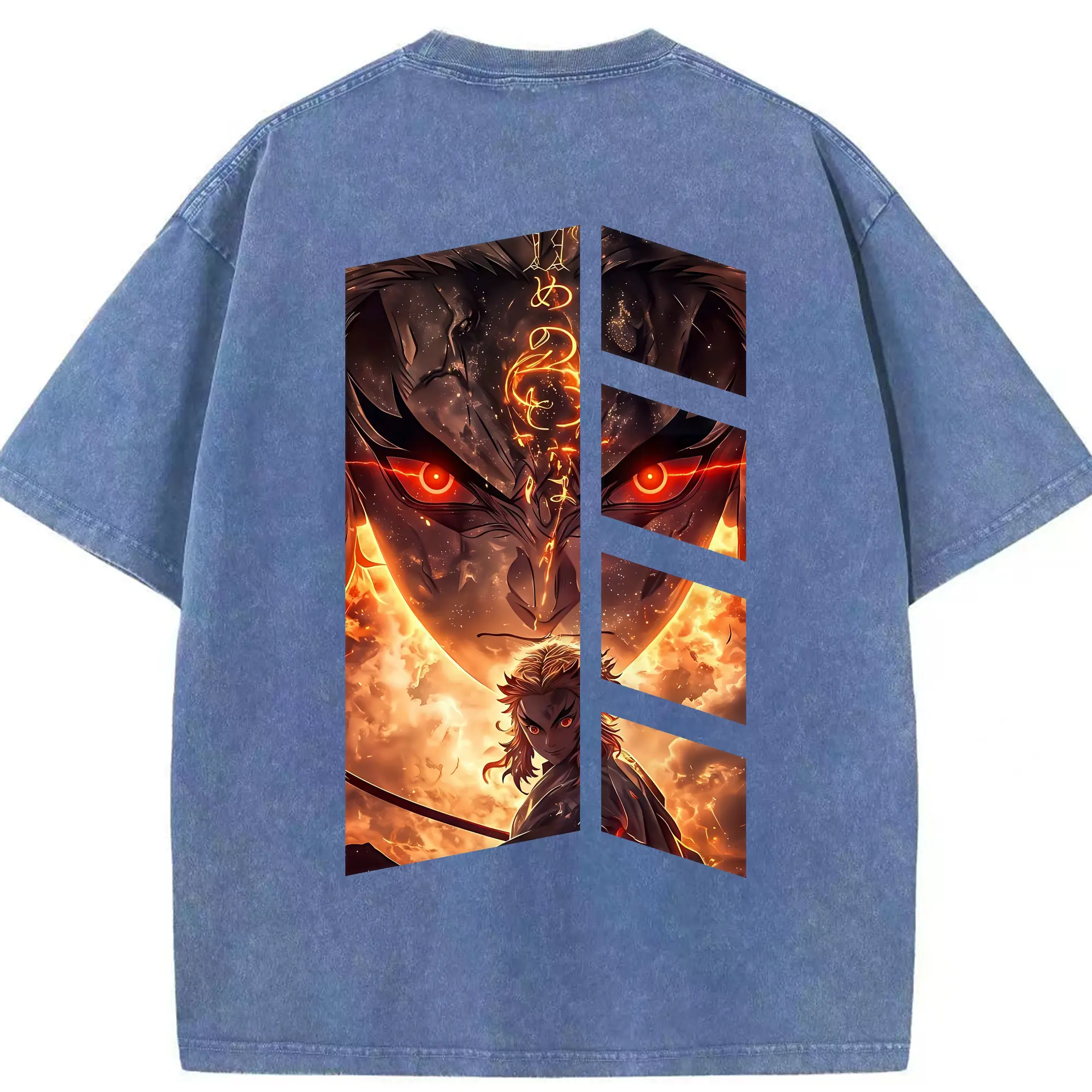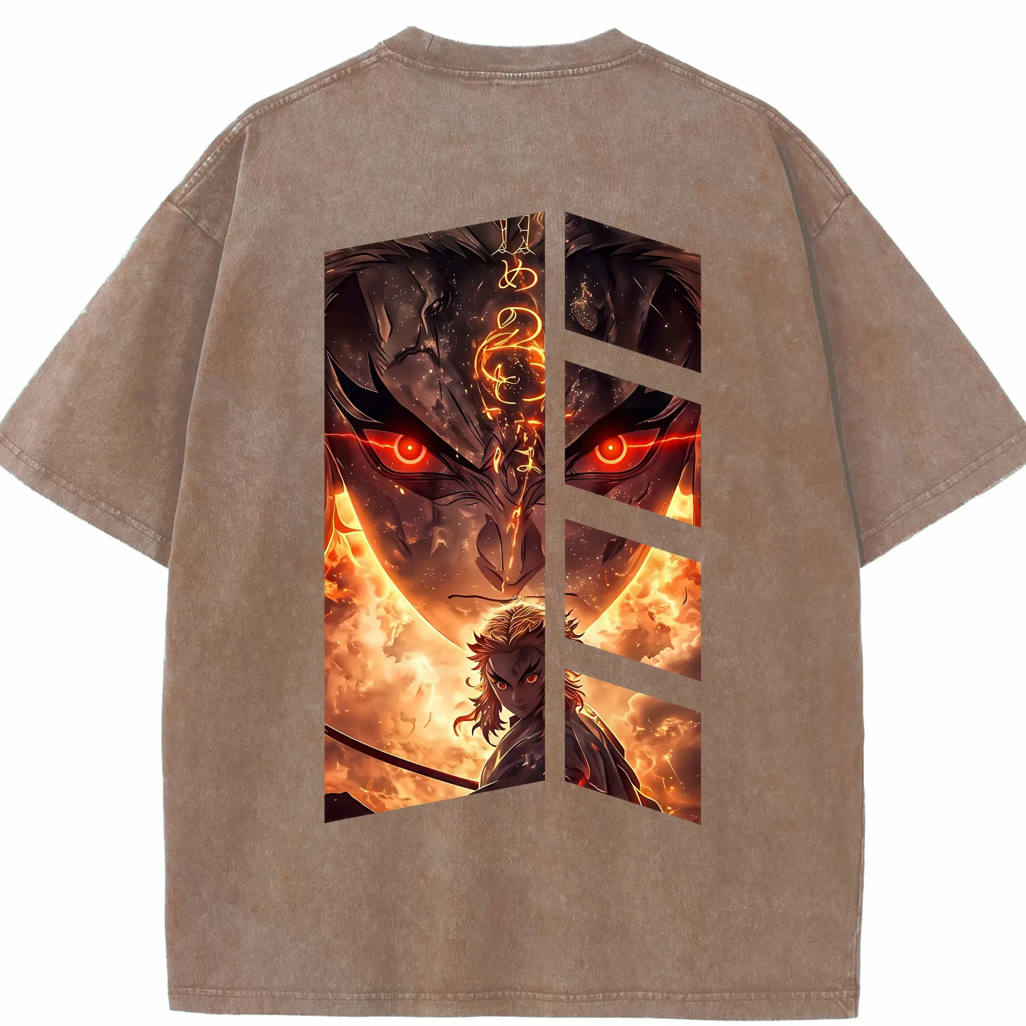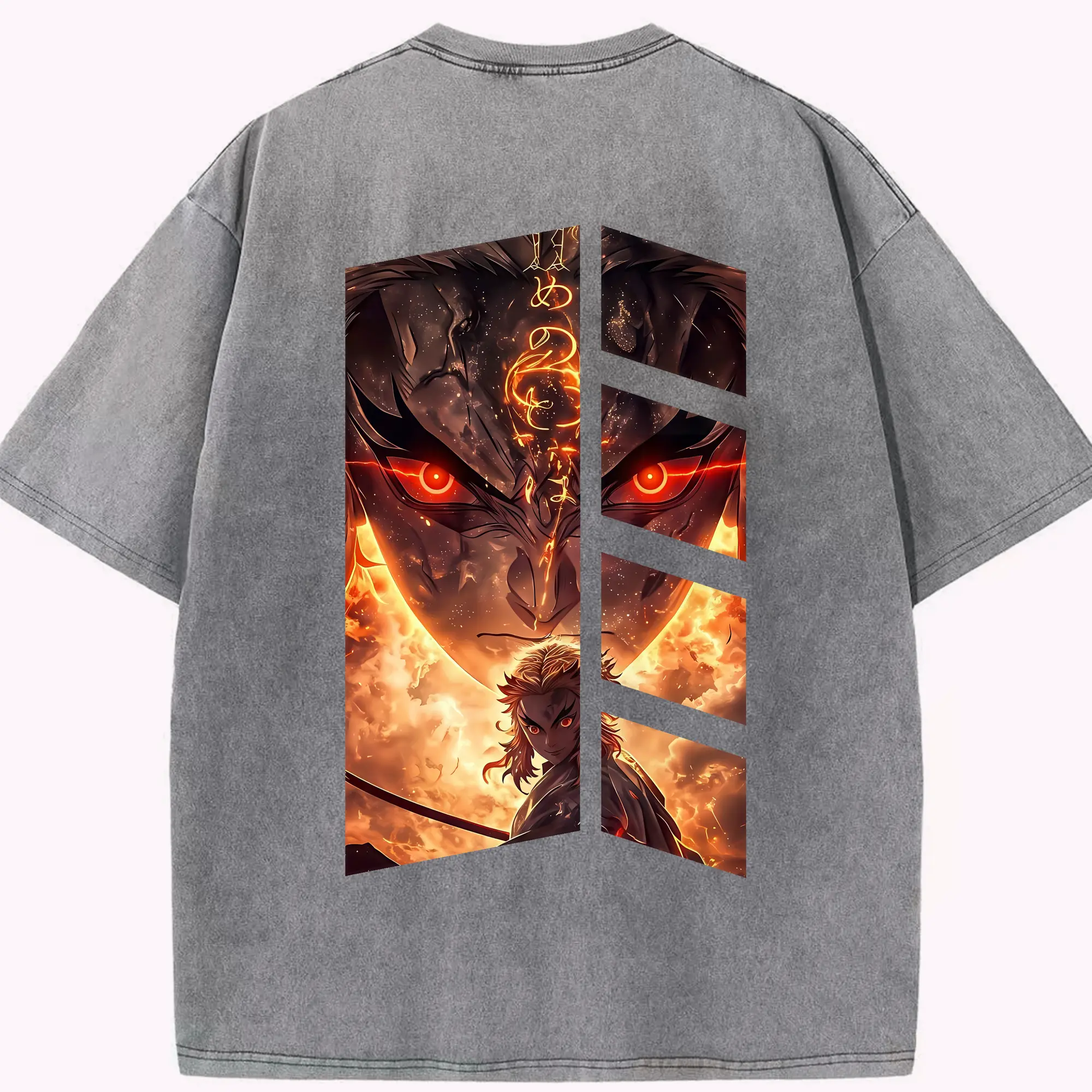 鬼滅の刃 グッズ,煉獄 杏寿郎 - 綿100% 半袖Tシャツ ・ フロントプリント ・ 快適 通気性 ・ 日常使い 散歩 スポーツ用