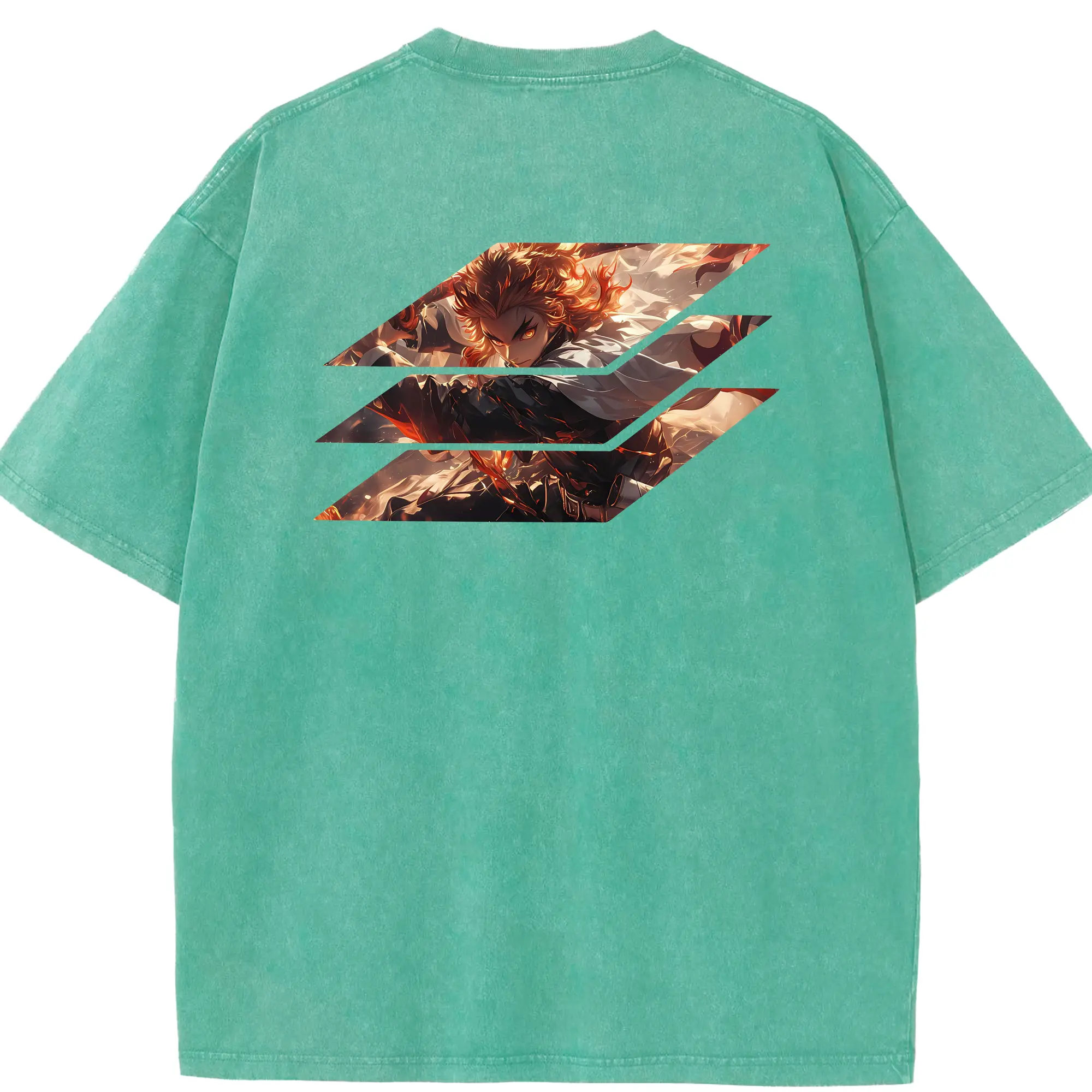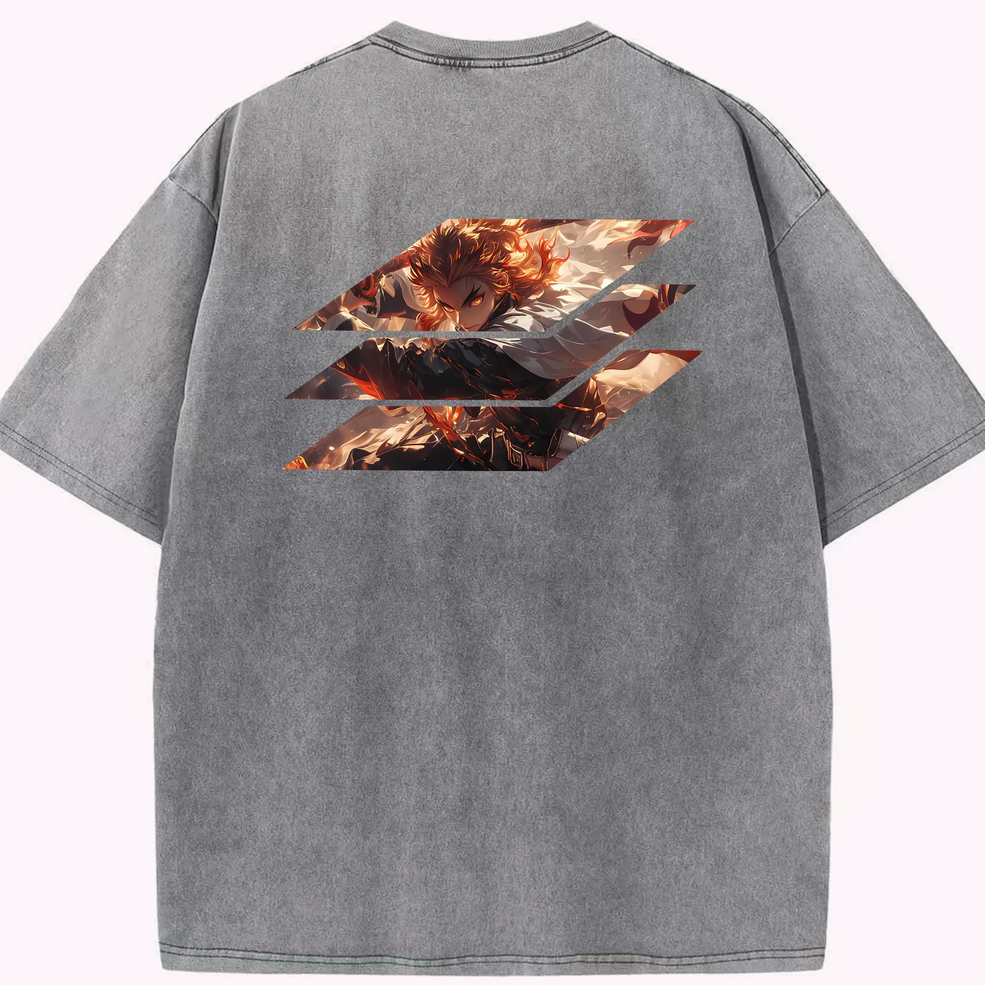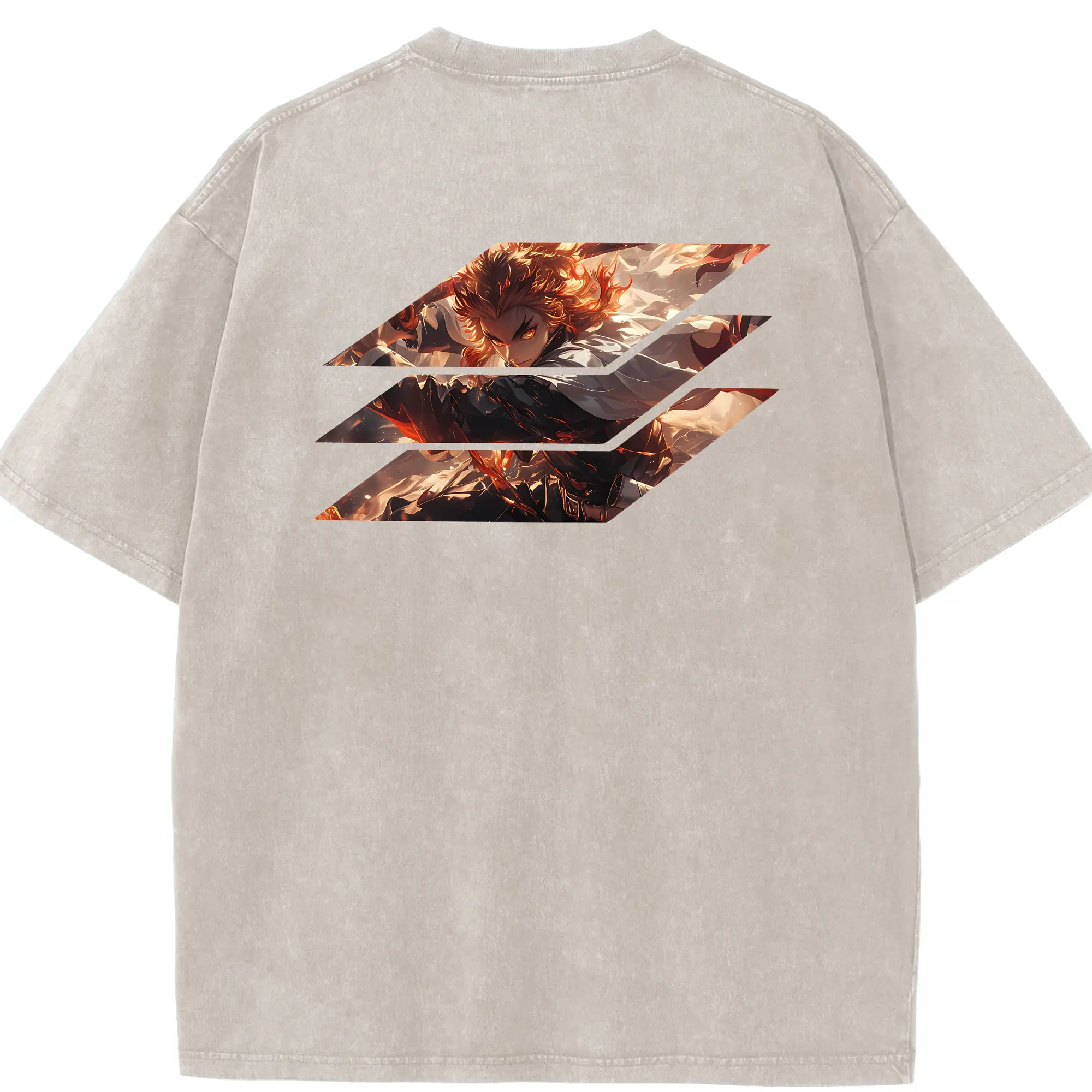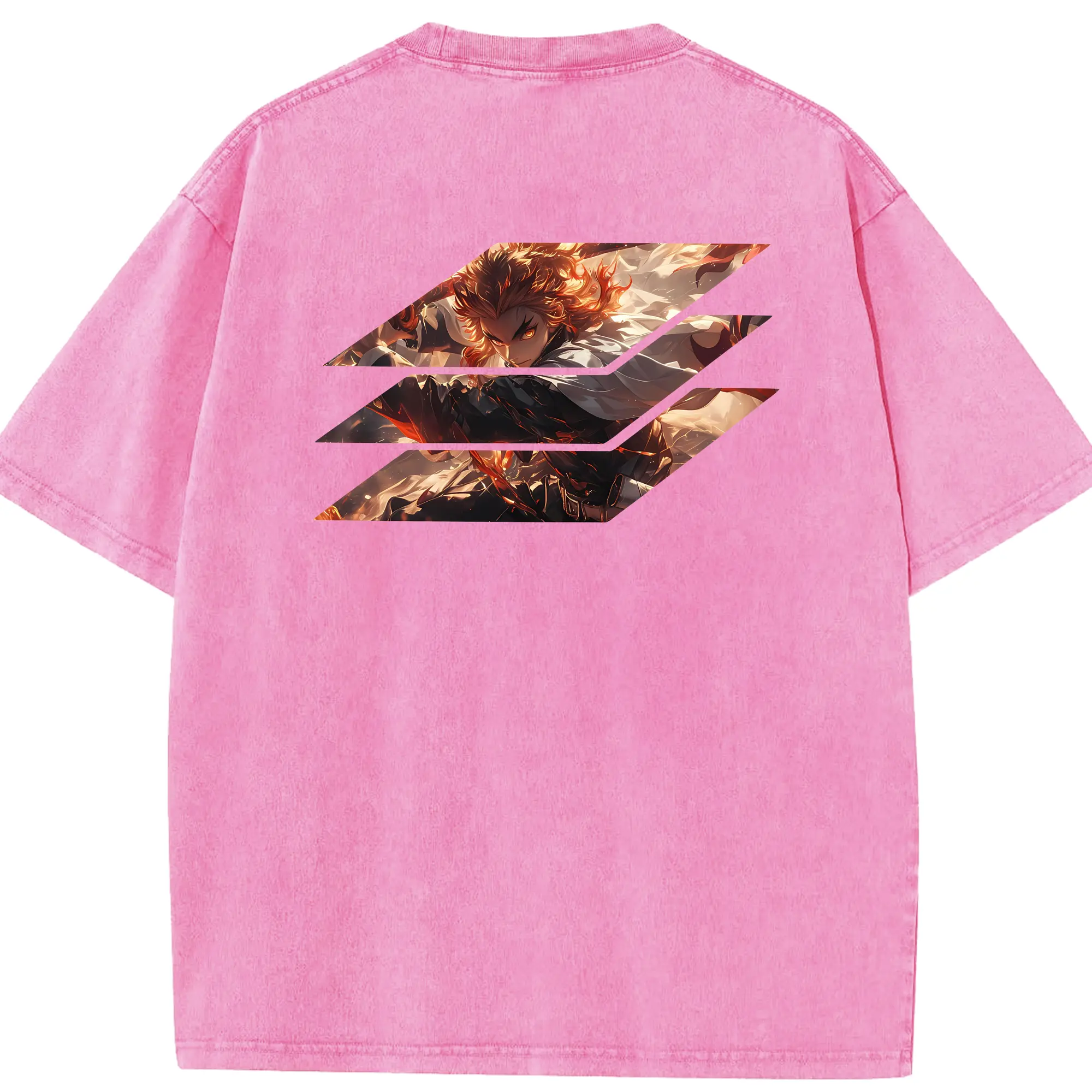 鬼滅の刃 グッズ,煉獄 杏寿郎 - 綿100% 半袖Tシャツ ・ バックプリント ・ 快適 通気性 ・ 日常使い 散歩 スポーツ用