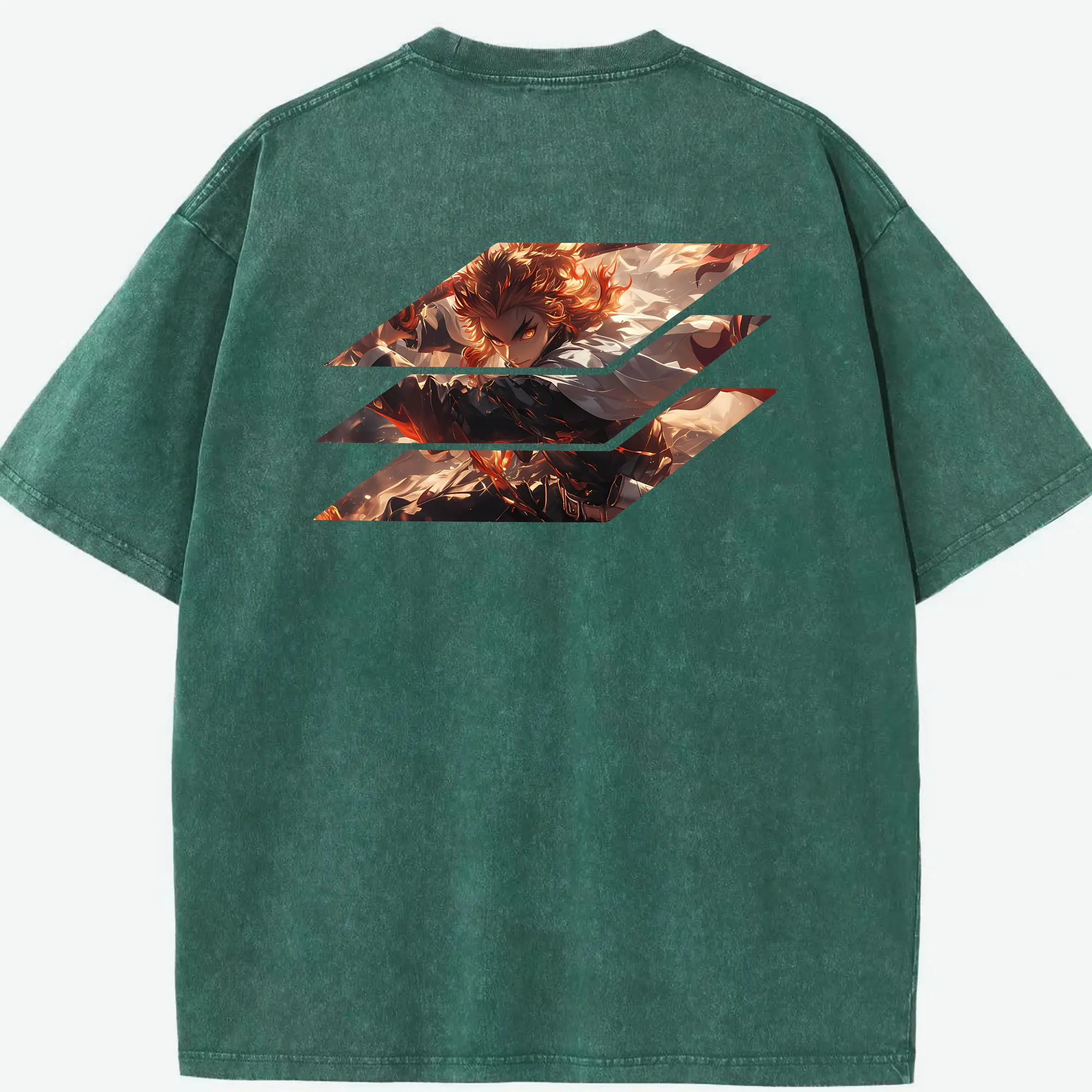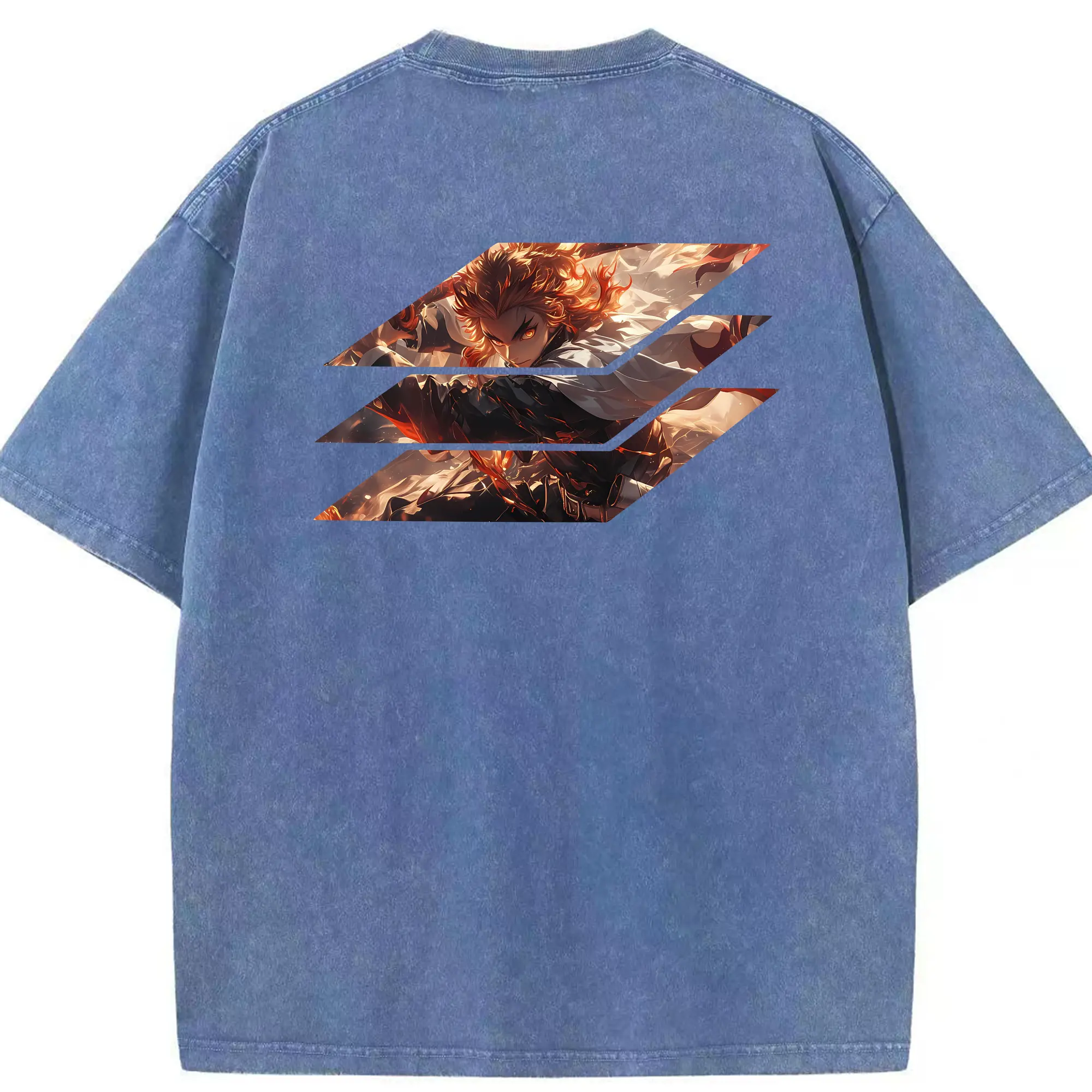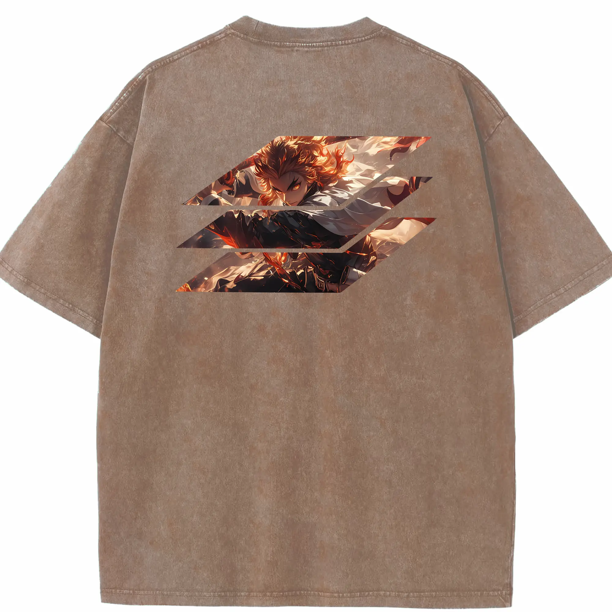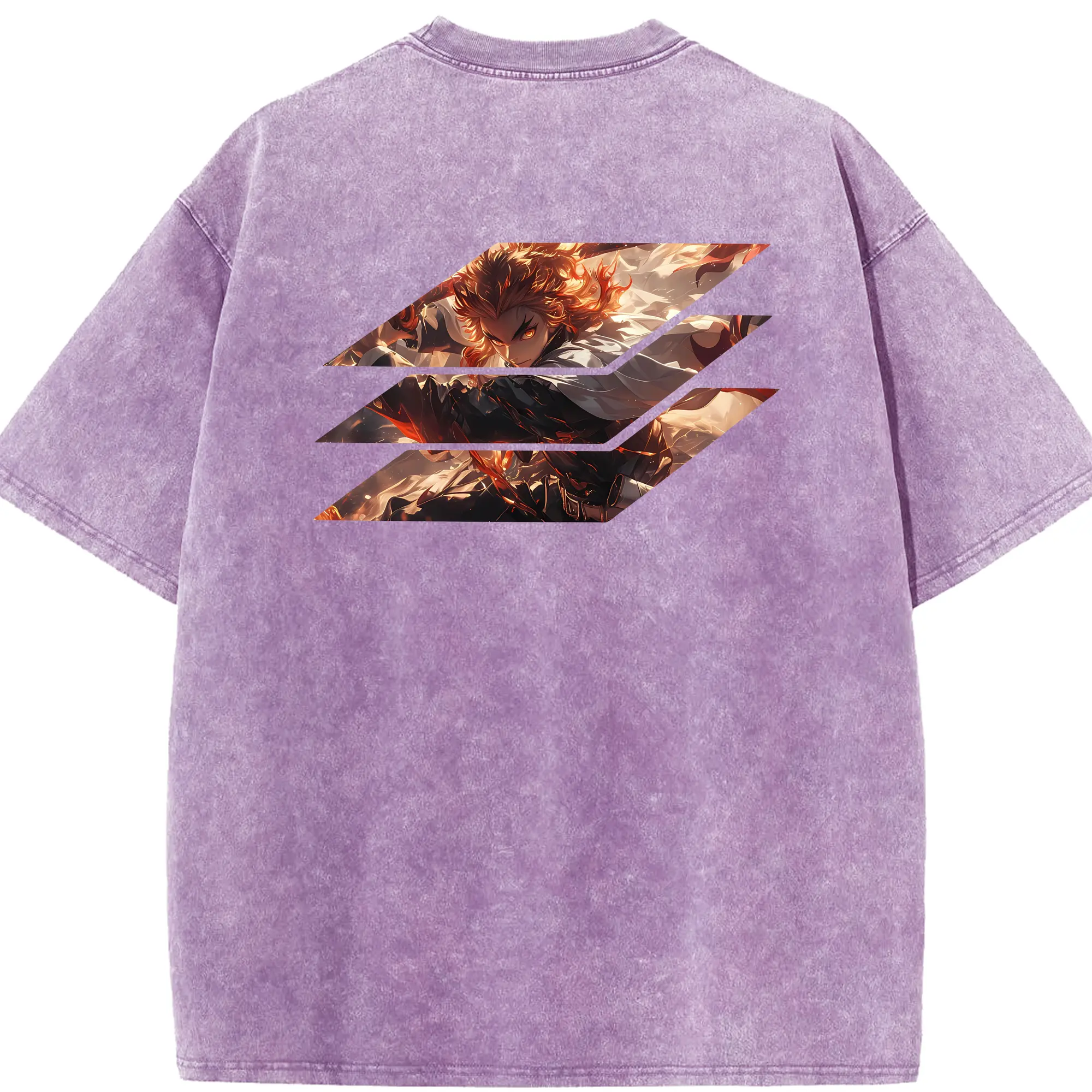 鬼滅の刃 グッズ,煉獄 杏寿郎 - 綿100% 半袖Tシャツ ・ バックプリント ・ 快適 通気性 ・ 日常使い 散歩 スポーツ用