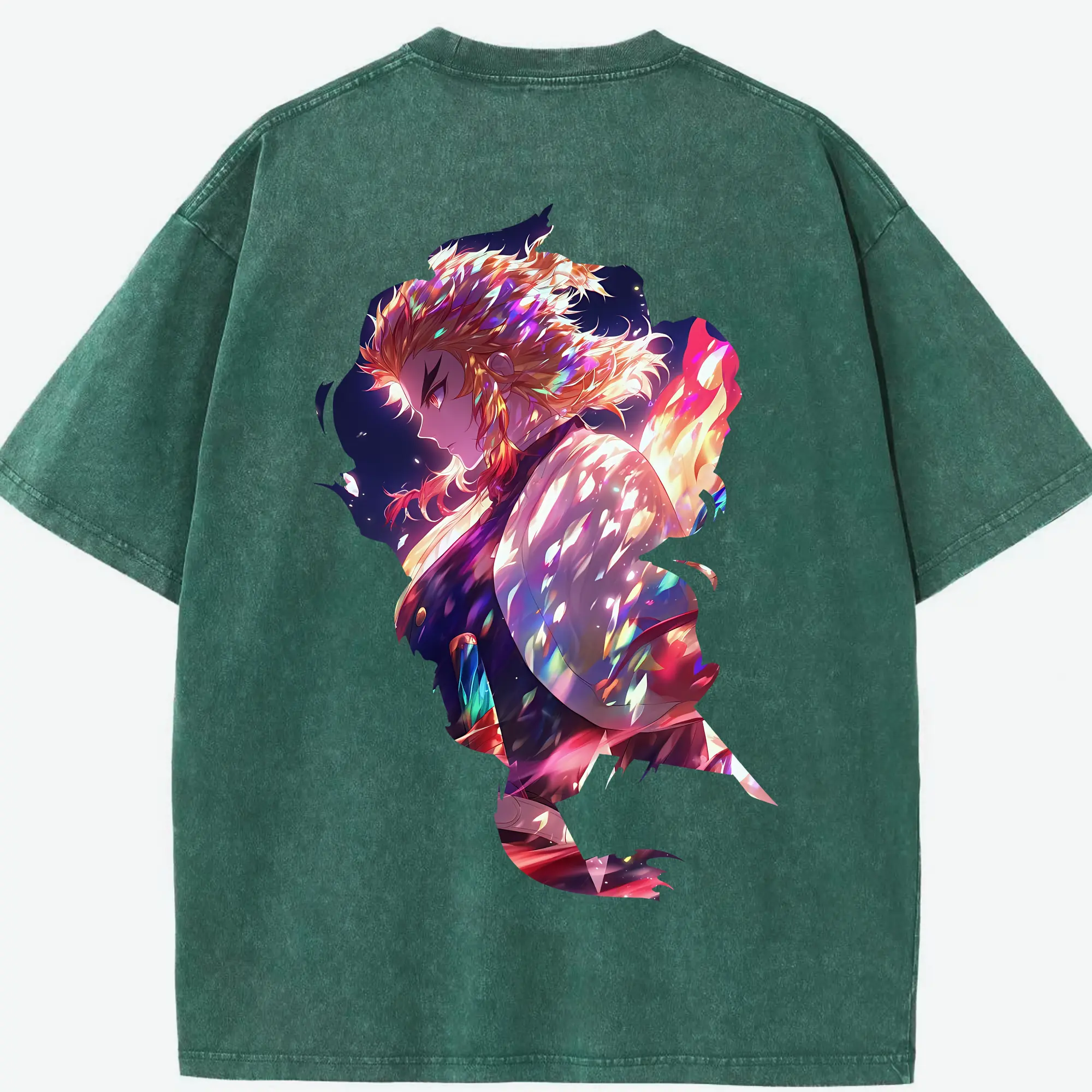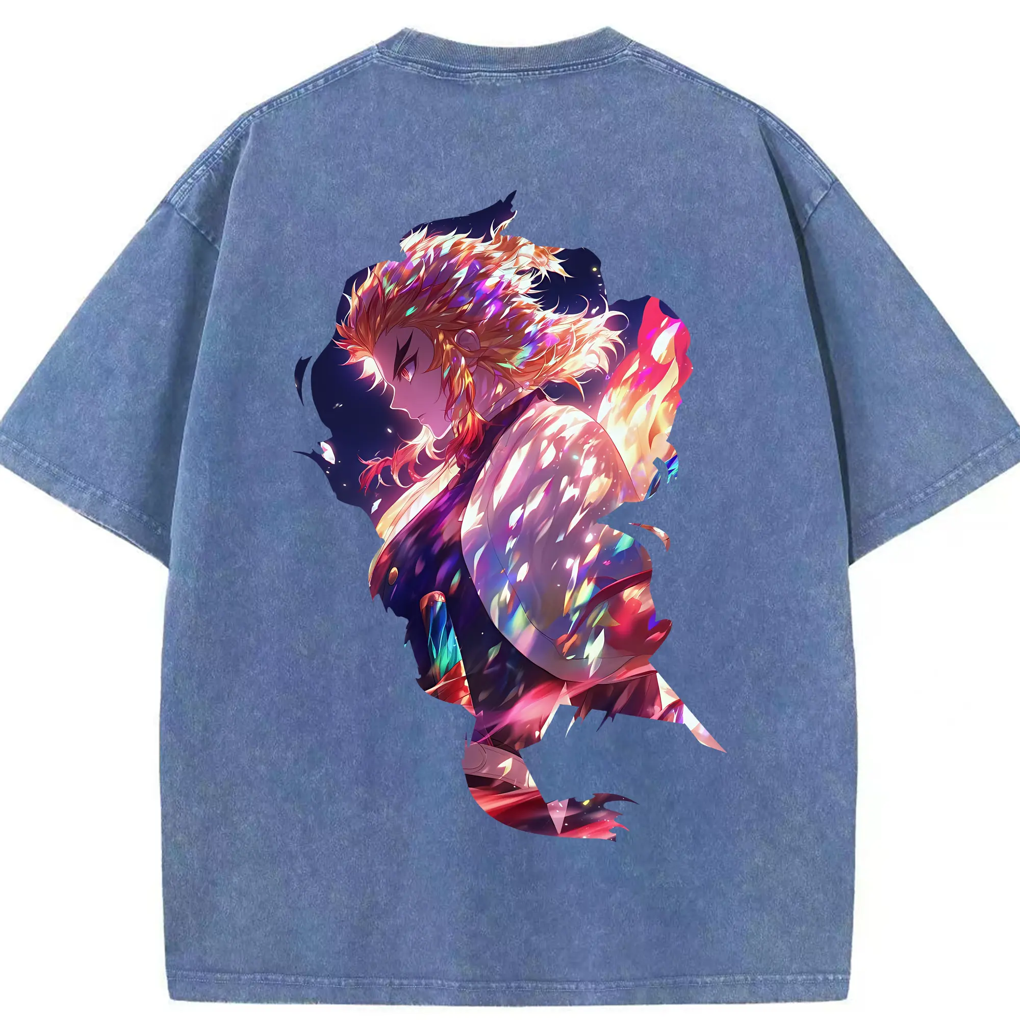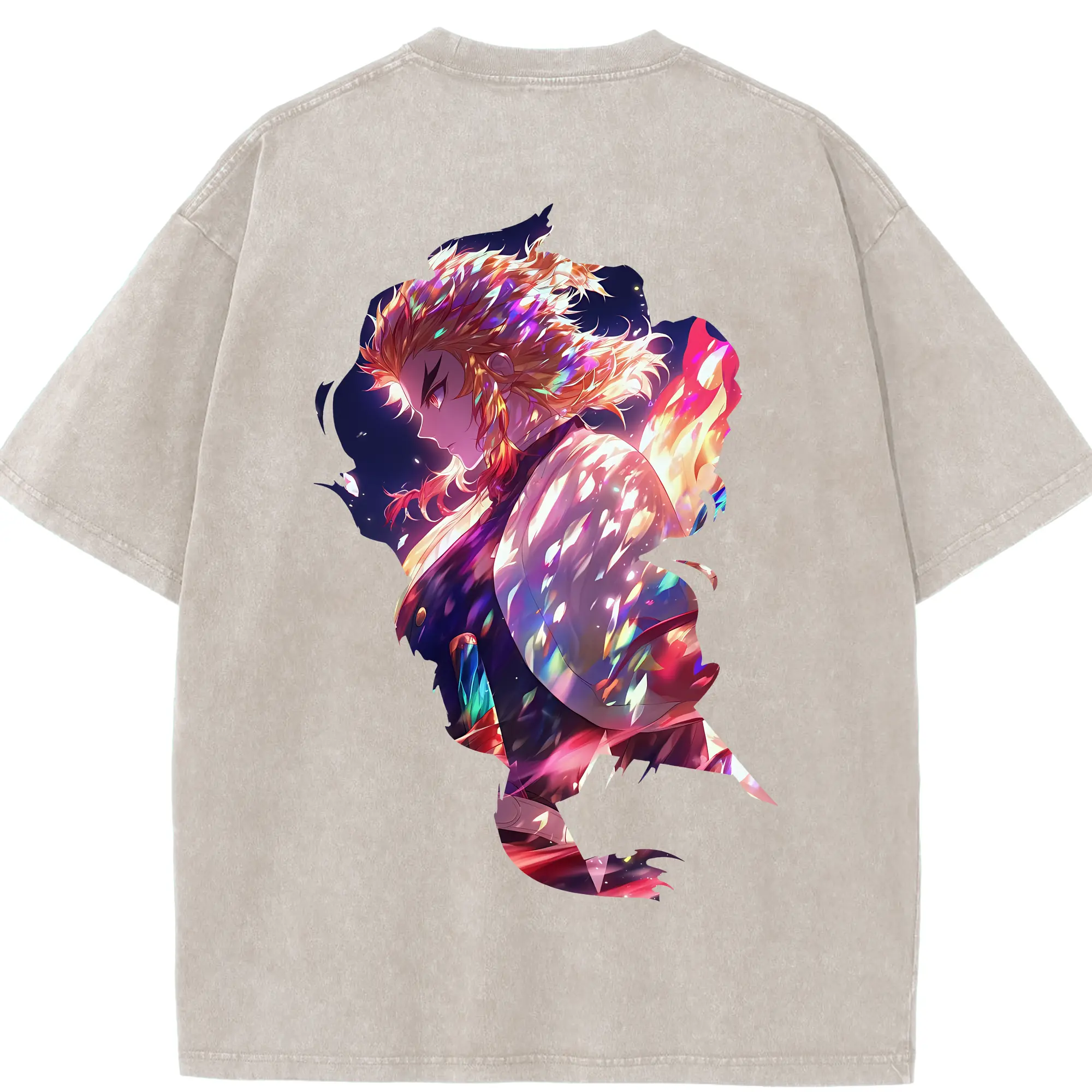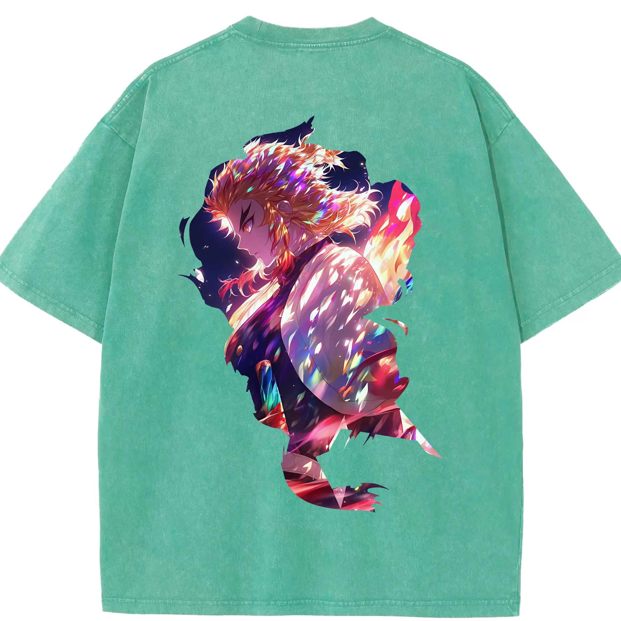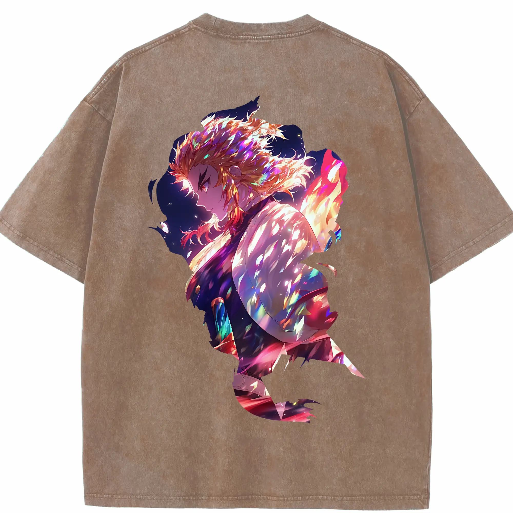 鬼滅の刃 グッズ,煉獄 杏寿郎 - 綿100% 半袖Tシャツ ・ フロントプリント ・ 快適 通気性 ・ 日常使い 散歩 スポーツ用