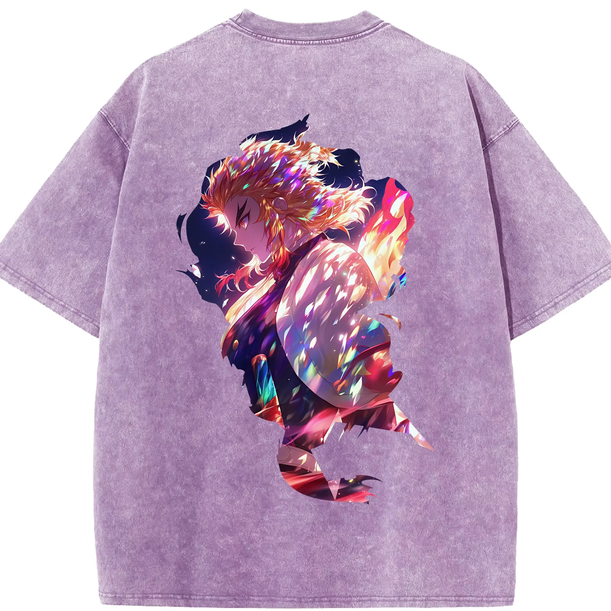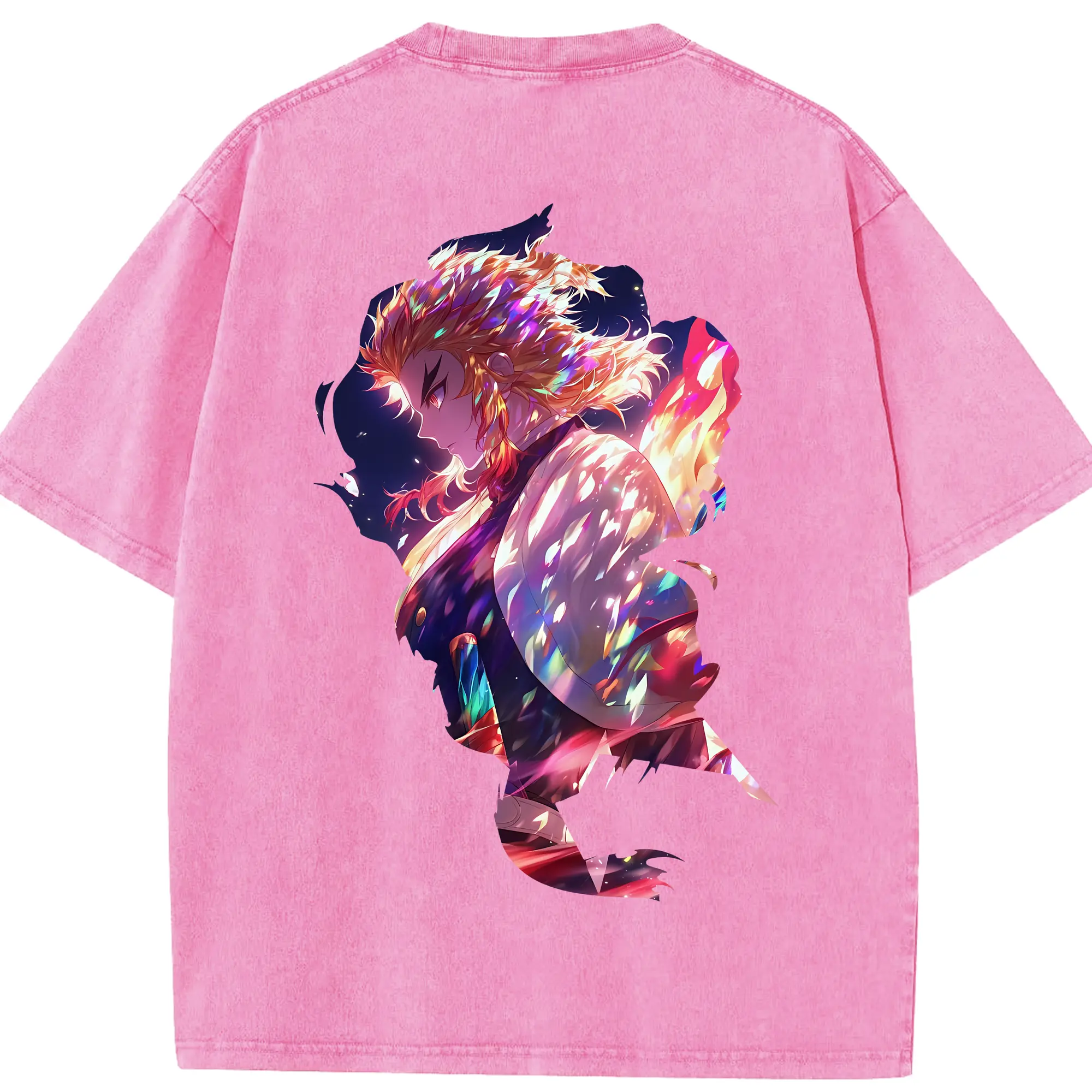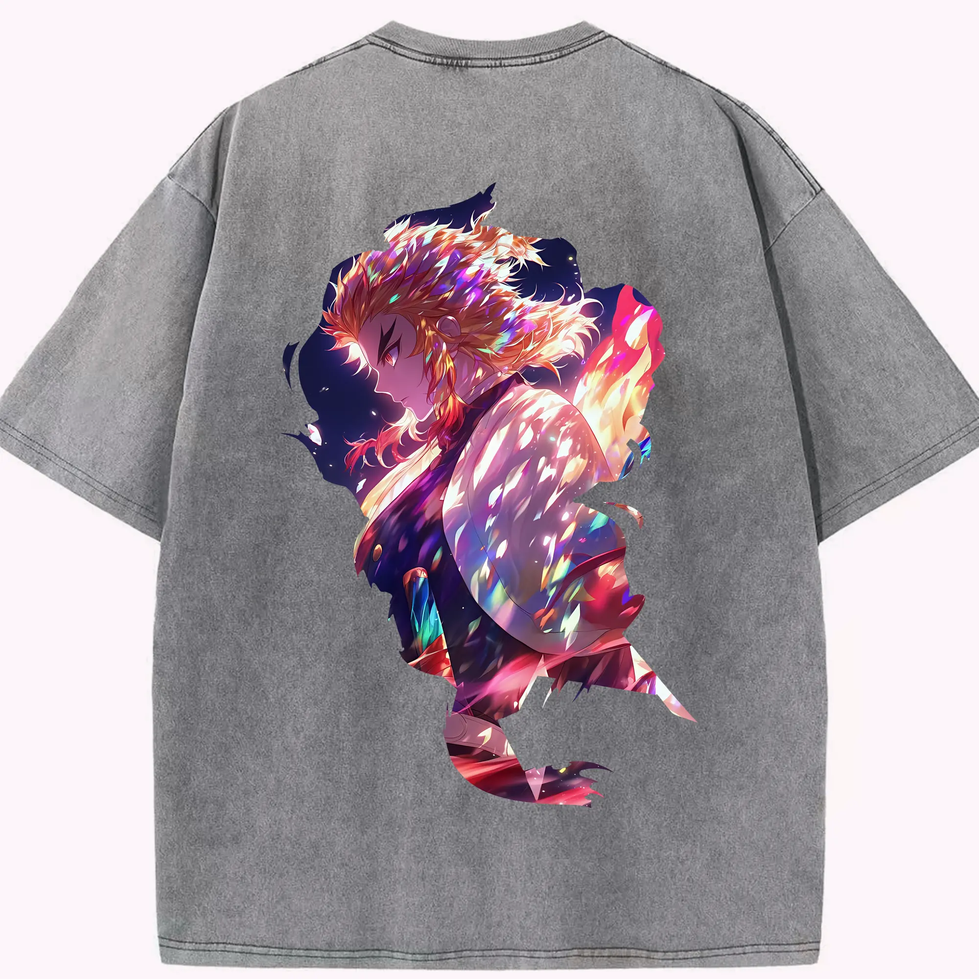 鬼滅の刃 グッズ,煉獄 杏寿郎 - 綿100% 半袖Tシャツ ・ バックプリント ・ 快適 通気性 ・ 日常使い 散歩 スポーツ用