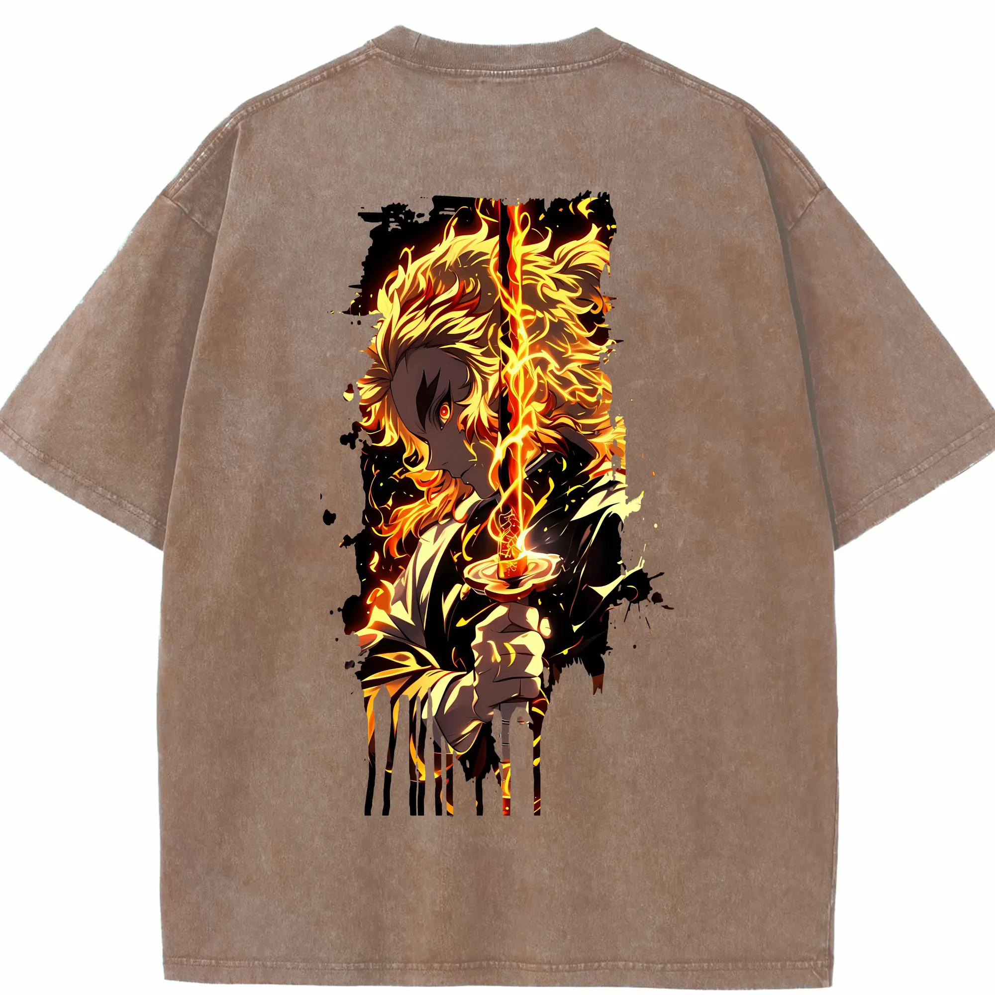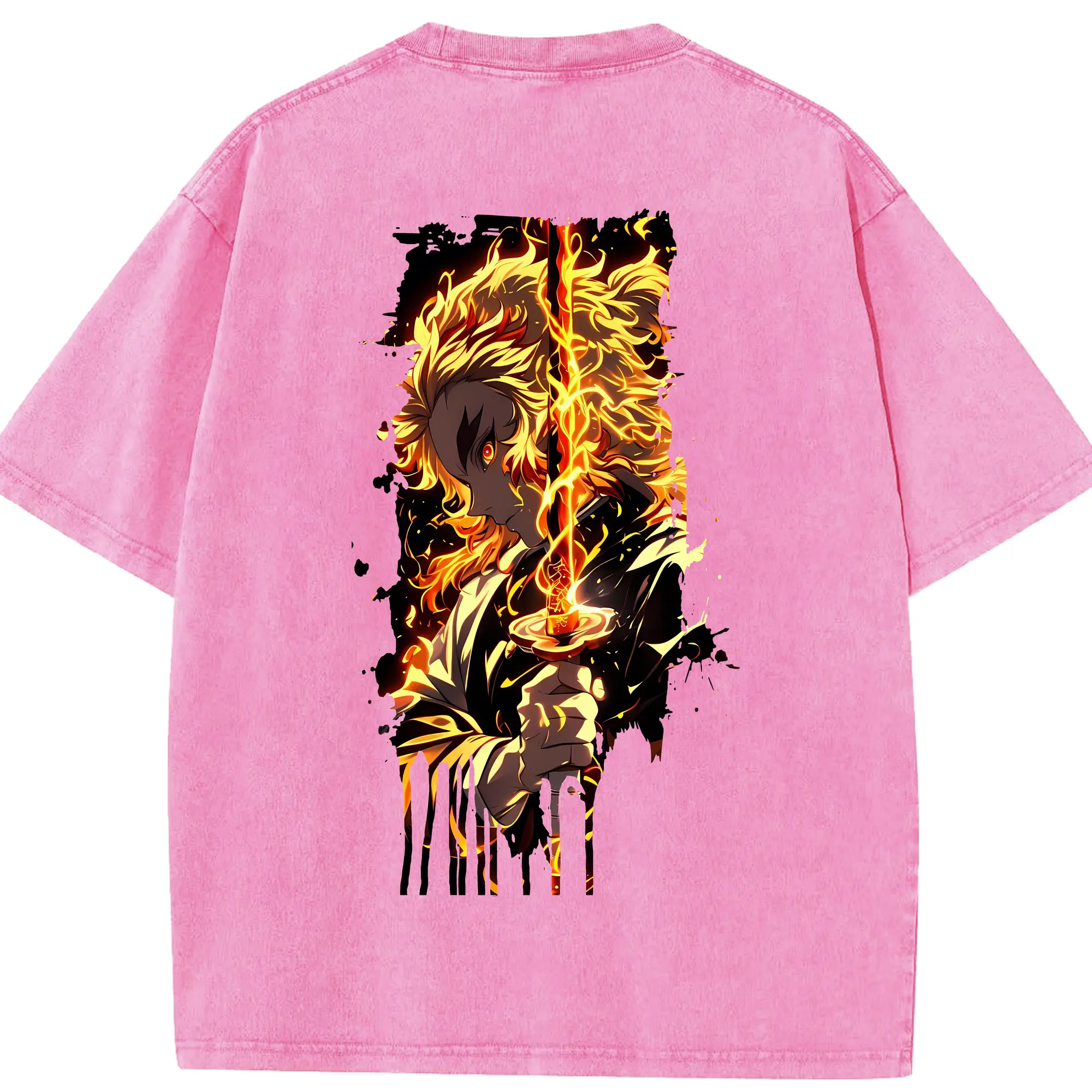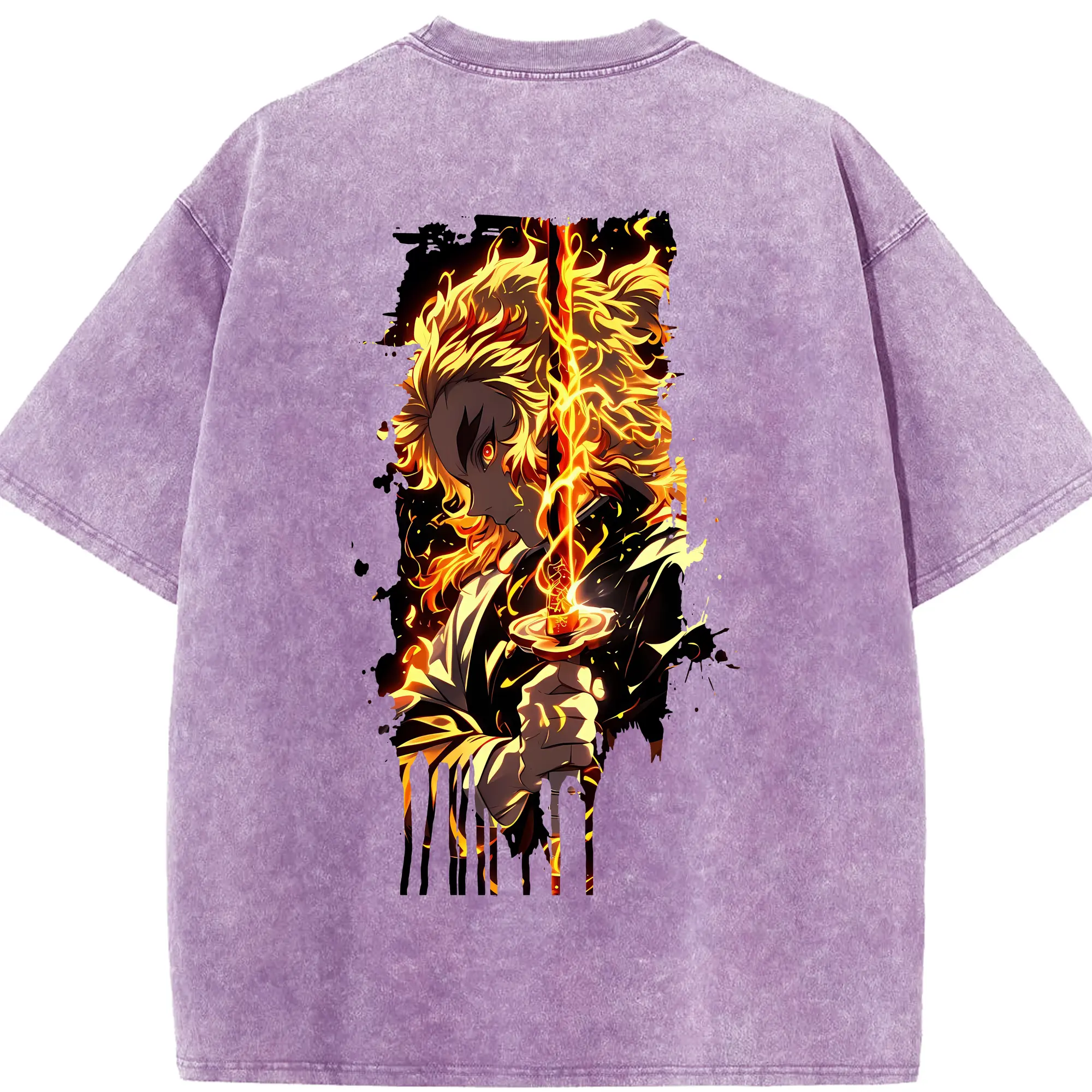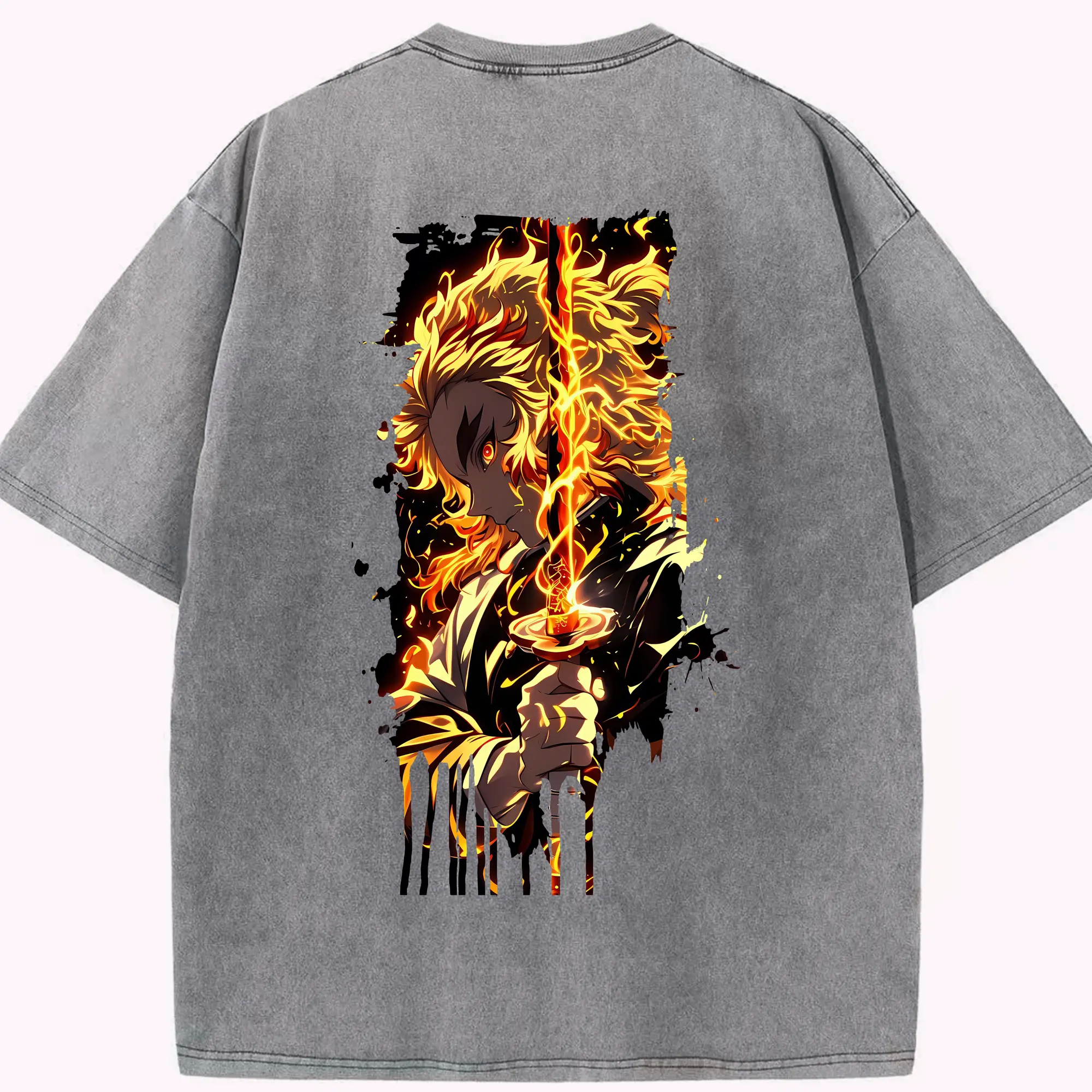 鬼滅の刃 グッズ,煉獄 杏寿郎 - 綿100% 半袖Tシャツ ・ バックプリント ・ 快適 通気性 ・ 日常使い 散歩 スポーツ用