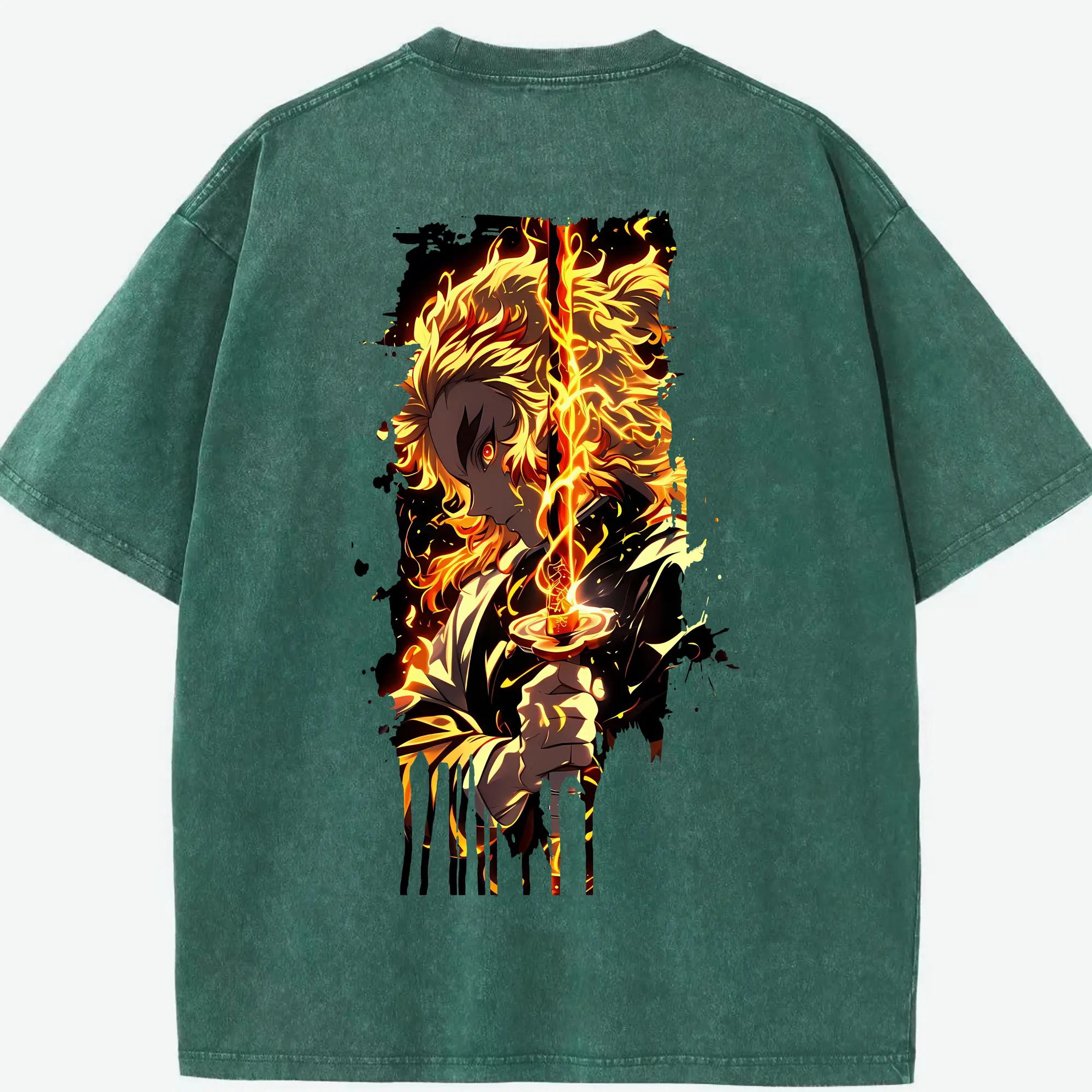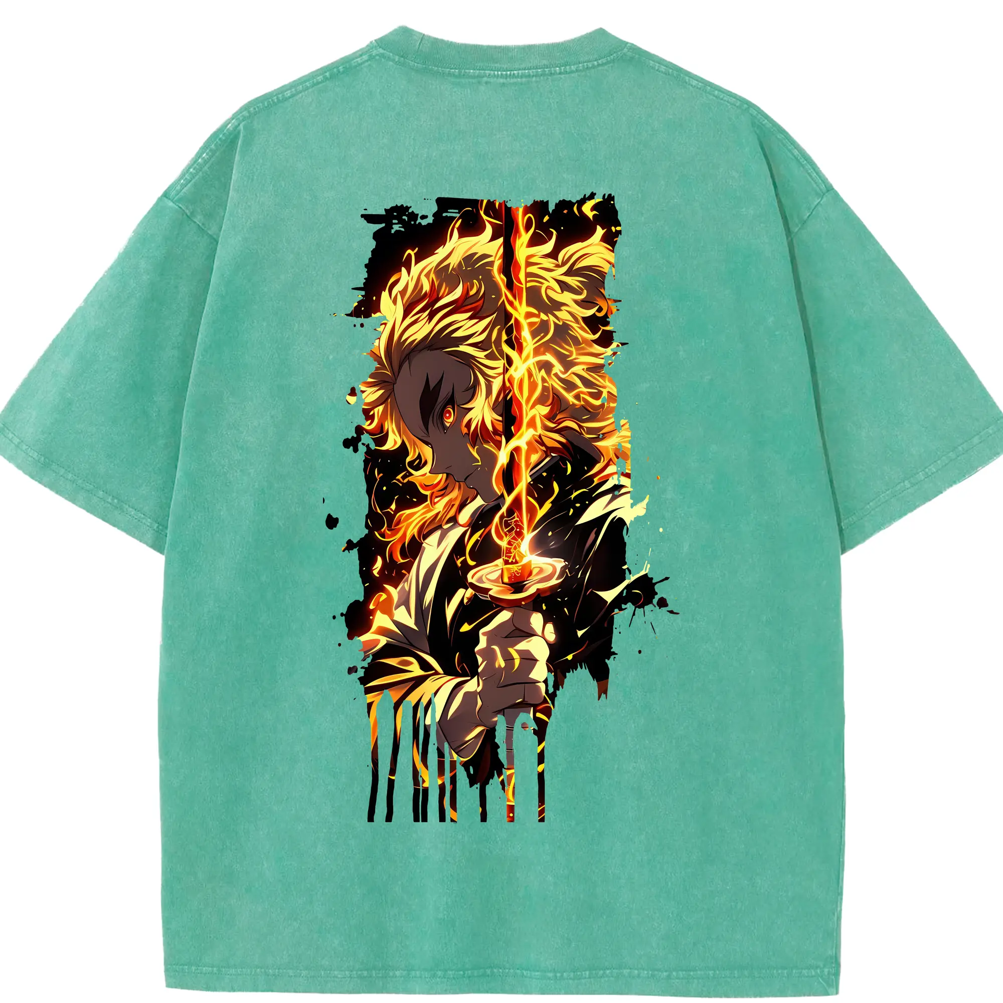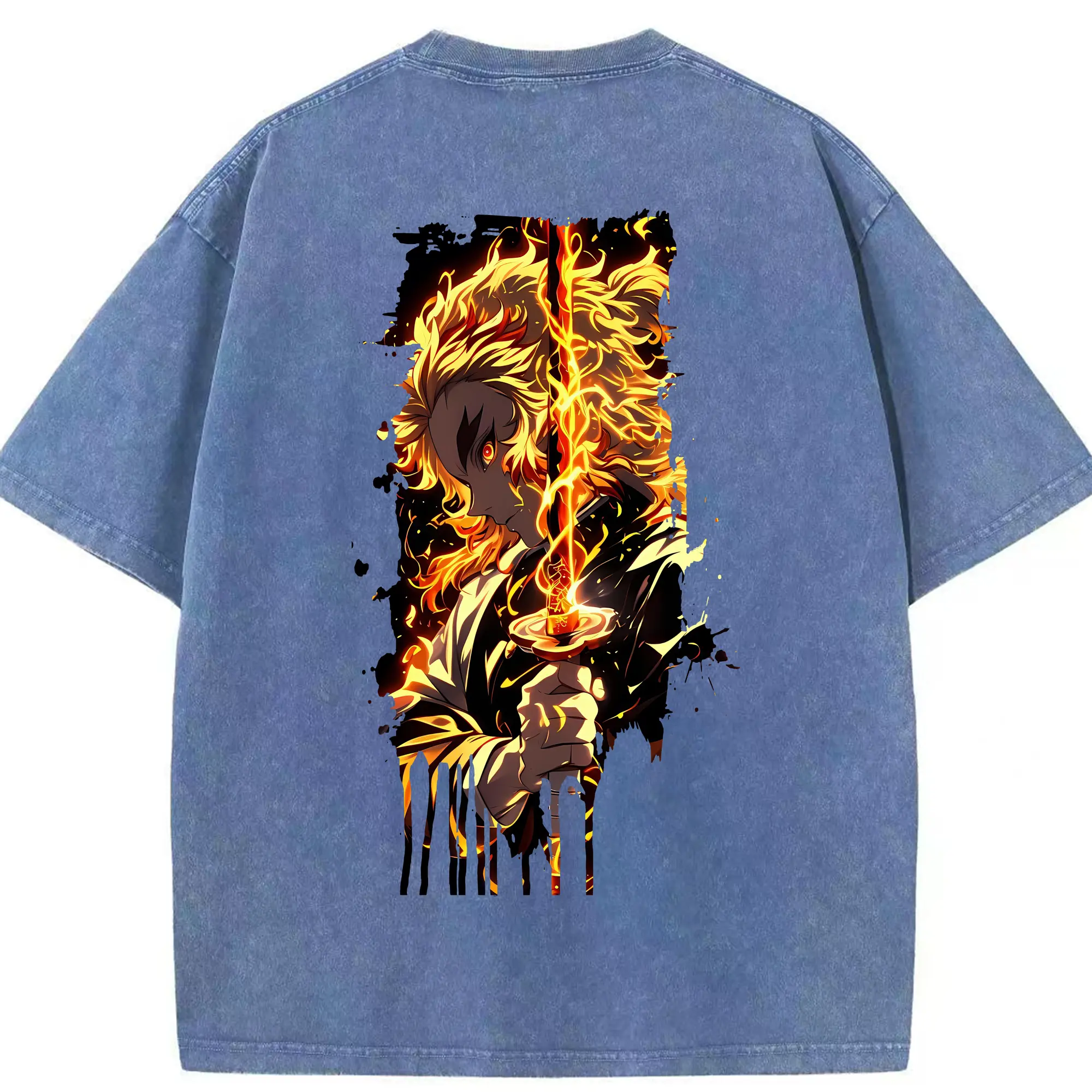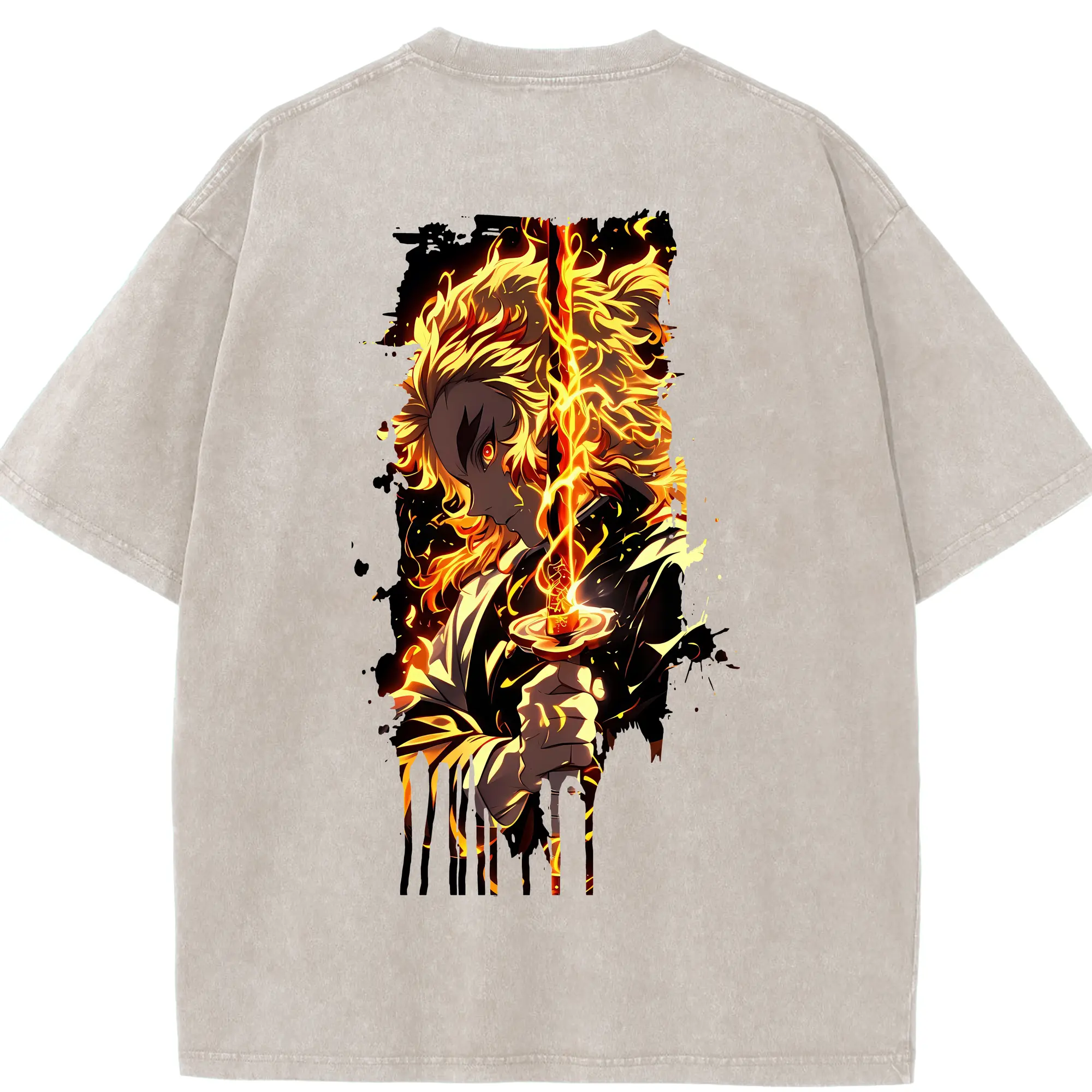 鬼滅の刃 グッズ,煉獄 杏寿郎 - 綿100% 半袖Tシャツ ・ バックプリント ・ 快適 通気性 ・ 日常使い 散歩 スポーツ用