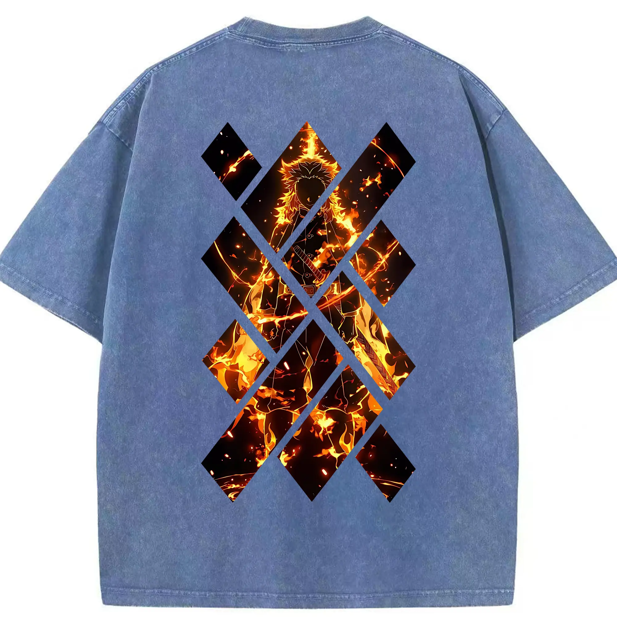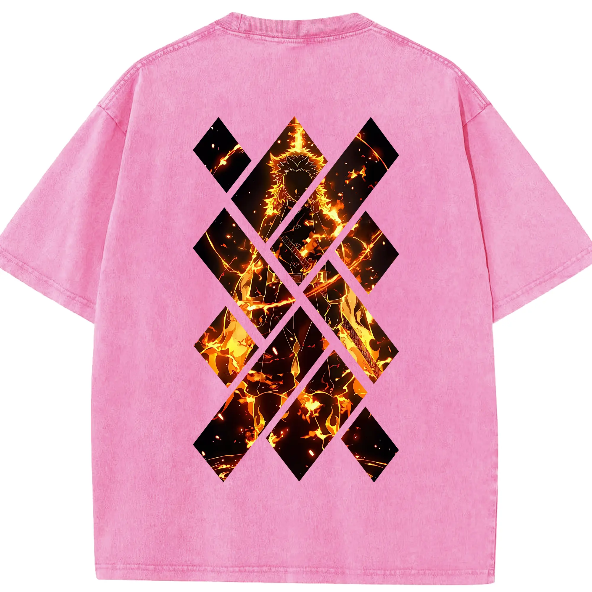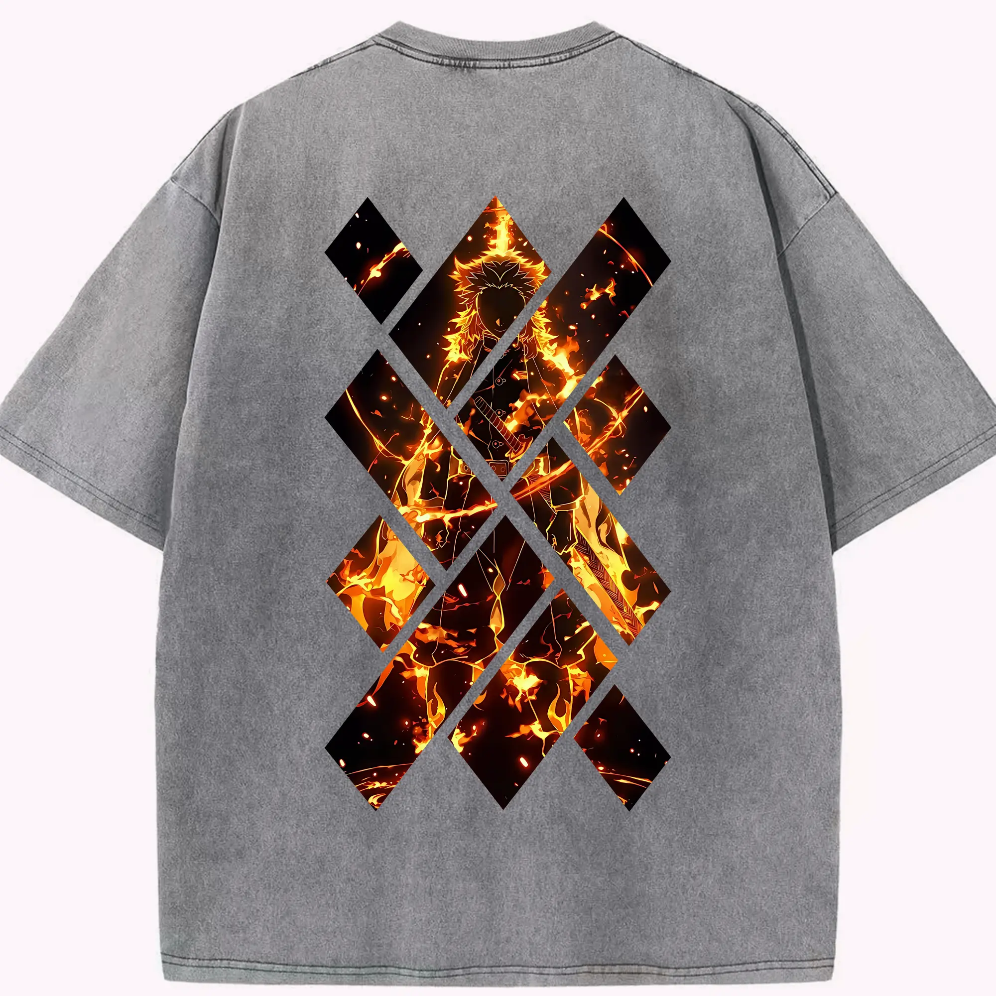 鬼滅の刃 グッズ,煉獄 杏寿郎 - 綿100% 半袖Tシャツ ・ バックプリント ・ 快適 通気性 ・ 日常使い 散歩 スポーツ用
