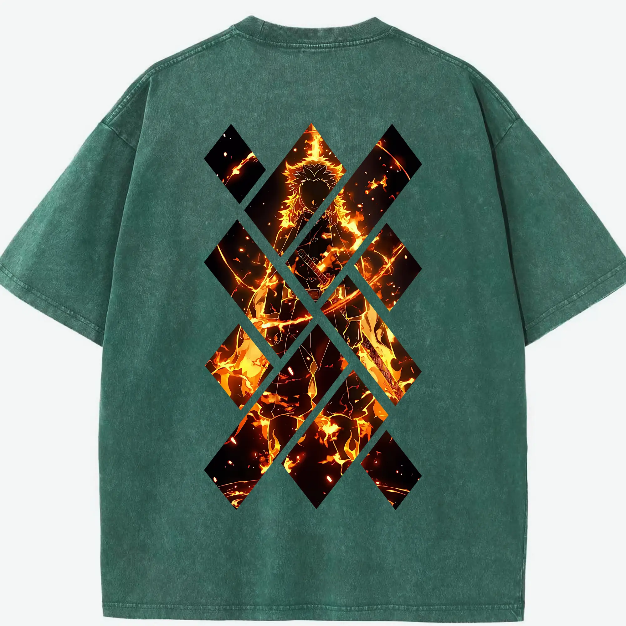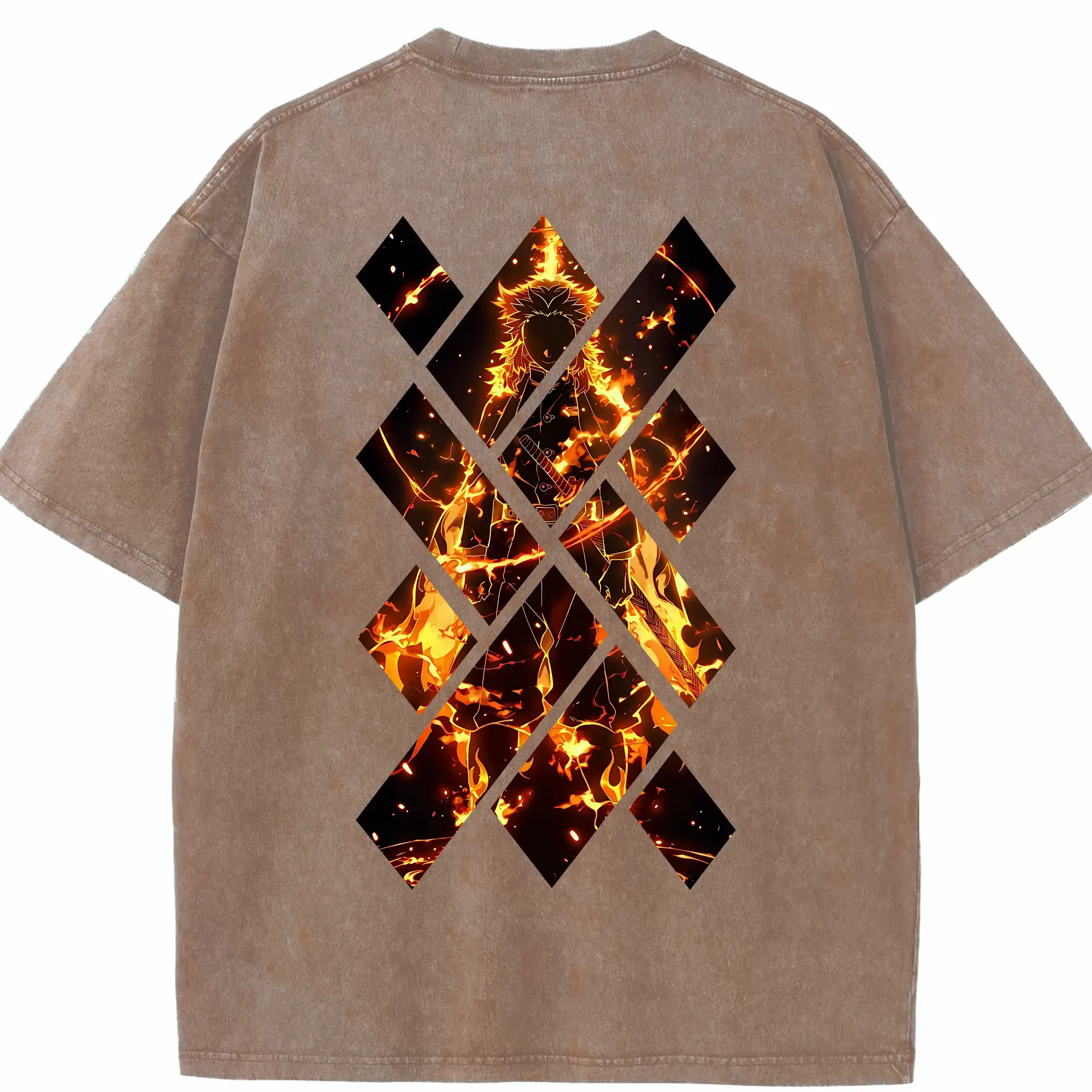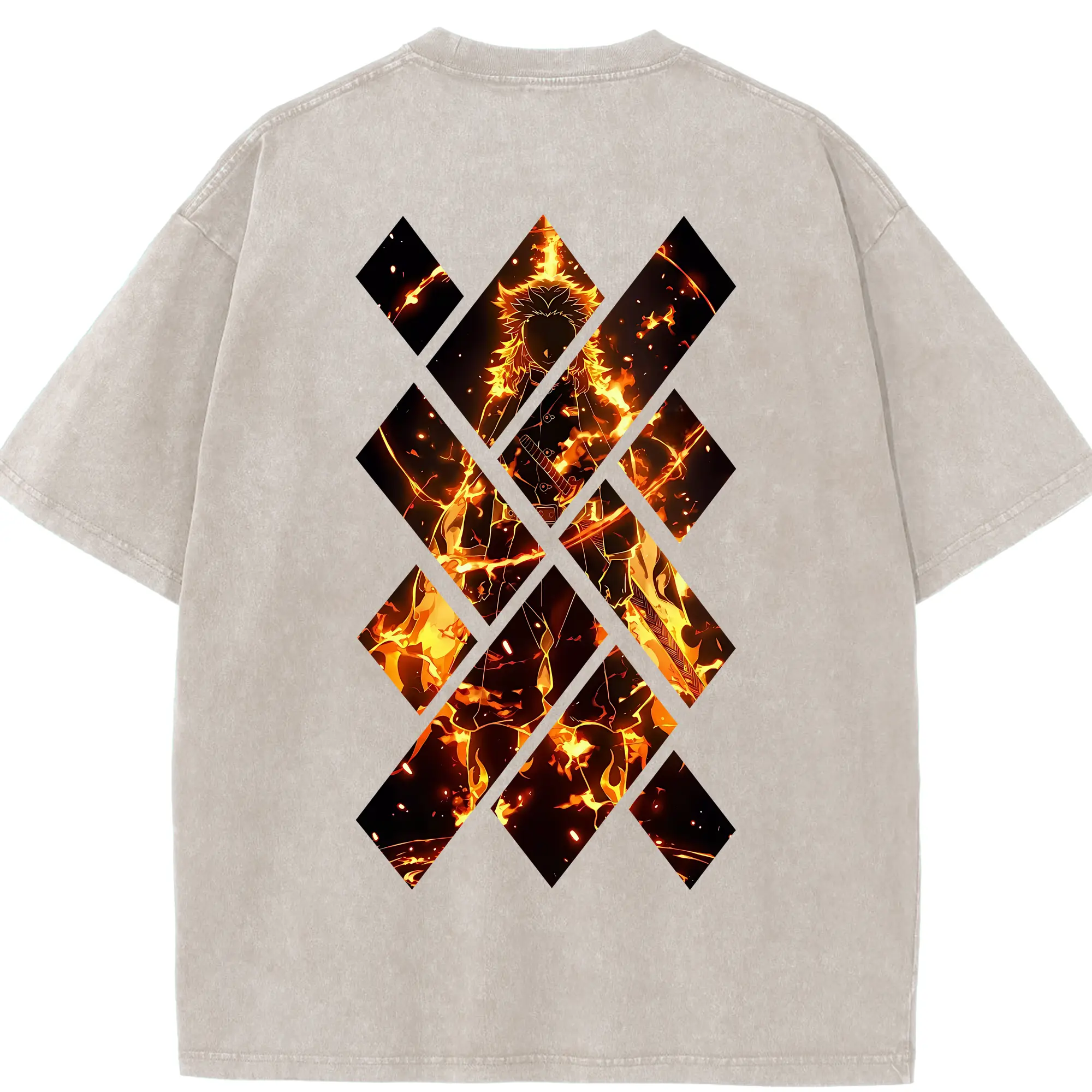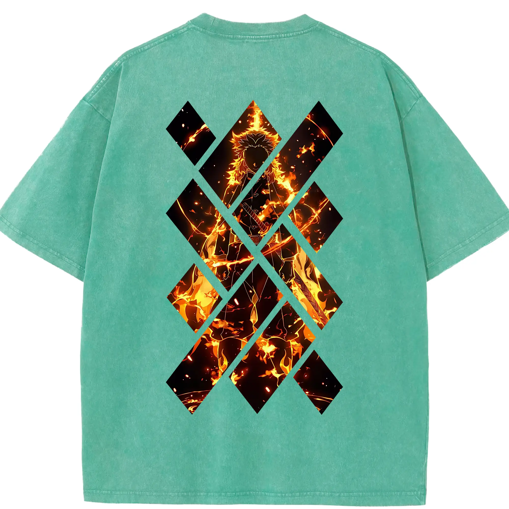 鬼滅の刃 グッズ,煉獄 杏寿郎 - 綿100% 半袖Tシャツ ・ バックプリント ・ 快適 通気性 ・ 日常使い 散歩 スポーツ用