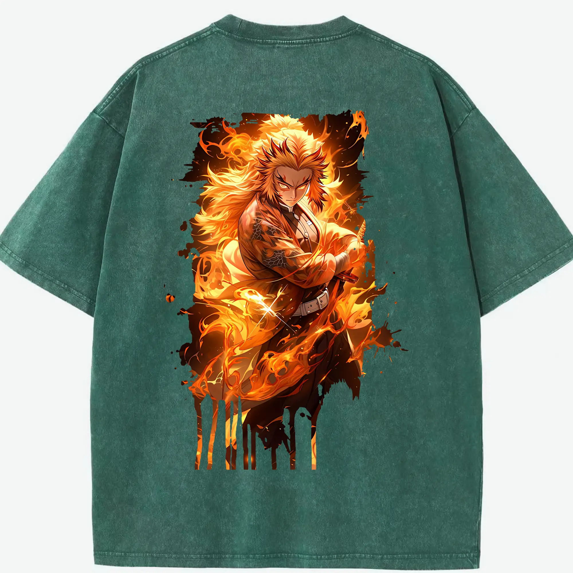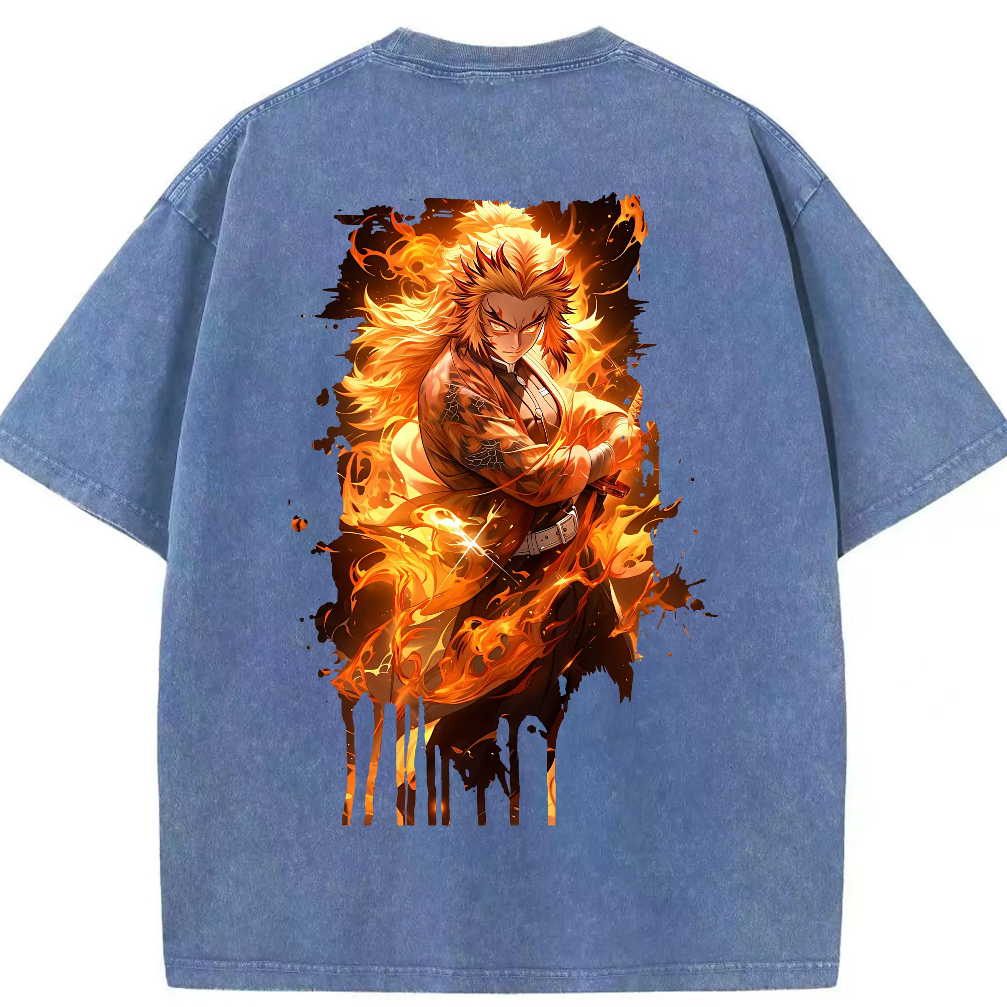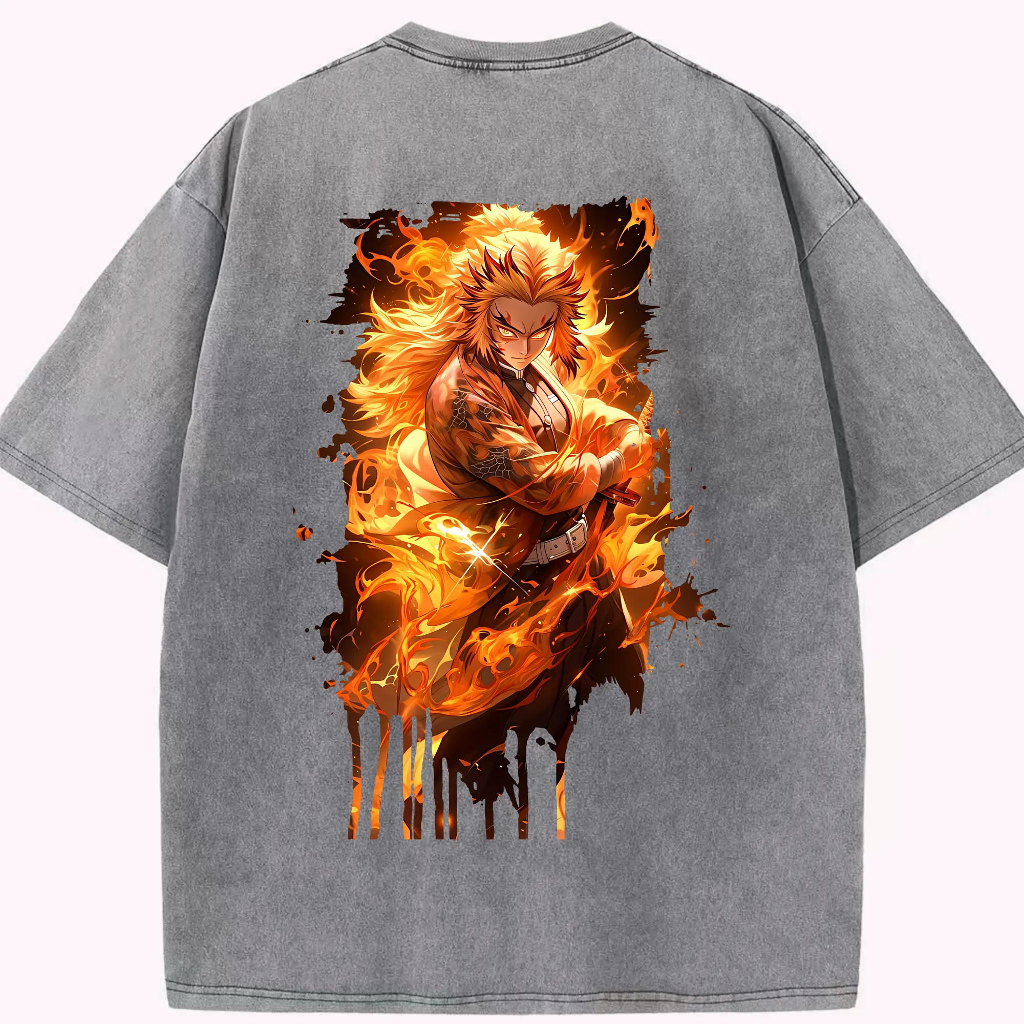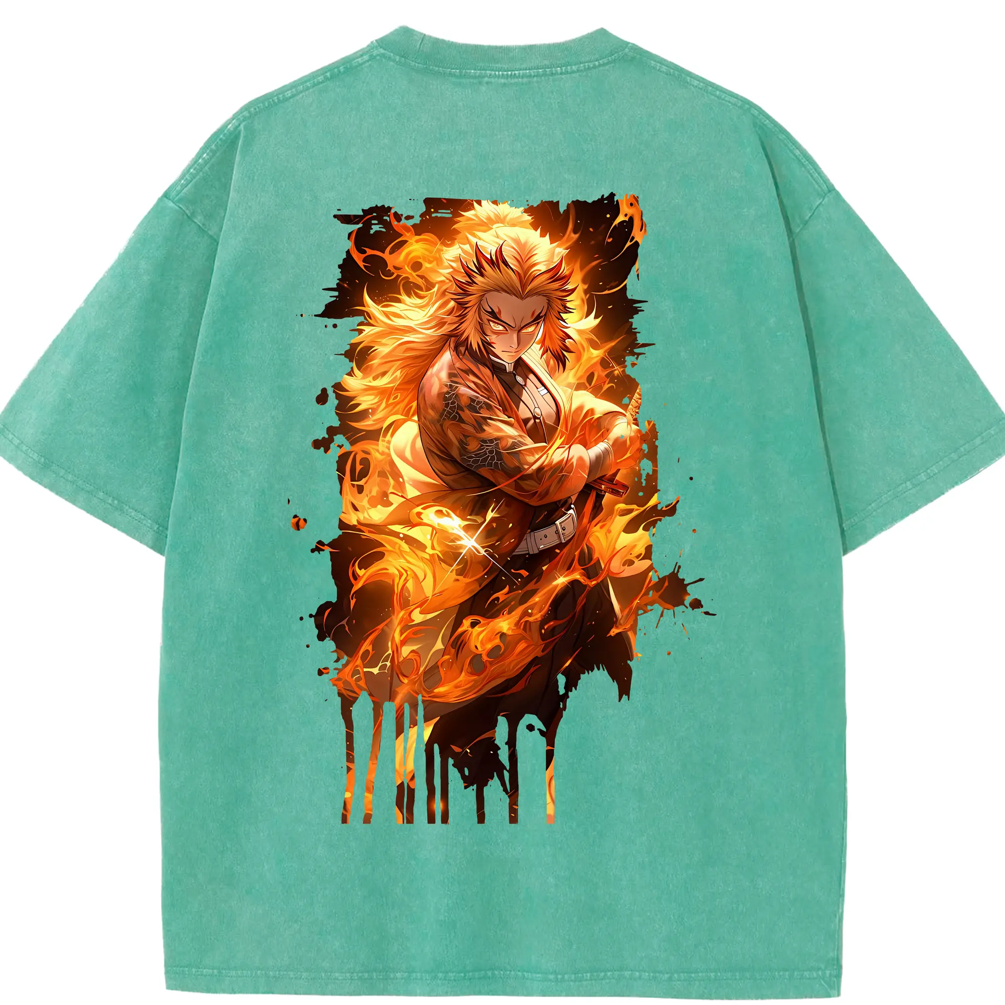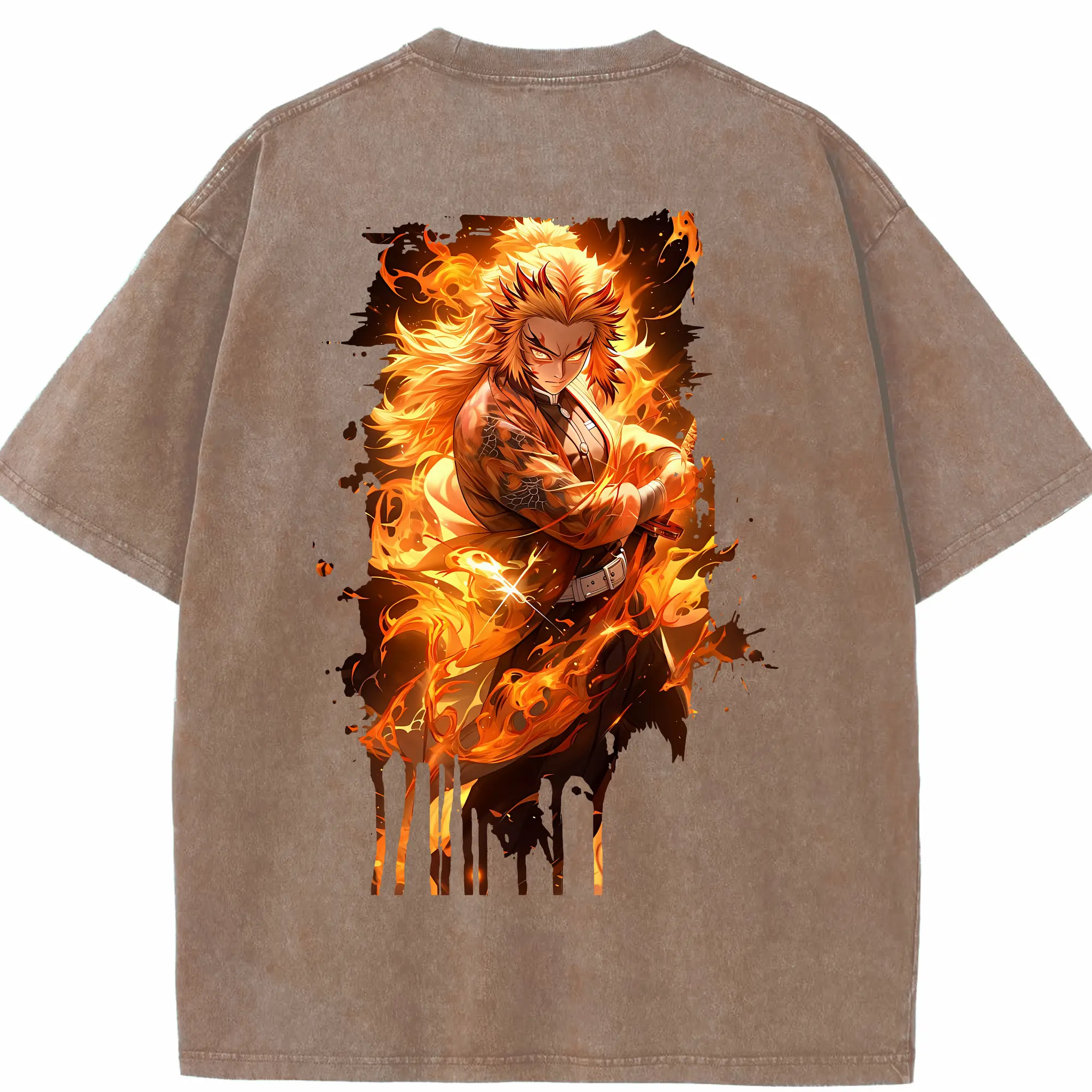 鬼滅の刃 グッズ,煉獄 杏寿郎 - 綿100% 半袖Tシャツ ・ フロントプリント ・ 快適 通気性 ・ 日常使い 散歩 スポーツ用