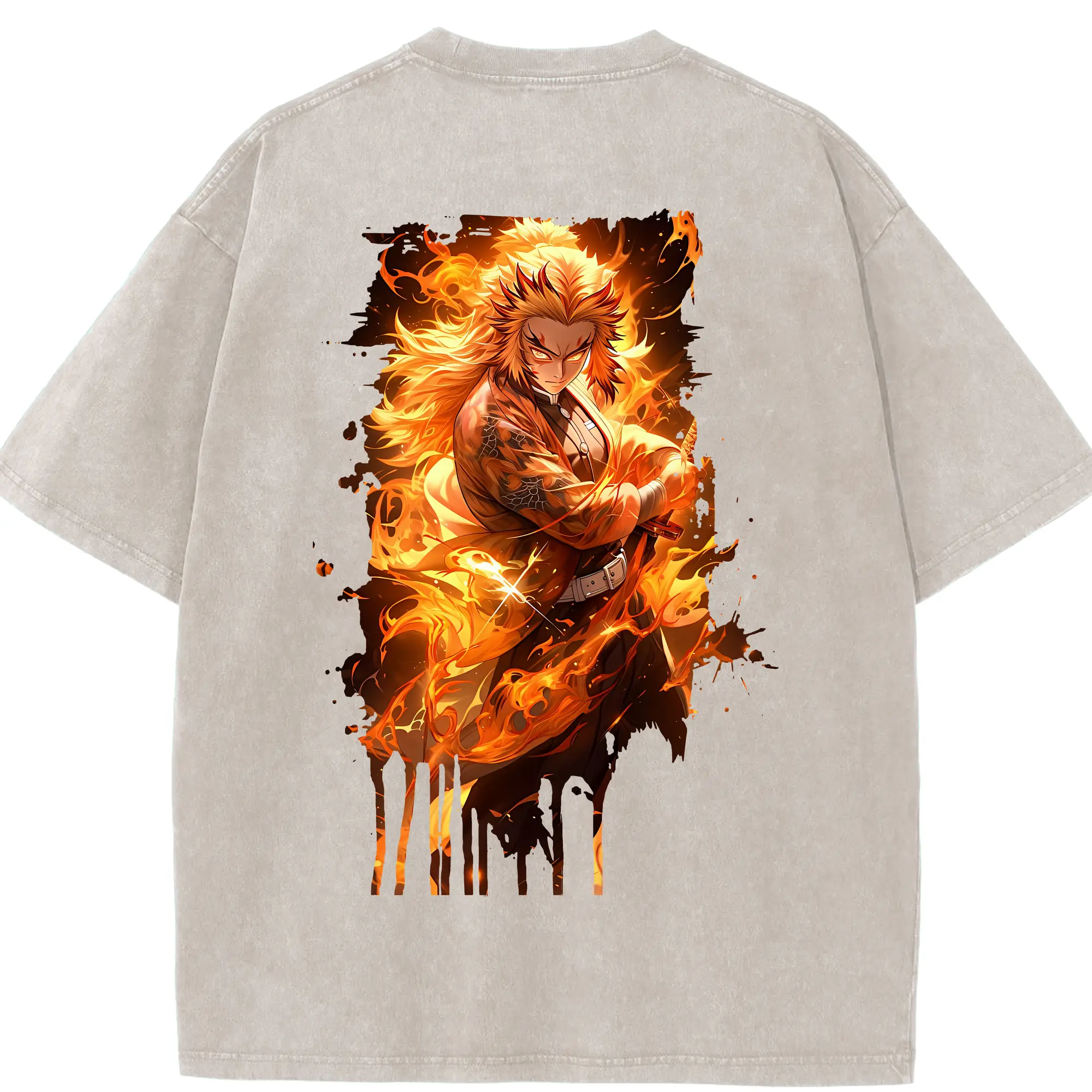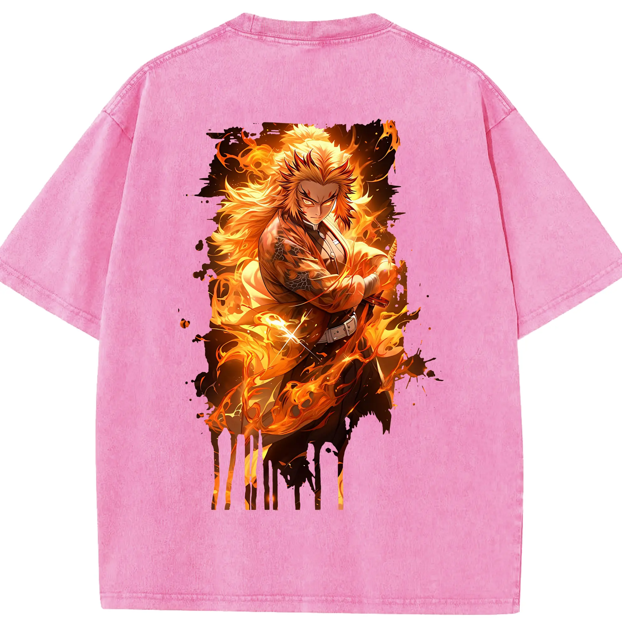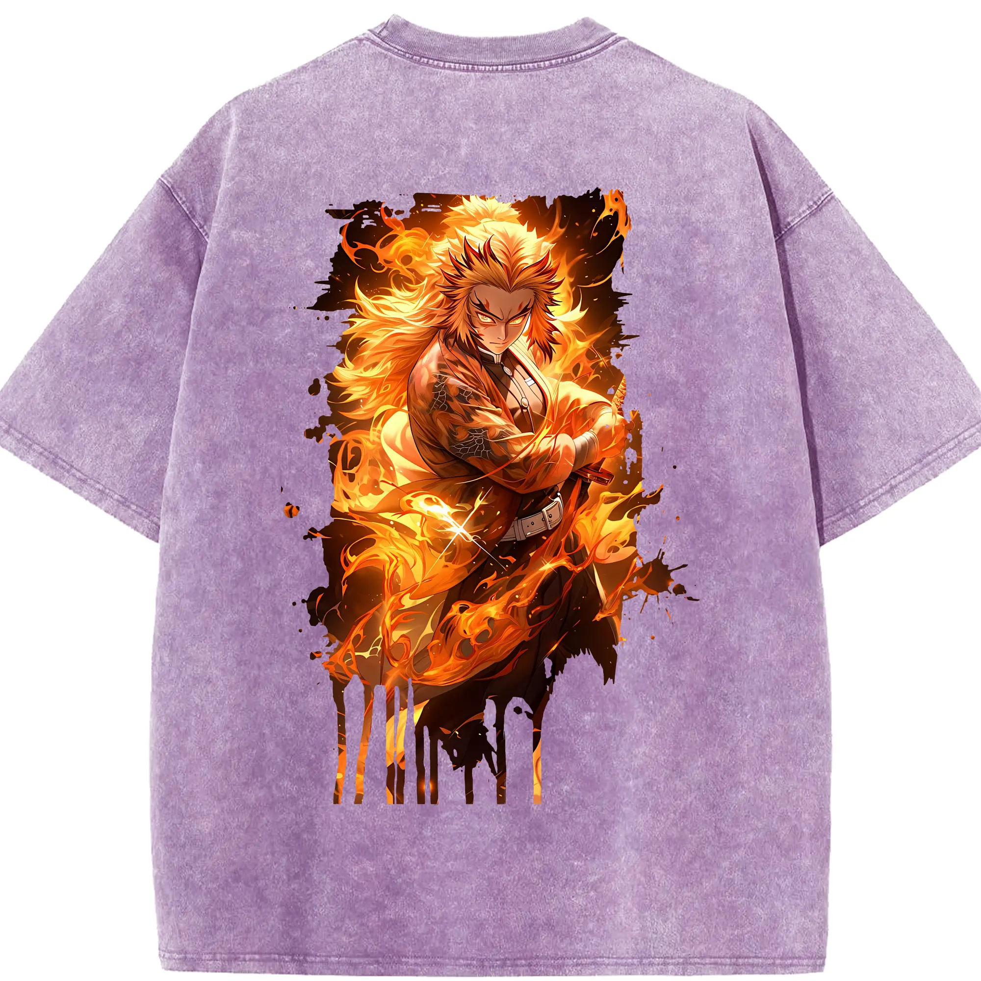 鬼滅の刃 グッズ,煉獄 杏寿郎 - 綿100% 半袖Tシャツ ・ バックプリント ・ 快適 通気性 ・ 日常使い 散歩 スポーツ用