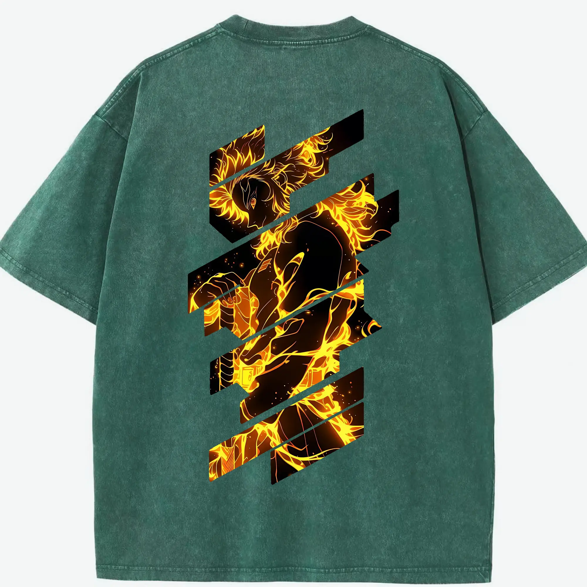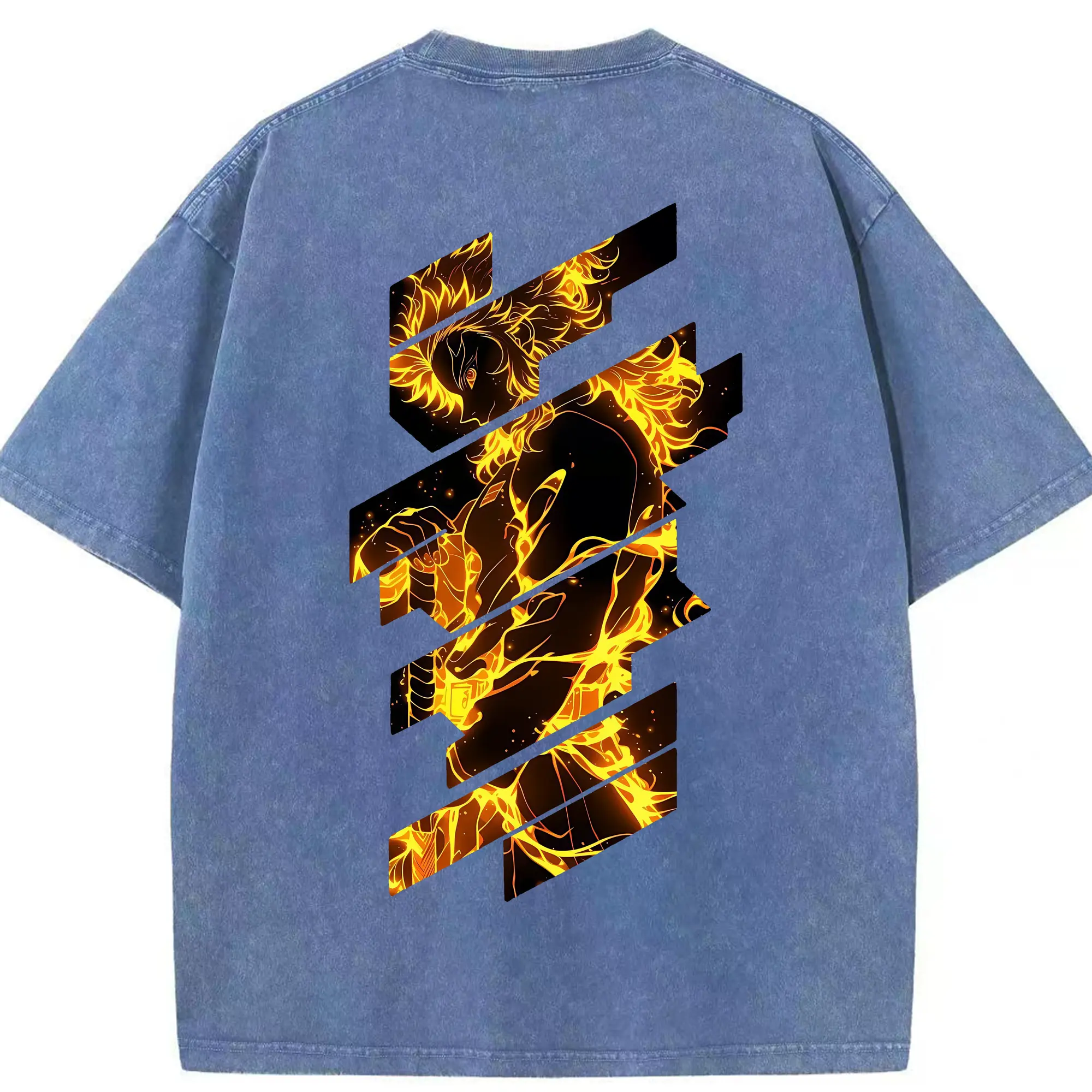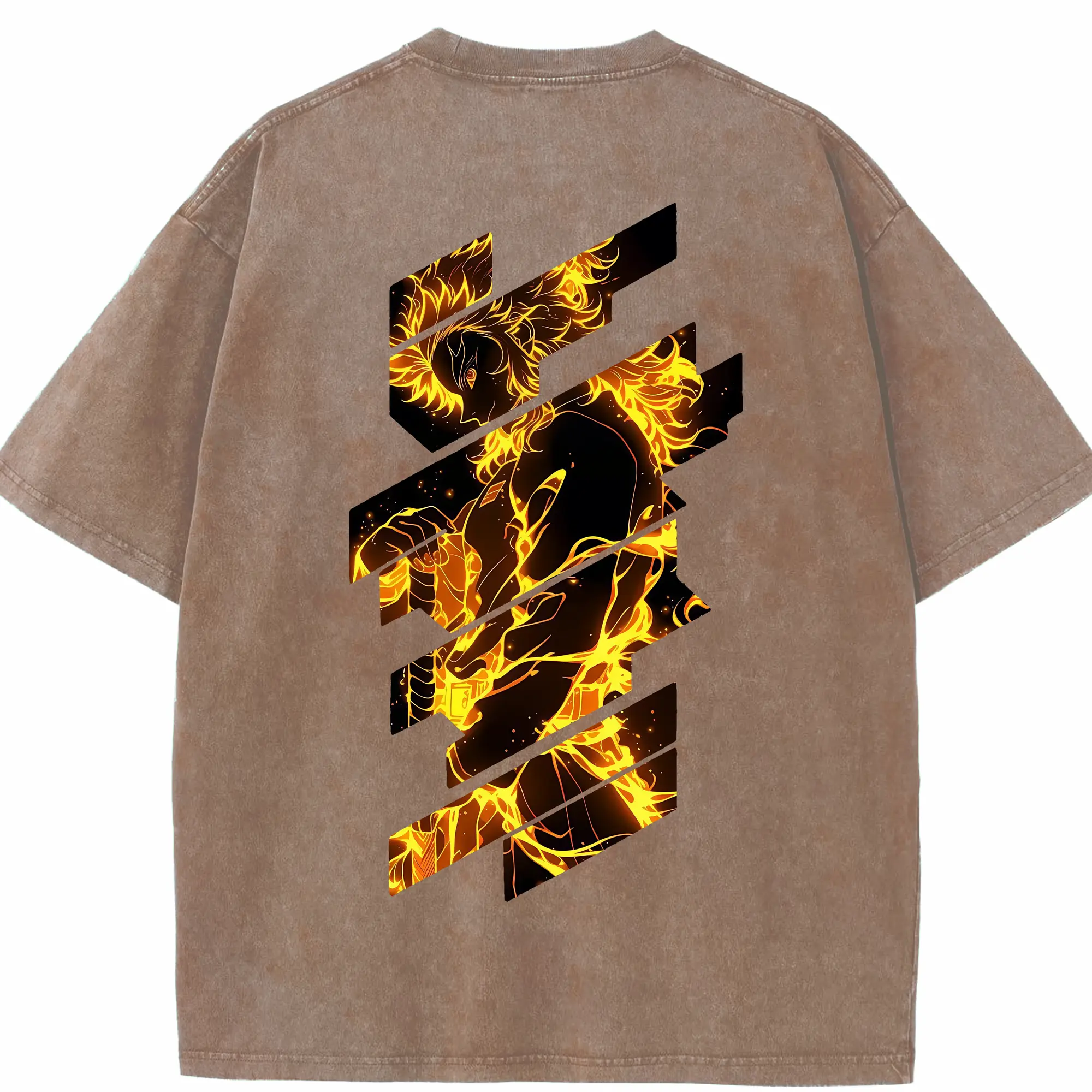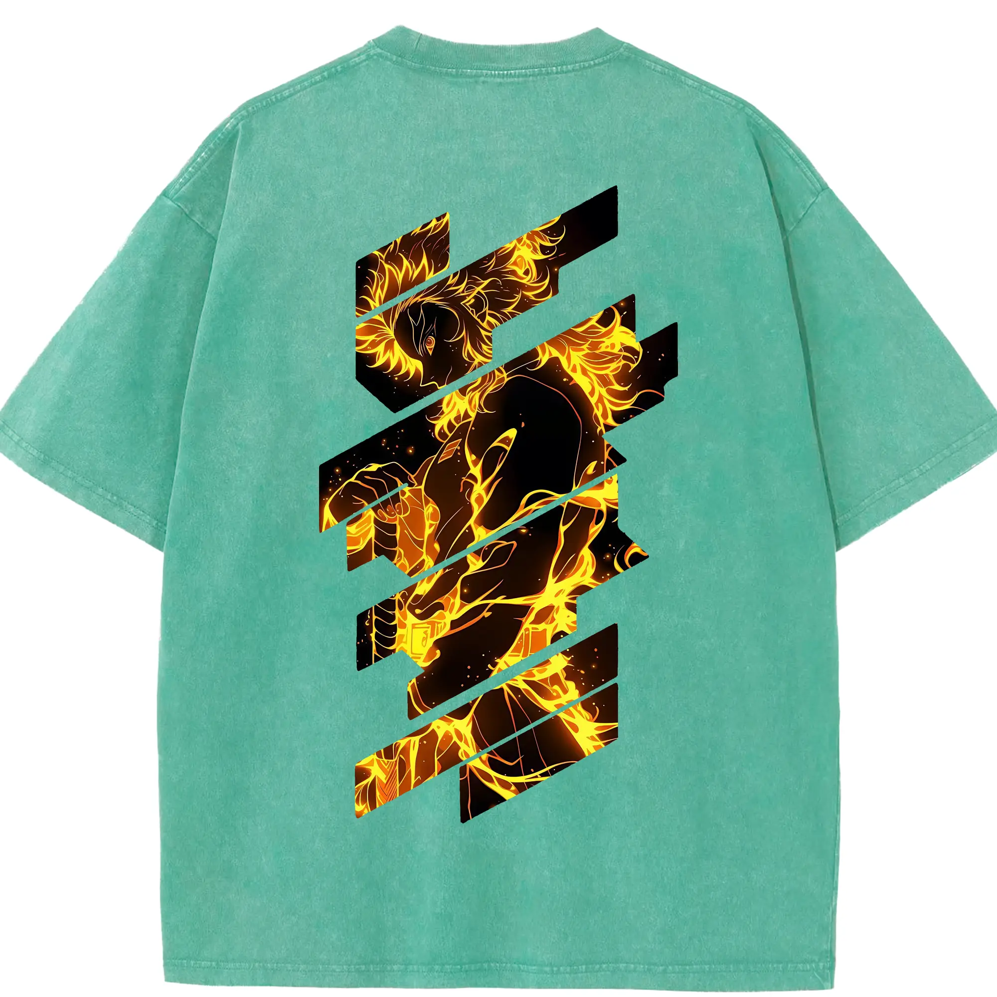 鬼滅の刃 グッズ,煉獄 杏寿郎 - 綿100% 半袖Tシャツ ・ フロントプリント ・ 快適 通気性 ・ 日常使い 散歩 スポーツ用