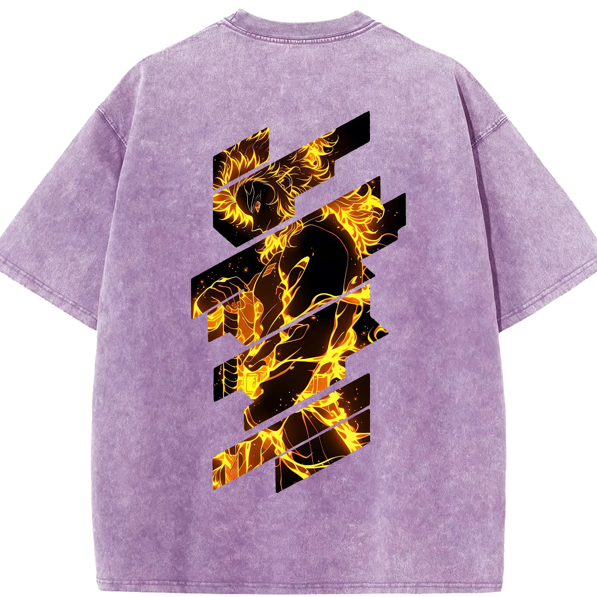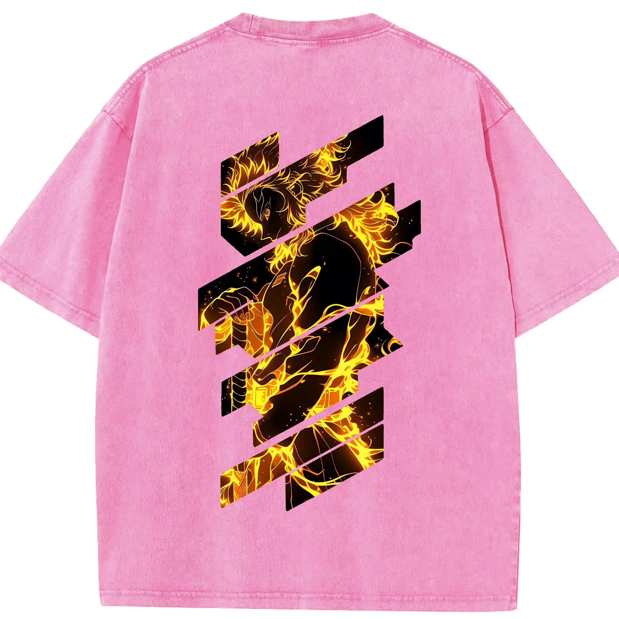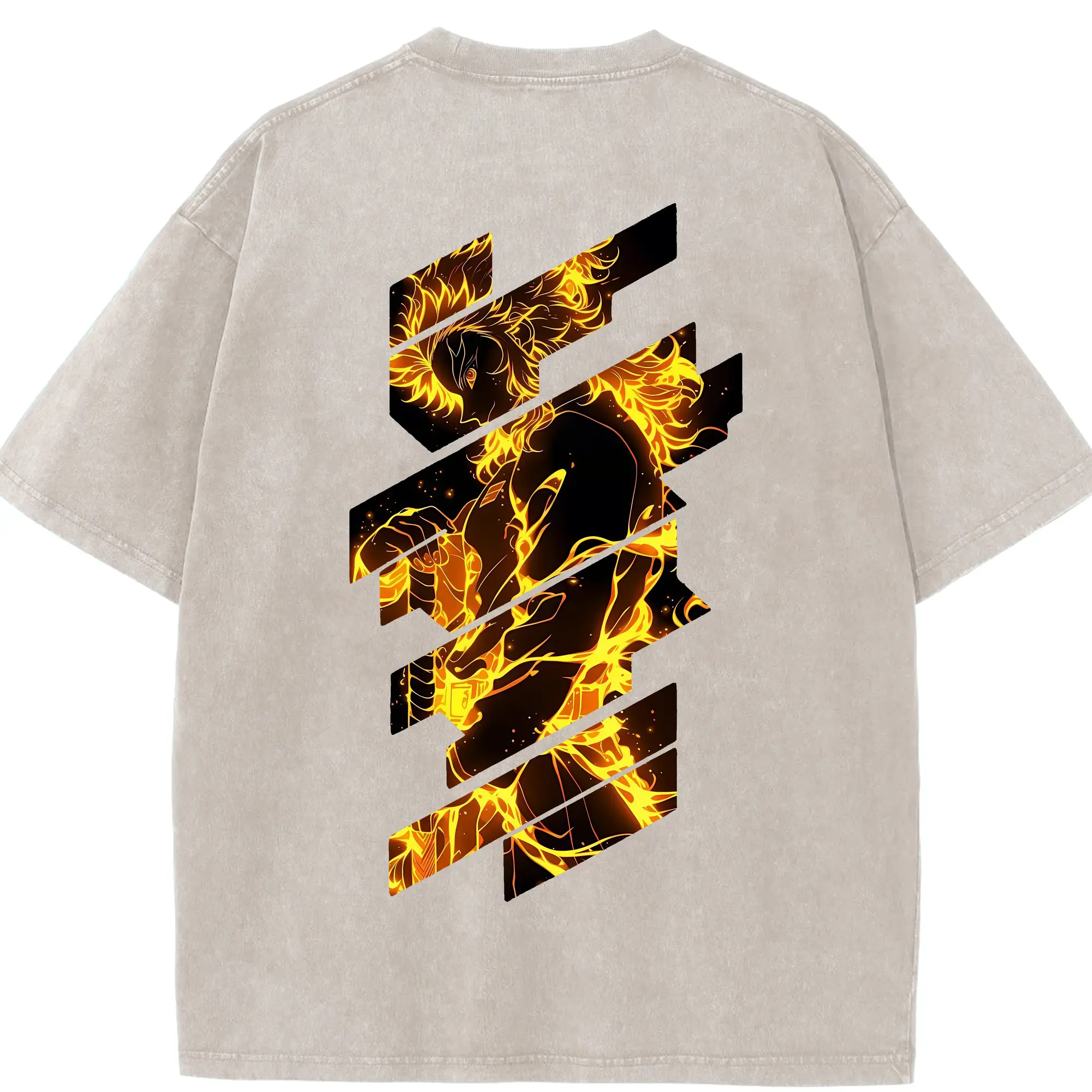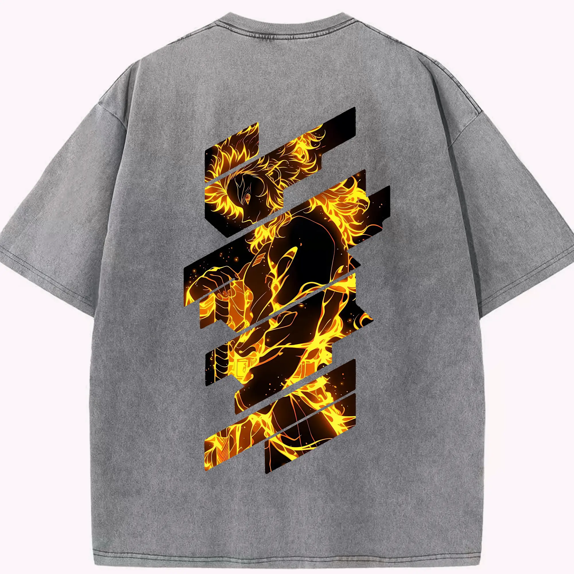 鬼滅の刃 グッズ,煉獄 杏寿郎 - 綿100% 半袖Tシャツ ・ バックプリント ・ 快適 通気性 ・ 日常使い 散歩 スポーツ用