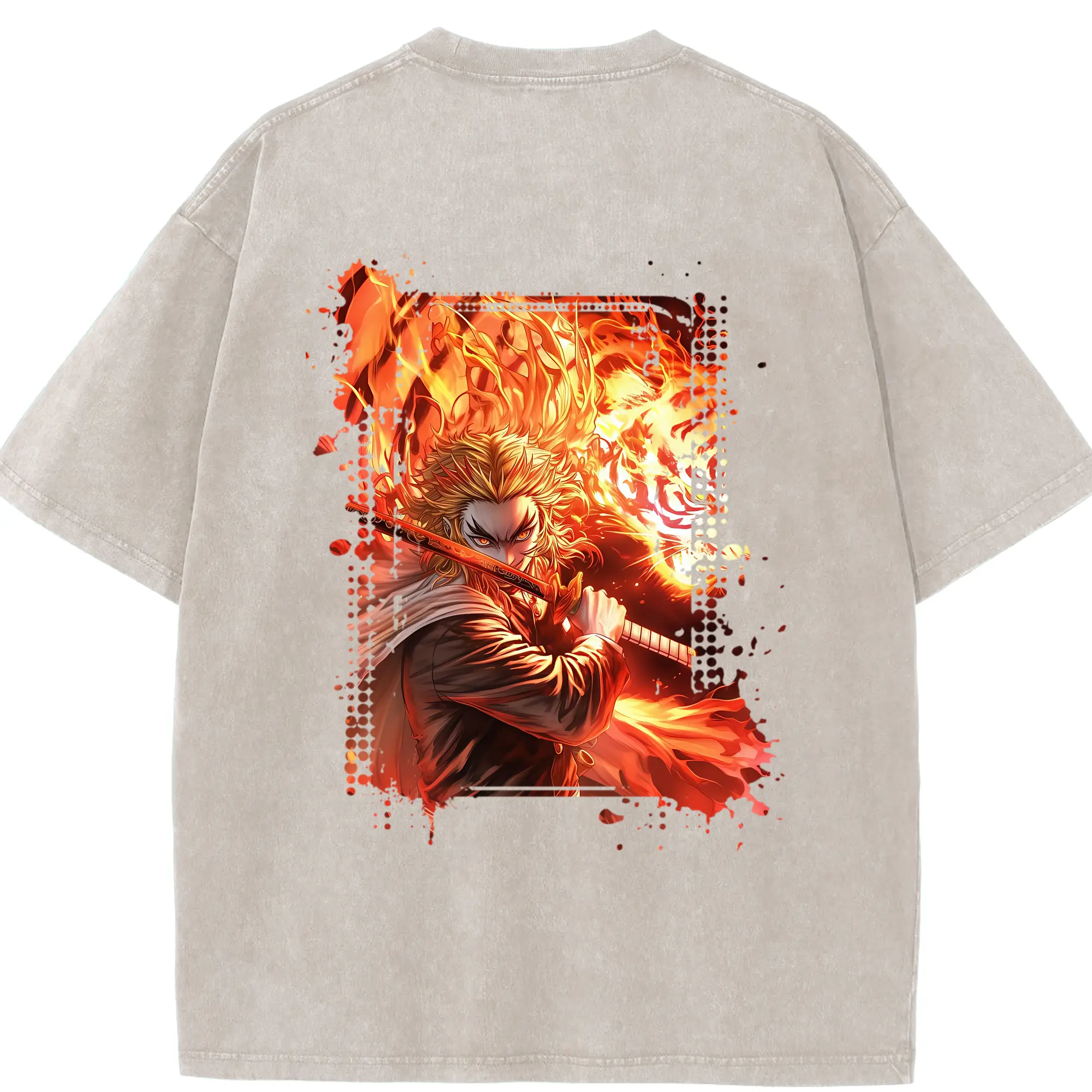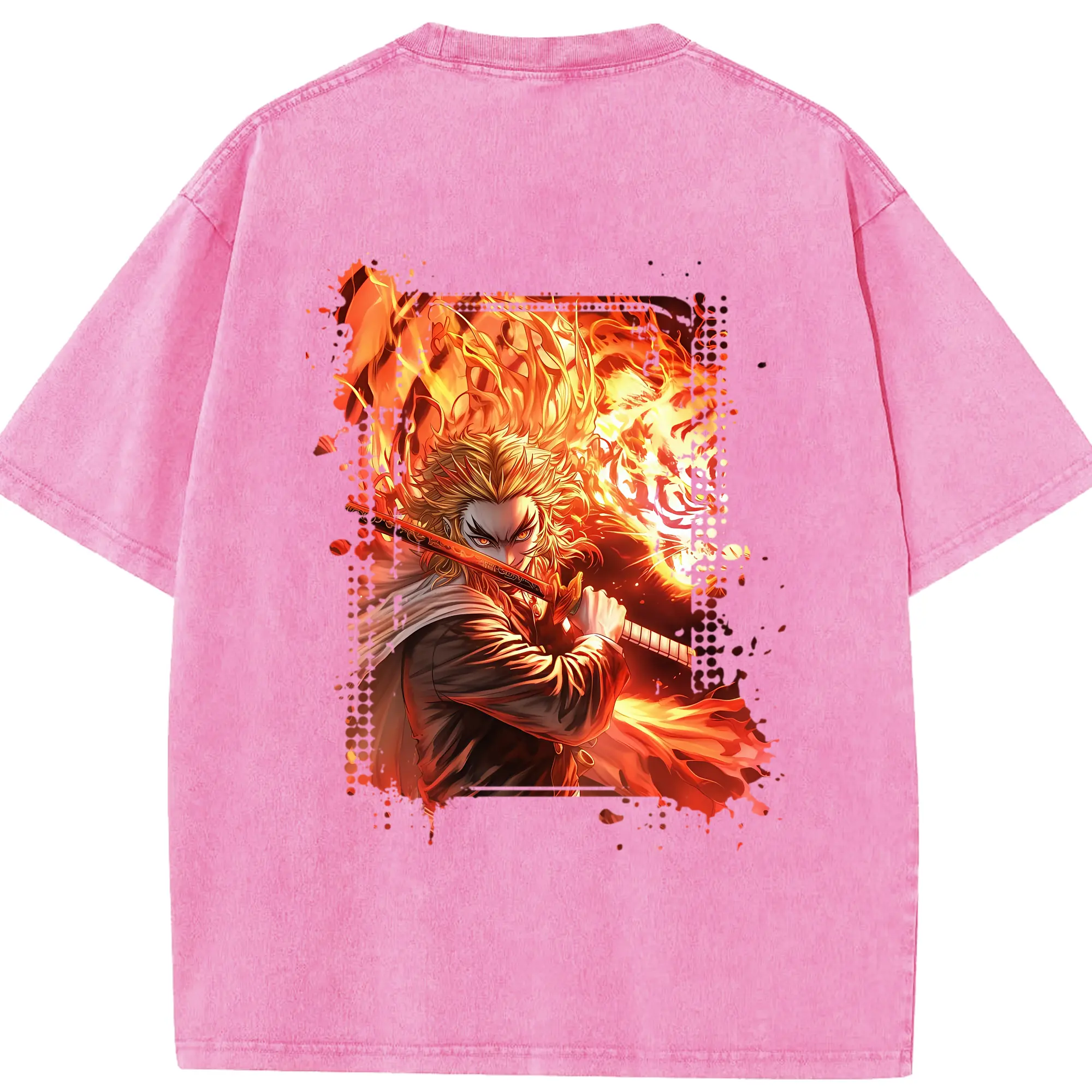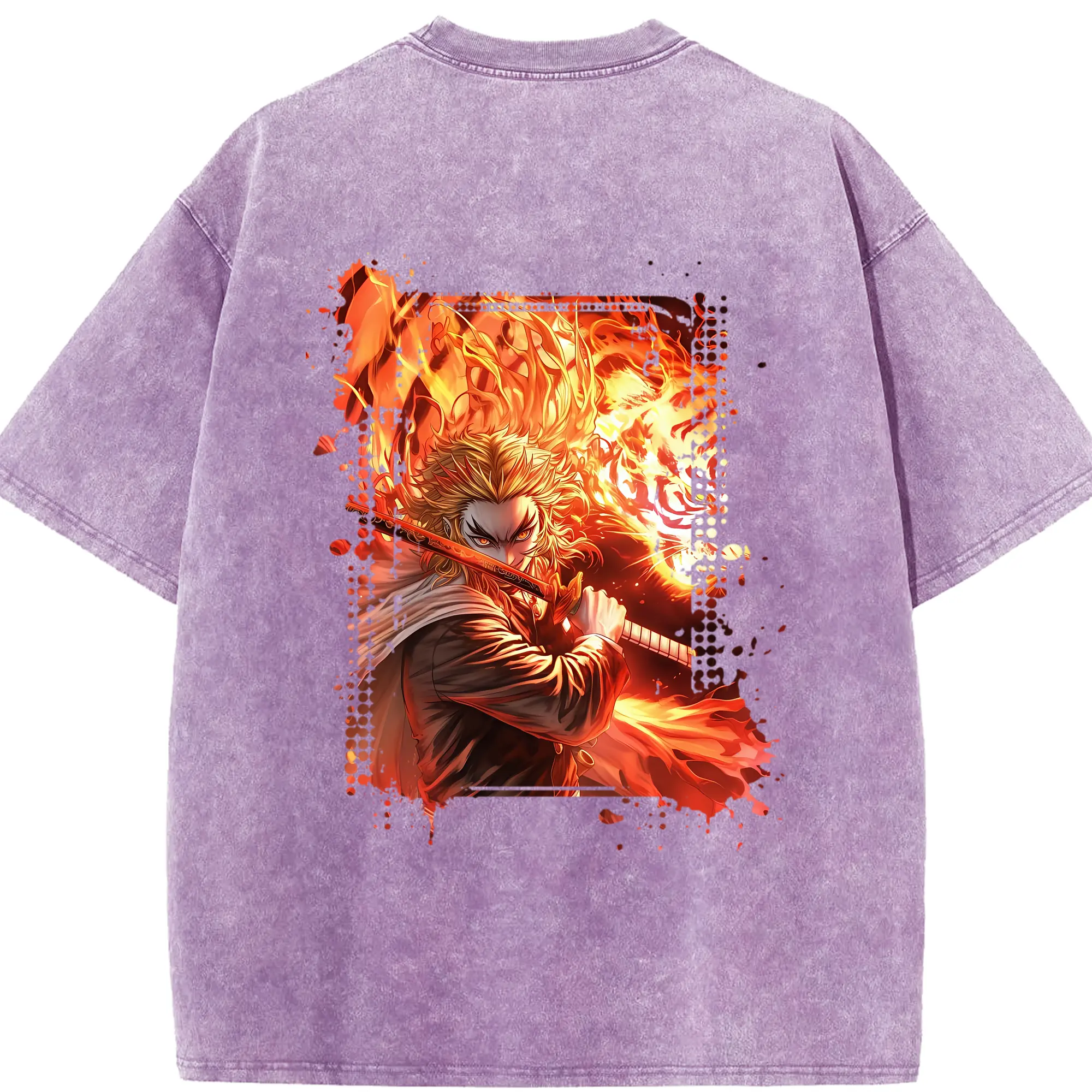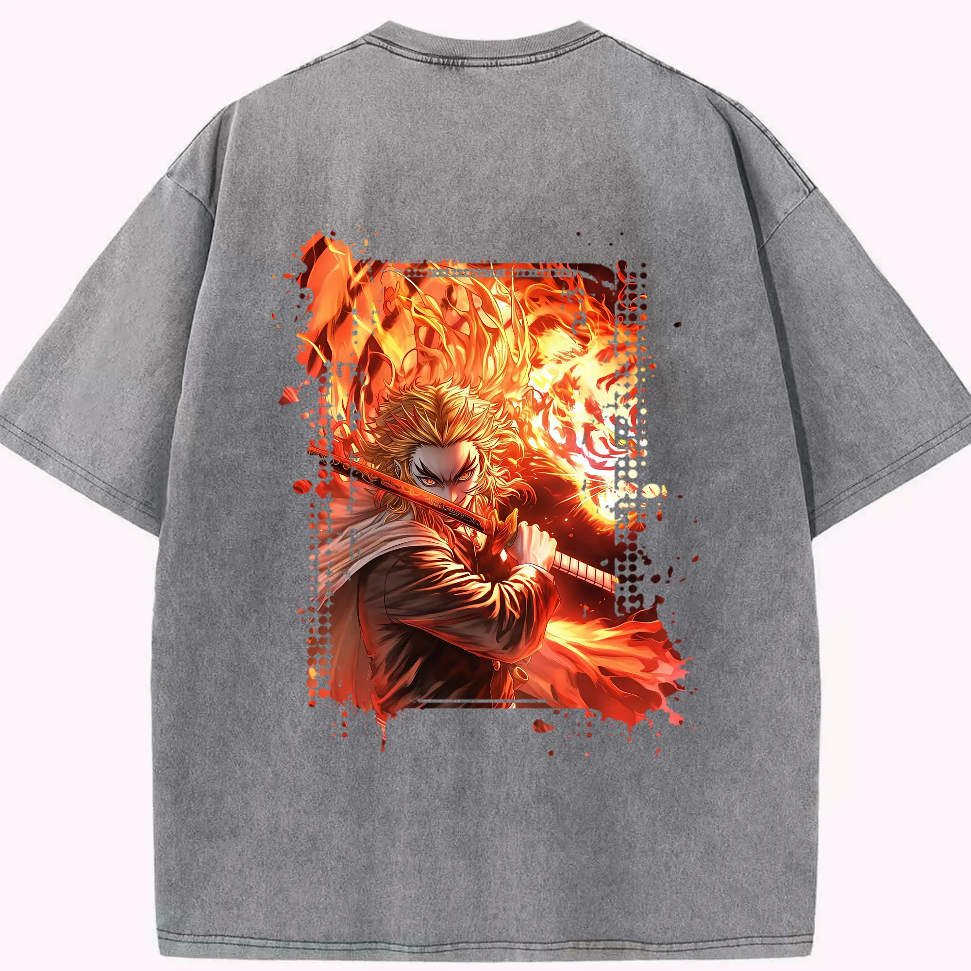 鬼滅の刃 グッズ,煉獄 杏寿郎 - 綿100% 半袖Tシャツ ・ バックプリント ・ 快適 通気性 ・ 日常使い 散歩 スポーツ用