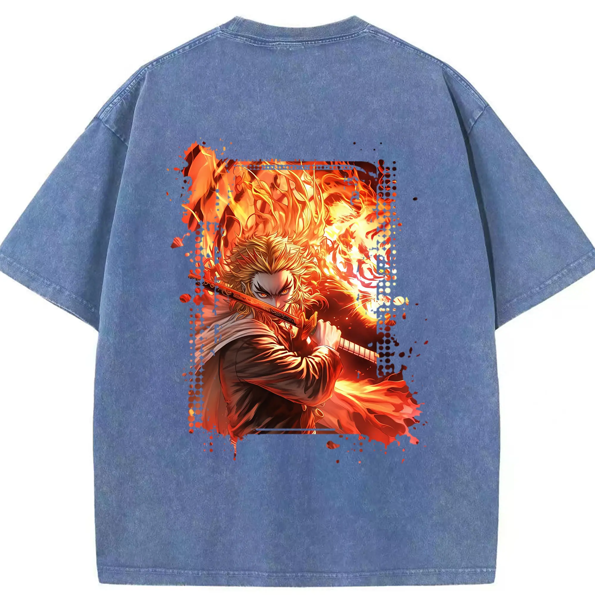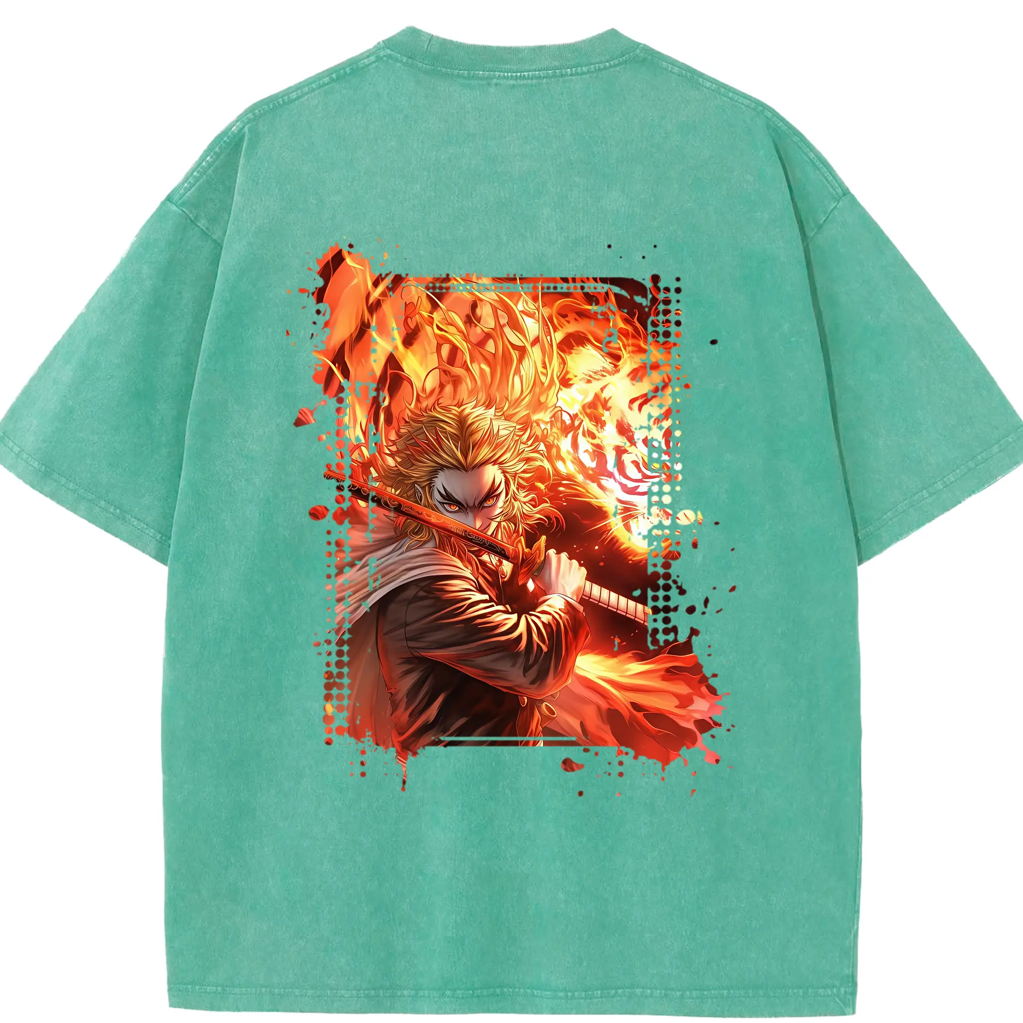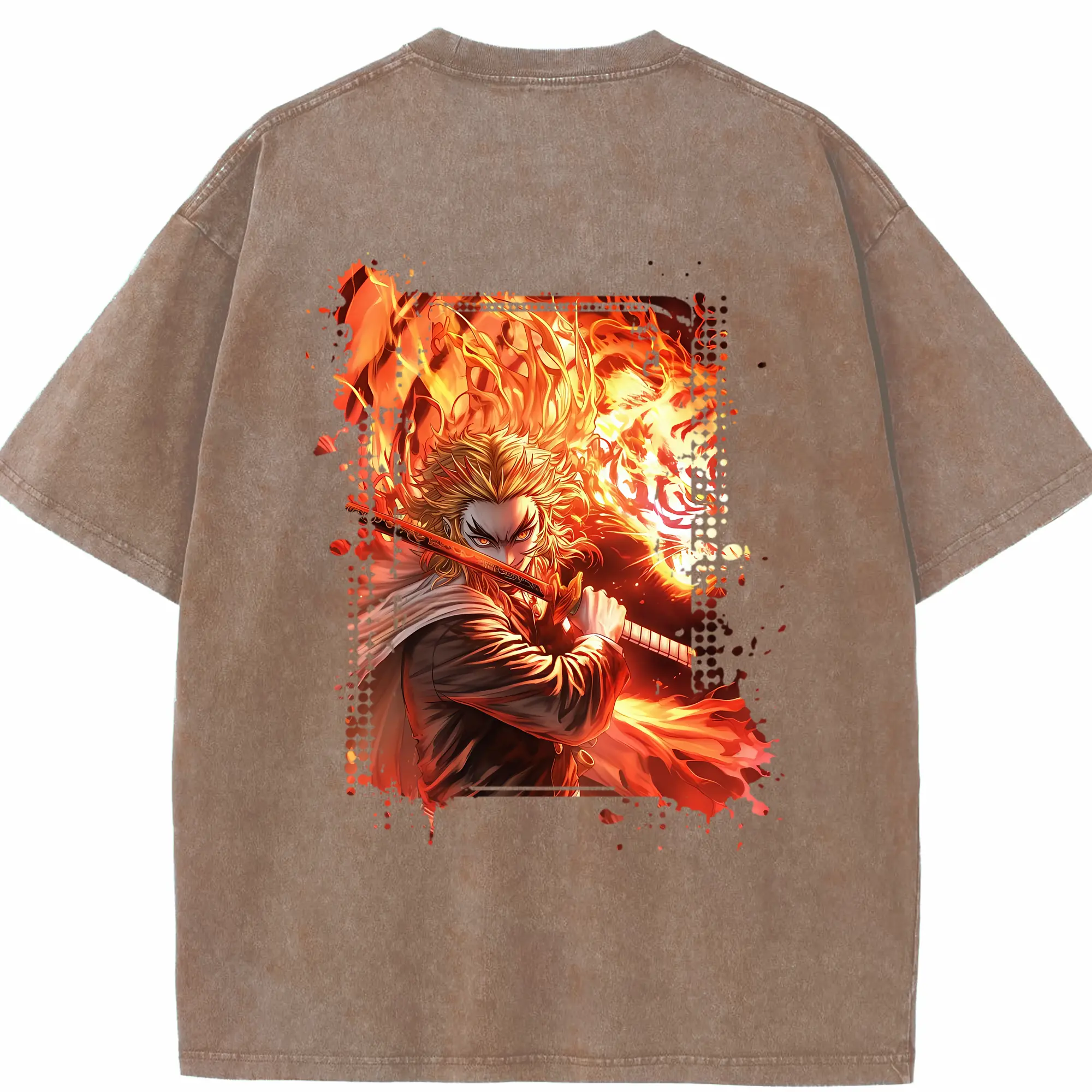 鬼滅の刃 グッズ,煉獄 杏寿郎 - 綿100% 半袖Tシャツ ・ フロントプリント ・ 快適 通気性 ・ 日常使い 散歩 スポーツ用