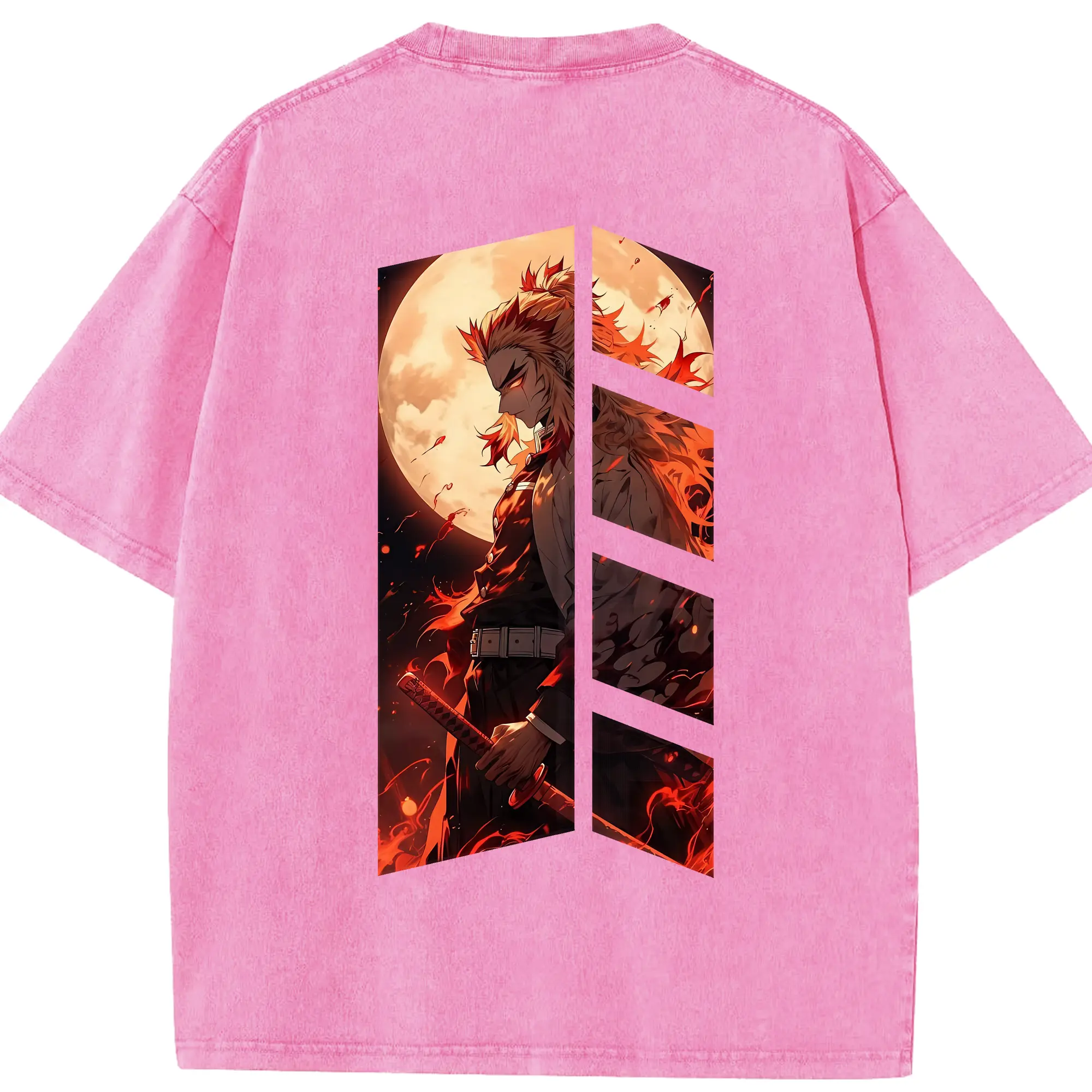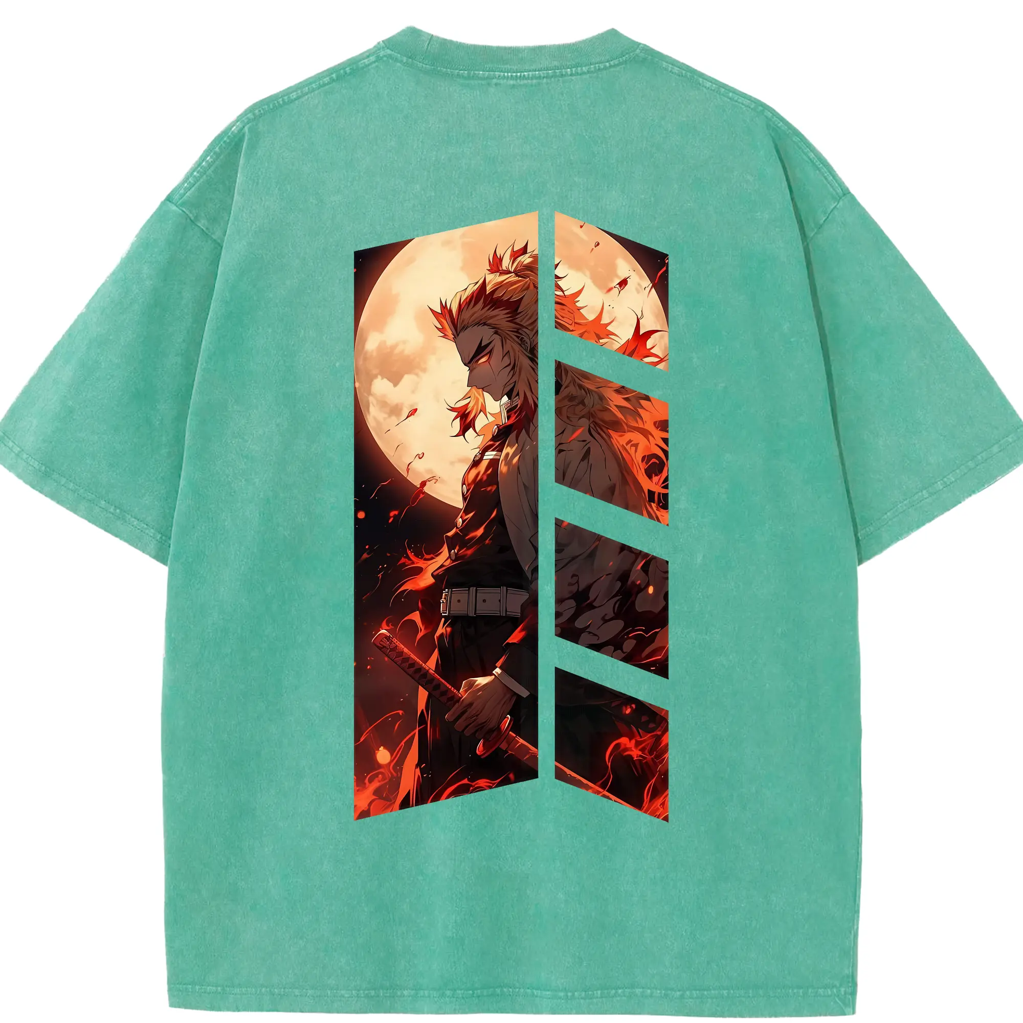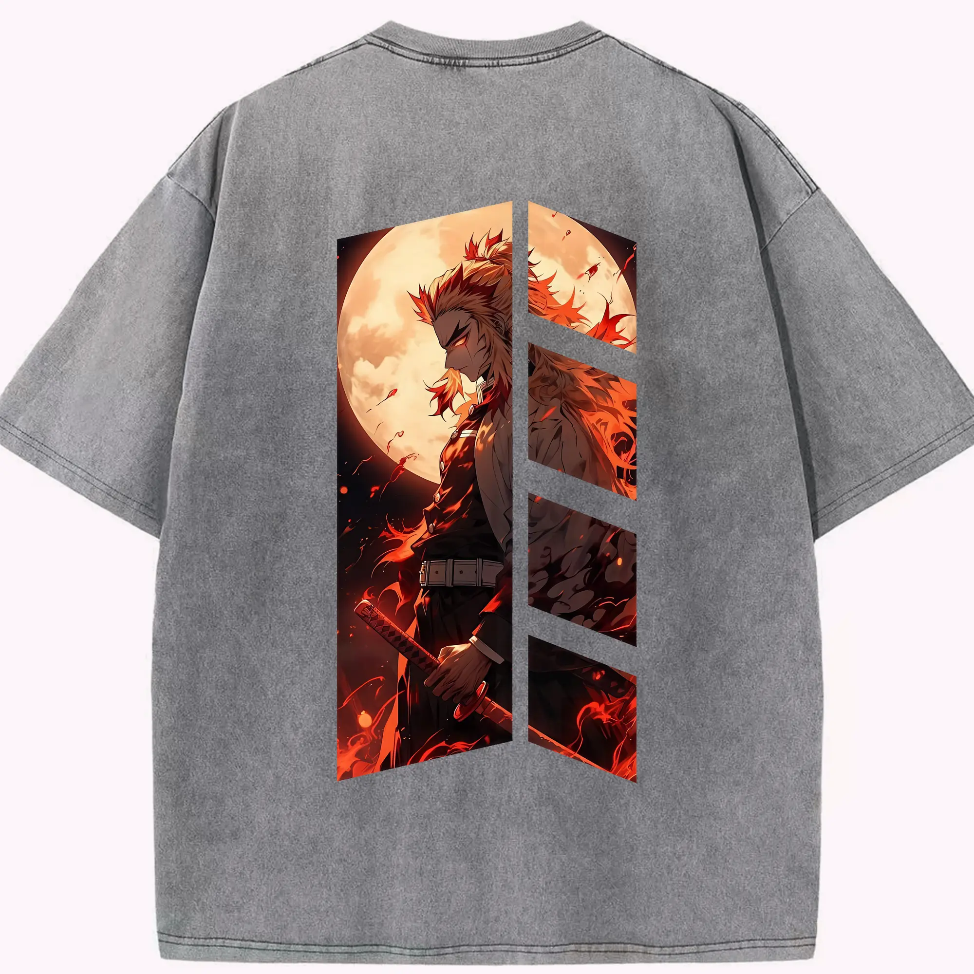 鬼滅の刃 グッズ,煉獄 杏寿郎 - 綿100% 半袖Tシャツ ・ バックプリント ・ 快適 通気性 ・ 日常使い 散歩 スポーツ用