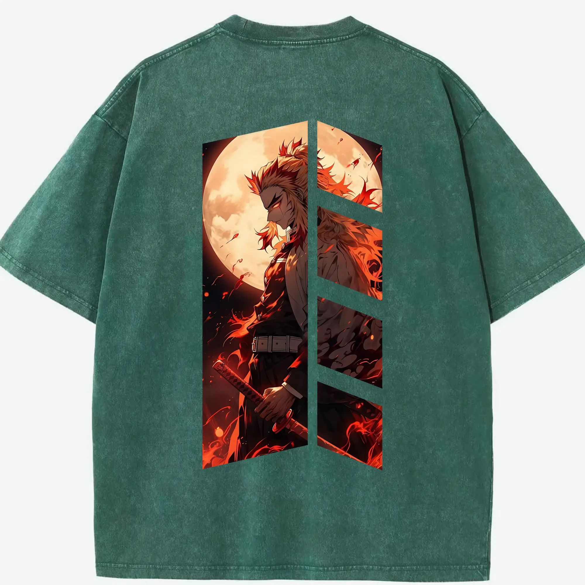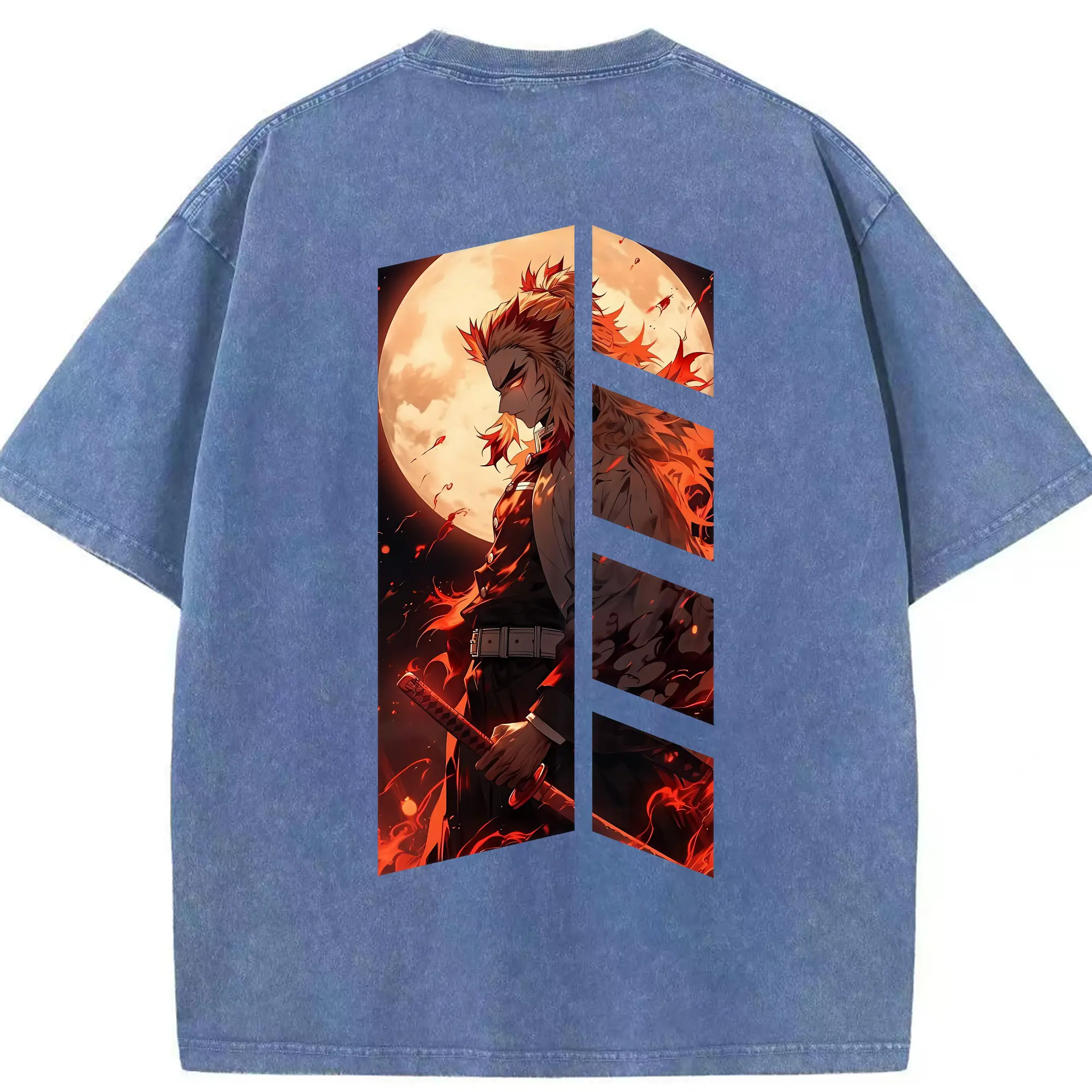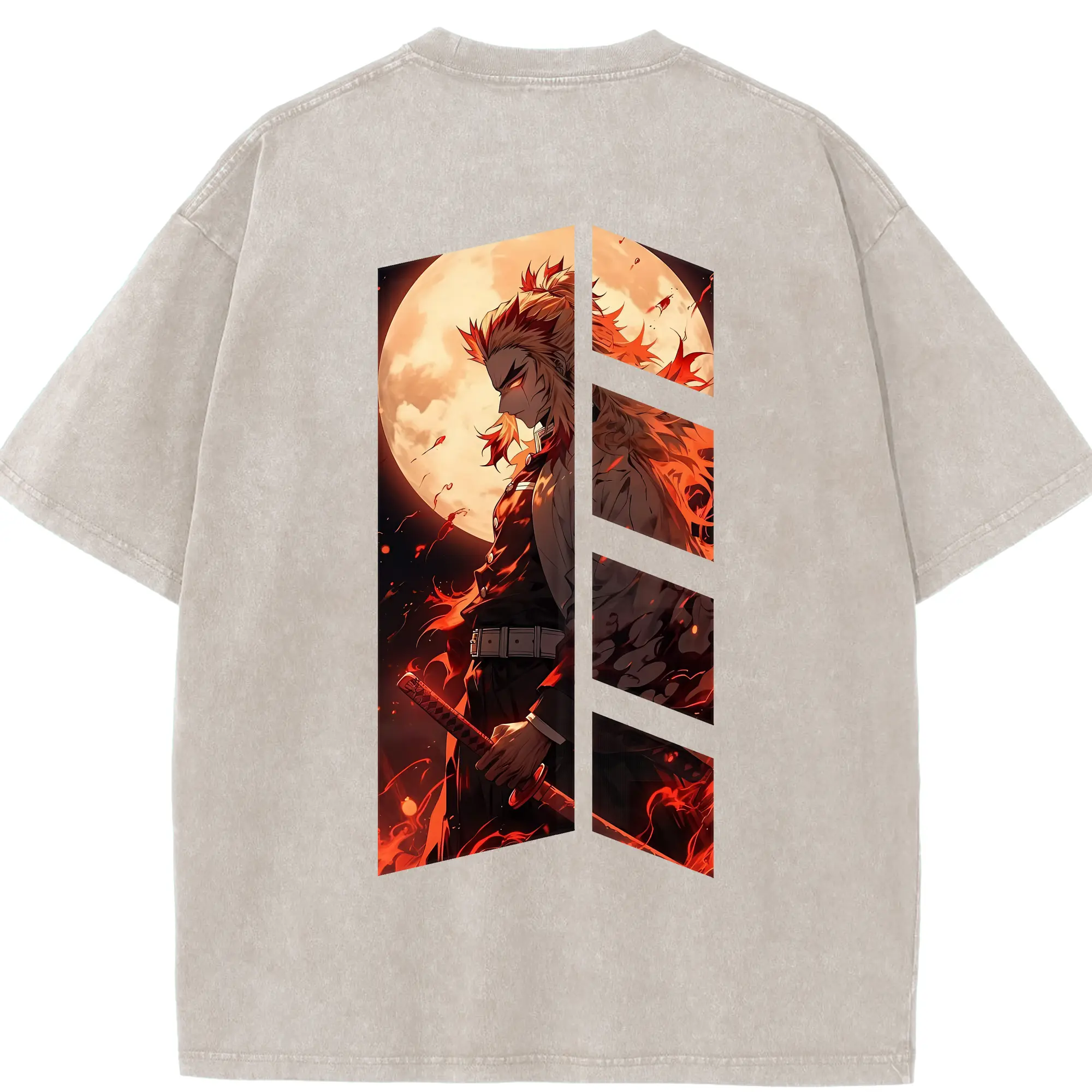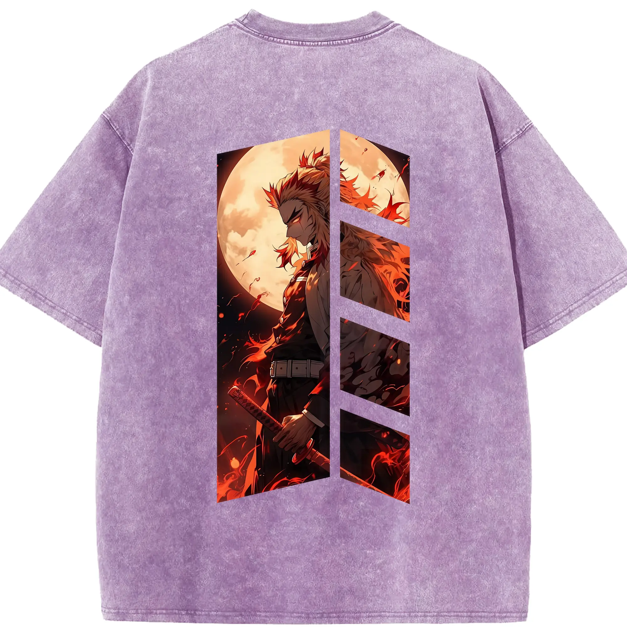 鬼滅の刃 グッズ,煉獄 杏寿郎 - 綿100% 半袖Tシャツ ・ バックプリント ・ 快適 通気性 ・ 日常使い 散歩 スポーツ用