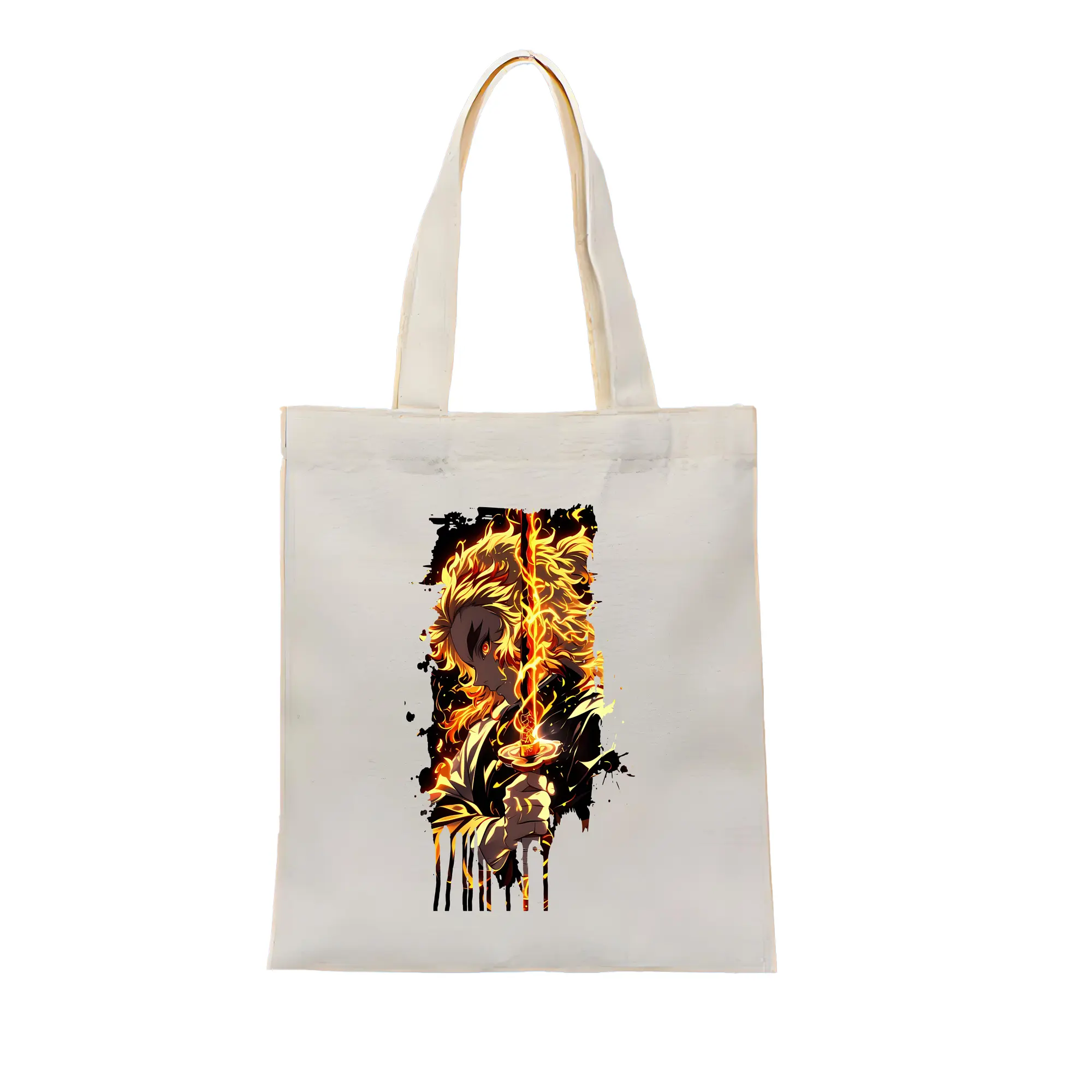 鬼滅の刃 グッズ,煉獄 杏寿郎 - 縦型キャンバス手提げバッグ(トートバッグ) ・ キャンバス素材 ・ ショッピング用 ・ 軽量 丈夫 お手入れ簡単