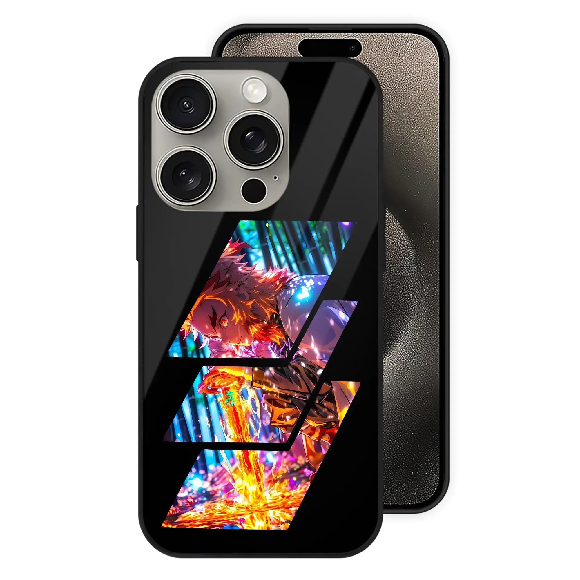 鬼滅の刃 グッズ,煉獄 杏寿郎 - IPhone15Pro対応 ・ スマホケース ・ 背面ガラス ・ TPU+強化ガラス ・ 耐衝撃 ・ 黄変防止 ・ ワイヤレス充電対応 ・ 3D立体ボタン